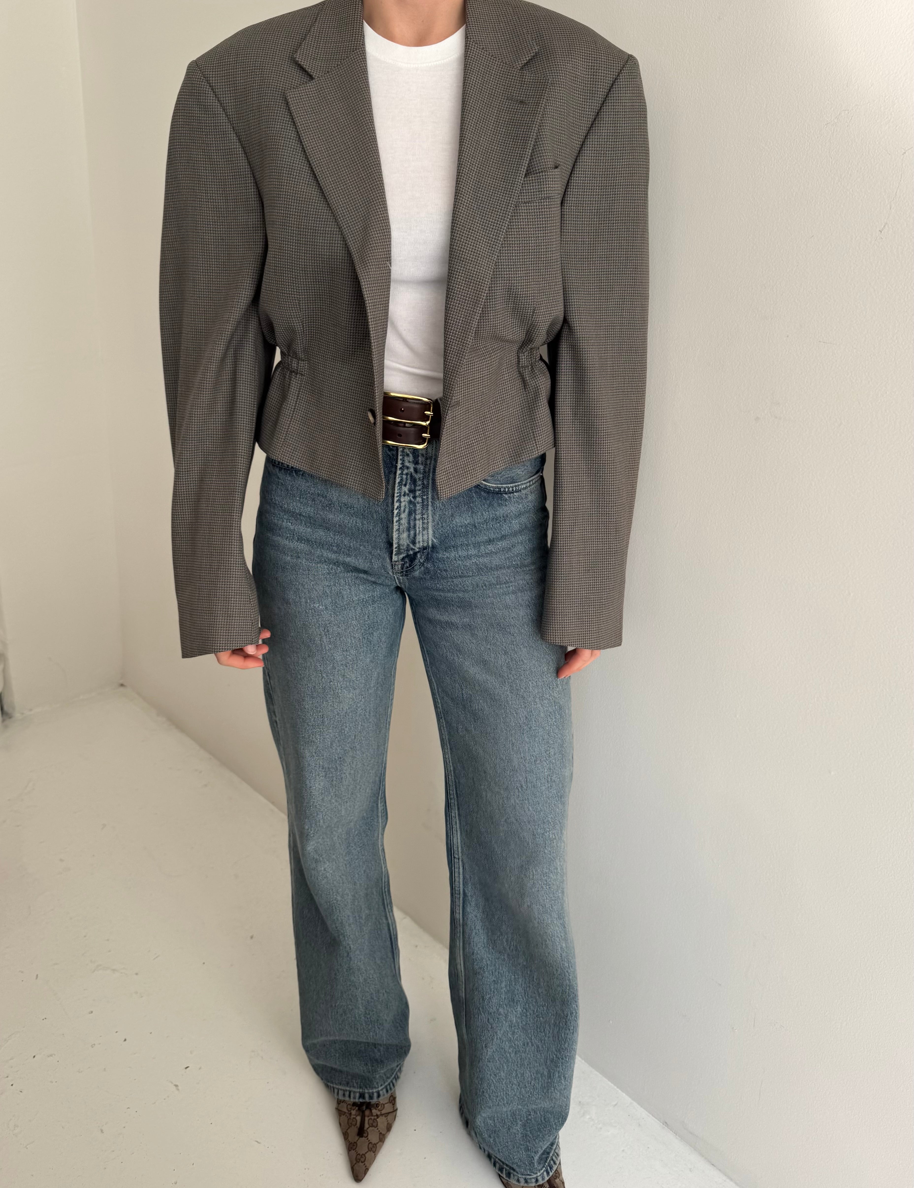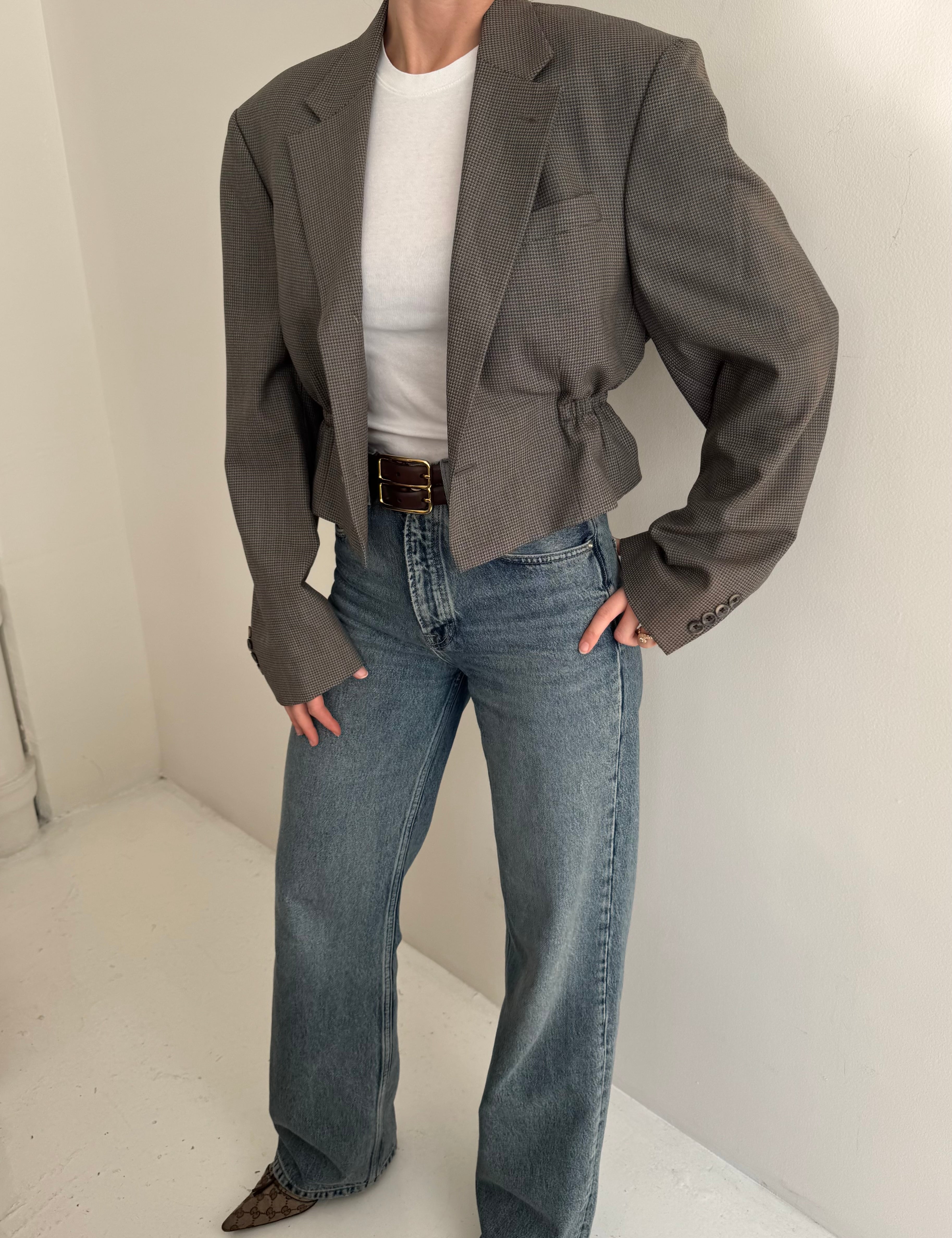 Golden houndstooth and pale brown herringbone two-toned blazer