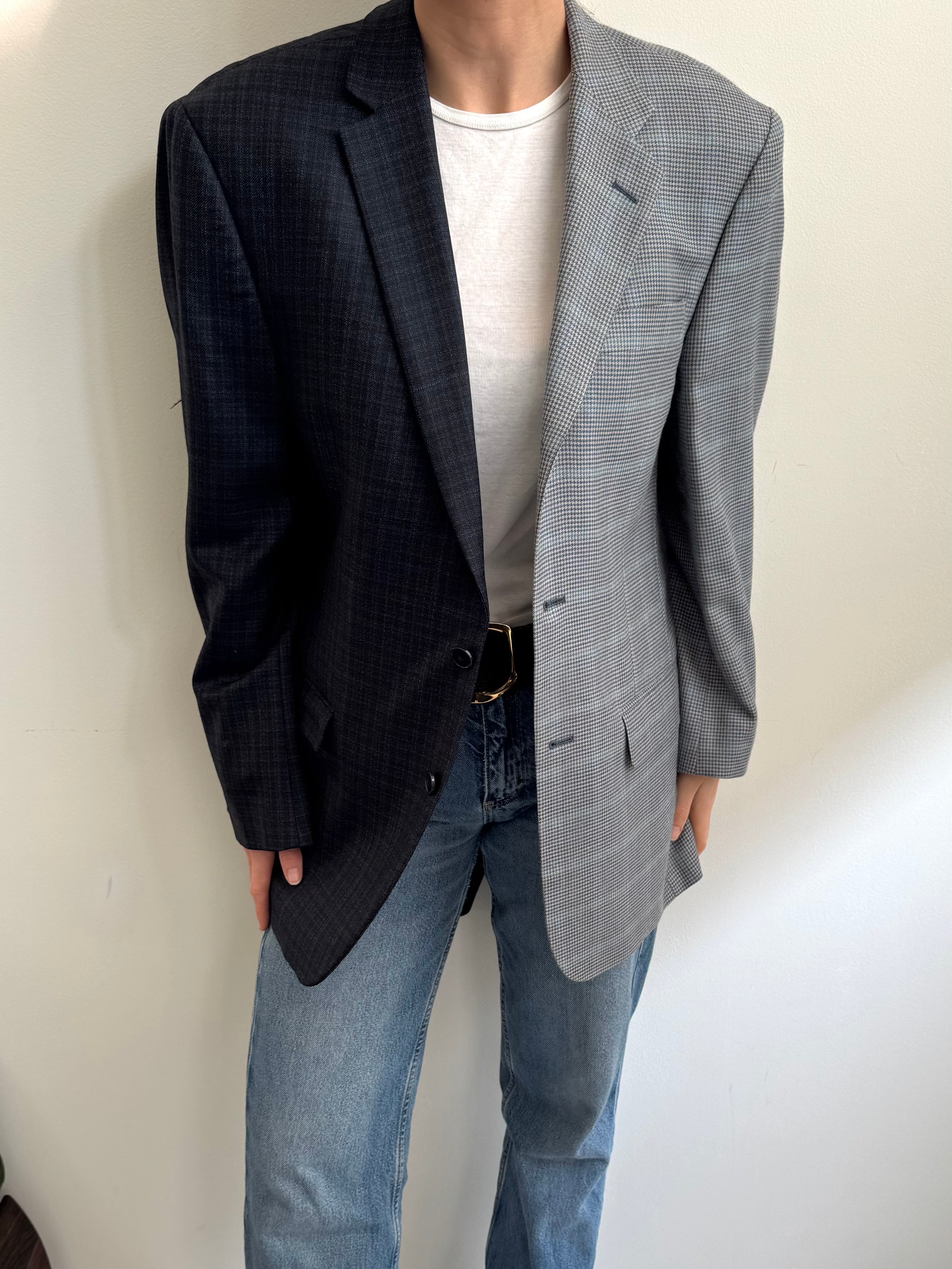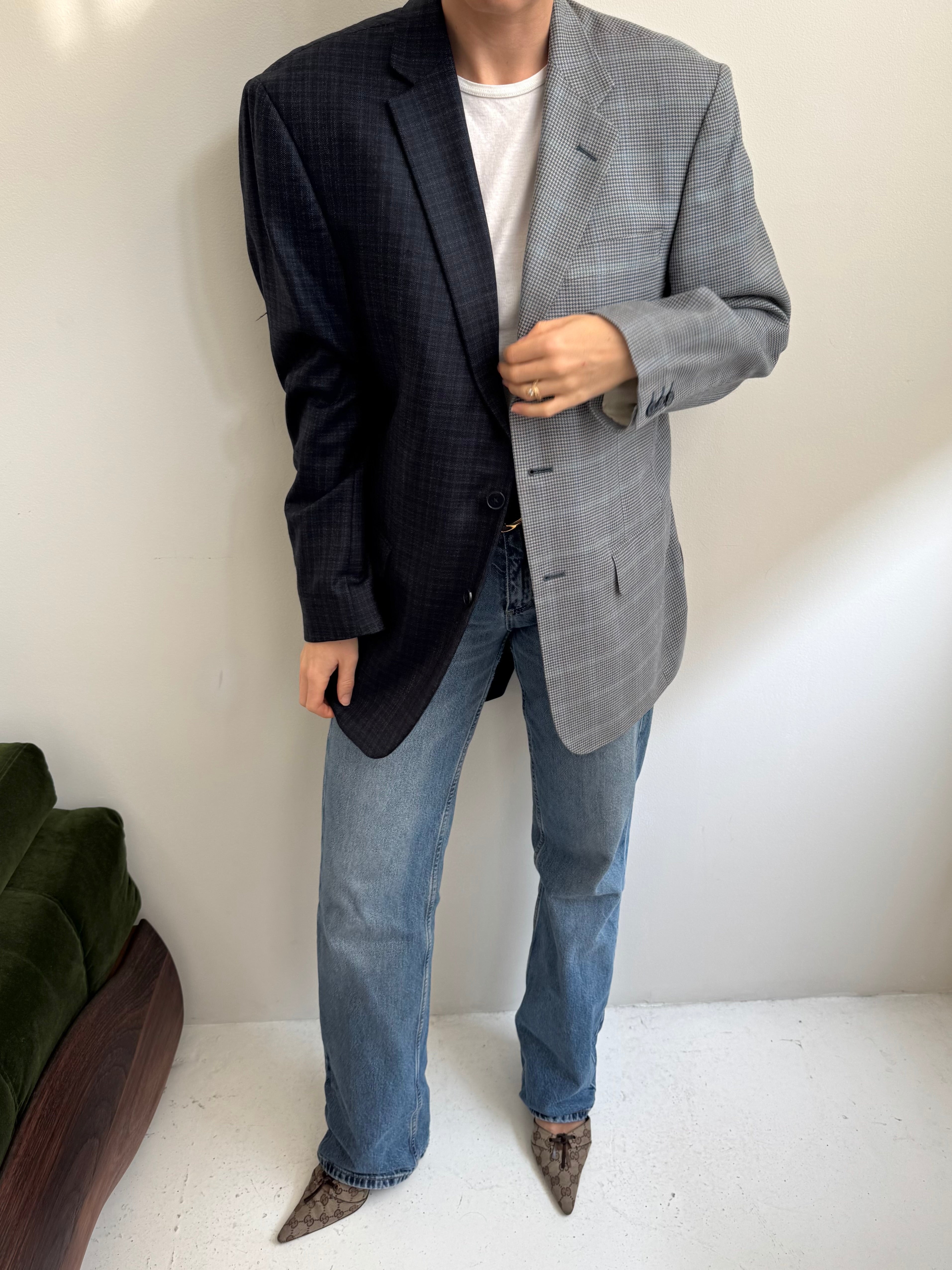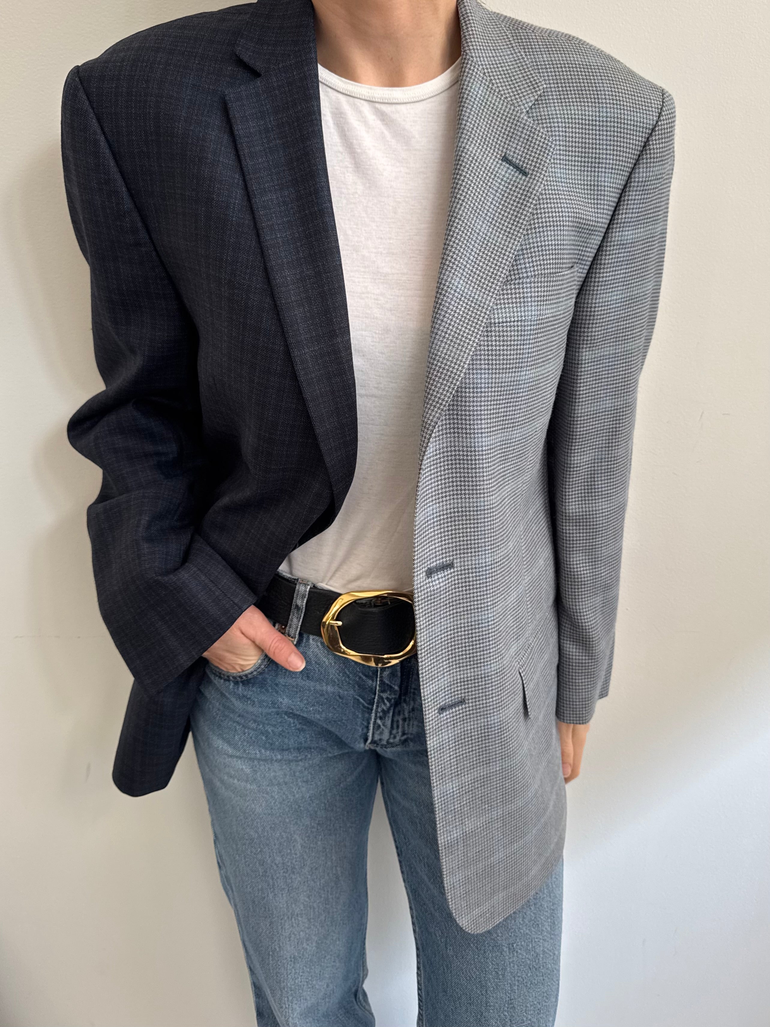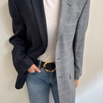 A match made in heaven. Two carefully sourced vintage blazers, made into one, adding a twist to the classic and timeless oversized blazer. Perfect for all occasions and always super versatile. Wear it with jeans or on its own, daytime or evening. Carefully curated, tailored and dry cleaned. Beautiful quality, and always made from silk, cashmere, cotton or wool. The sewing has been done well, however there may be slight differences in length/shoulder, as the jacket is made from two recycled blazers.