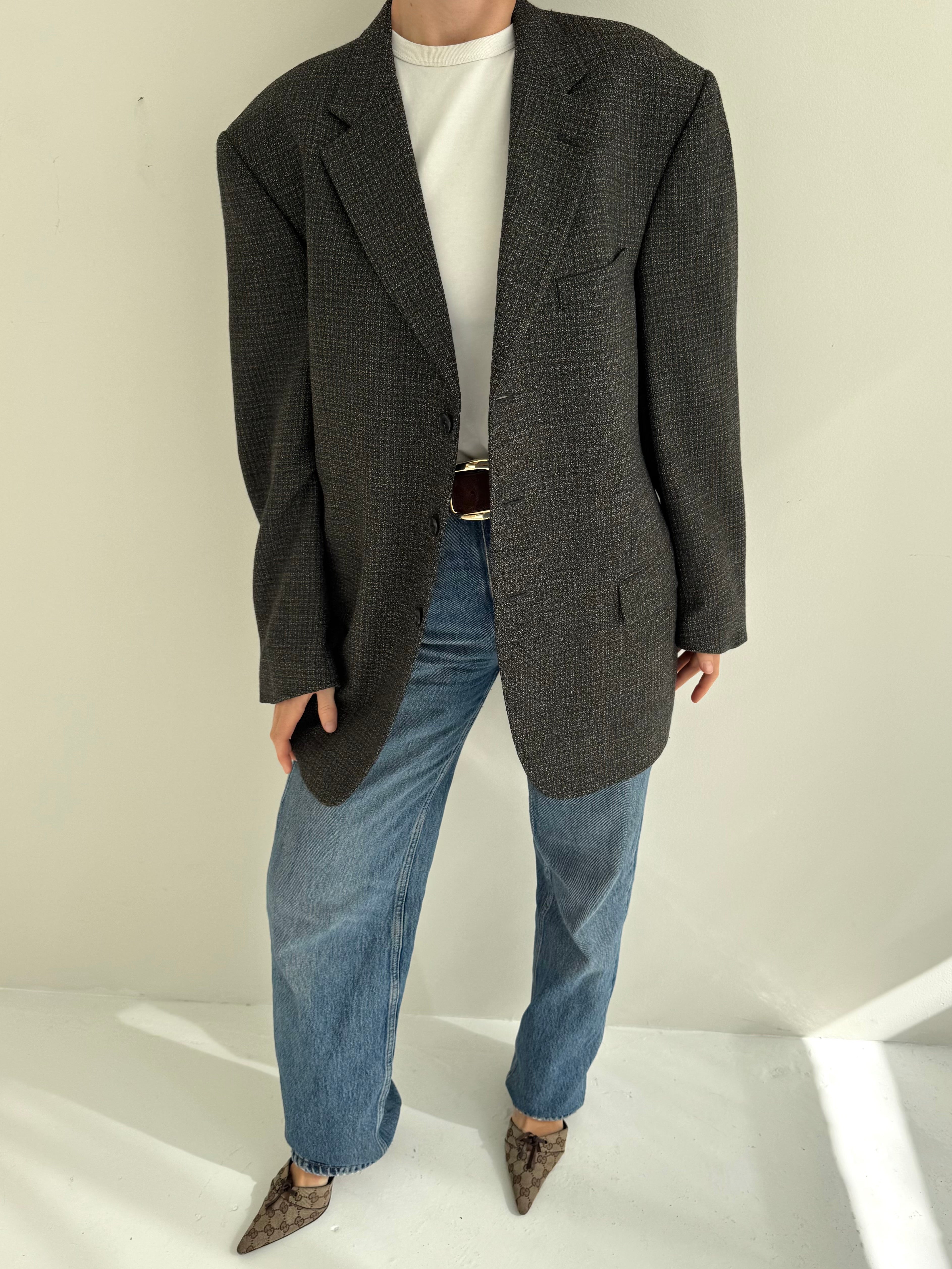 Beautiful vintage men’s blazer, perfect for all occasions and always super versatile. Wear it with jeans or on its own, day time or evening. Carefully curated, tailored and dry cleaned. Beautiful quality, and always made from silk, cashmere, cotton or wool. This piece is zero waste and is up cycled to prolong its lifespan. Carefully curated, professionally tailored and professionally dry-cleaned. Dry-clean only.