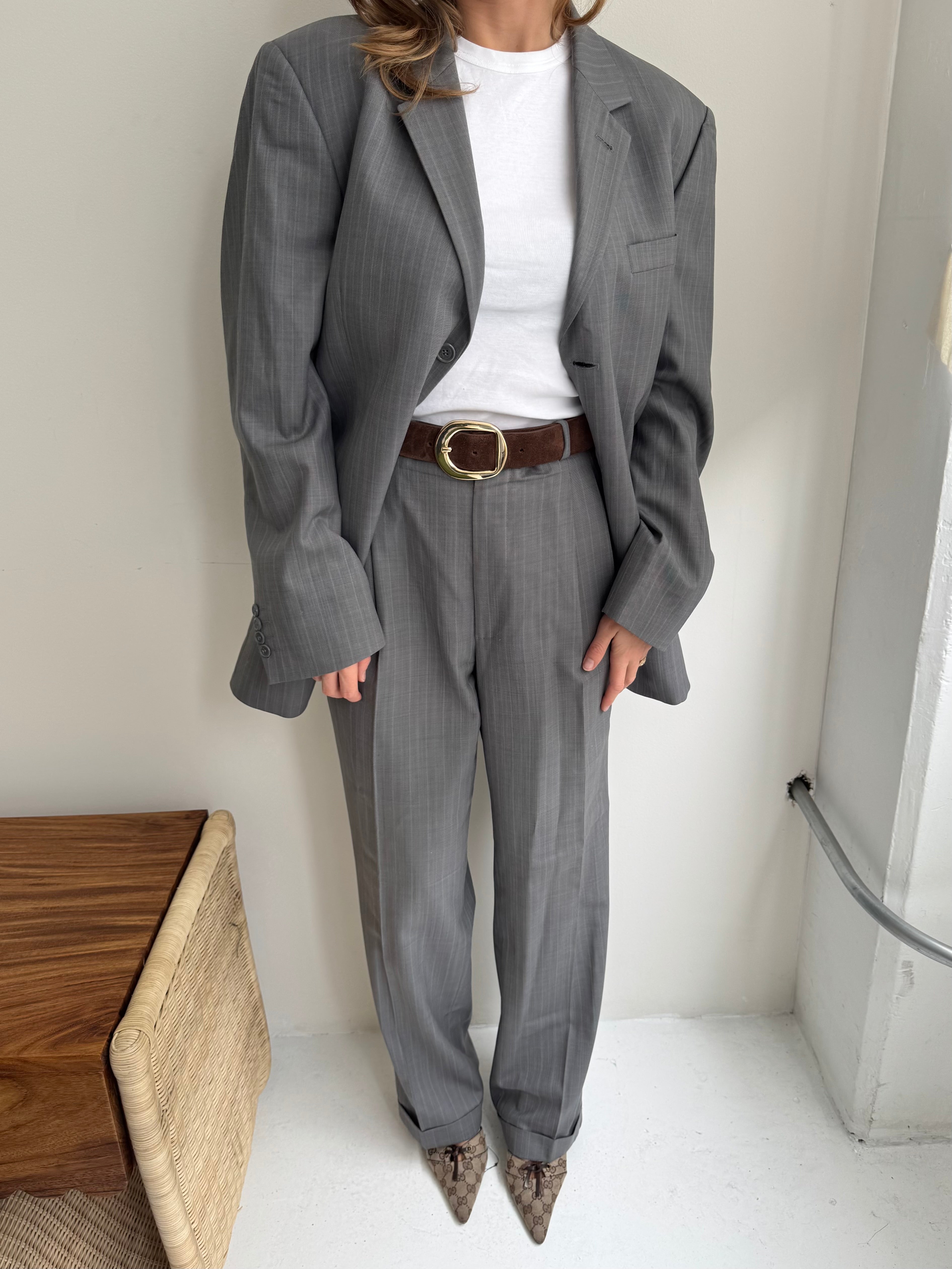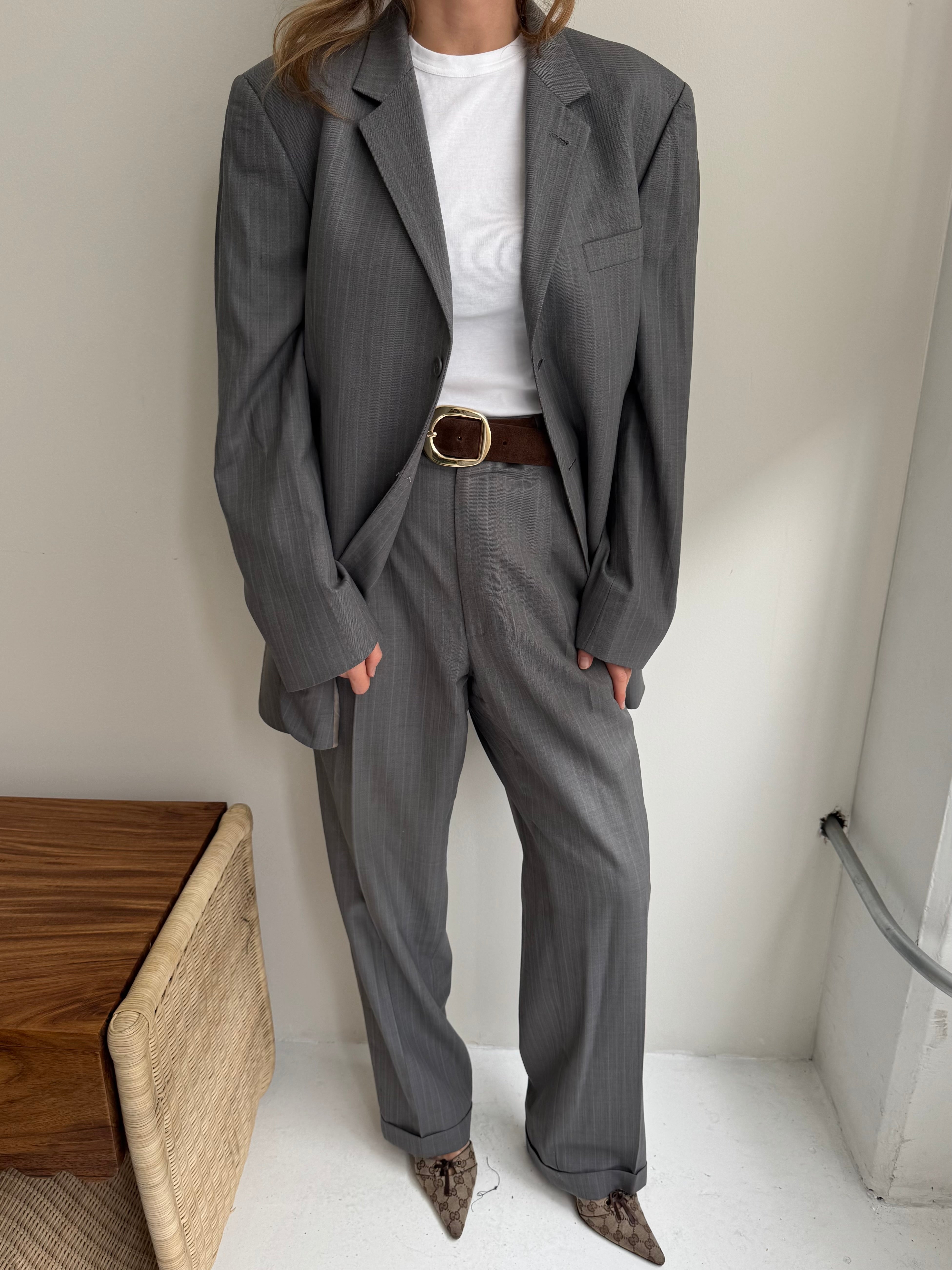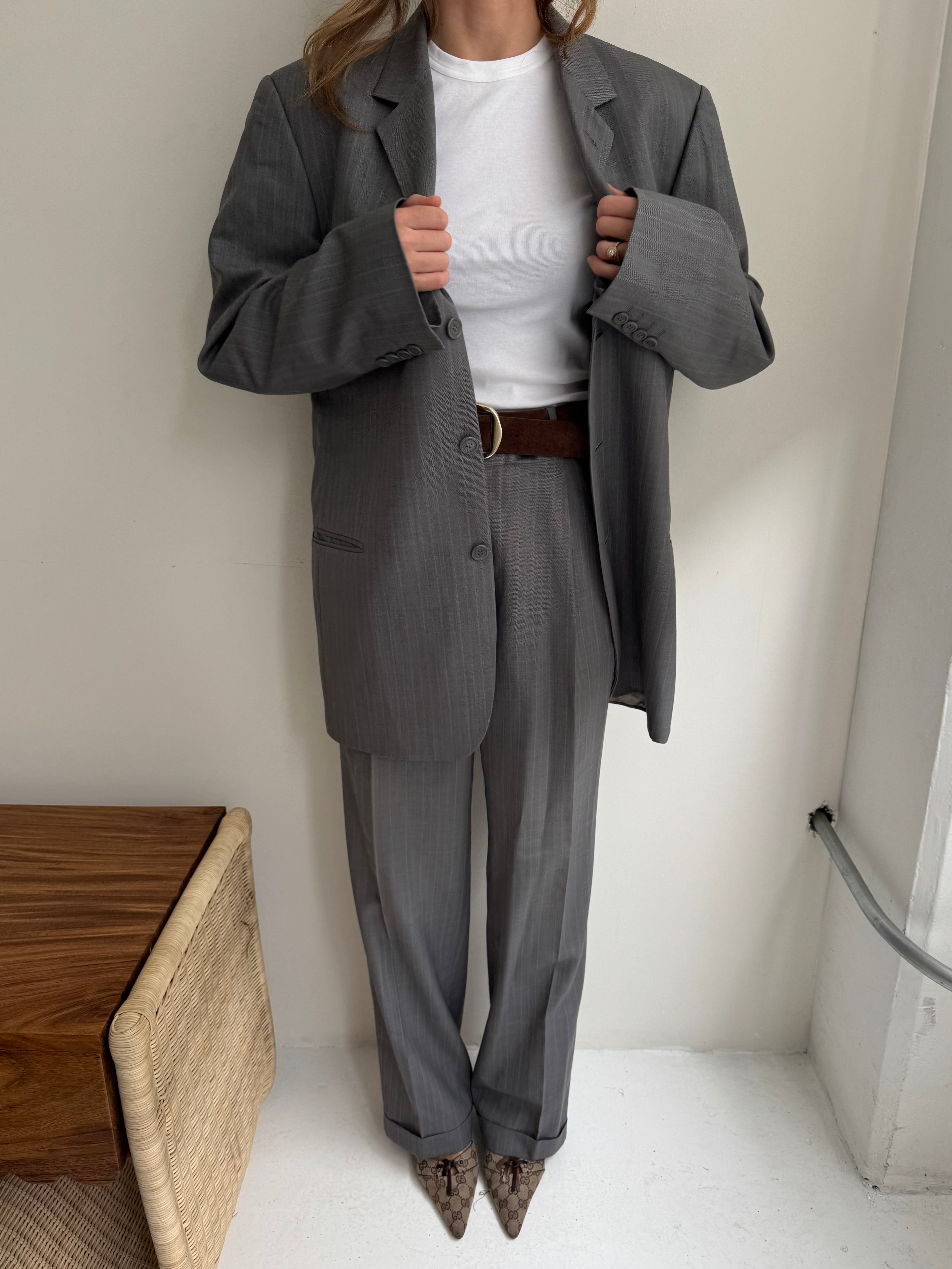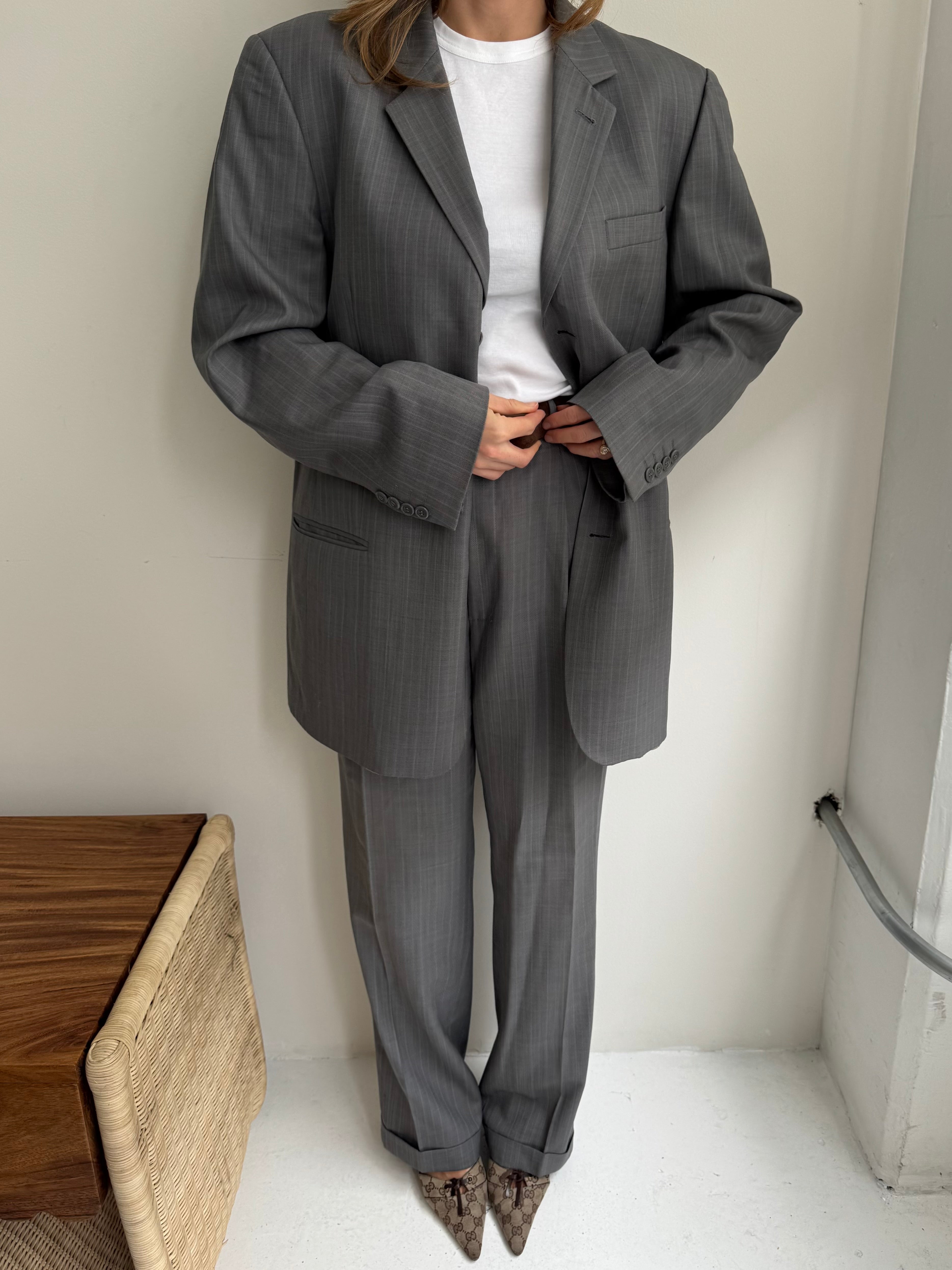 Beautiful vintage suit, carefully curated and handpicked. This piece is zero waste and is up cycled to prolong its lifespan. Carefully curated, professionally tailored and professionally dry-cleaned. Wear each piece separately or together and dress it up or down. Dry clean only.