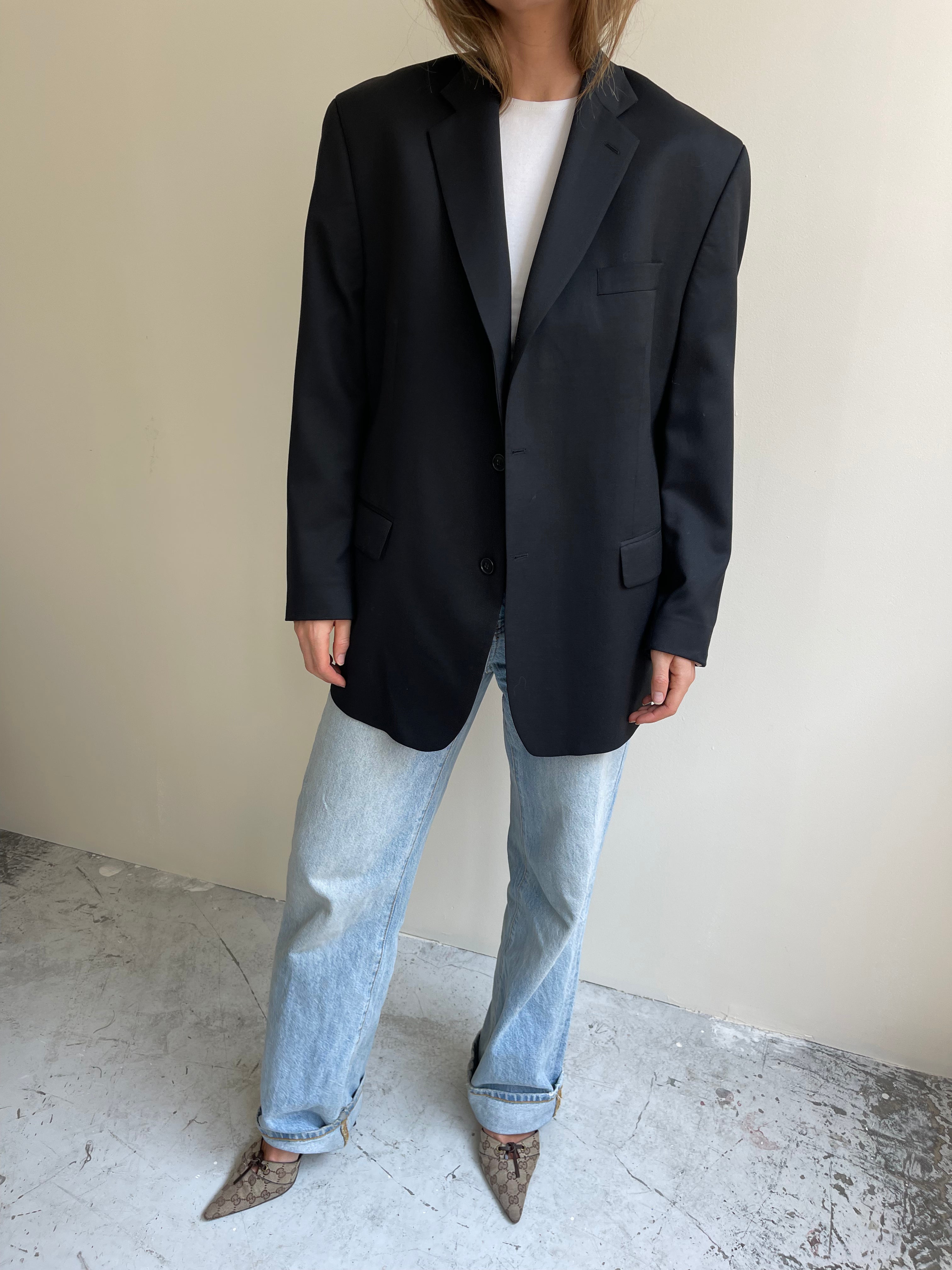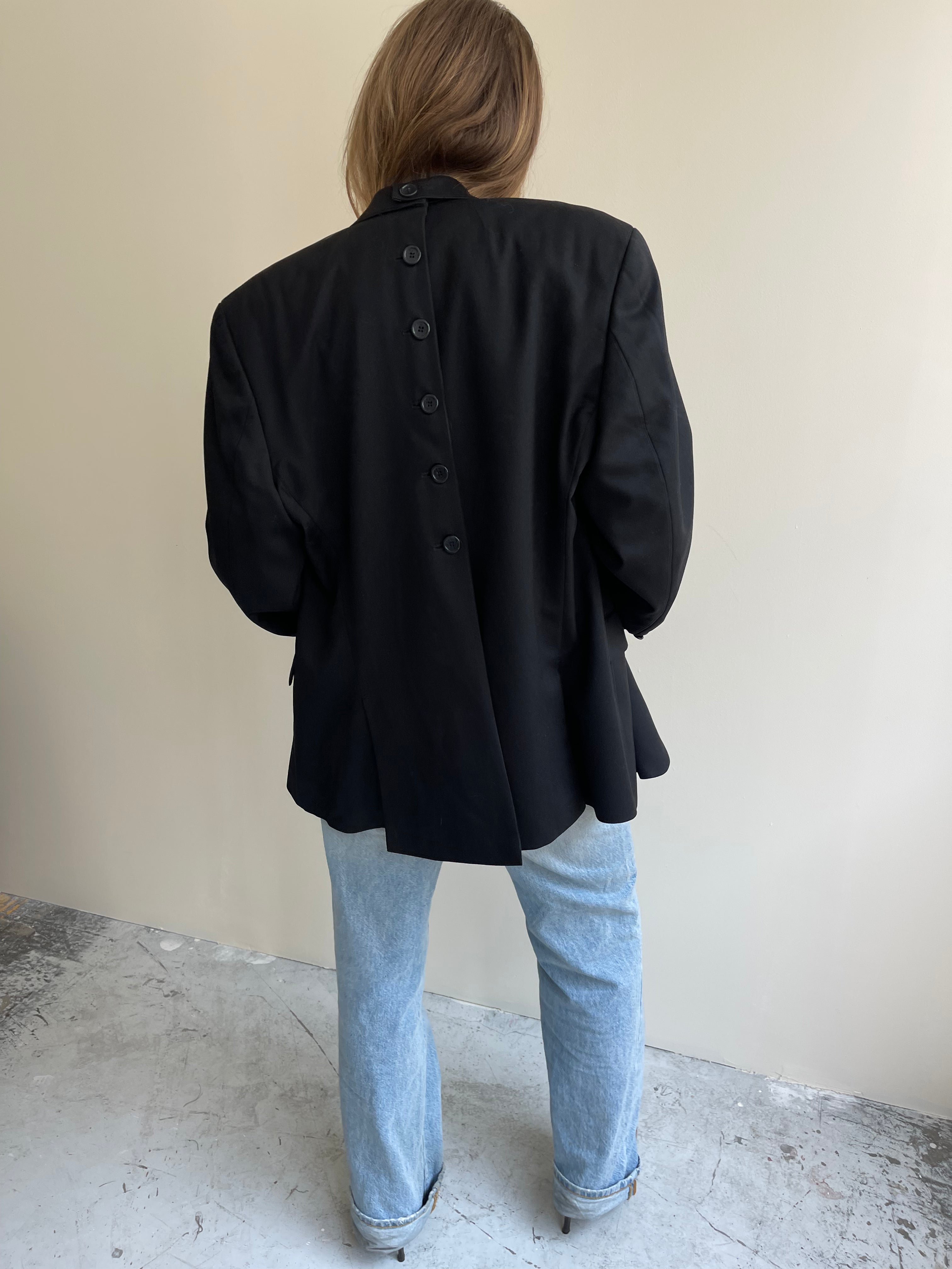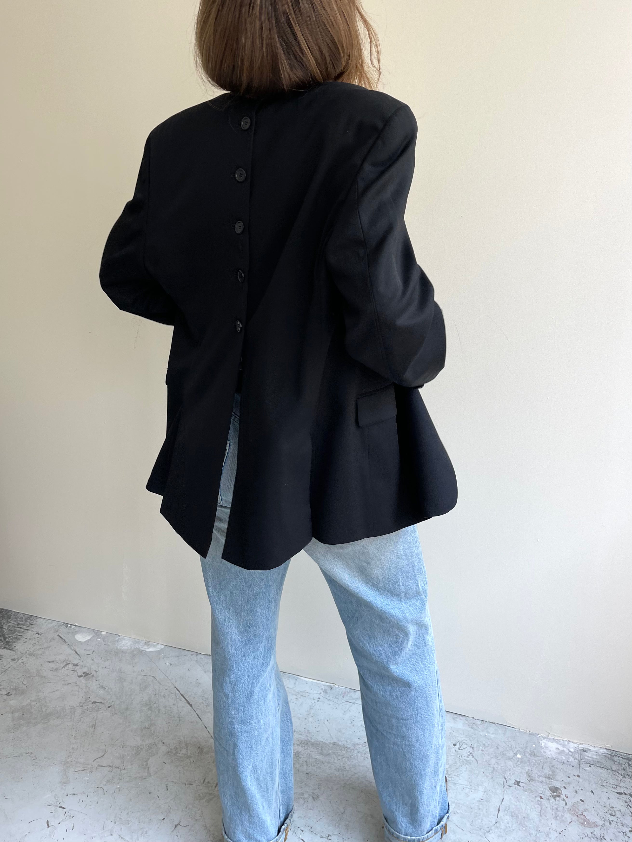 Havre Studio's button back blazer pushes all the right buttons loosening up traditional men's tailoring with some innovative Scandinavian finesse and versatility. Beautifully crafted from a vintage mens blazer, and up-cycled meticulously.
