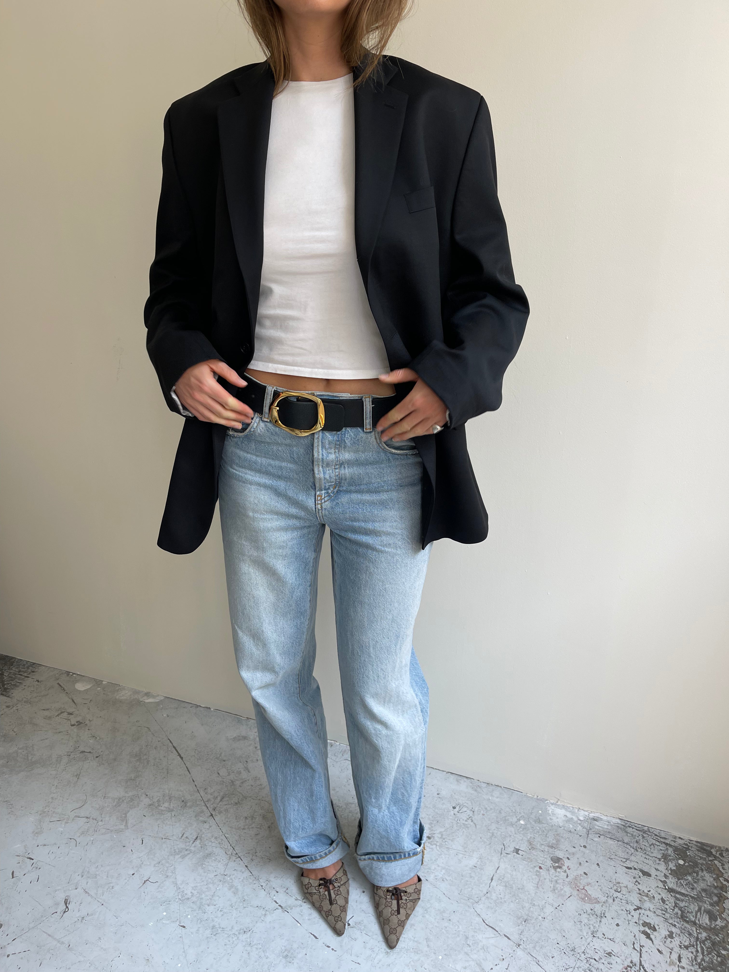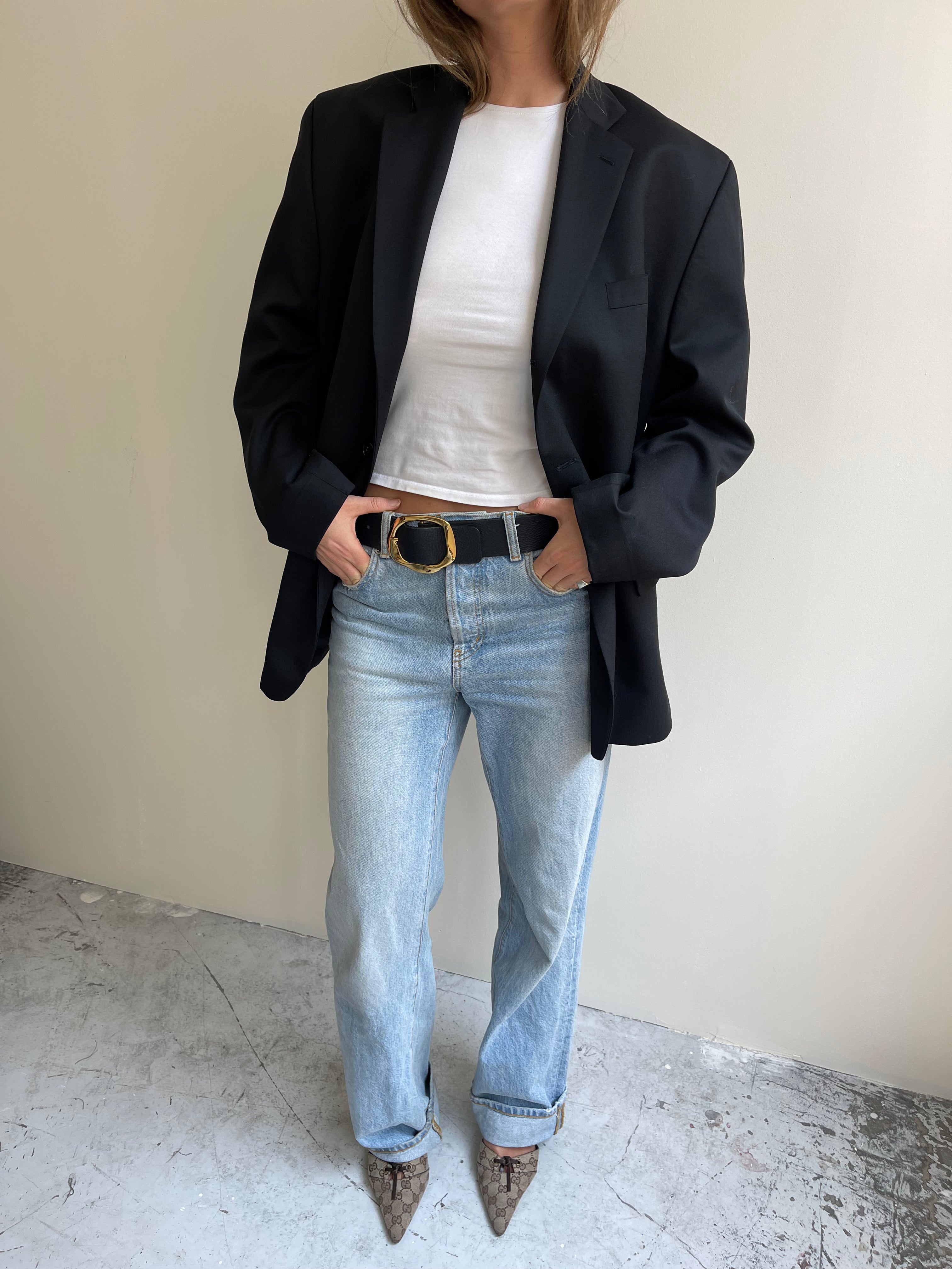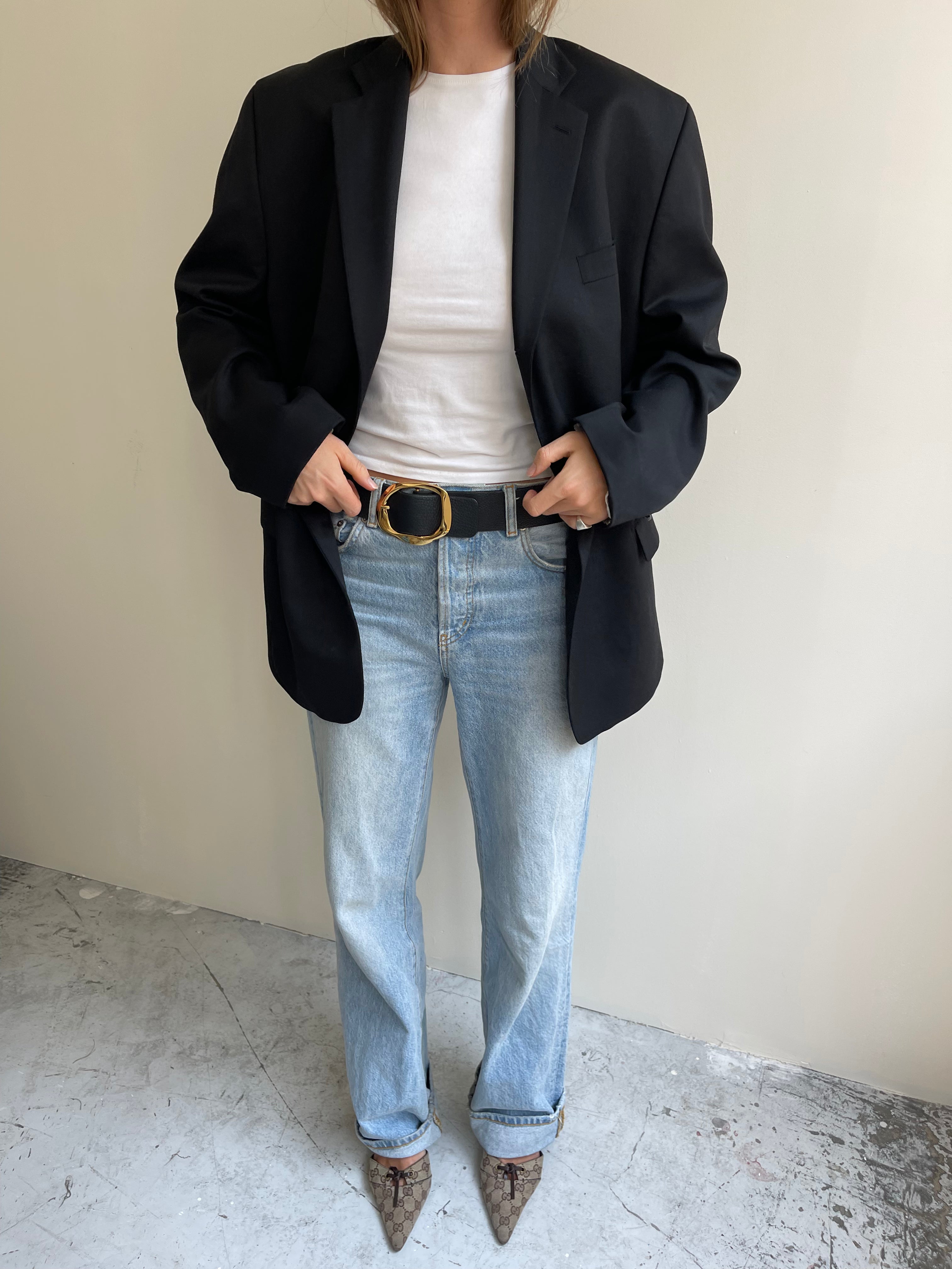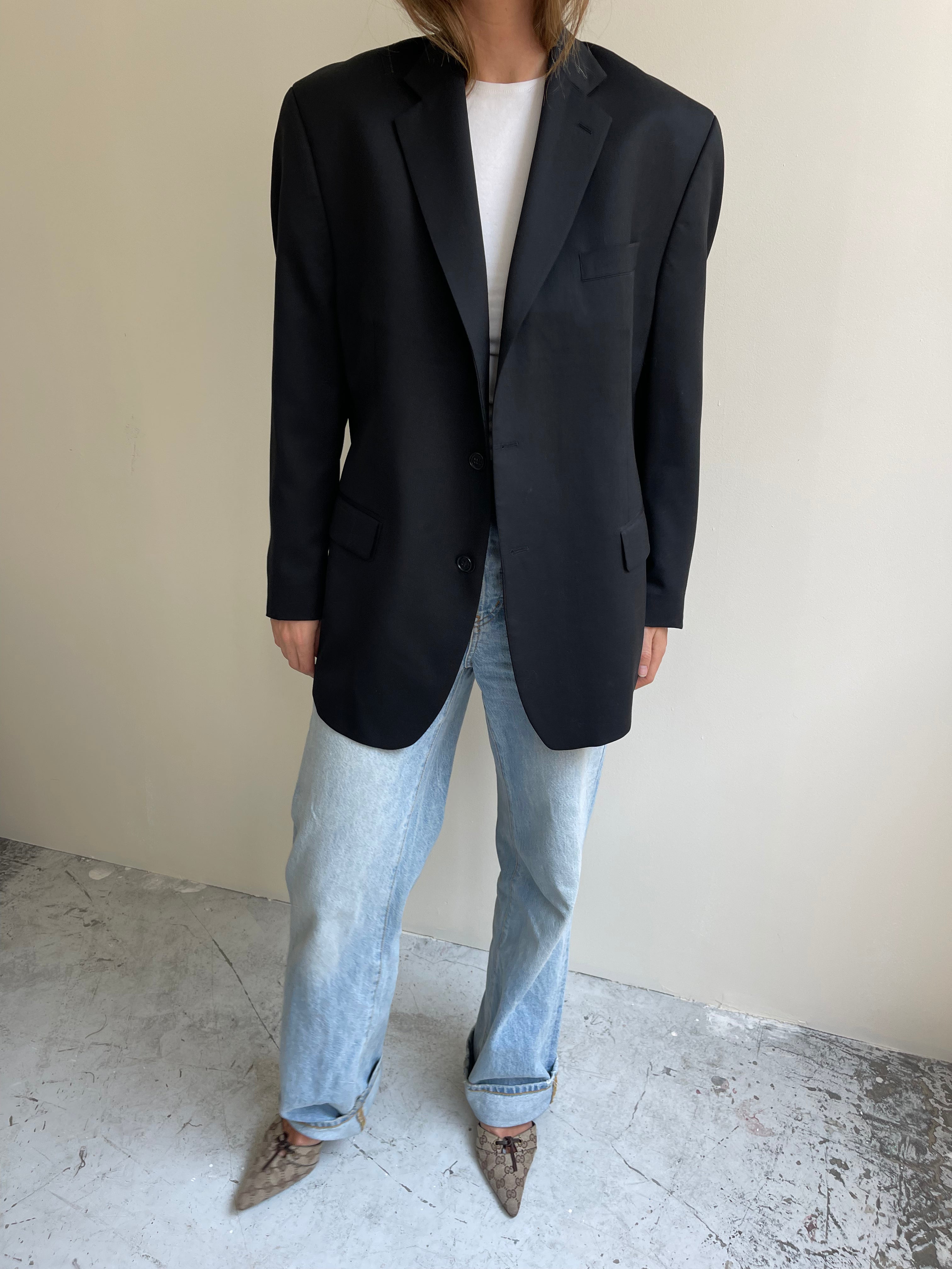 Havre Studio's button back blazer pushes all the right buttons loosening up traditional men's tailoring with some innovative Scandinavian finesse and versatility. Beautifully crafted from a vintage mens blazer, and up-cycled meticulously.