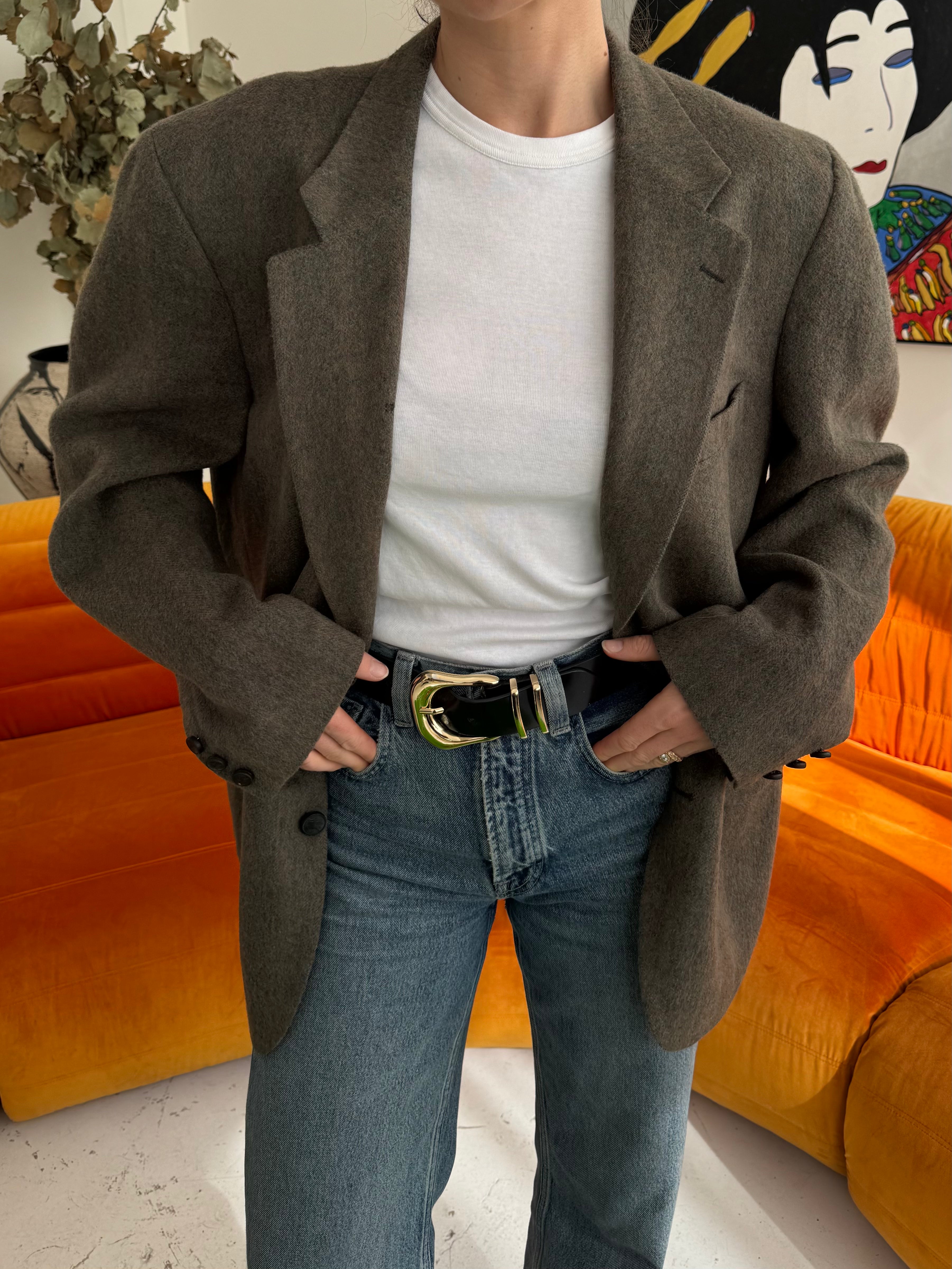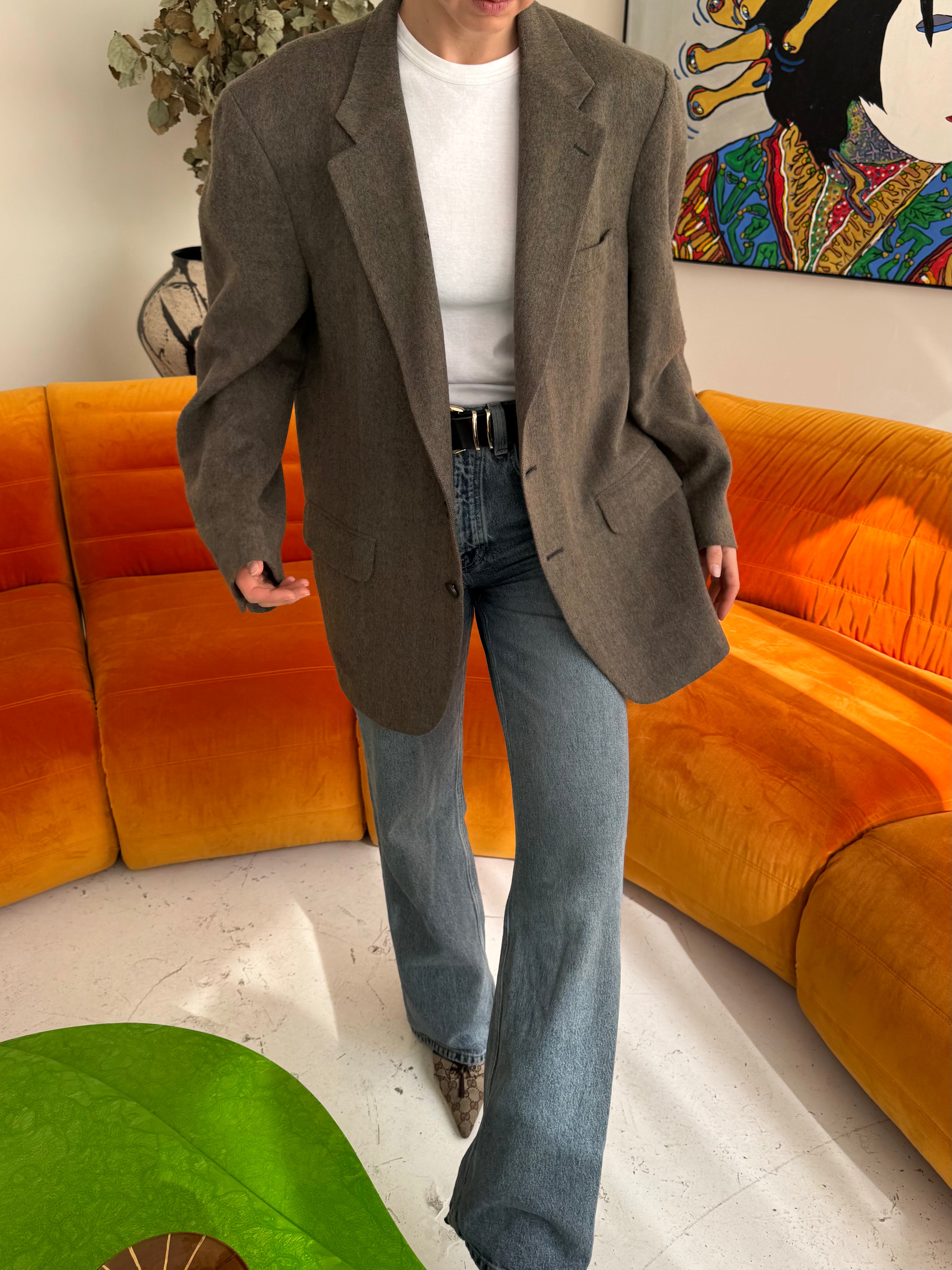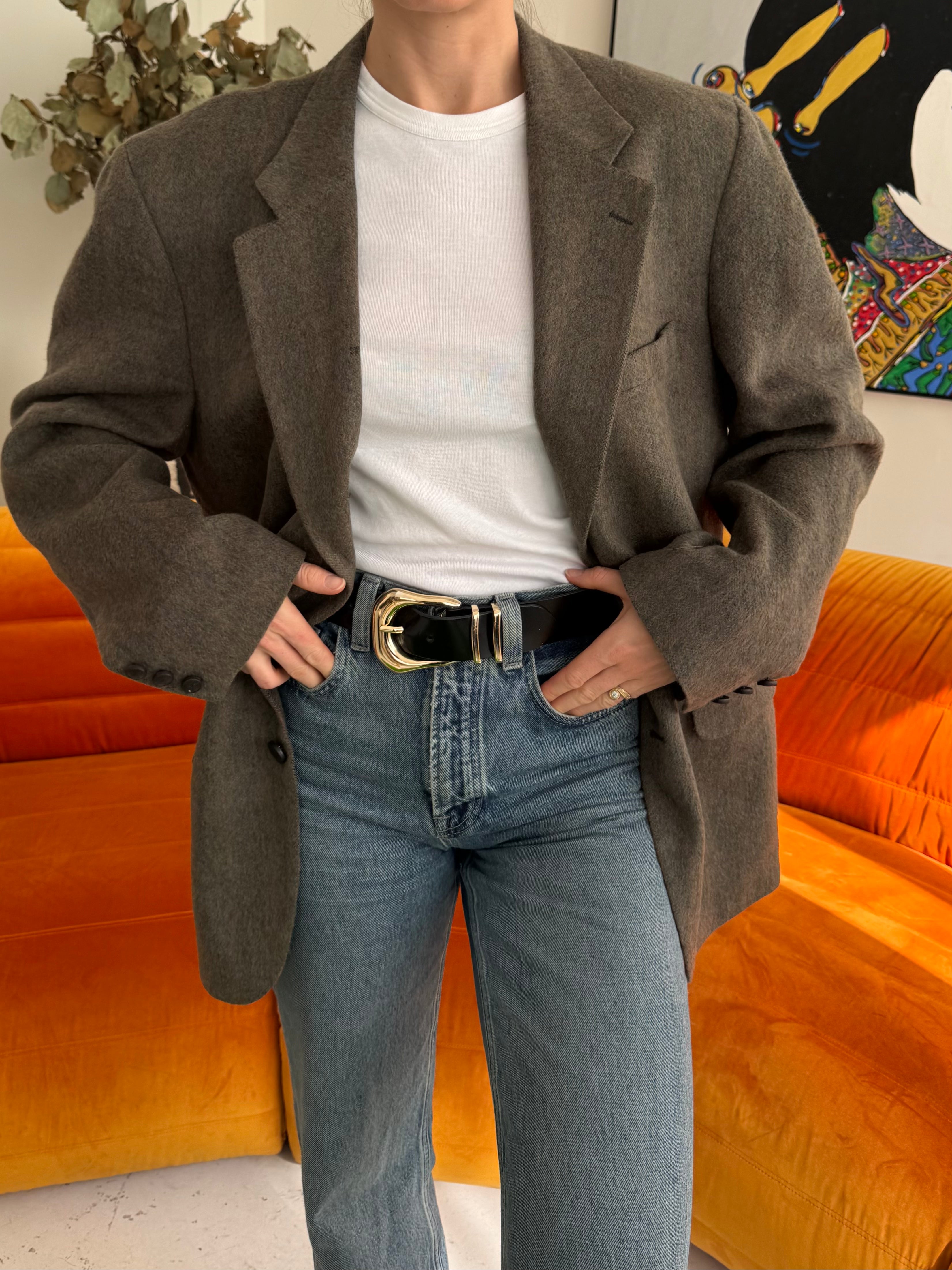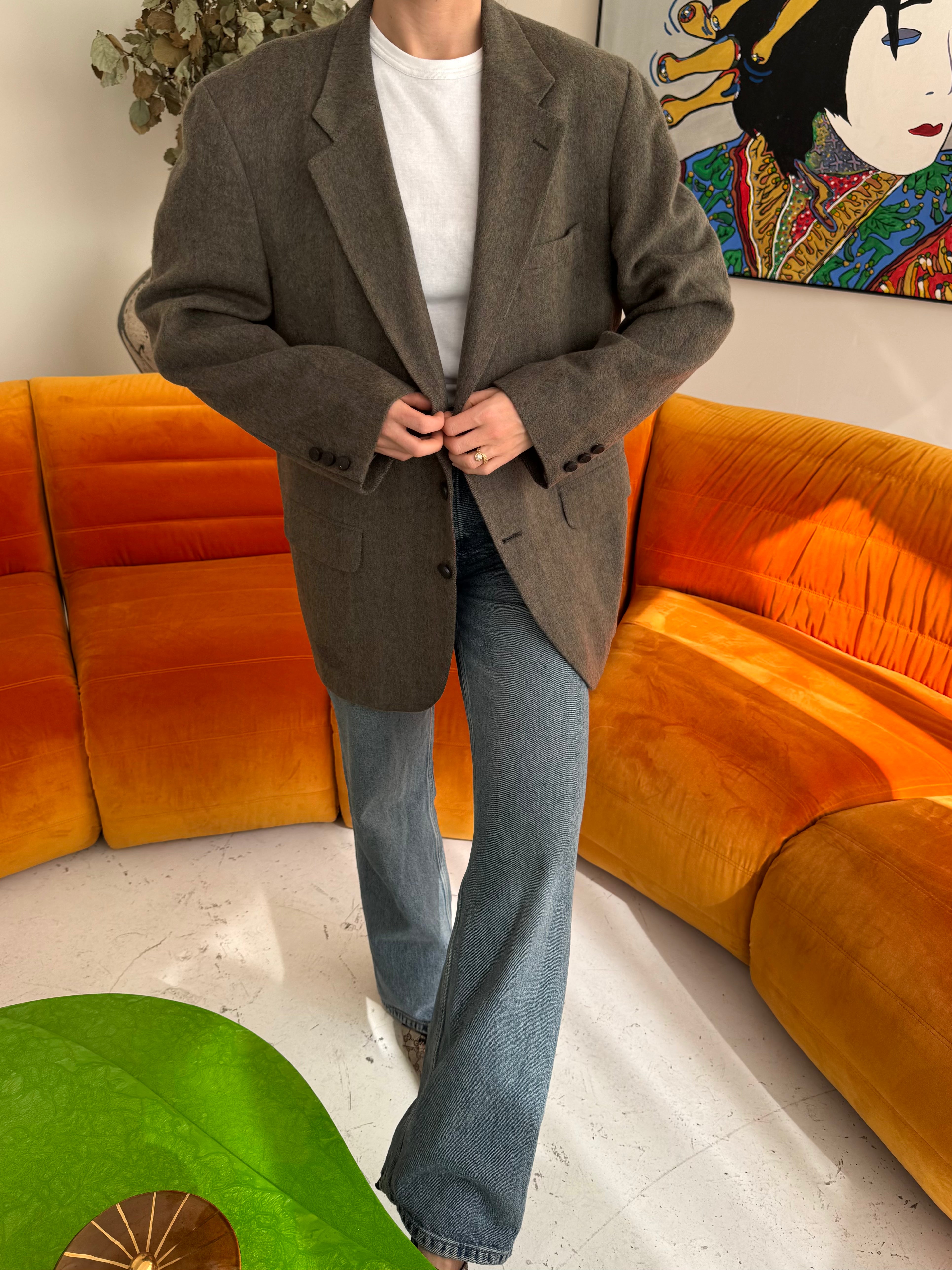 Beautiful vintage men’s blazer, perfect for all occasions and always super versatile. Wear it with jeans or on its own, day time or evening. Carefully curated, tailored and dry cleaned. Beautiful quality, and always made from silk, cashmere, cotton or wool. This piece is zero waste and is up cycled to prolong its lifespan. Carefully curated, professionally tailored and professionally dry-cleaned. Dry-clean only.