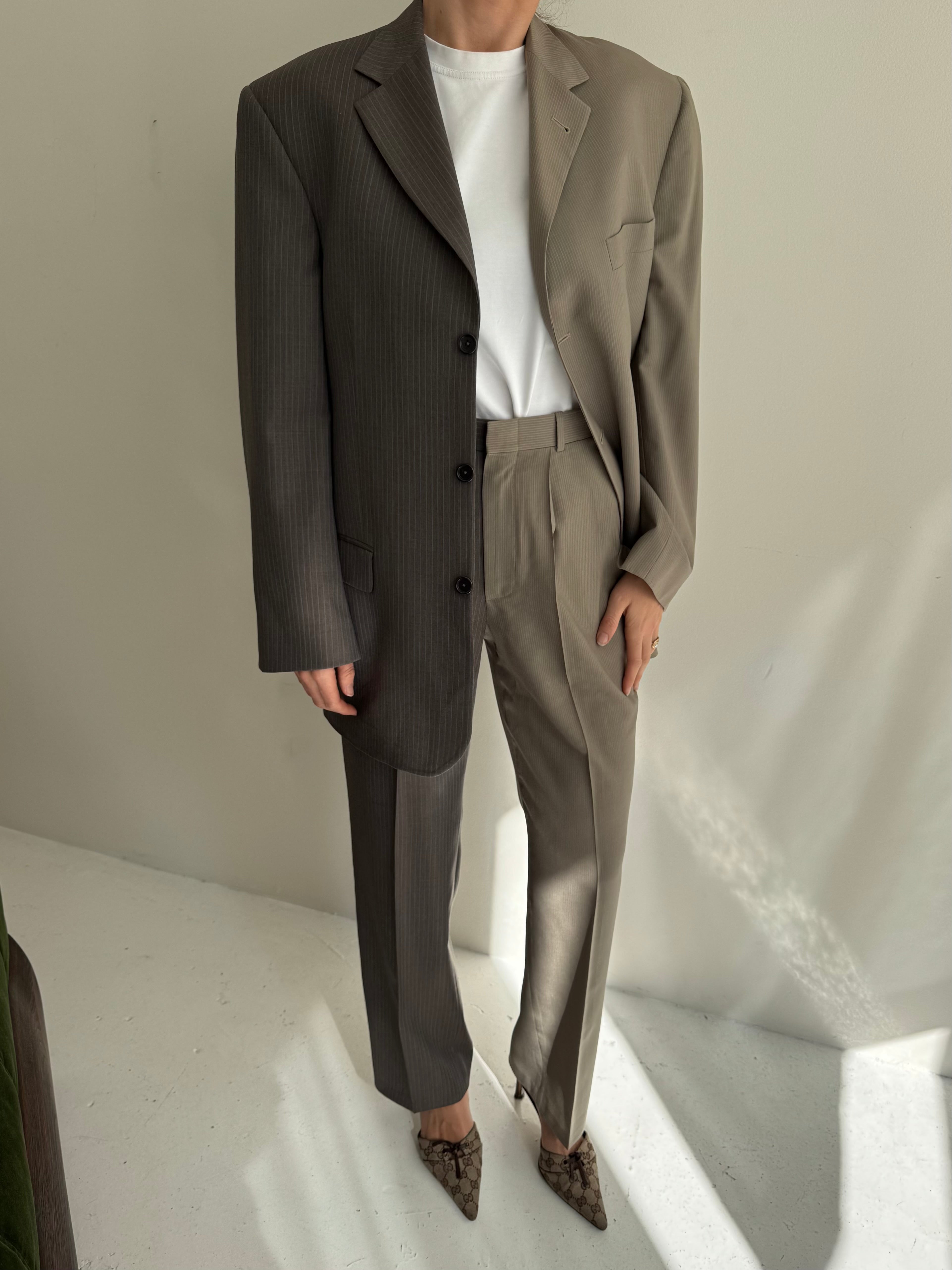 Beautiful vintage suit, carefully curated and handpicked. This piece is zero waste and is up cycled to prolong its lifespan. Carefully curated, professionally tailored and professionally dry-cleaned. Wear each piece separately or together and dress it up or down. Dry clean only.