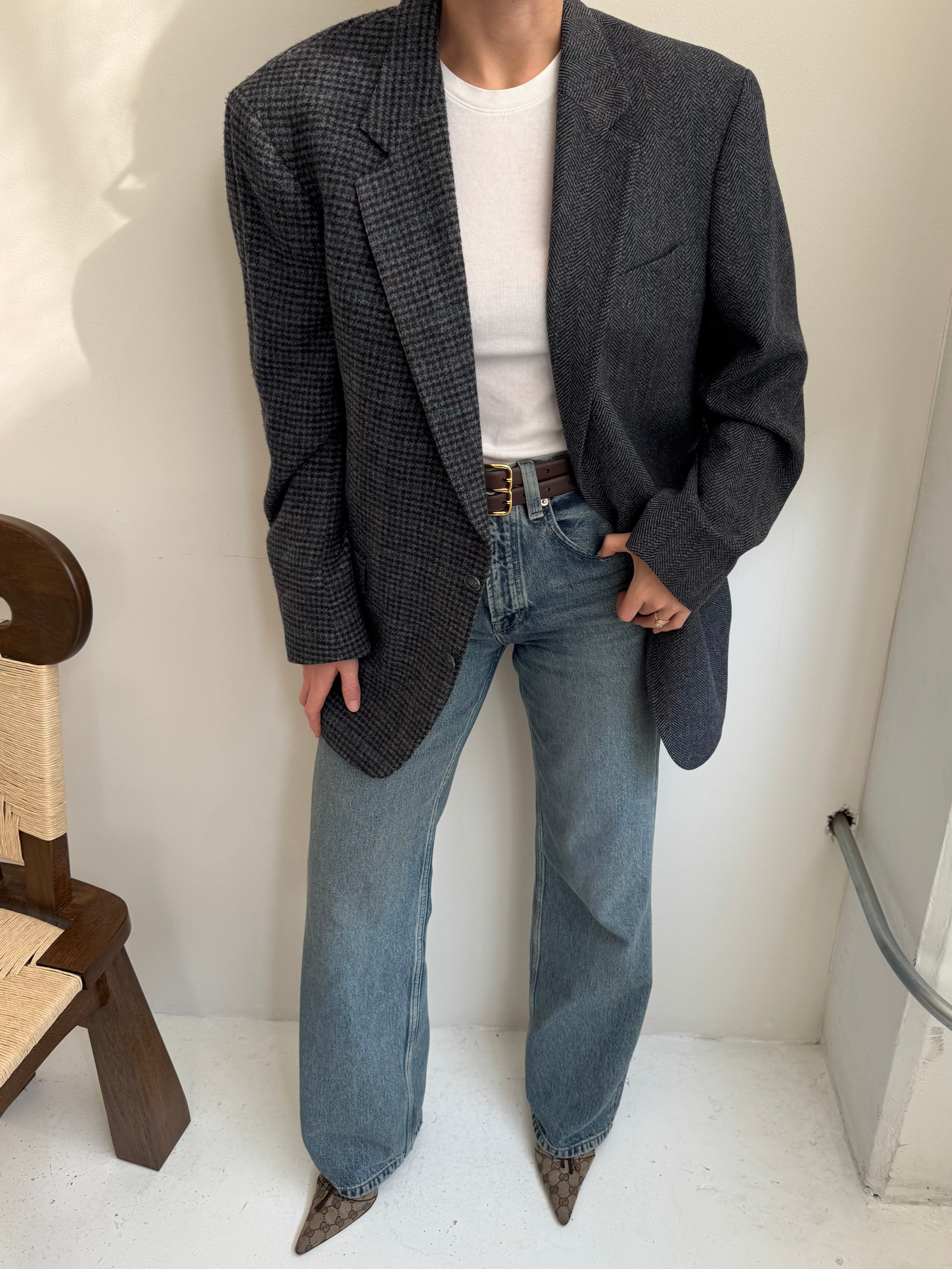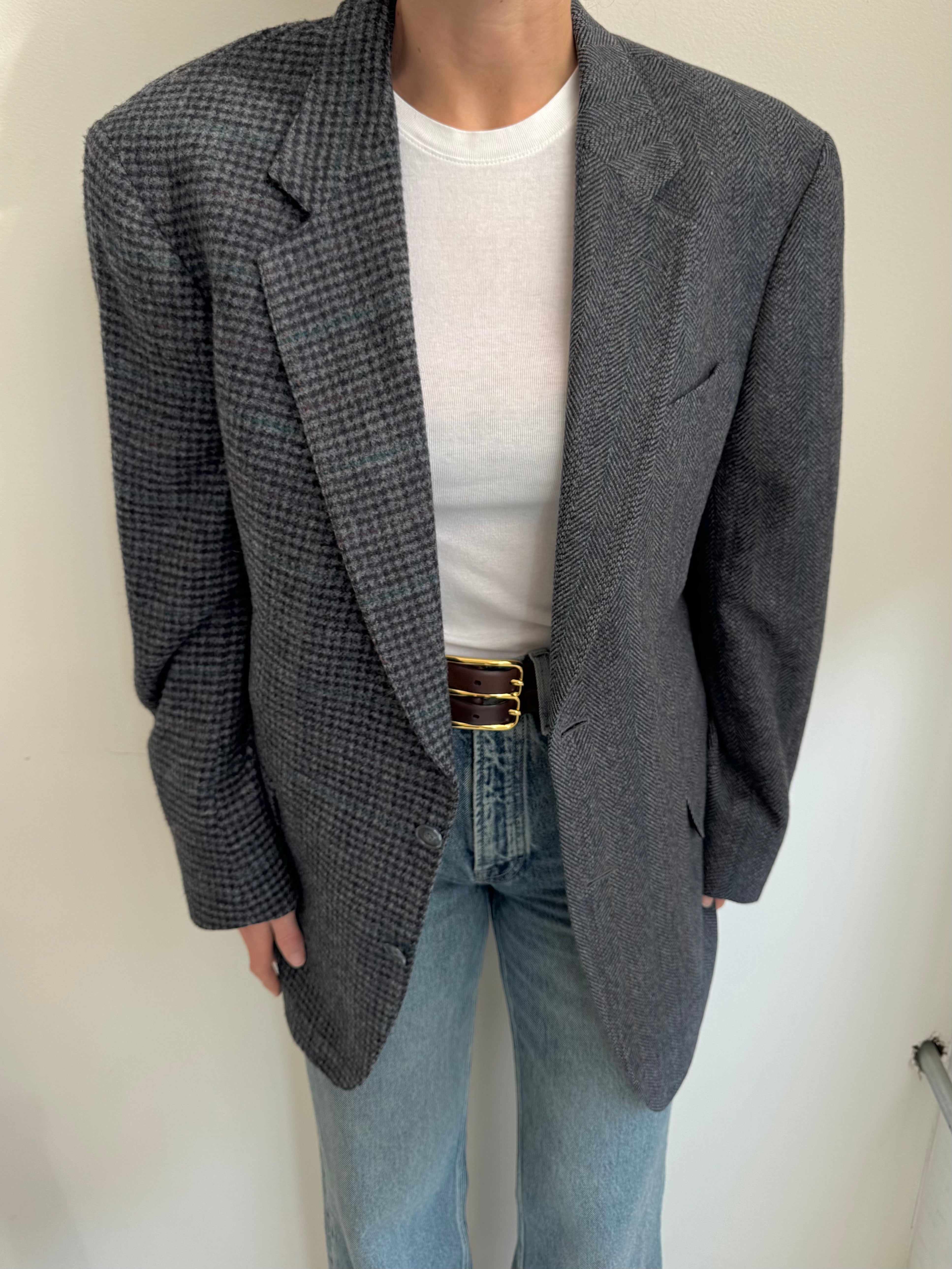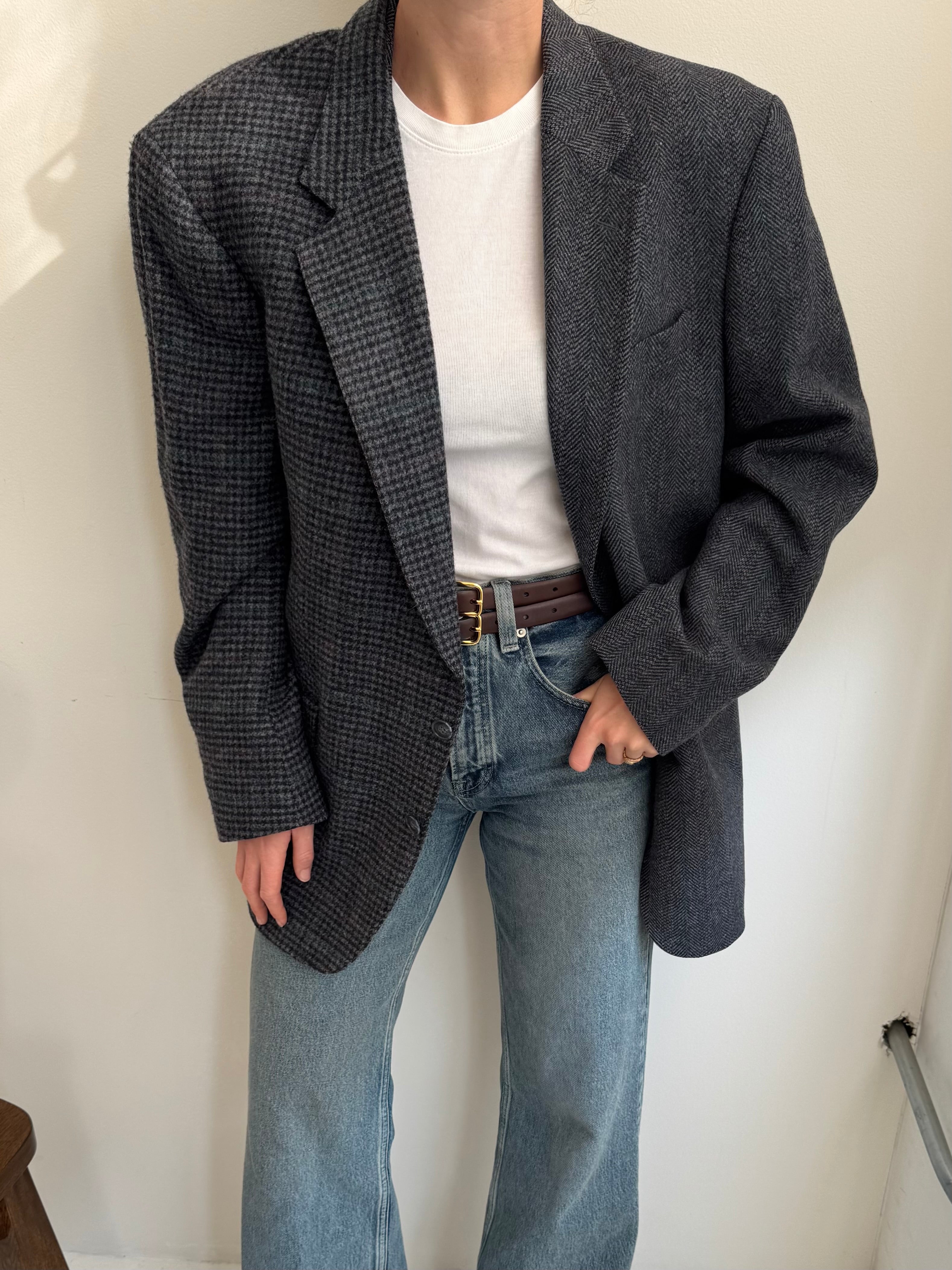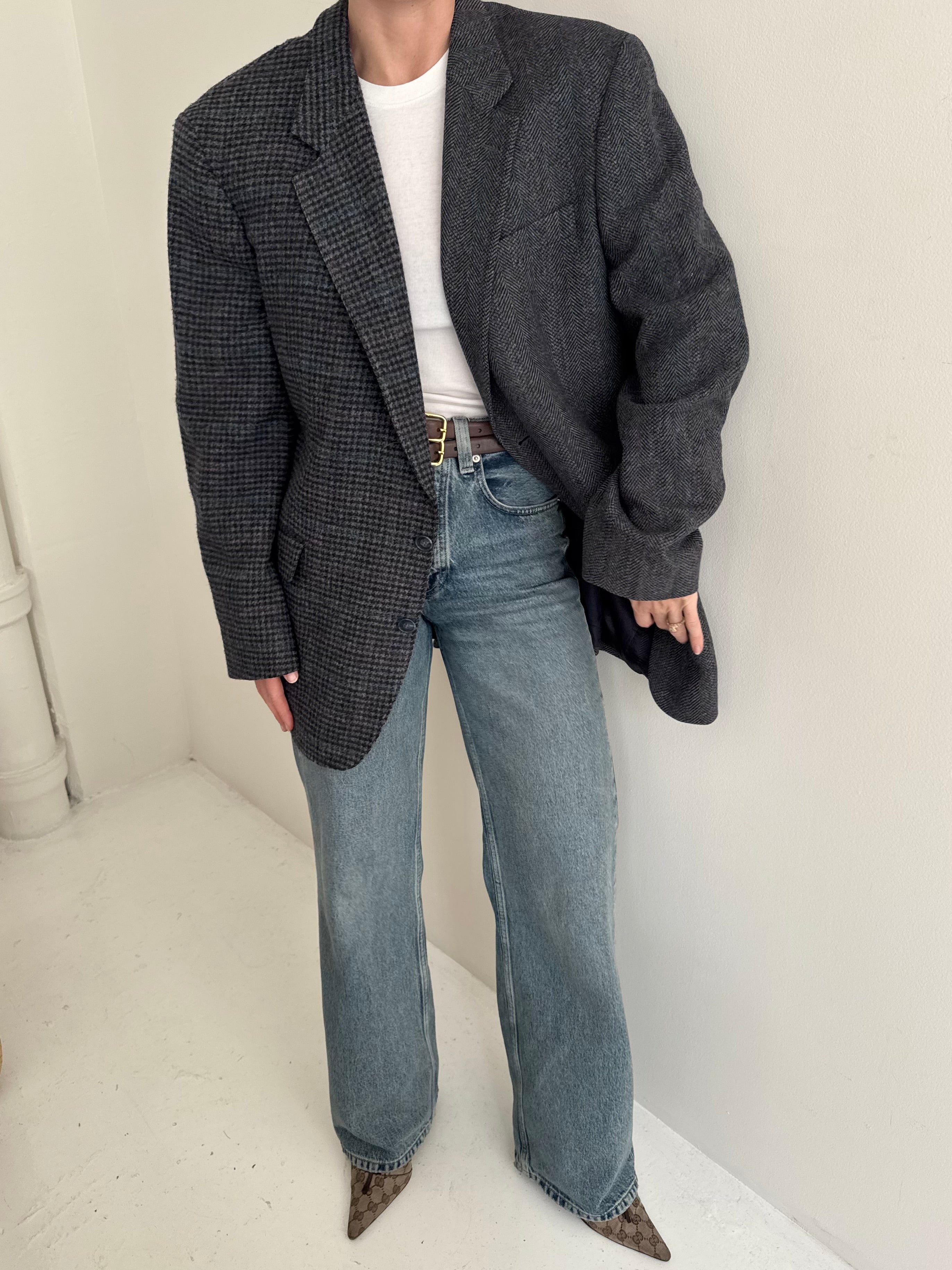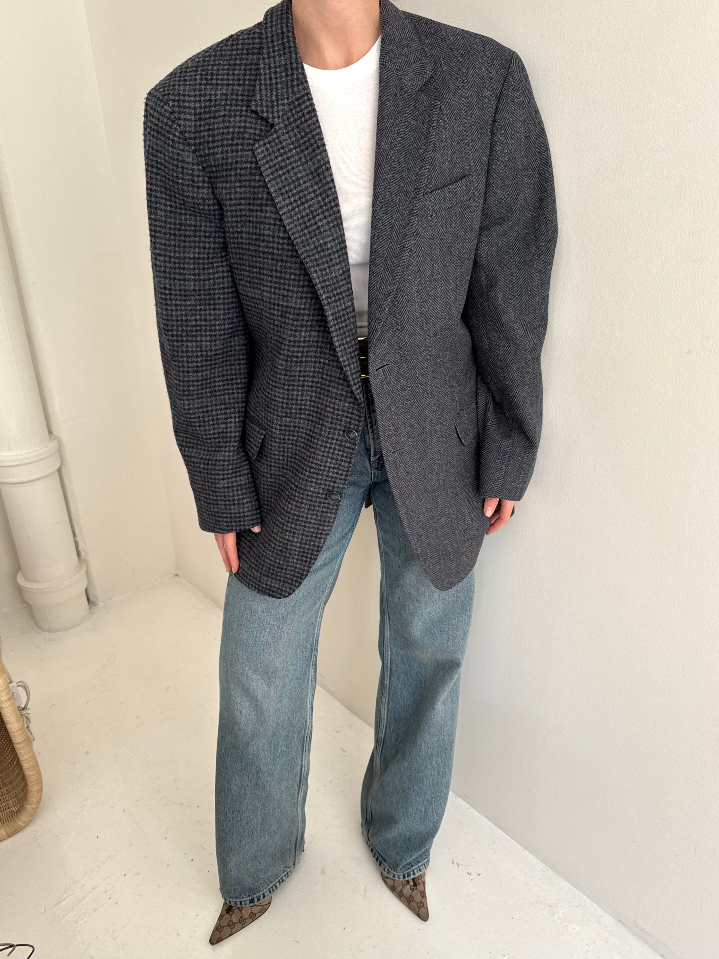 A match made in heaven. Two carefully sourced vintage blazers, made into one, adding a twist to the classic and timeless oversized blazer. Perfect for all occasions and always super versatile. Wear it with jeans or on its own, daytime or evening. Carefully curated, tailored and dry cleaned. Beautiful quality, and always made from silk, cashmere, cotton or wool. The sewing has been done well, however there may be slight differences in length/shoulder, as the jacket is made from two recycled blazers.