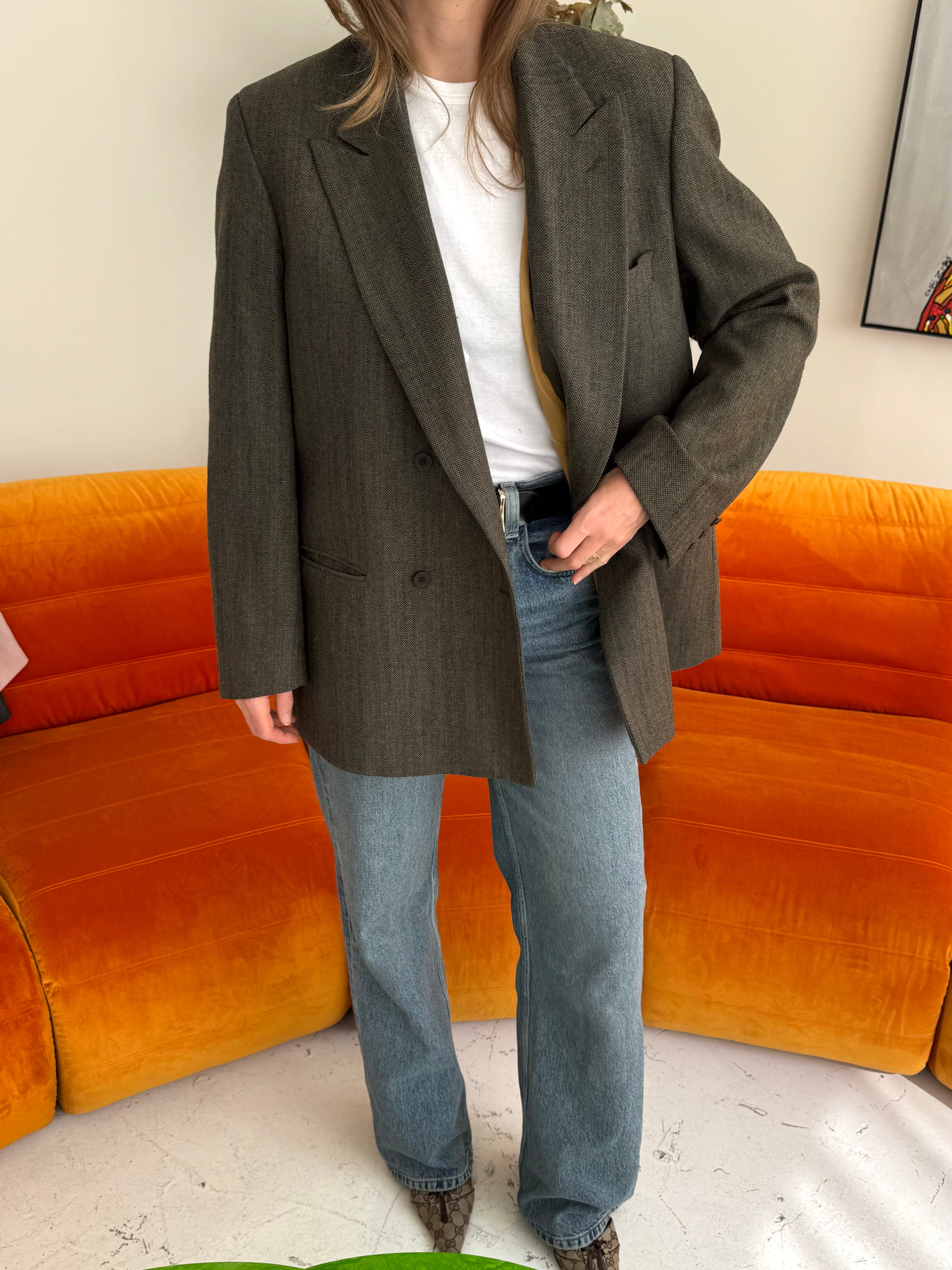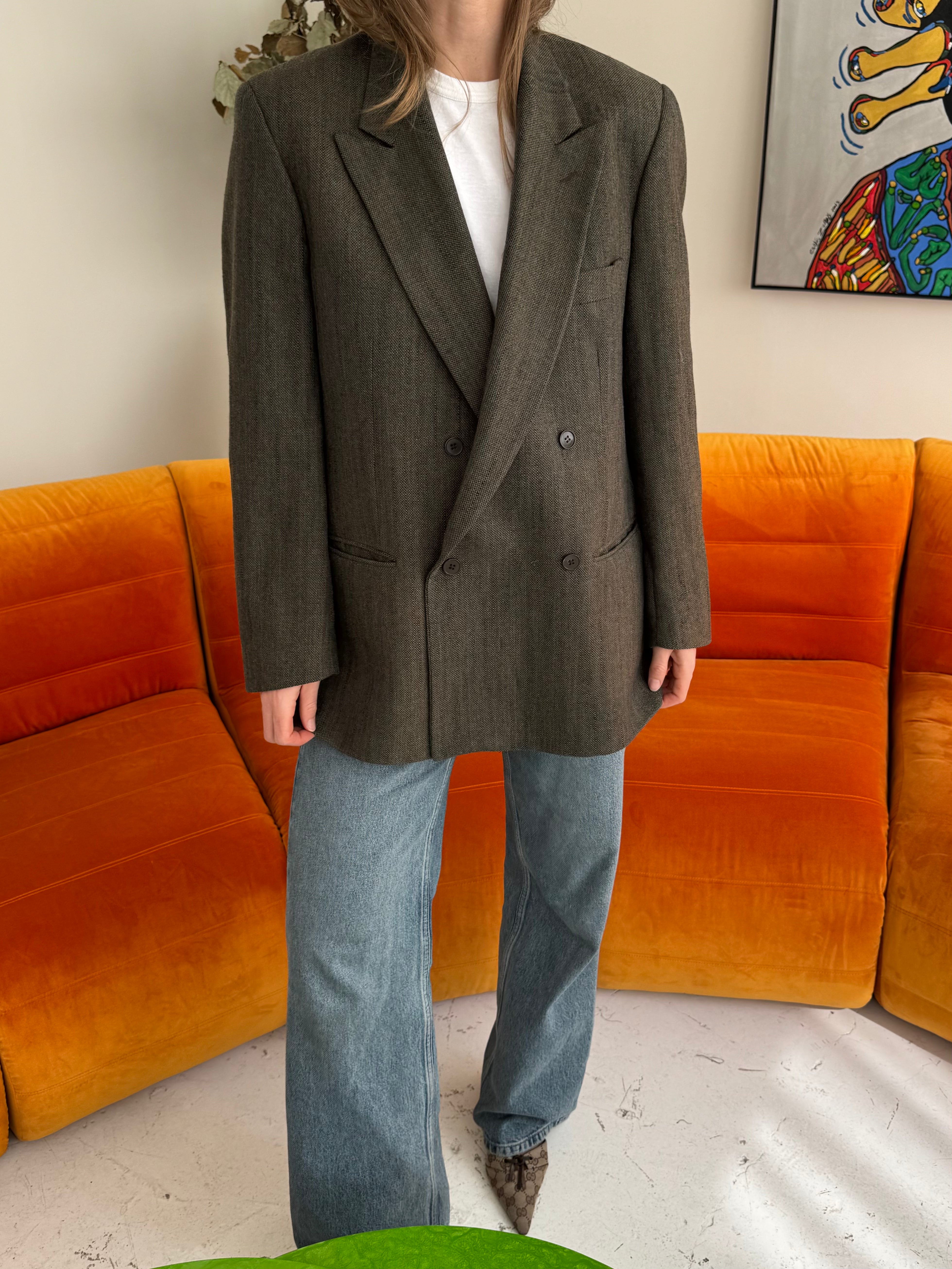 Green wool button back blazer
