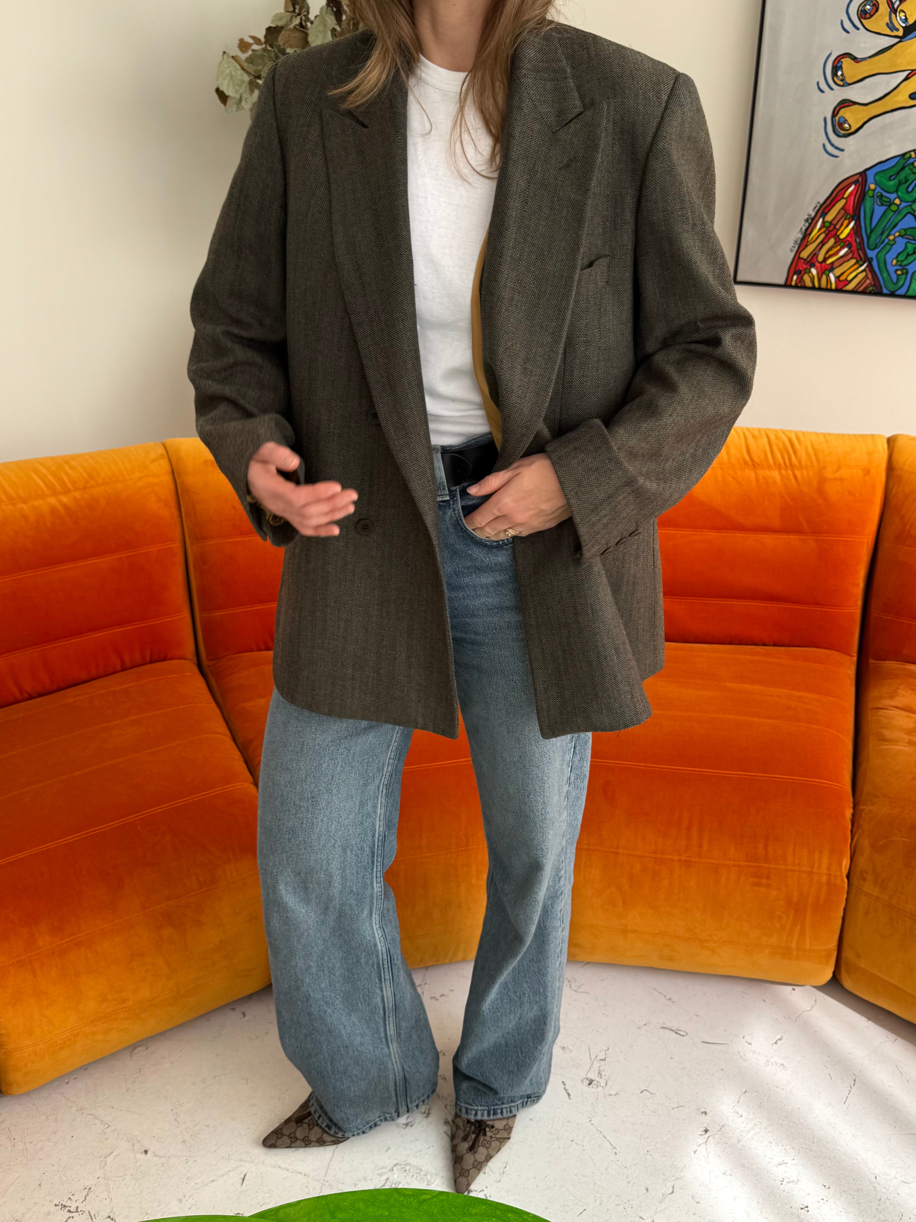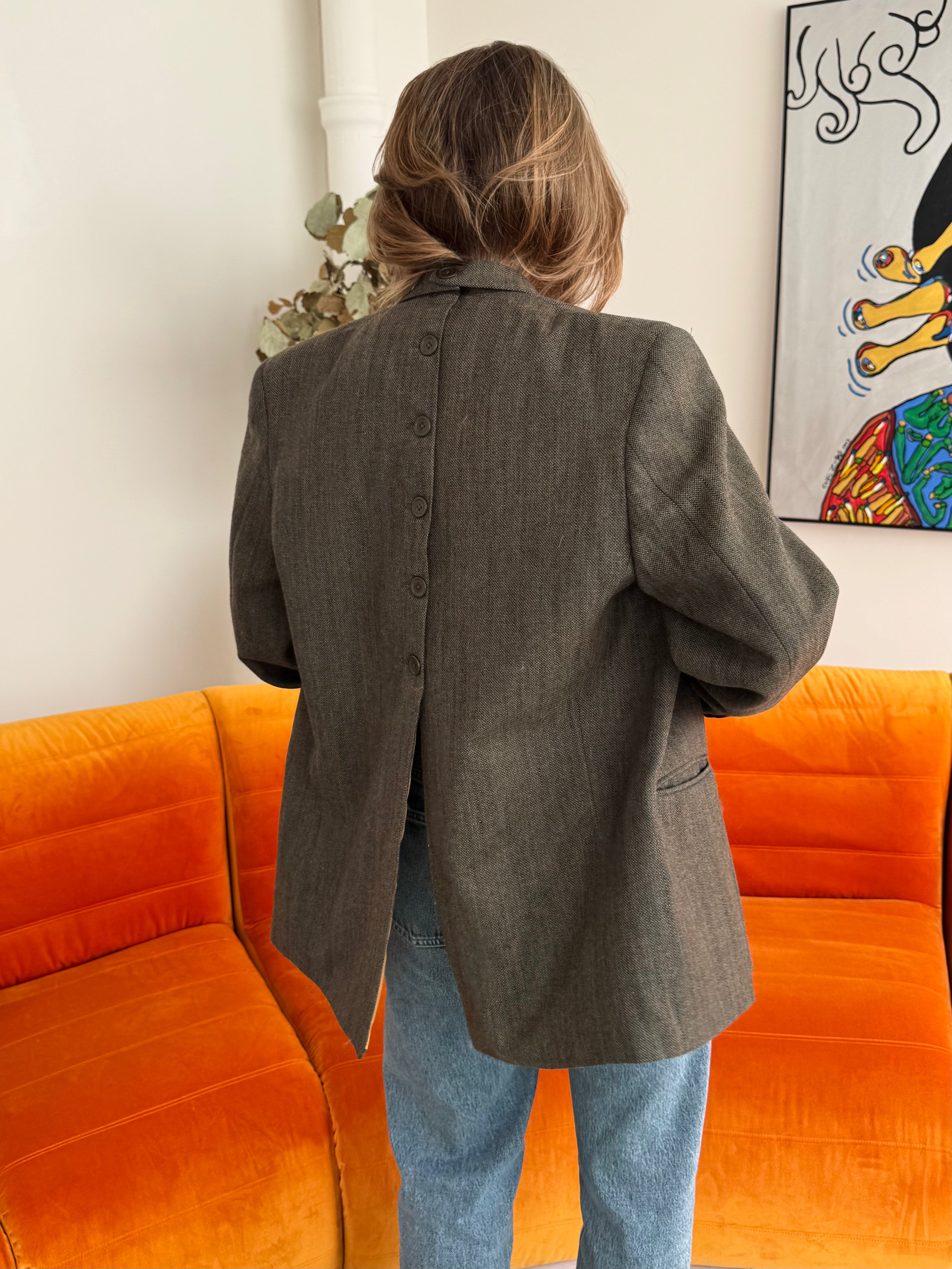 Havre Studio's button back blazer pushes all the right buttons loosening up traditional men's tailoring with some innovative Scandinavian finesse and versatility. Beautifully crafted from a vintage mens blazer, and up-cycled meticulously.