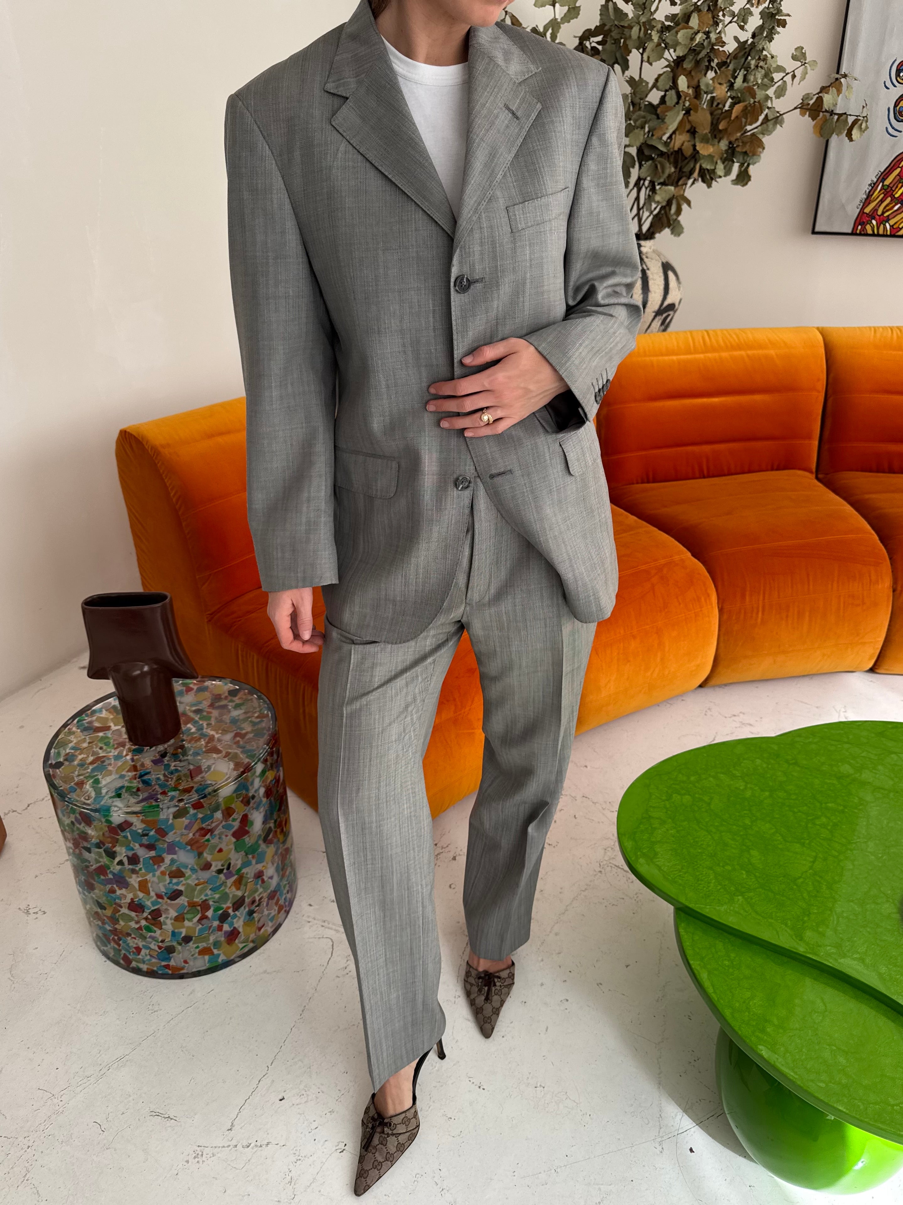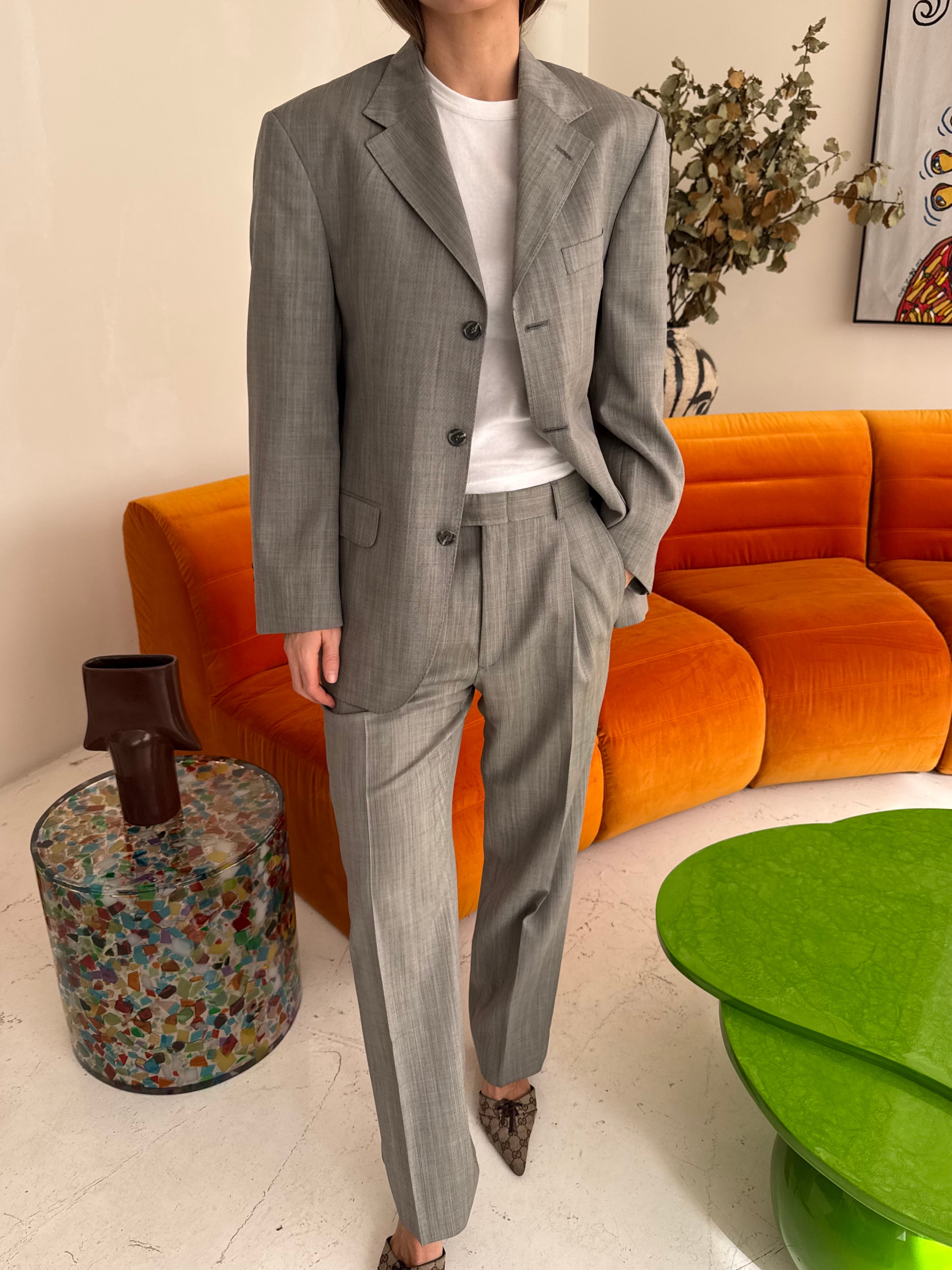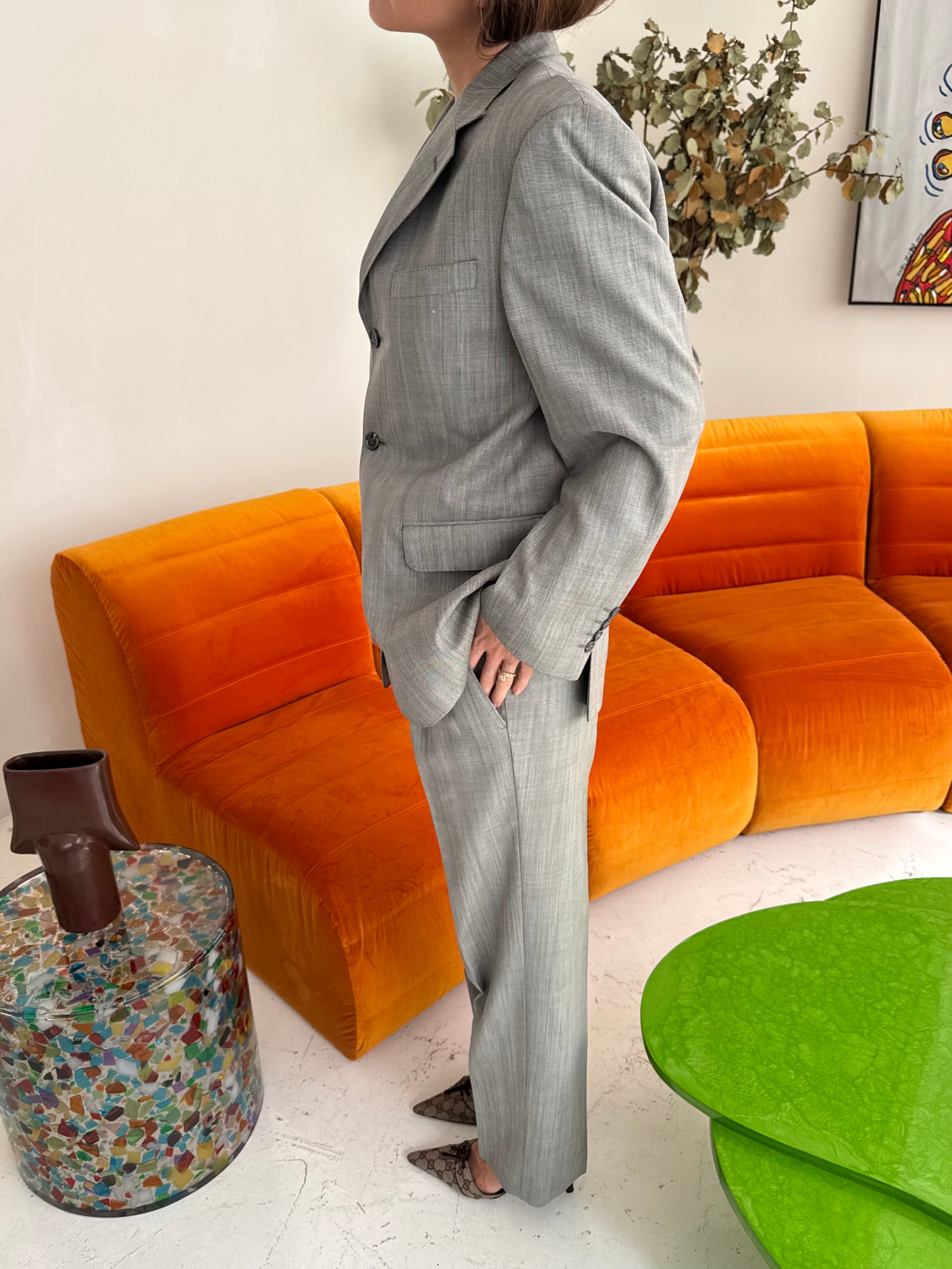 Beautiful vintage suit, carefully curated and handpicked. This piece is zero waste and is up cycled to prolong its lifespan. Carefully curated, professionally tailored and professionally dry-cleaned. Wear each piece separately or together and dress it up or down. Dry clean only.