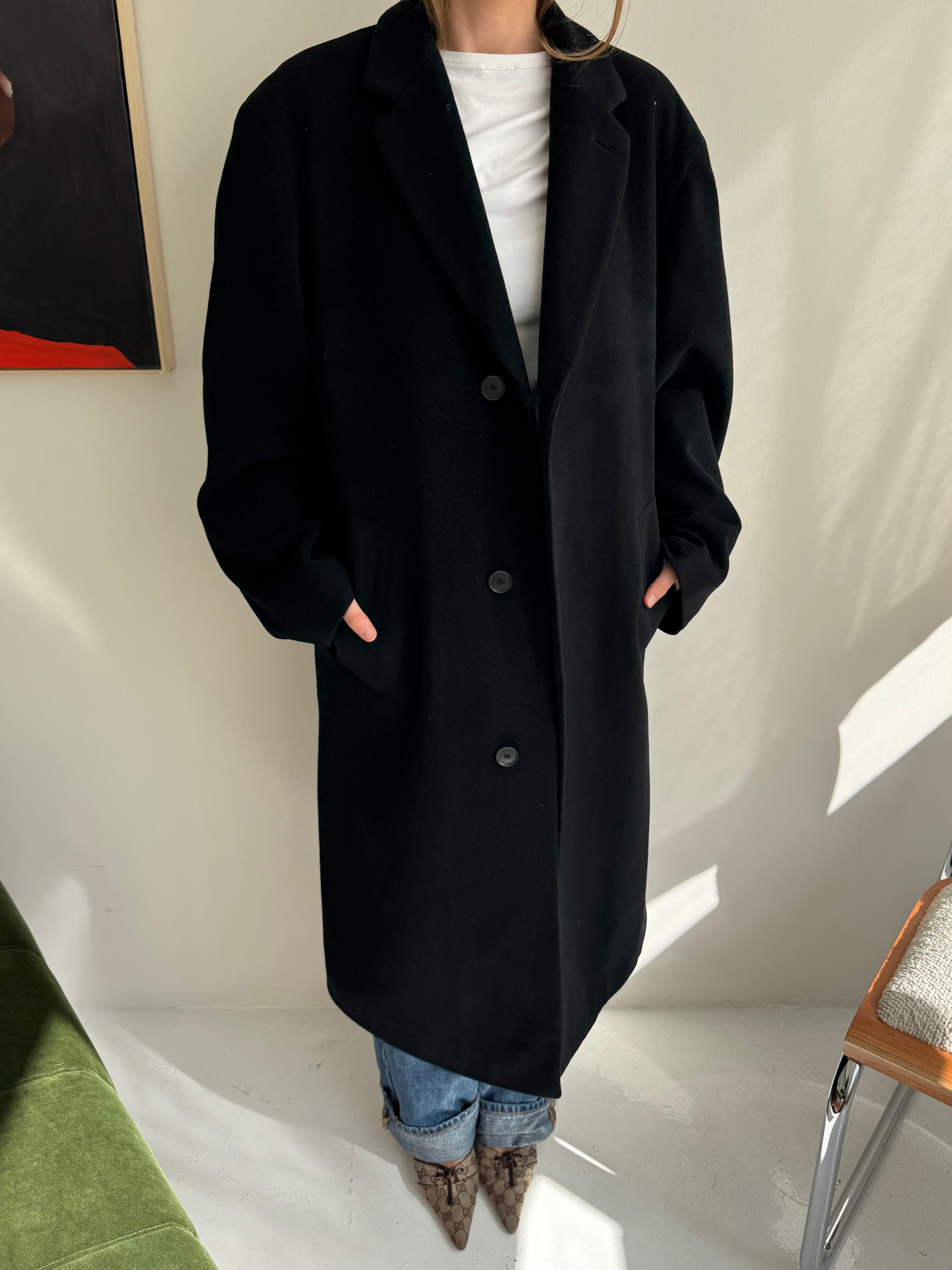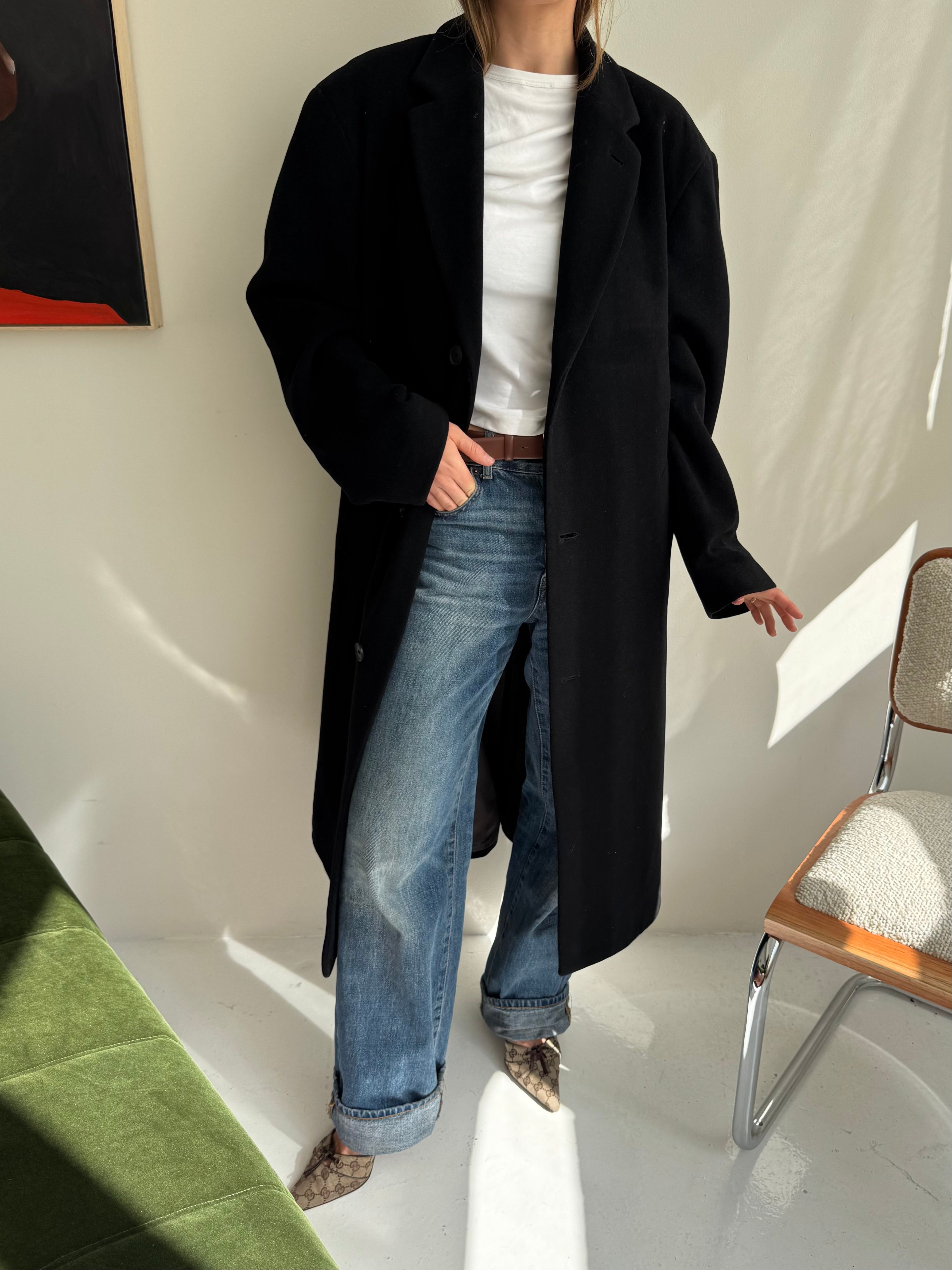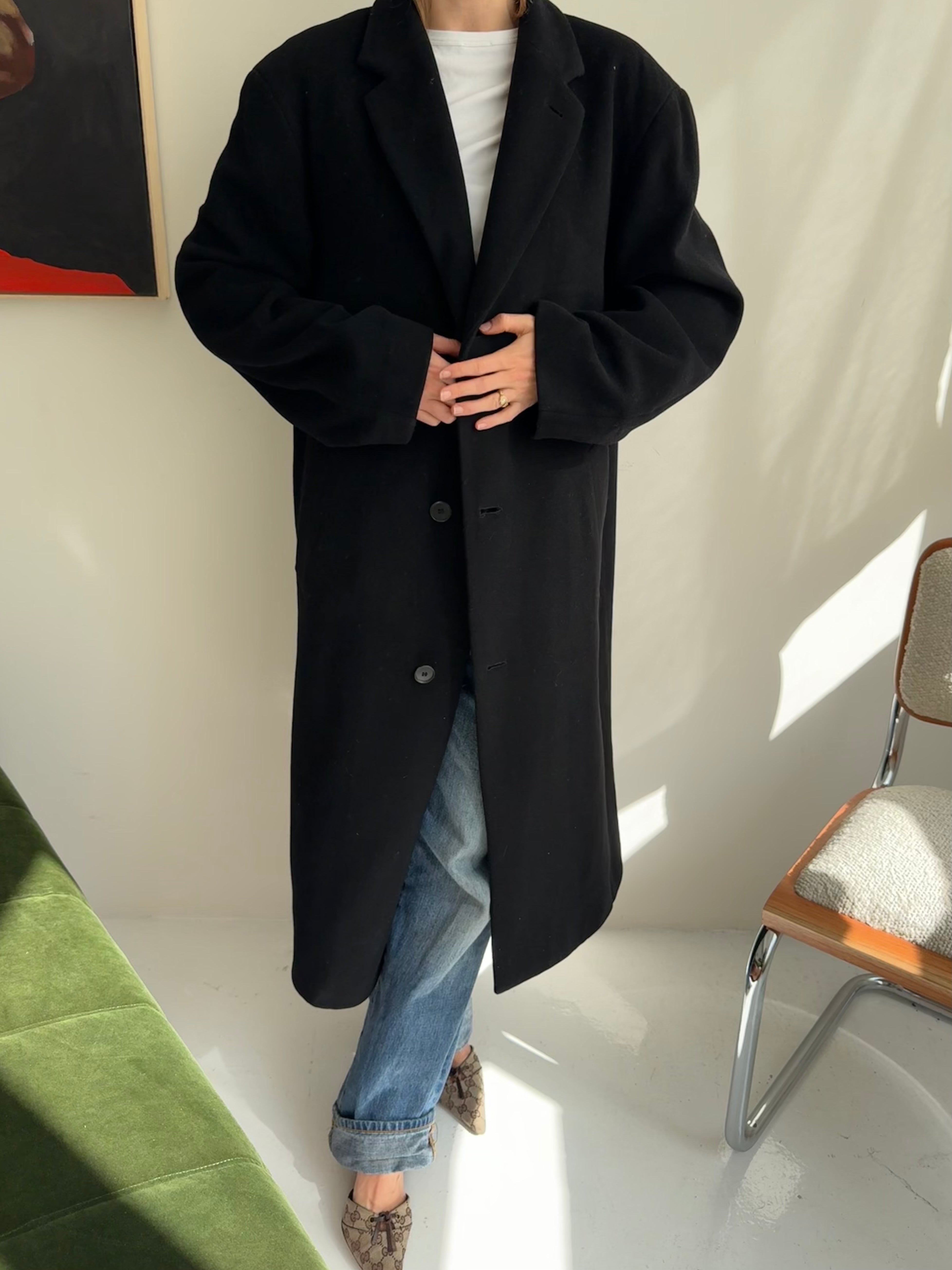 Introducing our take on the classic wardrobe staple, a heavy long coat. This piece is constructed into oversized fit on the shoulders and flowy, non-restrictive silhouette. Crafted in heavy wool, cashmere or camelhair, these coats are made to stand the test of time and become an essential part of your wardrobe. Carefully curated, professionally tailored and professionally dry cleaned. Dry-clean only.