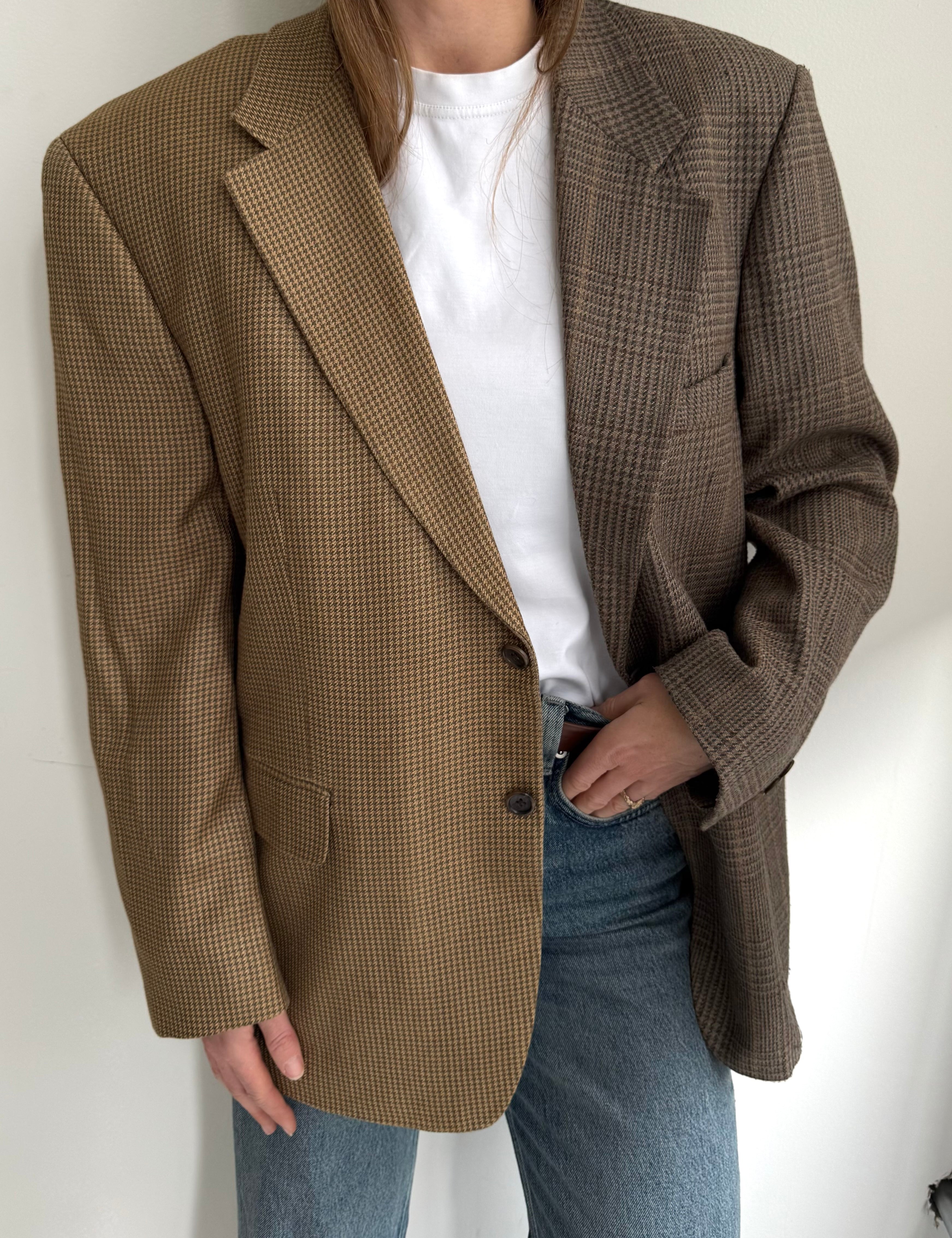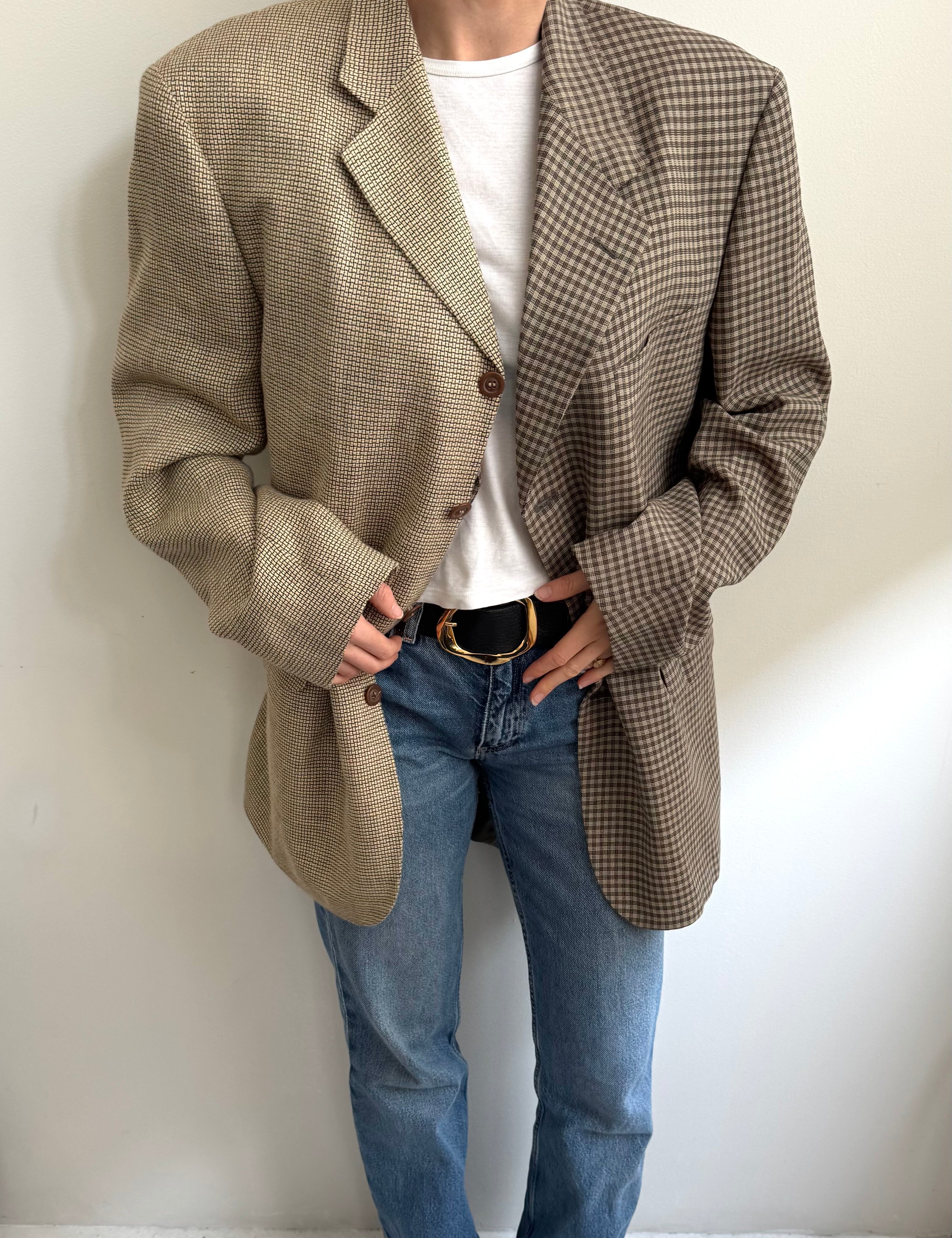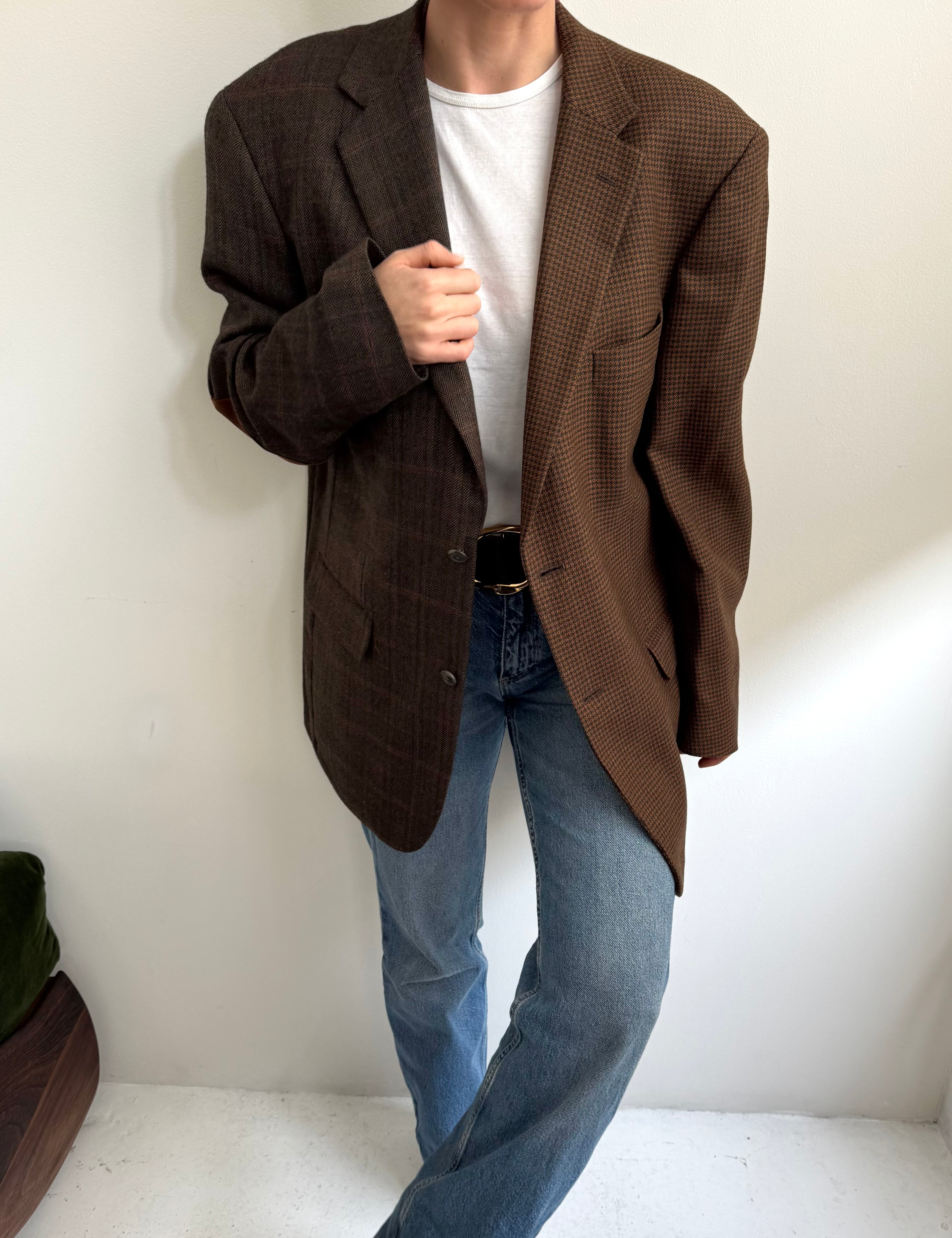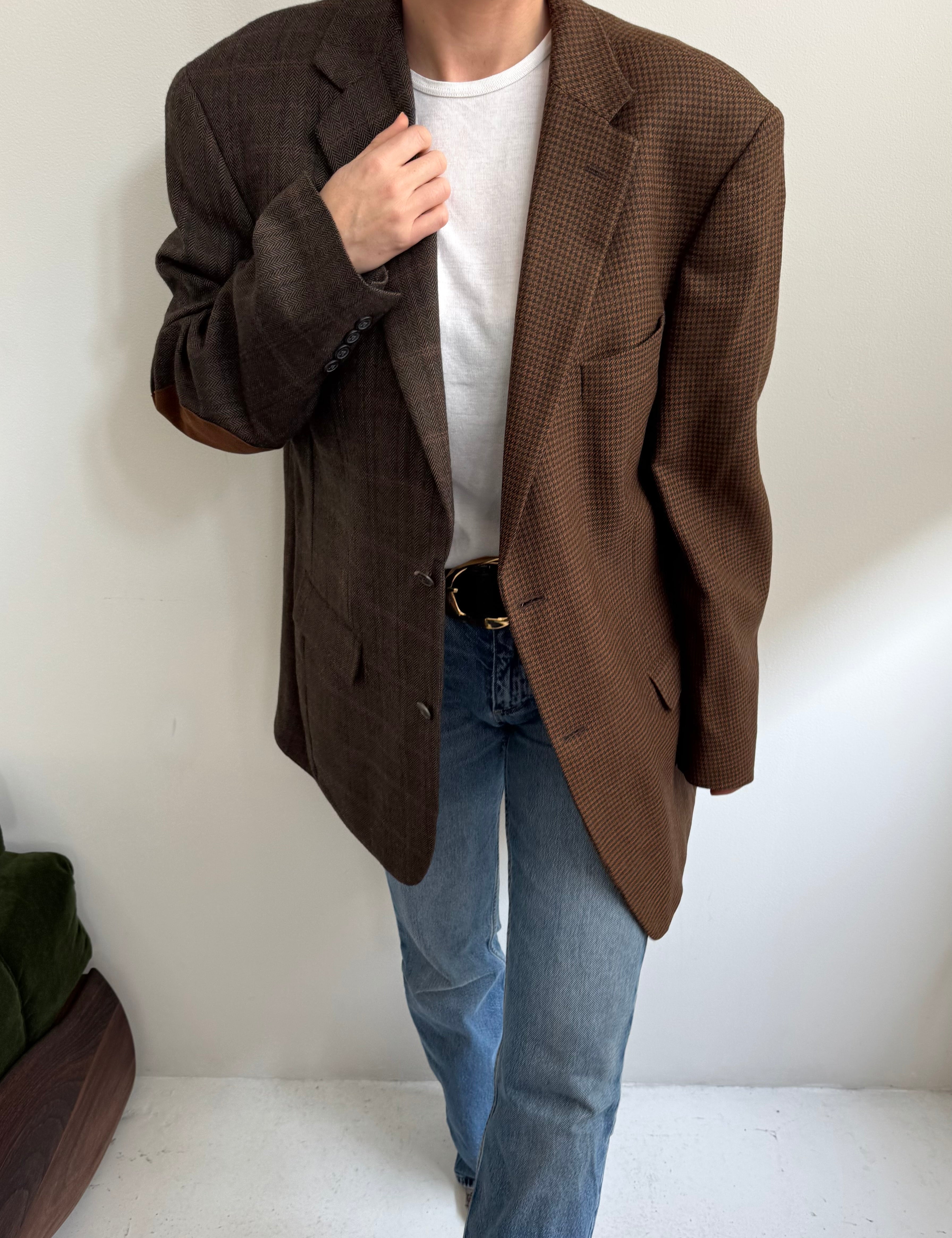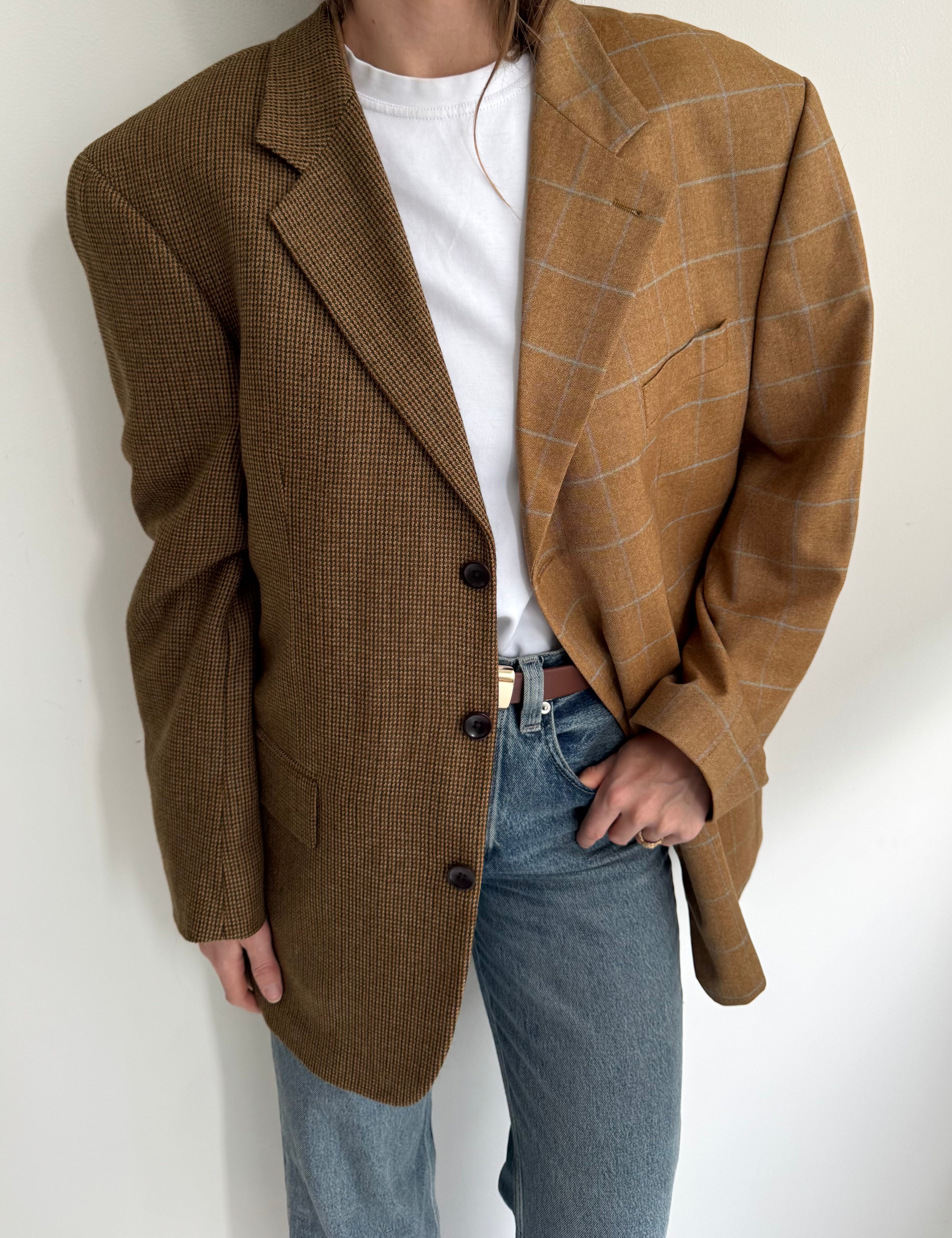 Golden houndstooth and pale brown herringbone two-toned blazer