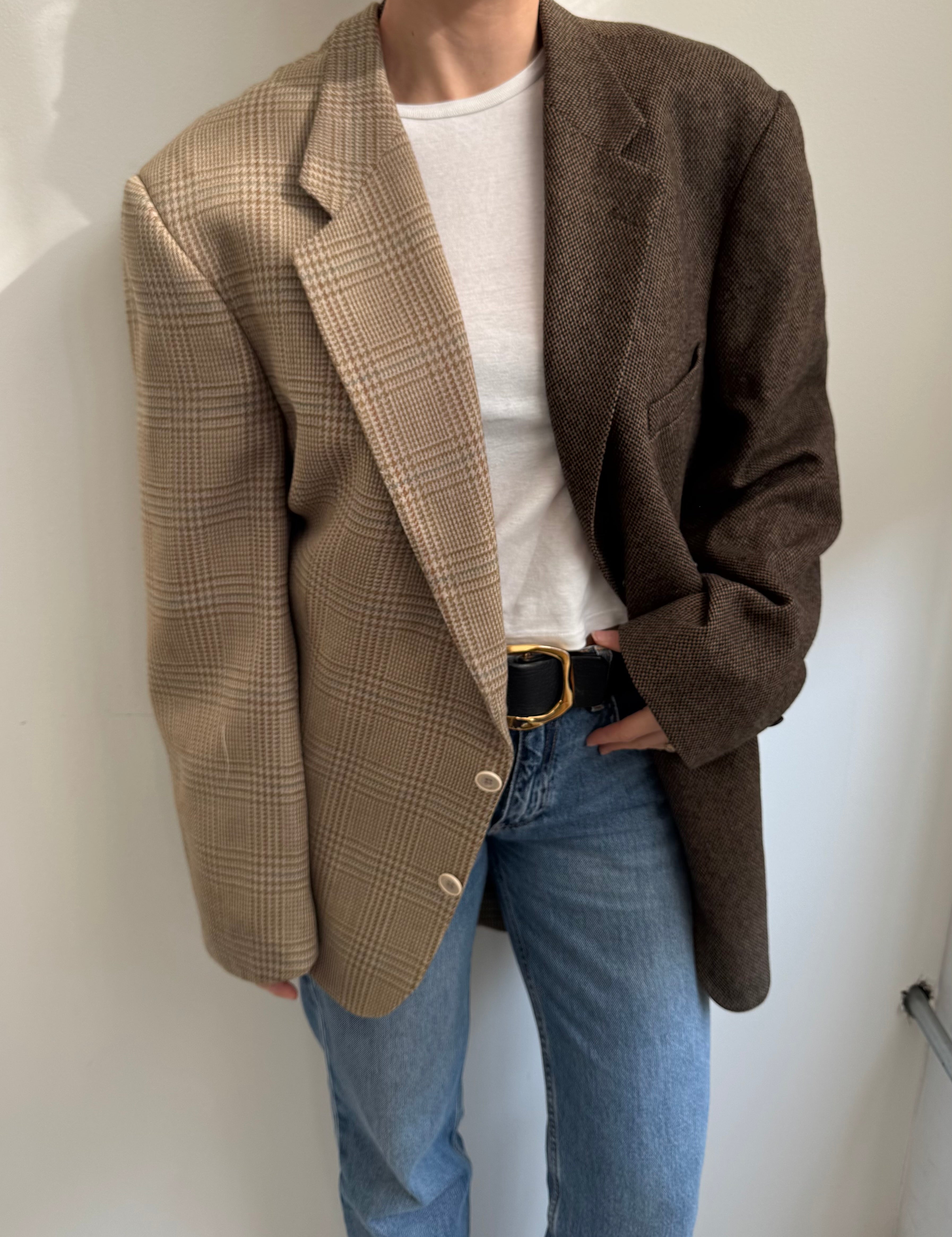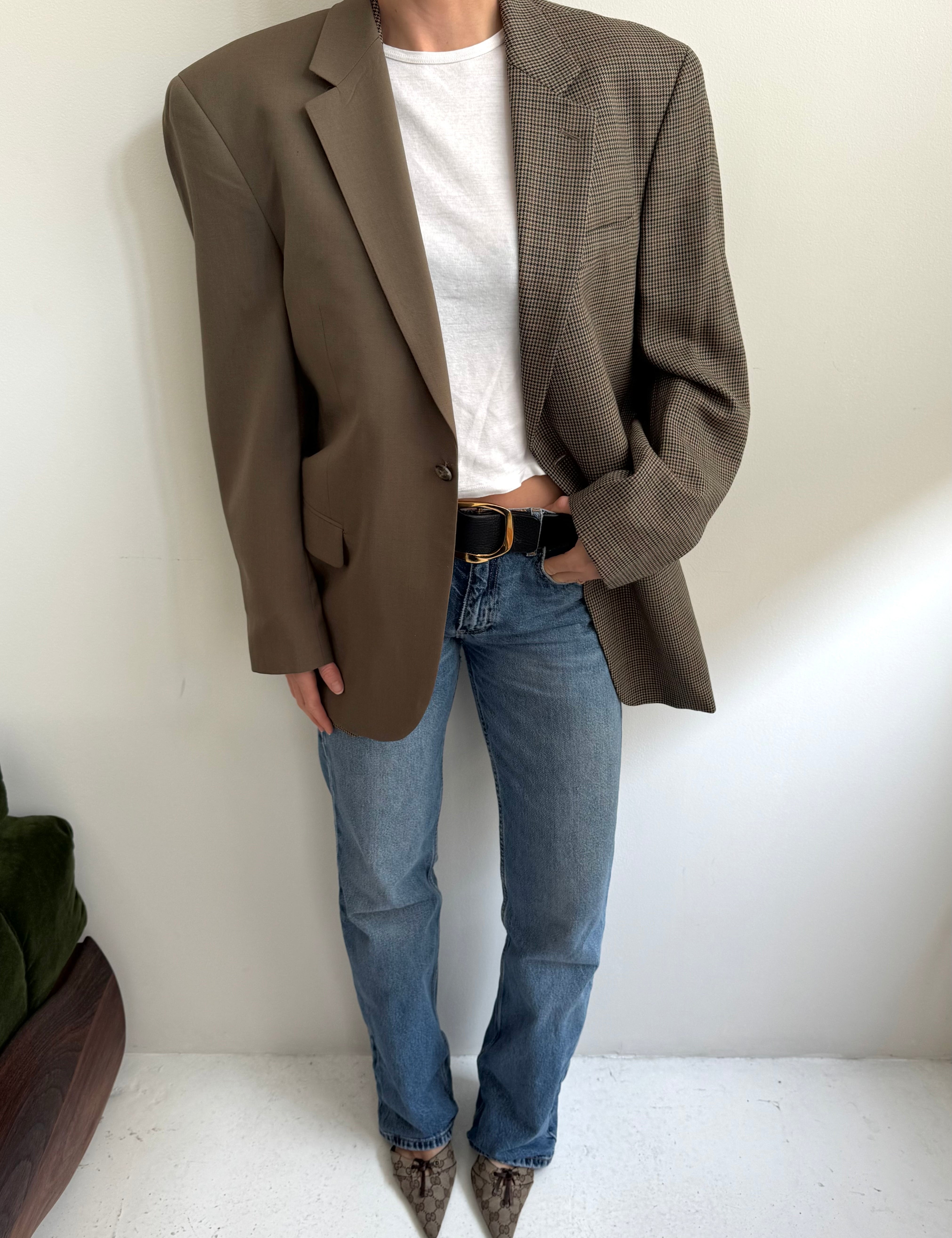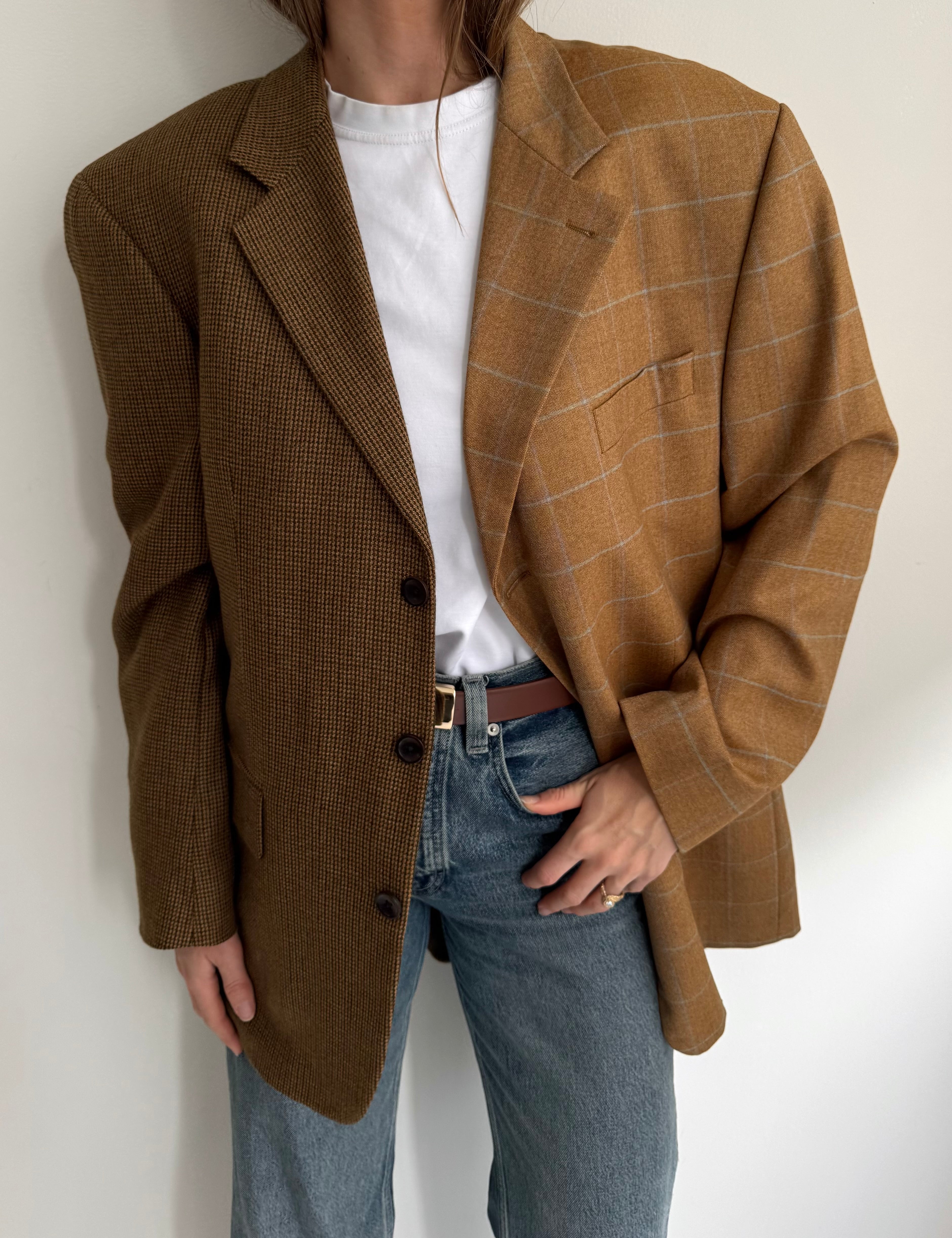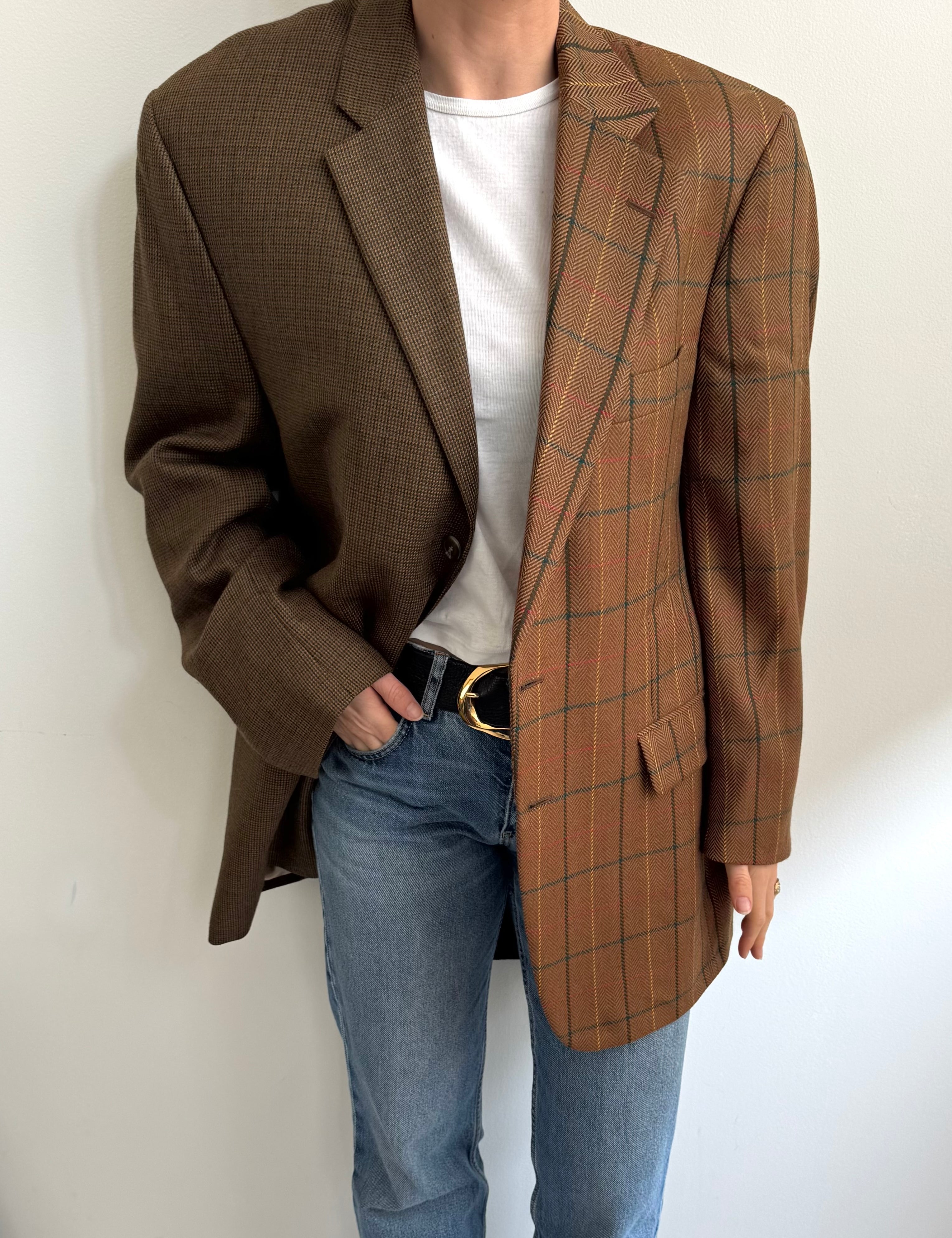 Golden houndstooth and pale brown herringbone two-toned blazer
