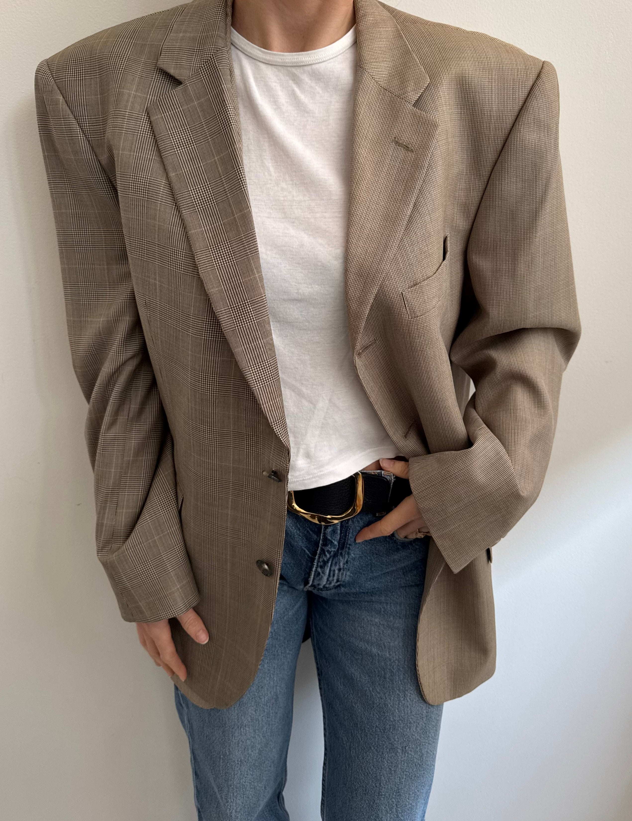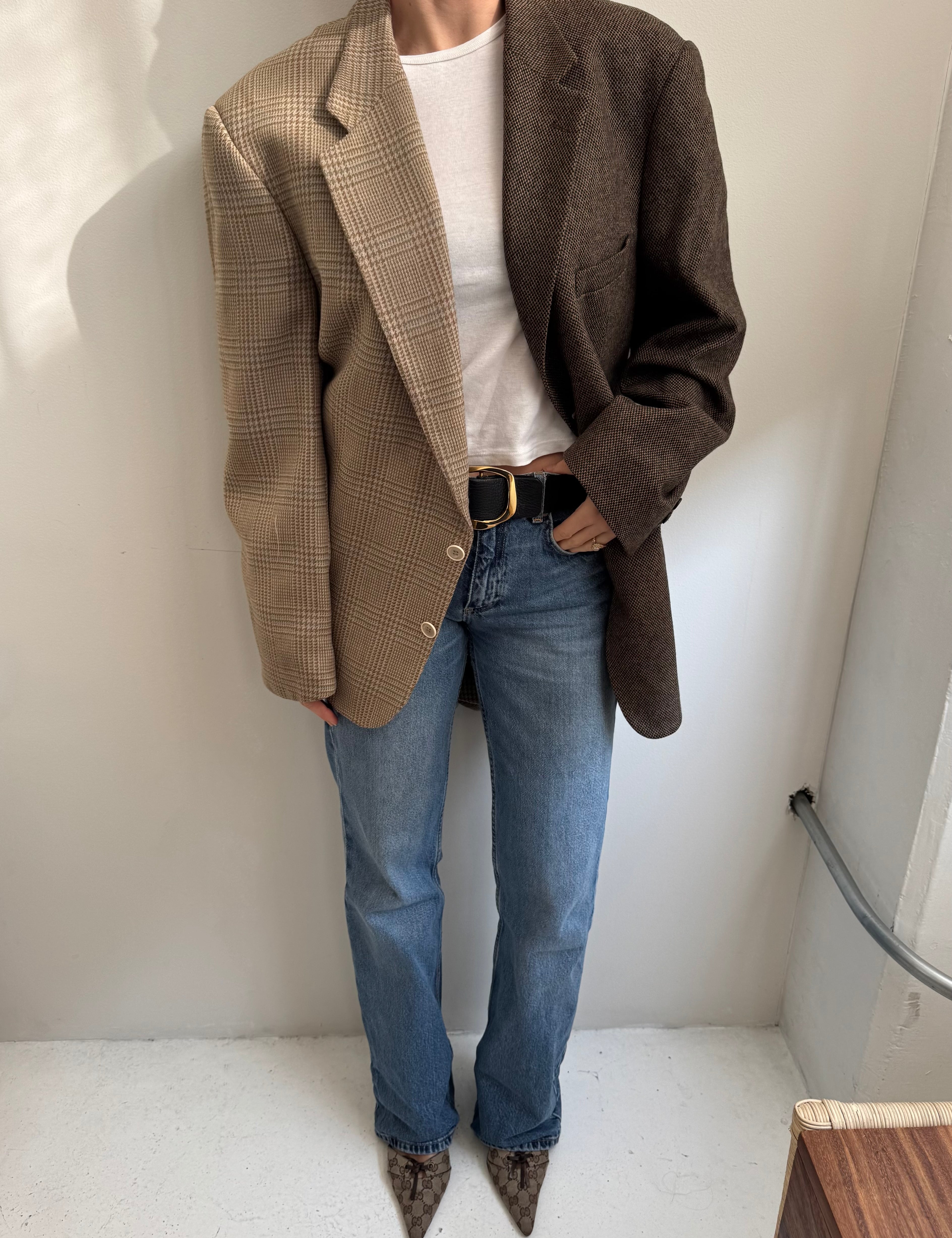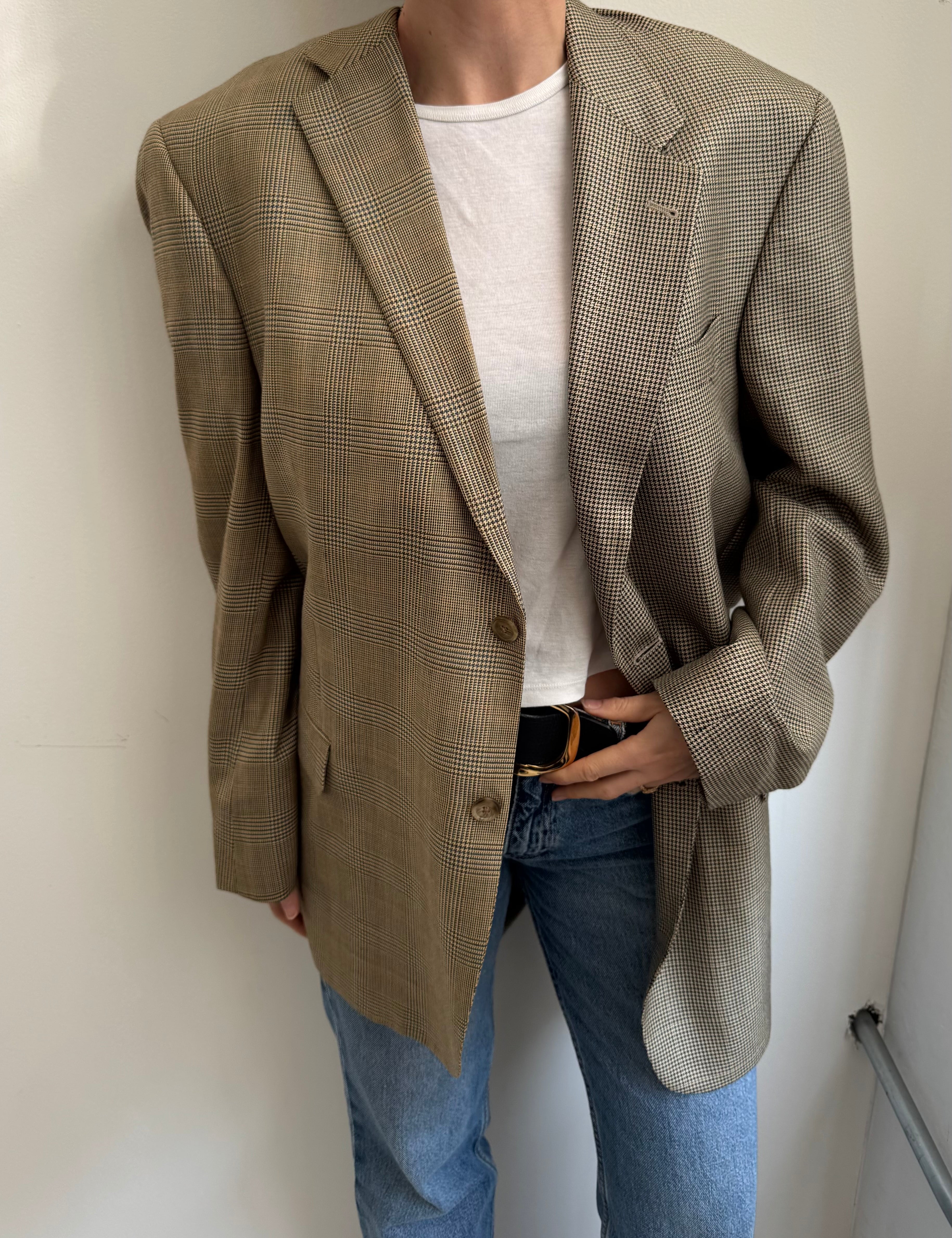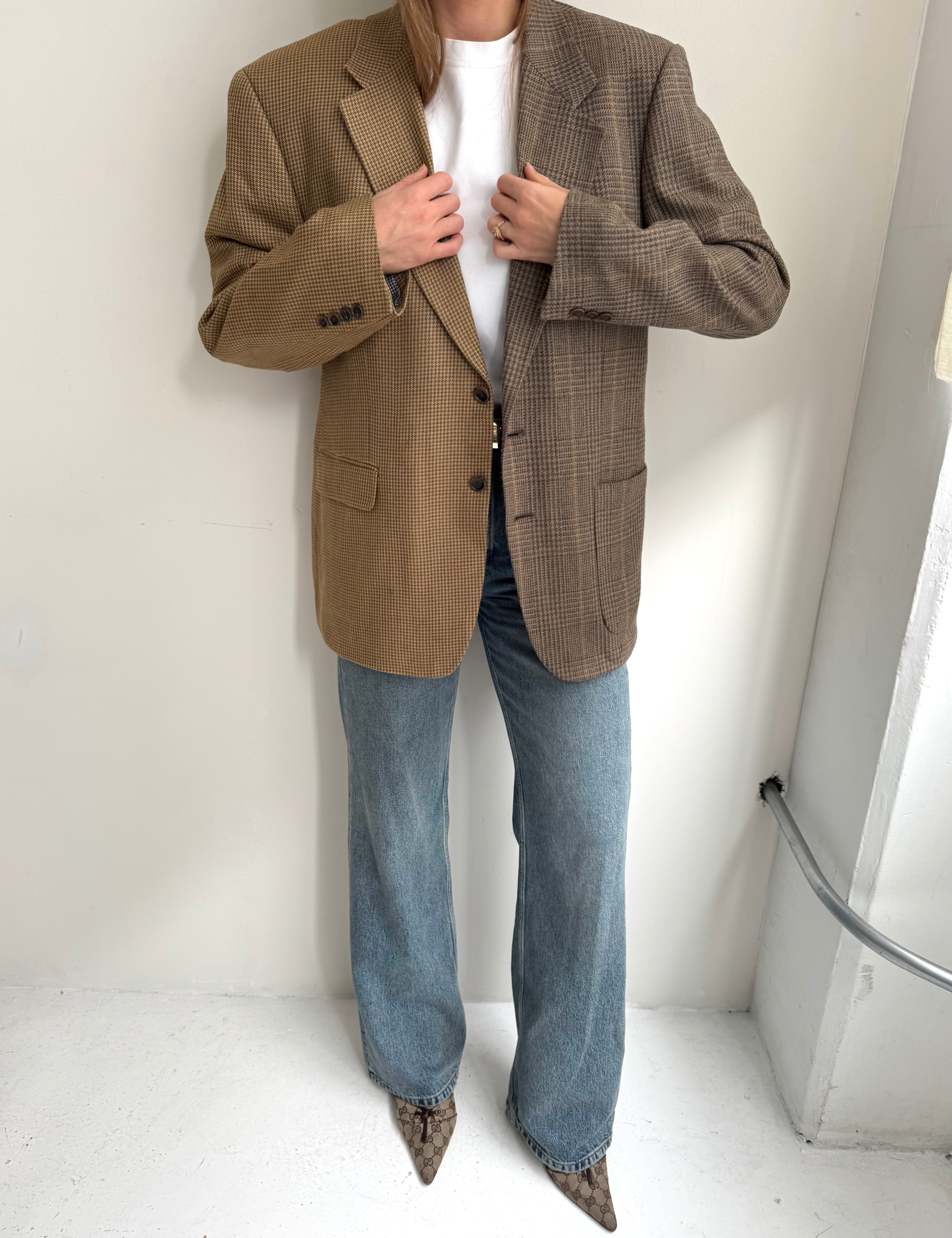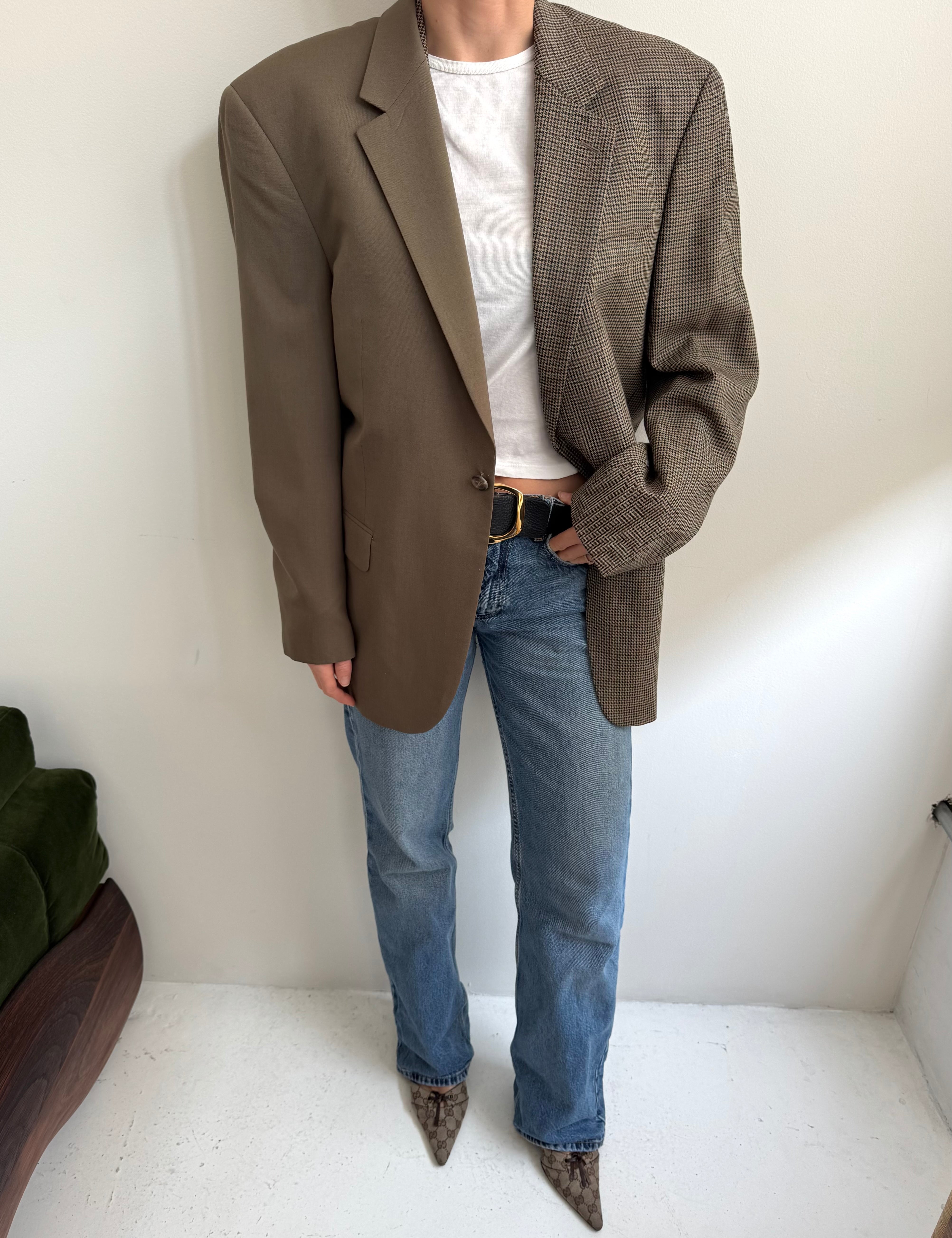 Golden houndstooth and pale brown herringbone two-toned blazer
