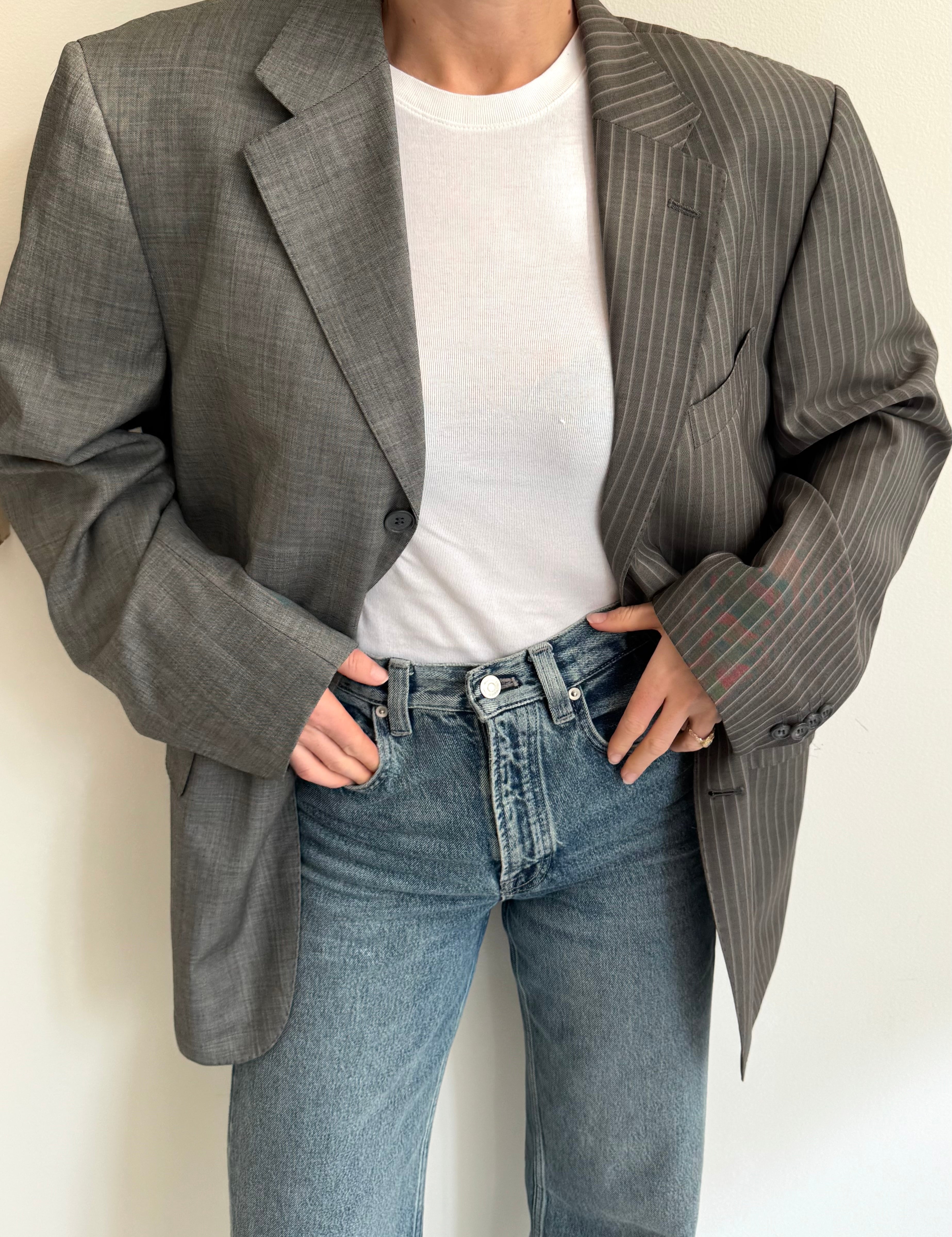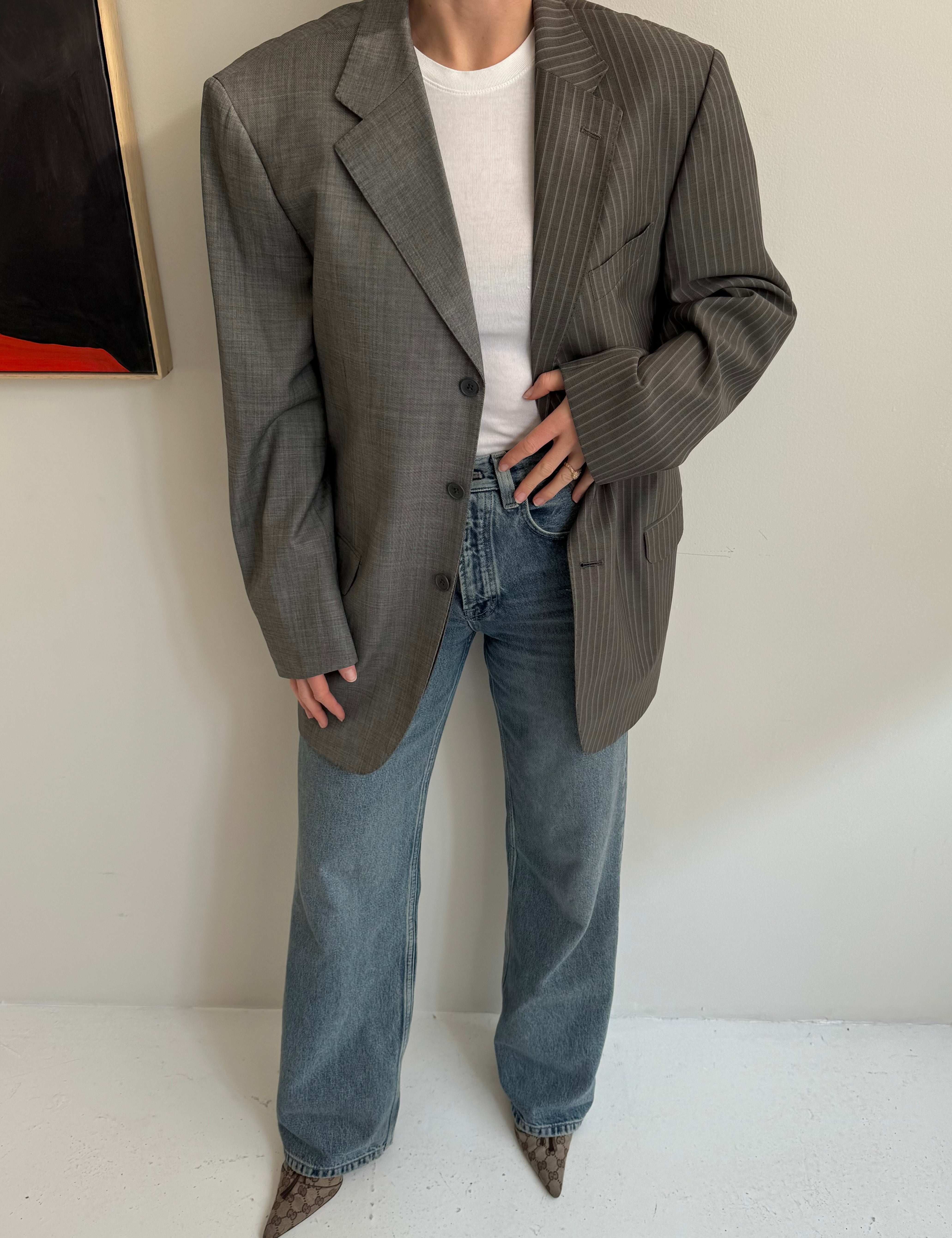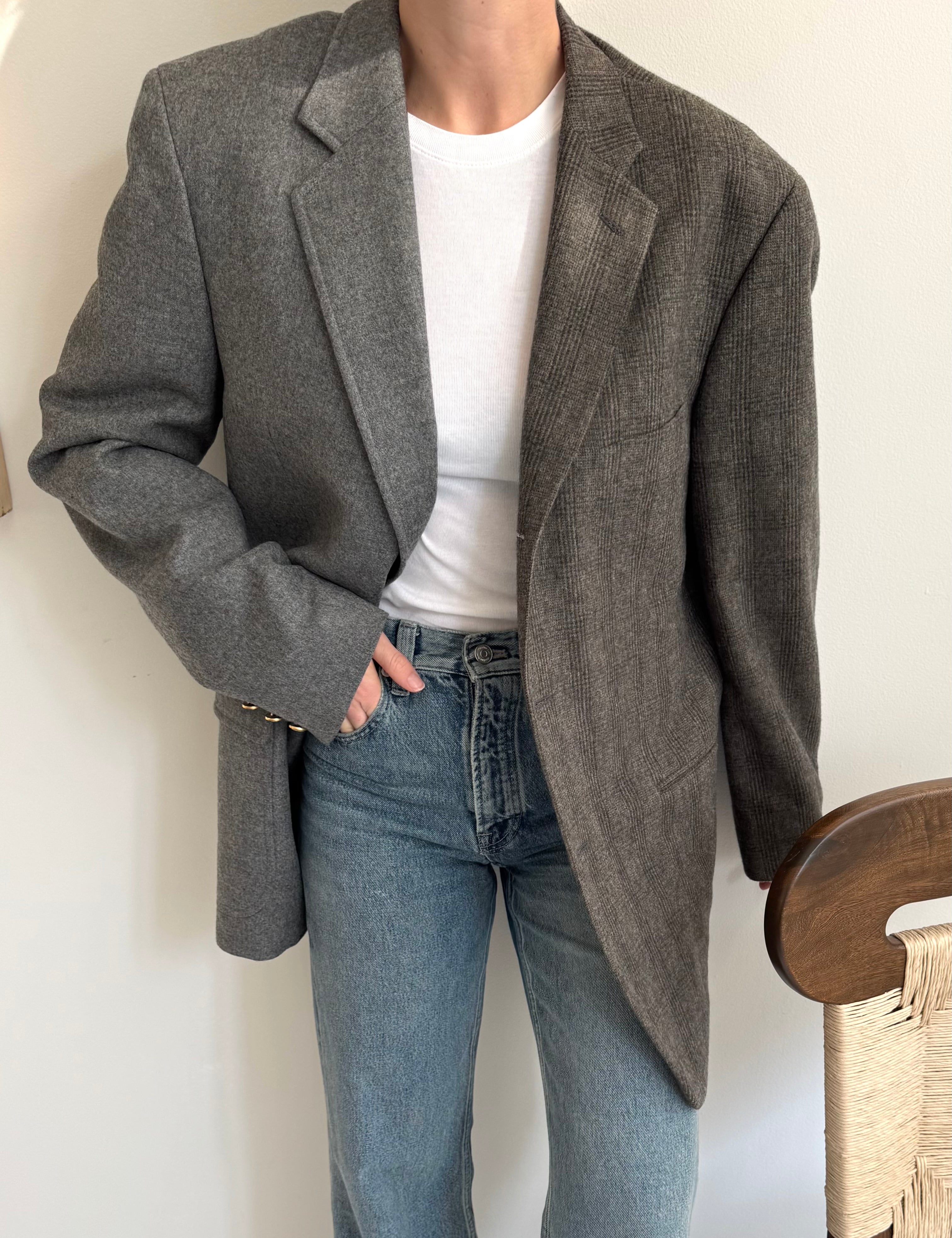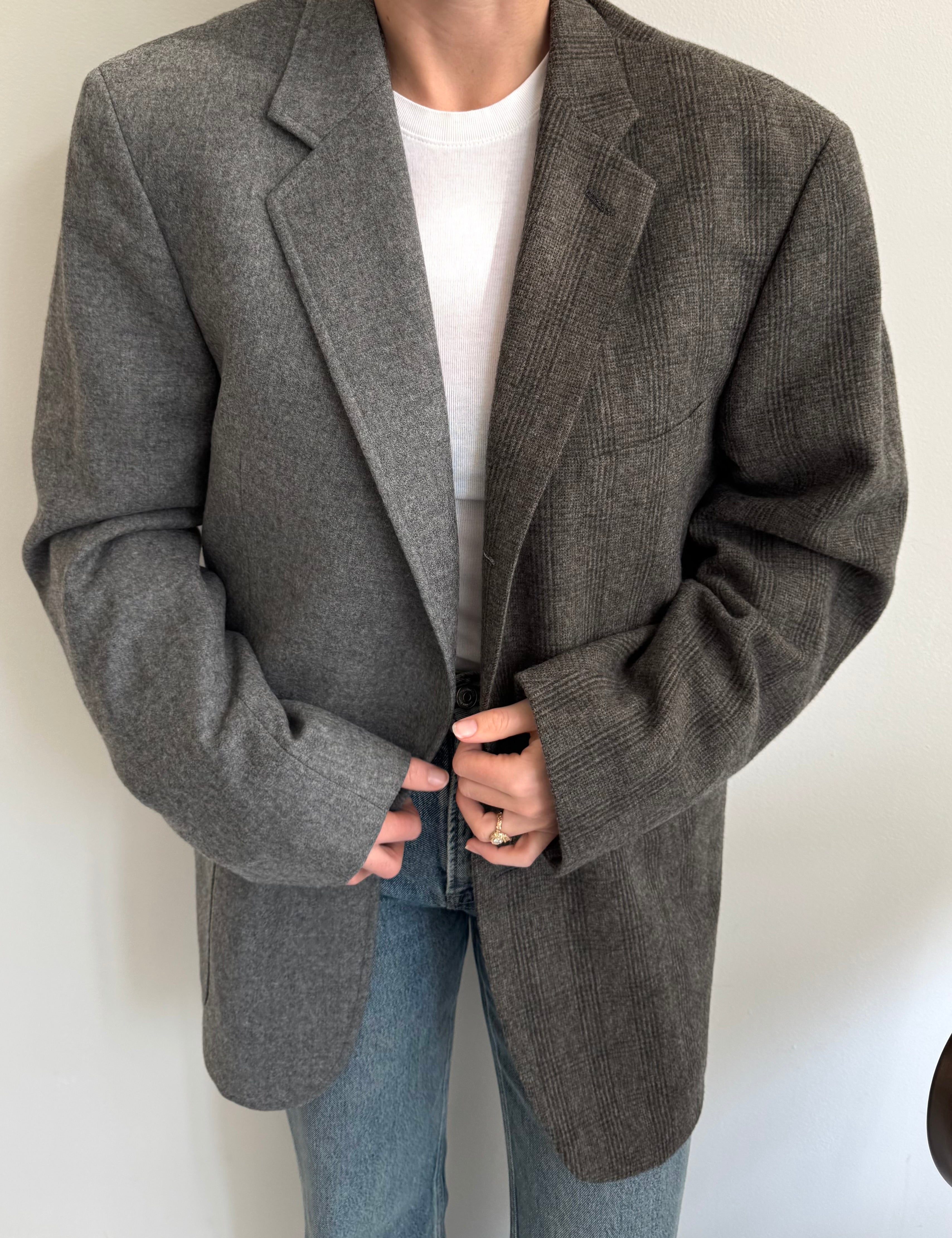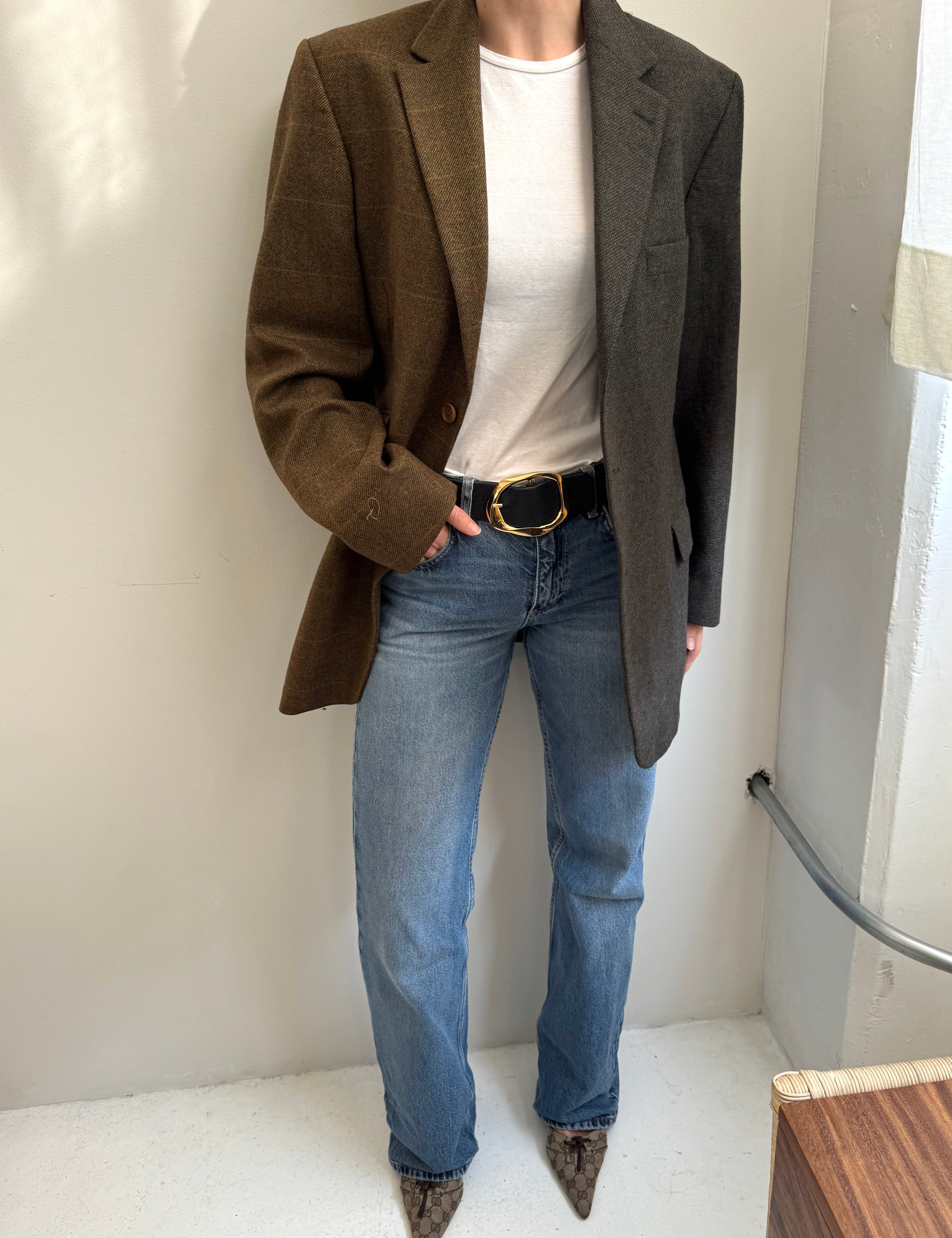 Golden houndstooth and pale brown herringbone two-toned blazer