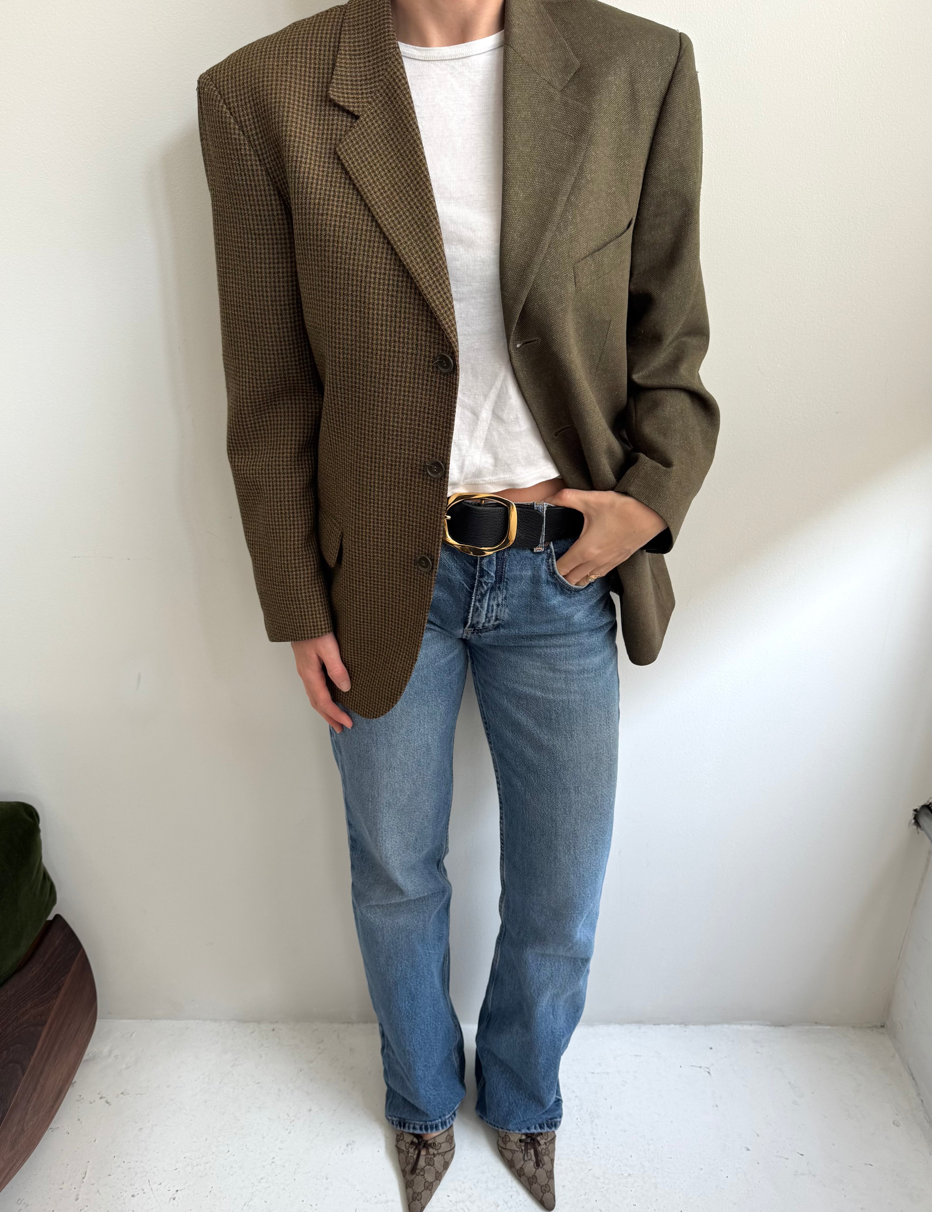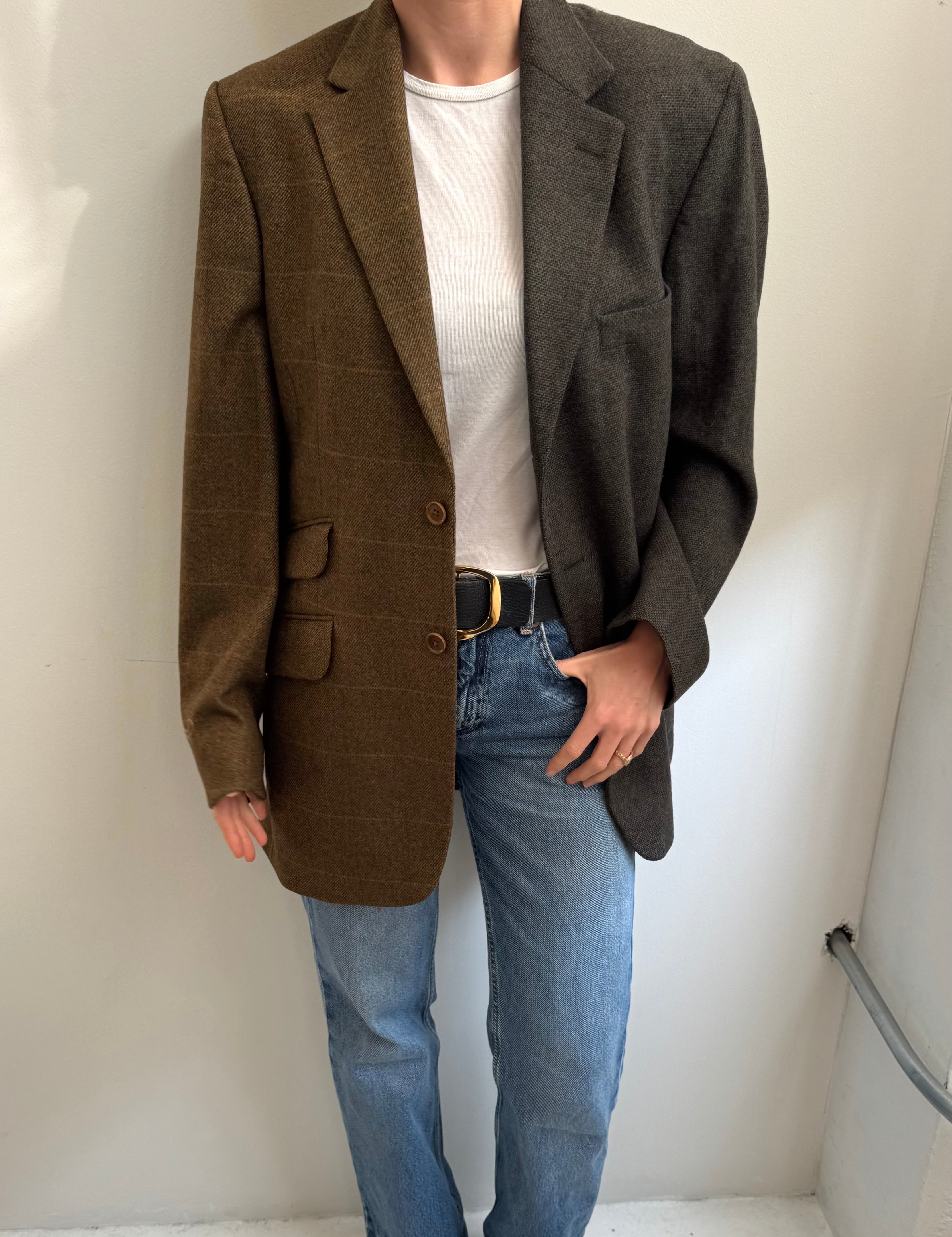 Contrasted blazer in green and brown tones