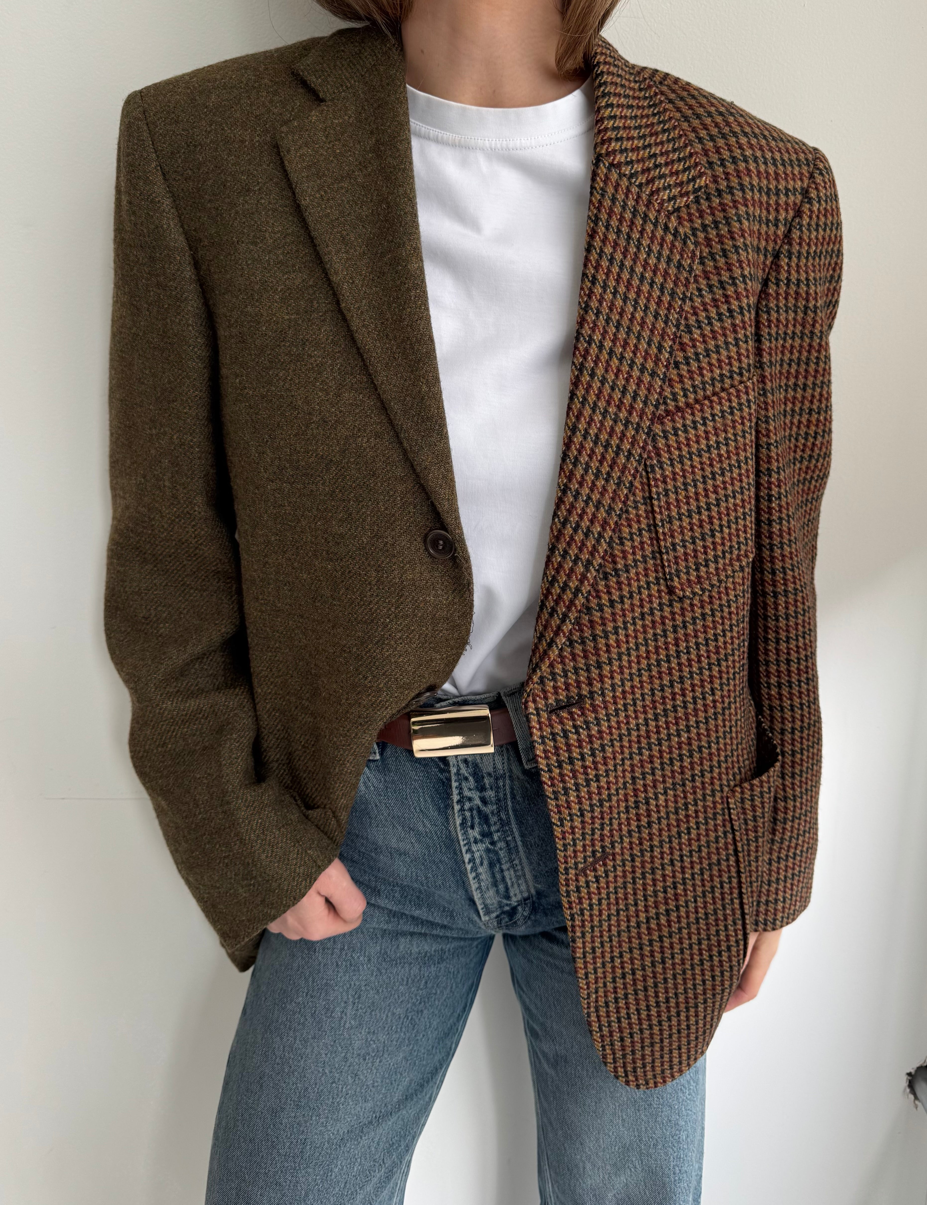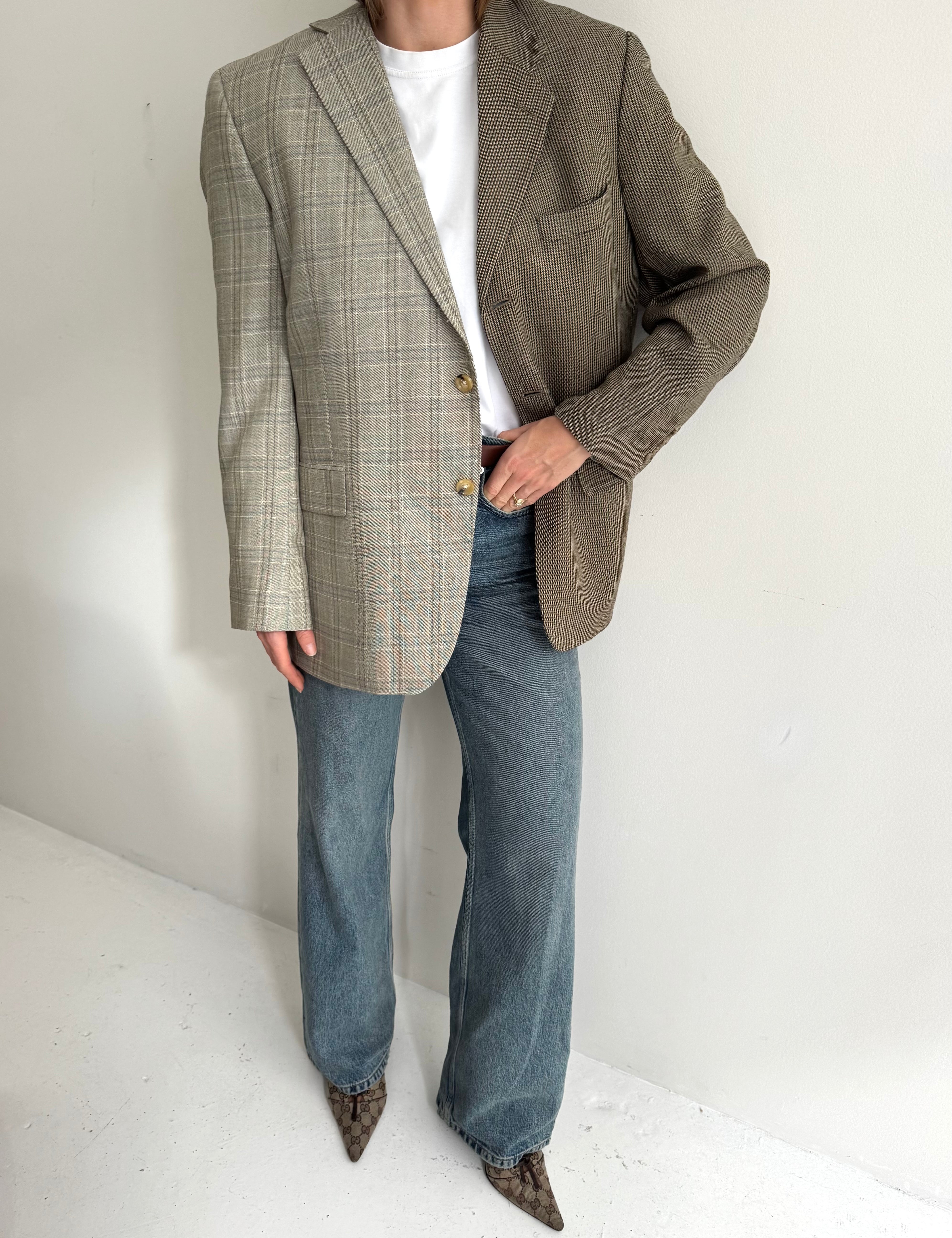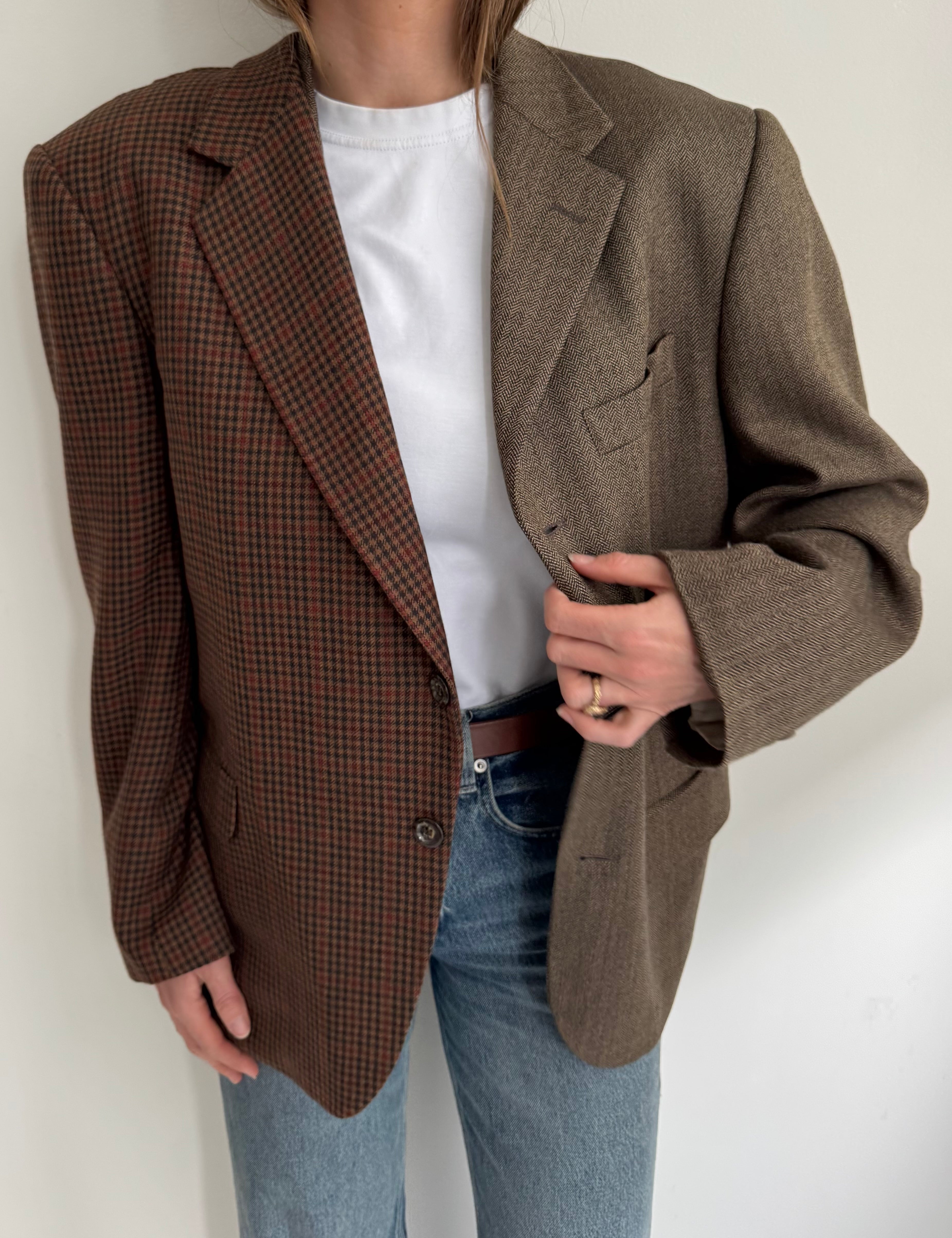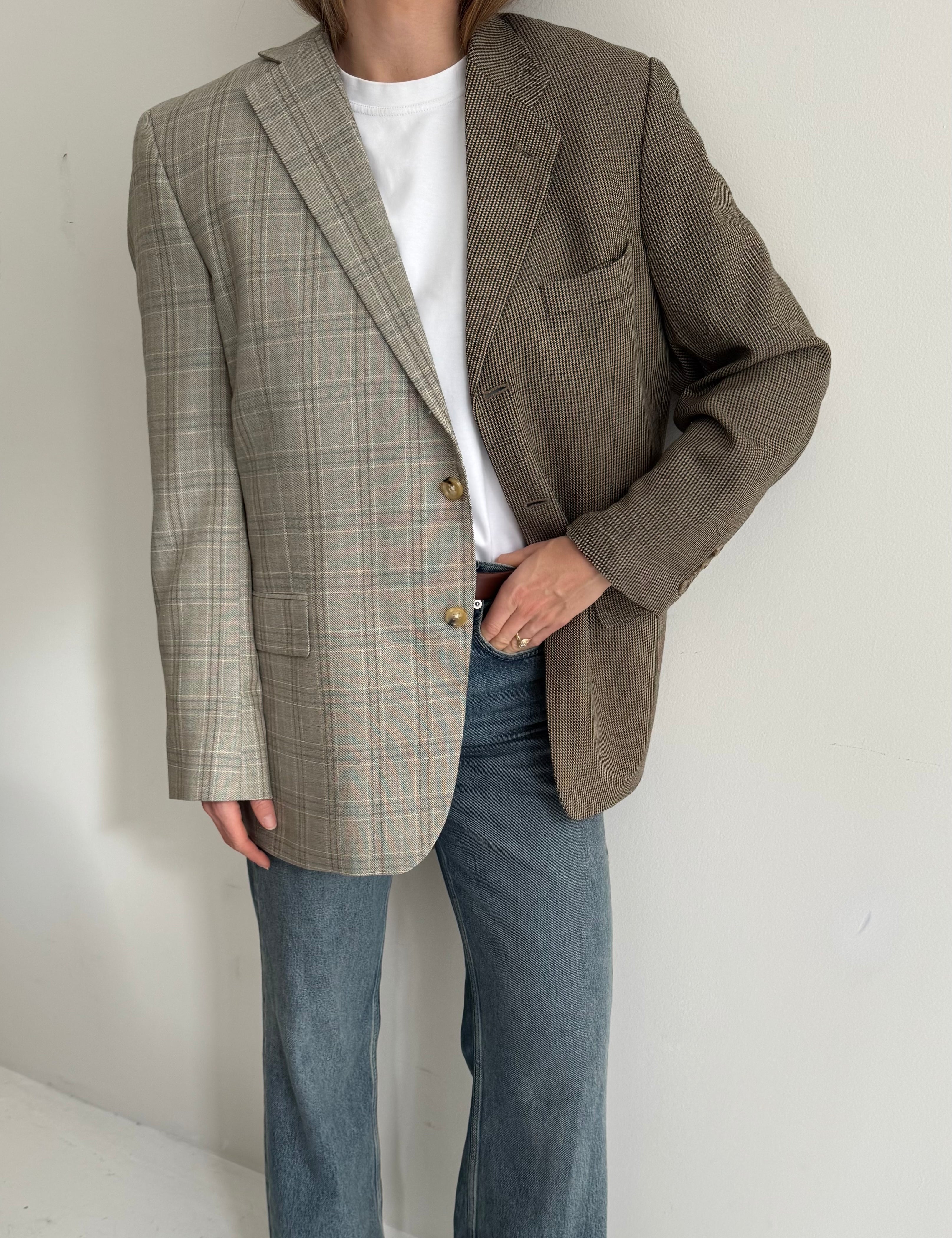 Plaid and herringbone wool contrasted blazer