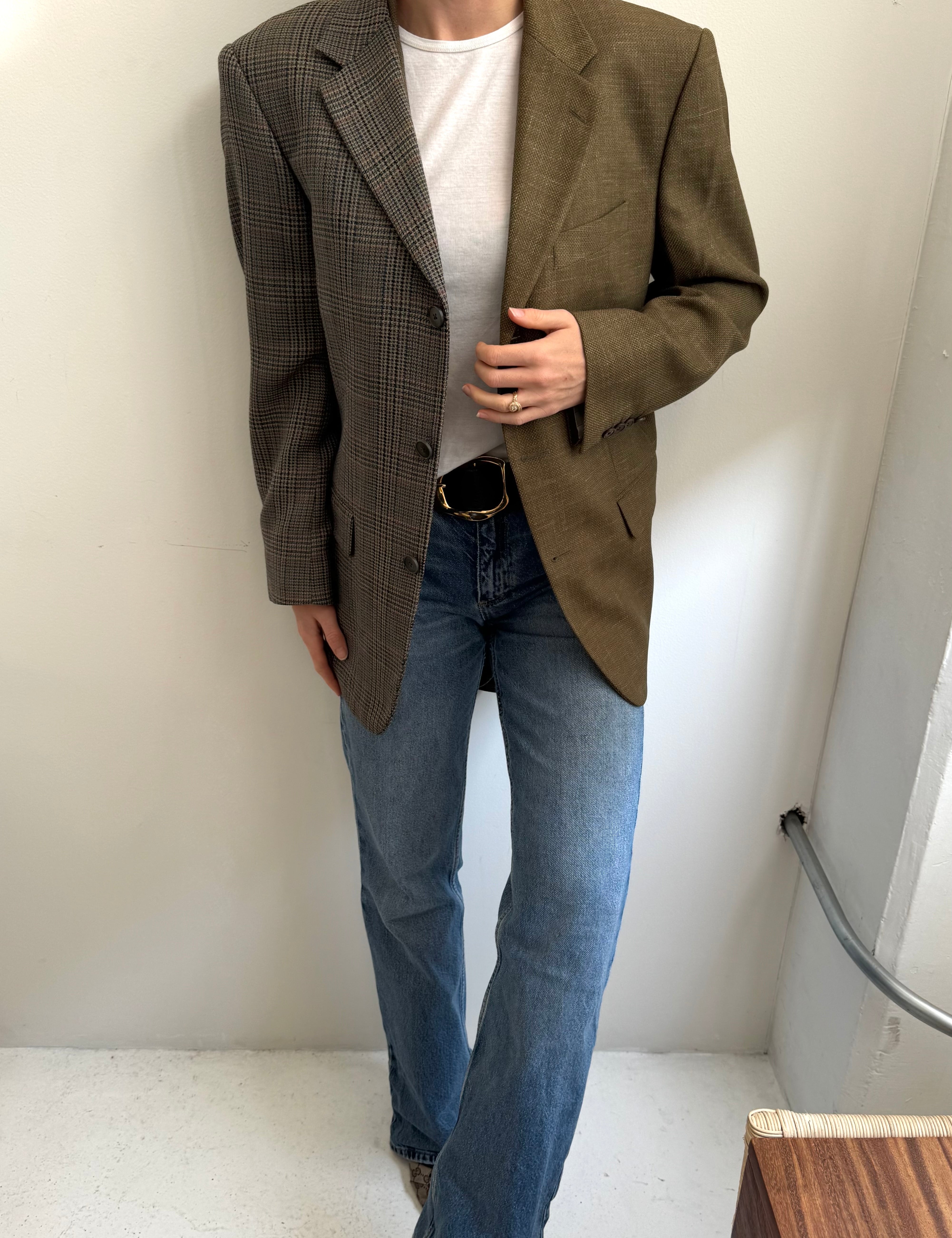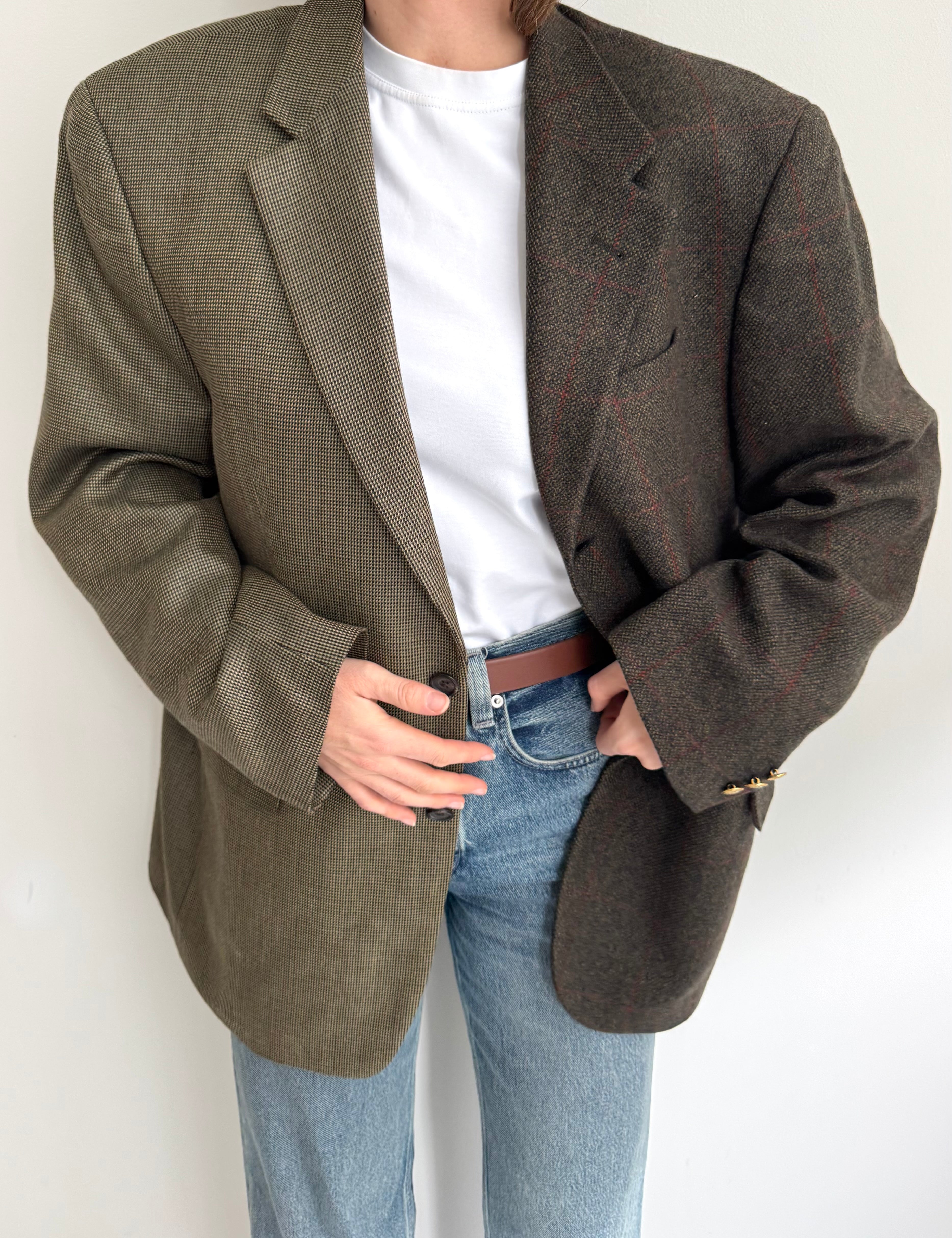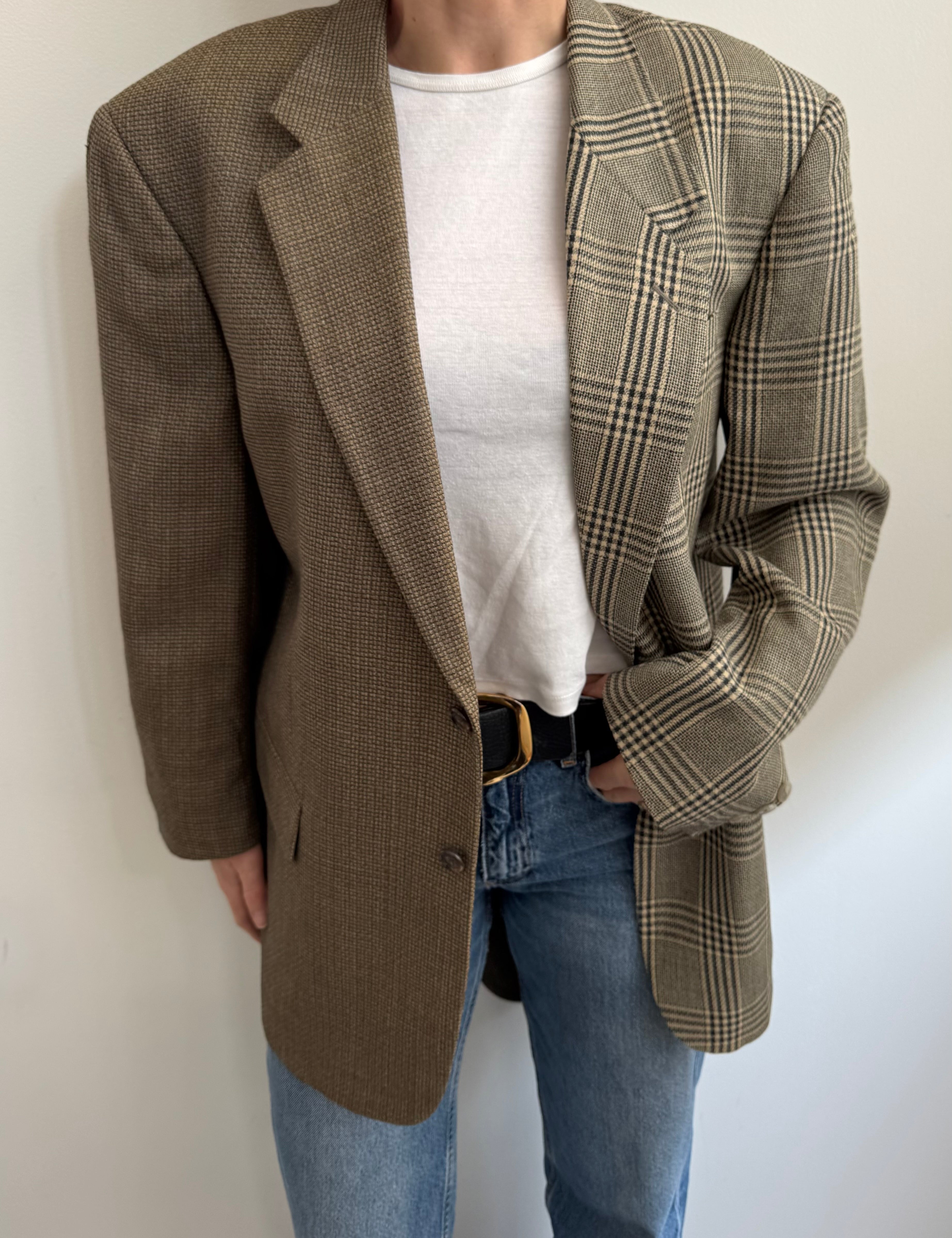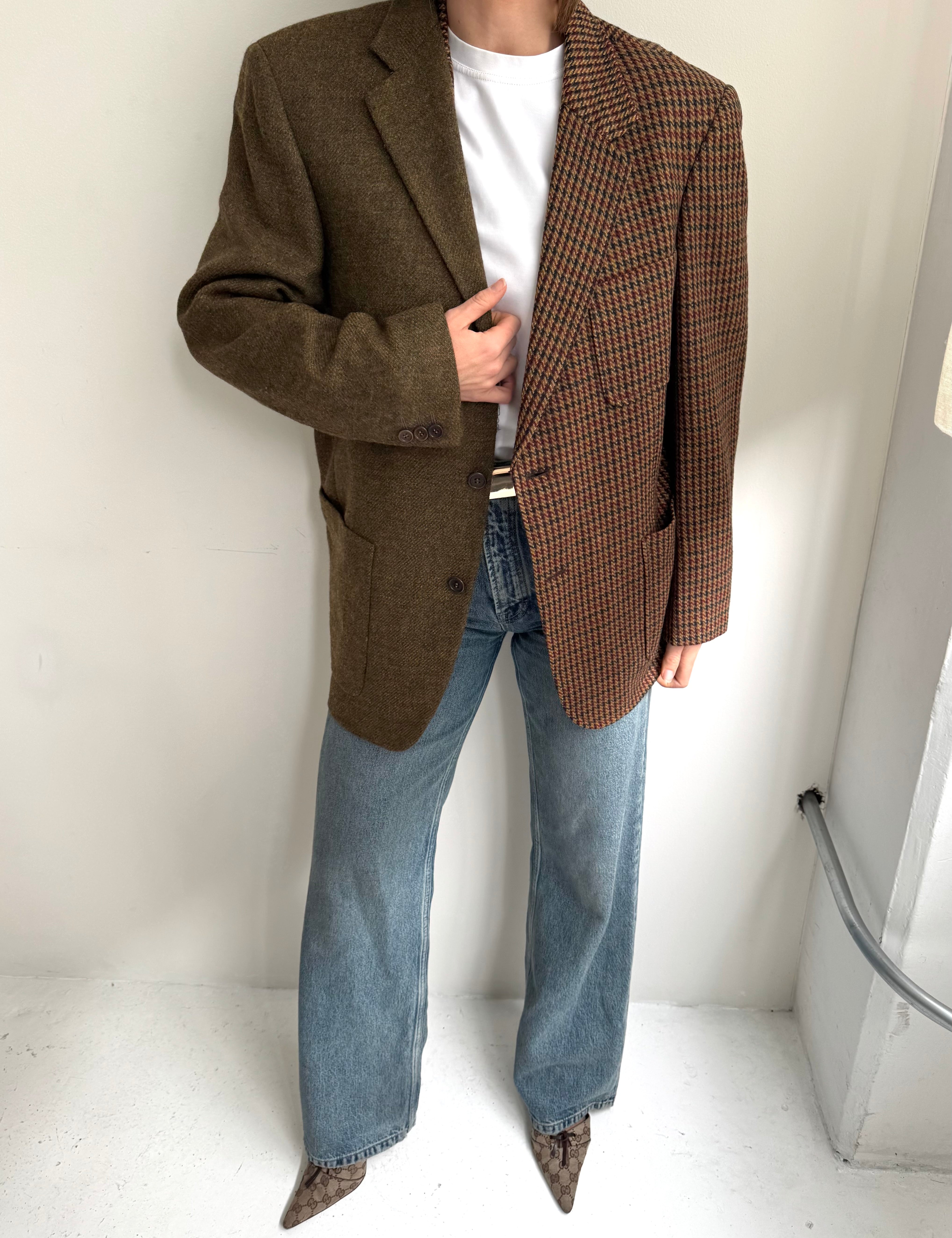 Plaid and herringbone wool contrasted blazer