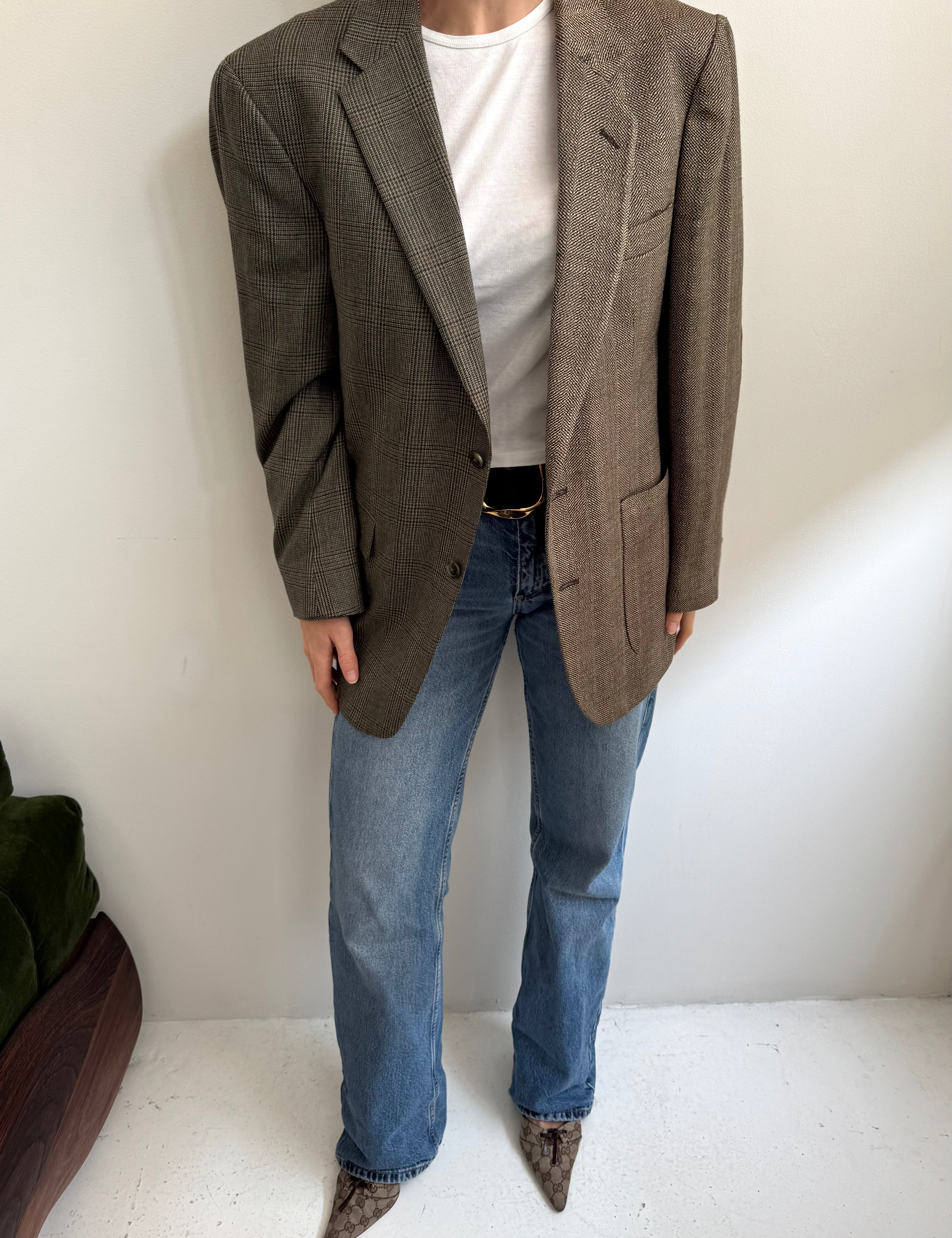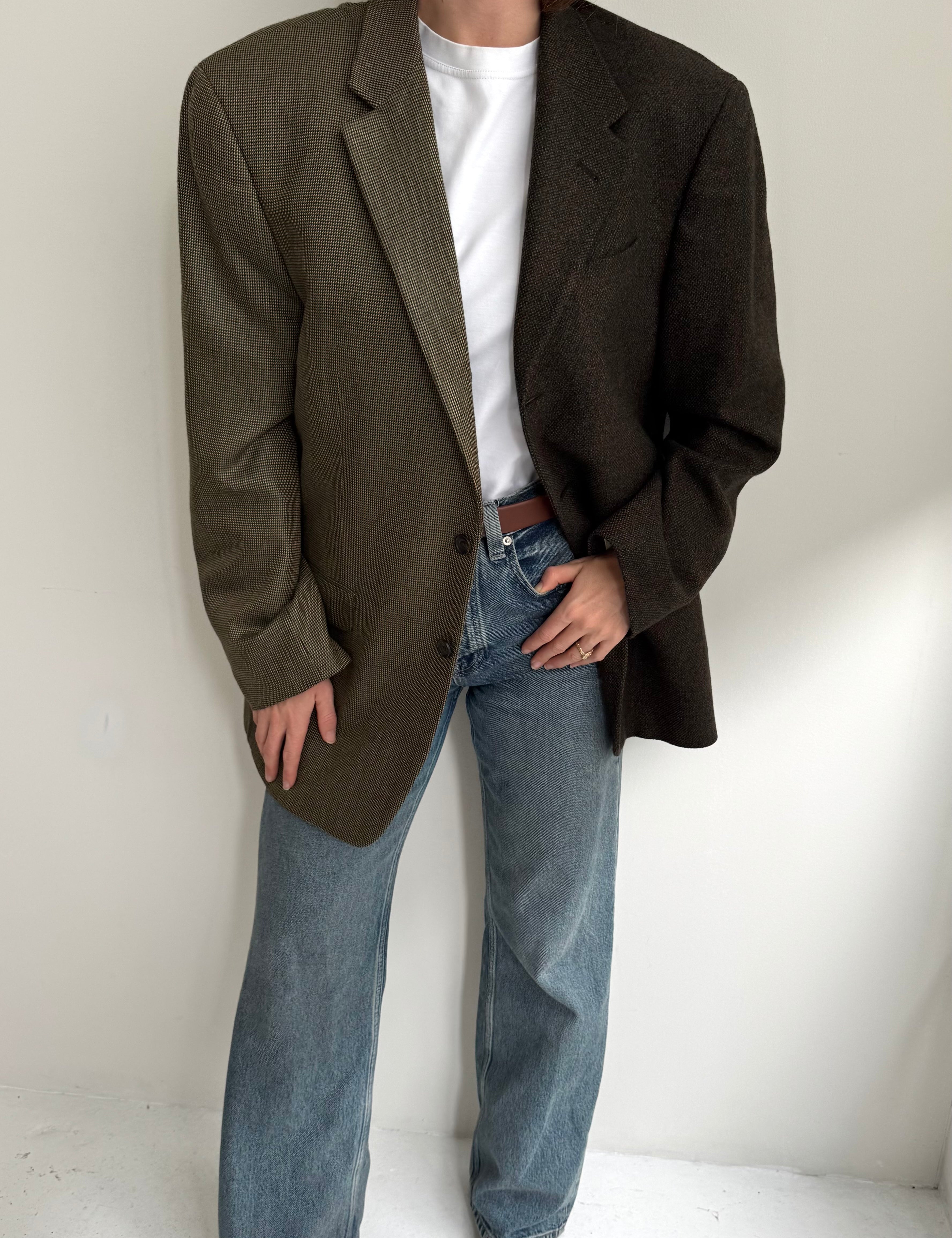 Stunning Green and brown toned tweed contrasted blazer