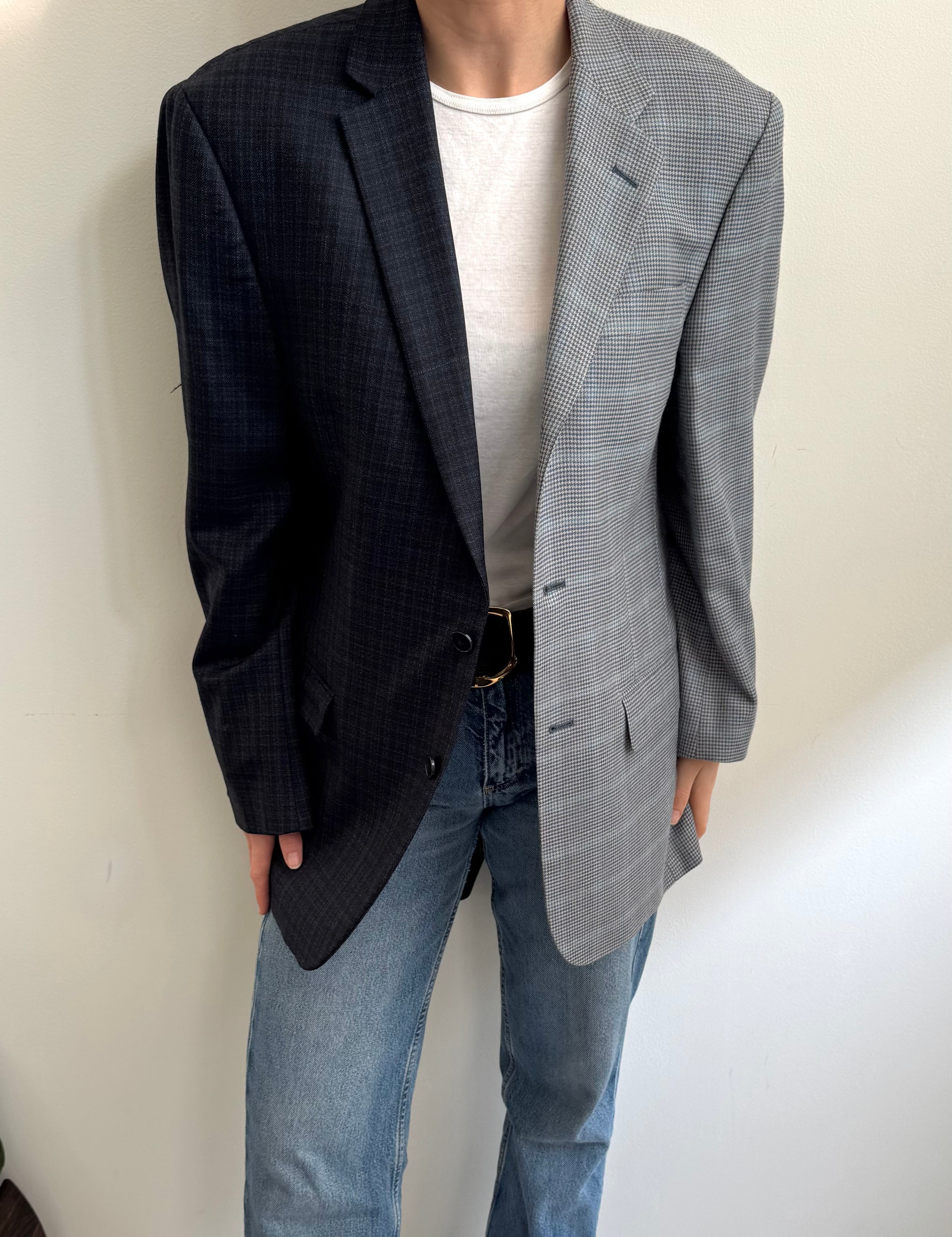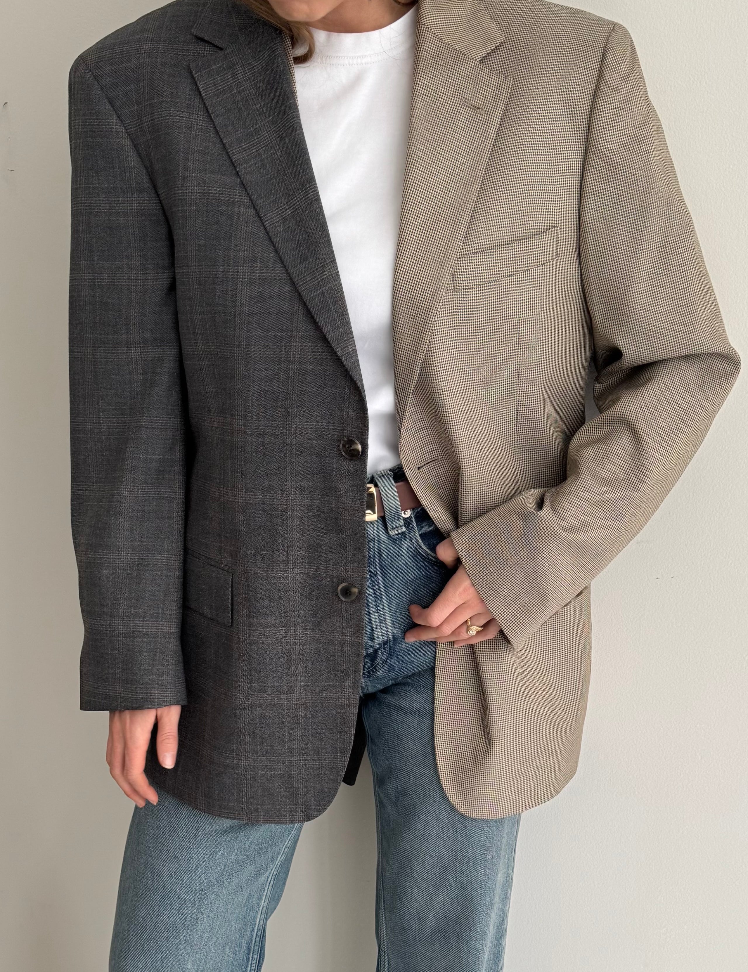 Heavy wool checkered and solid grey contrasted blazer
