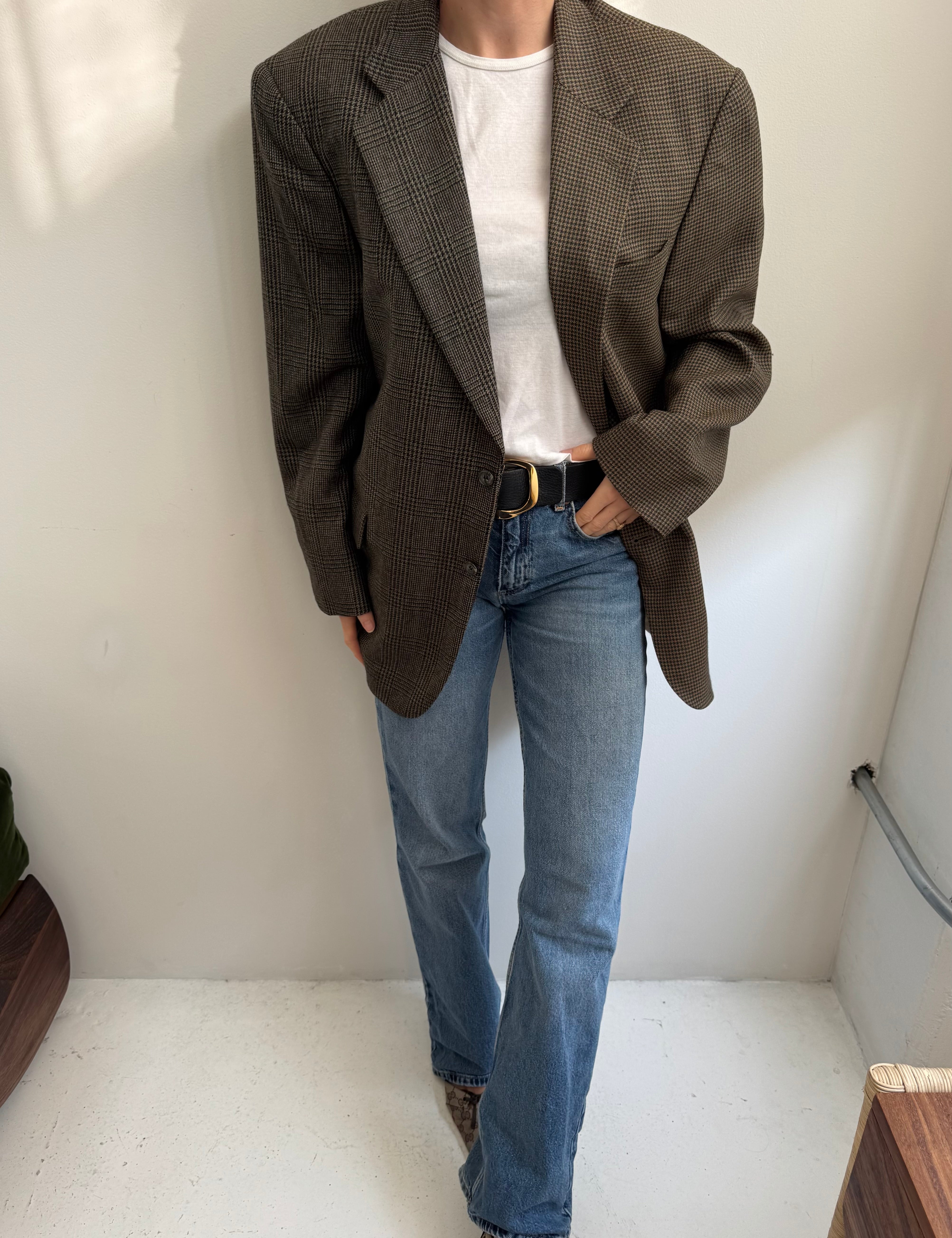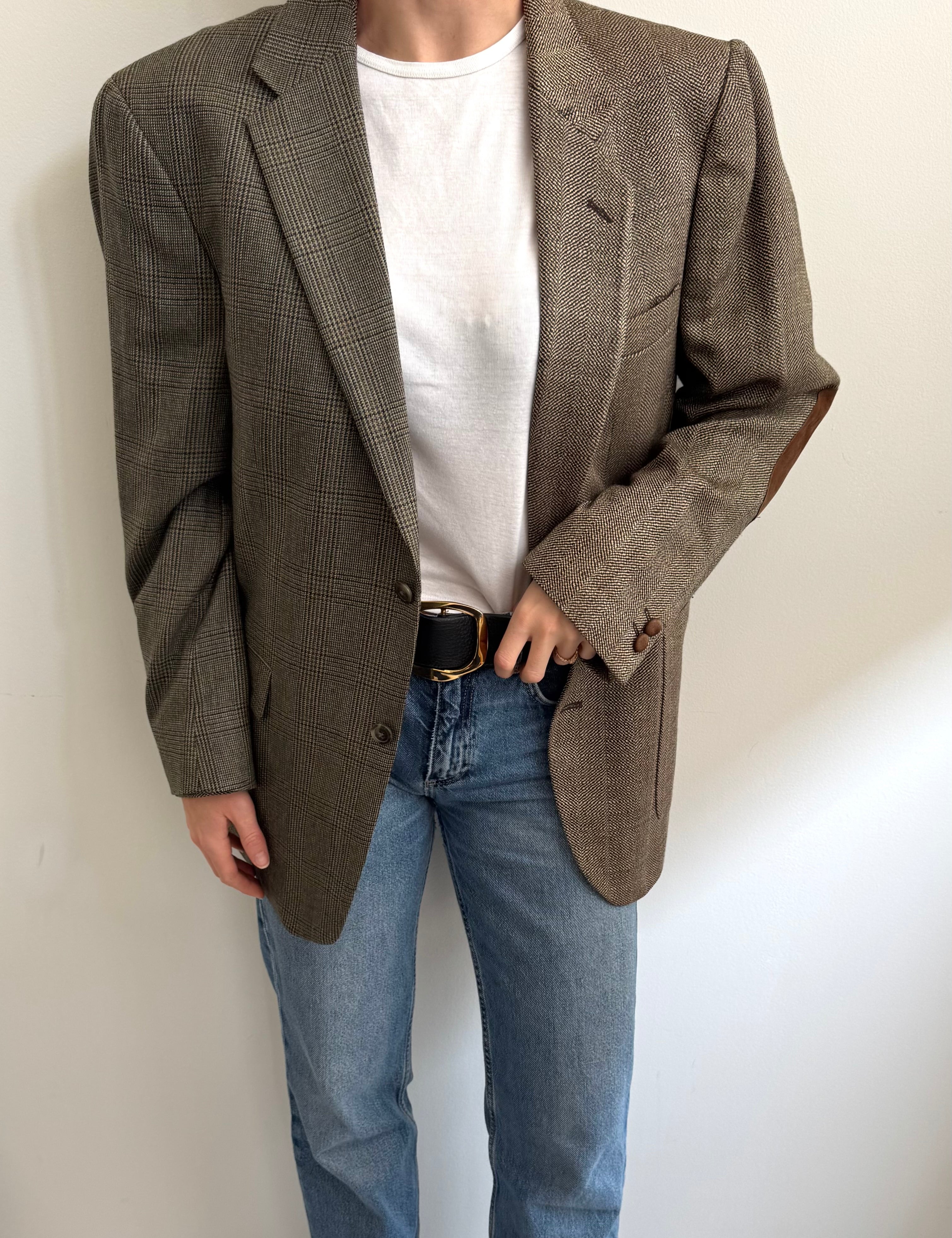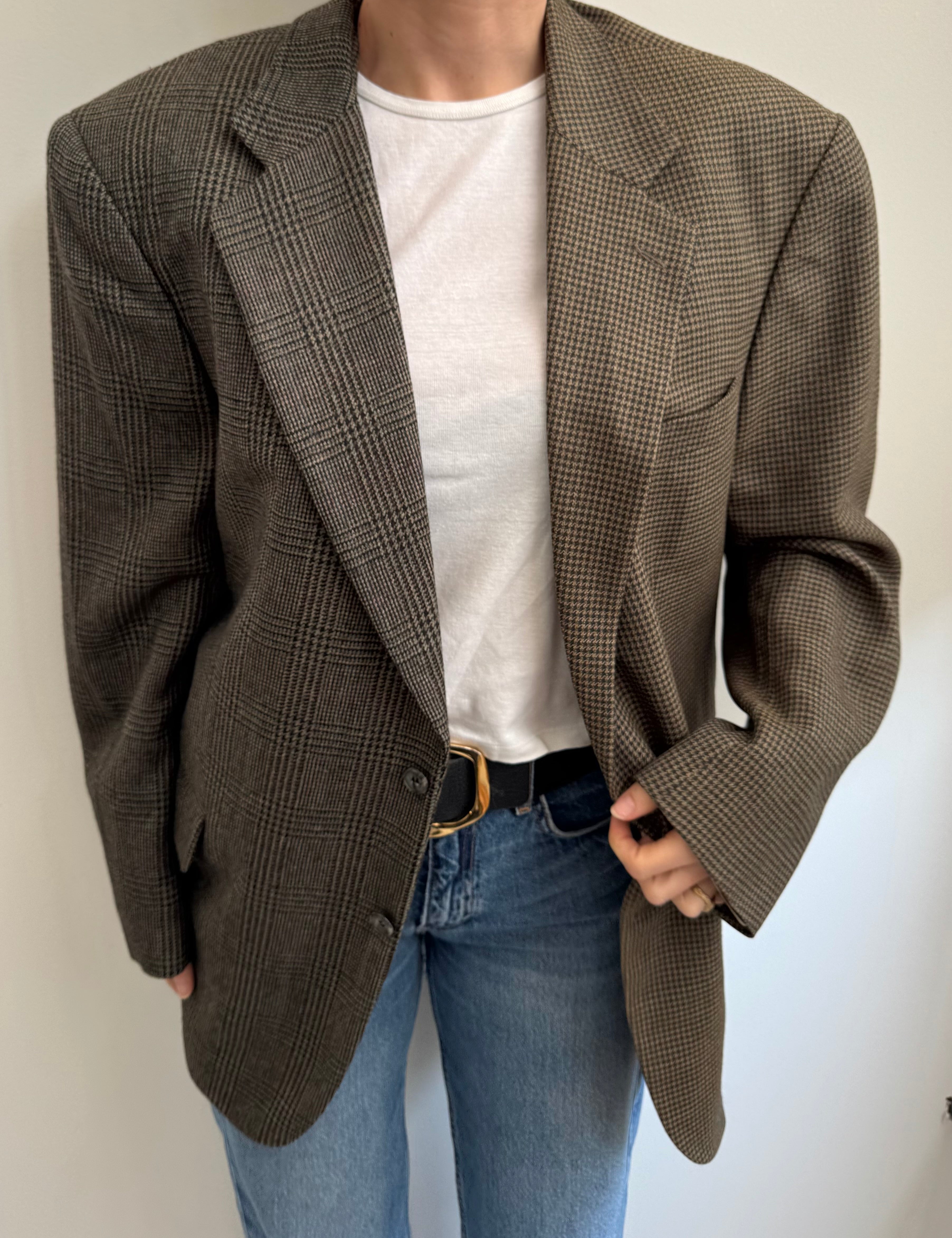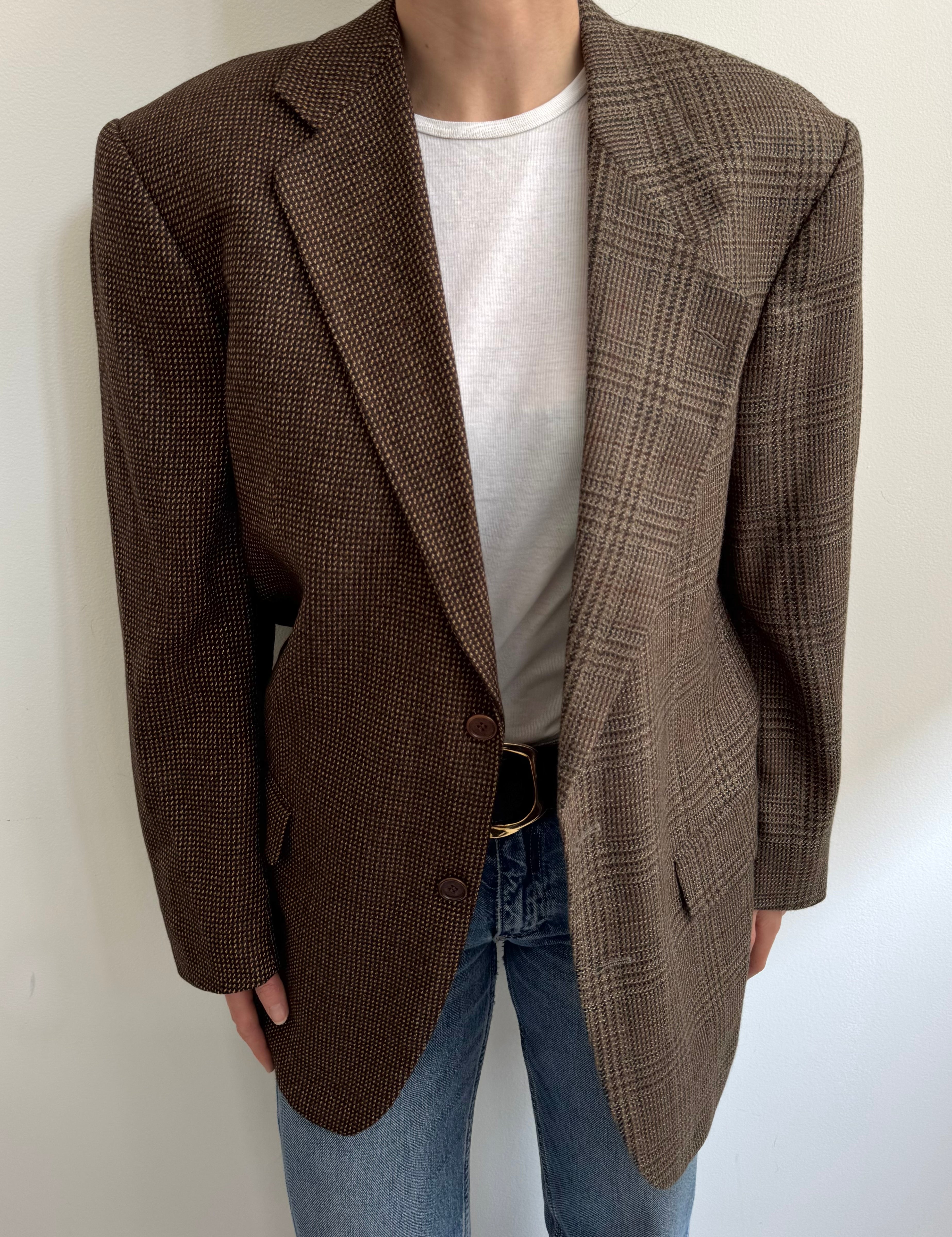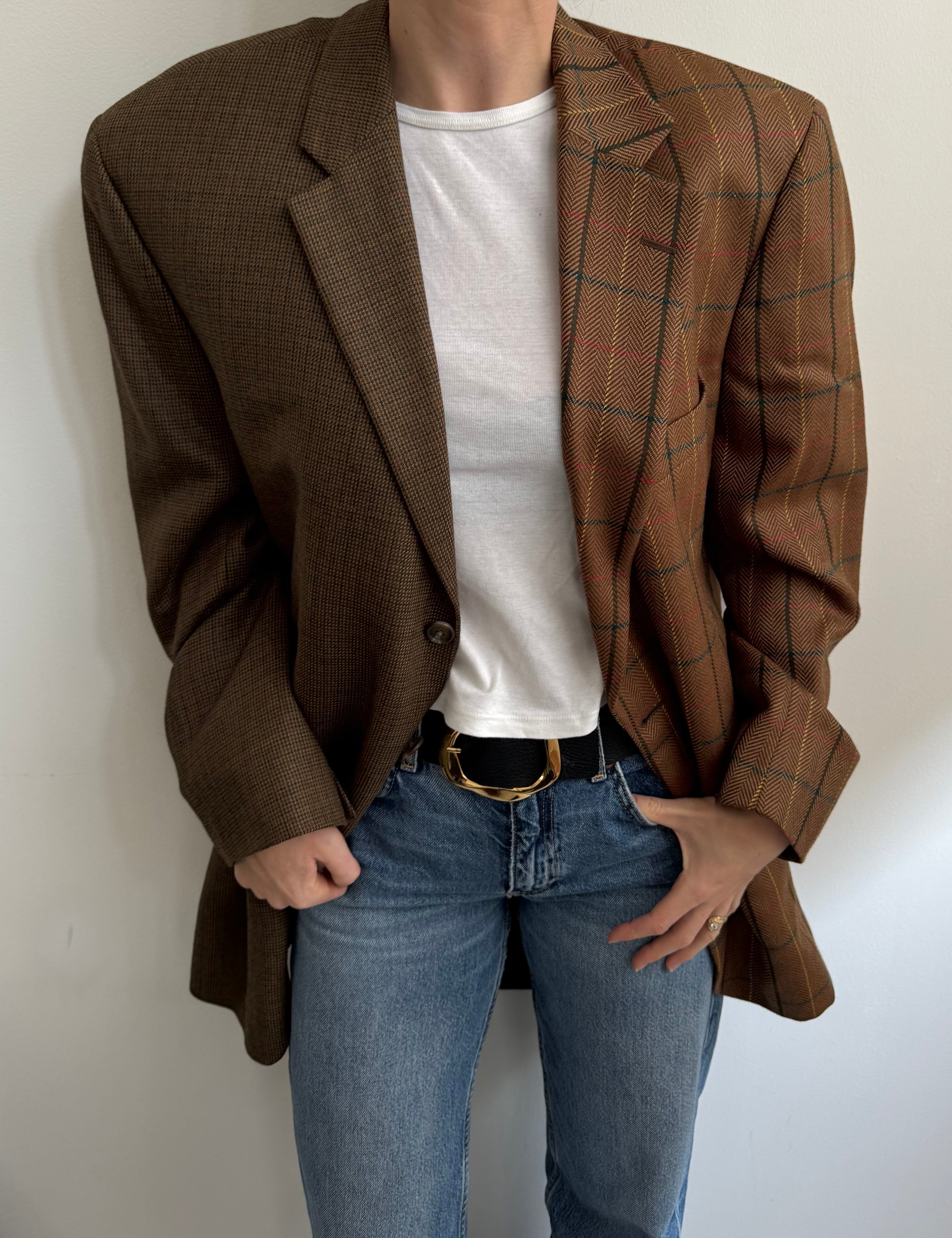 Brown wool and pale plaid contrasted blazer
