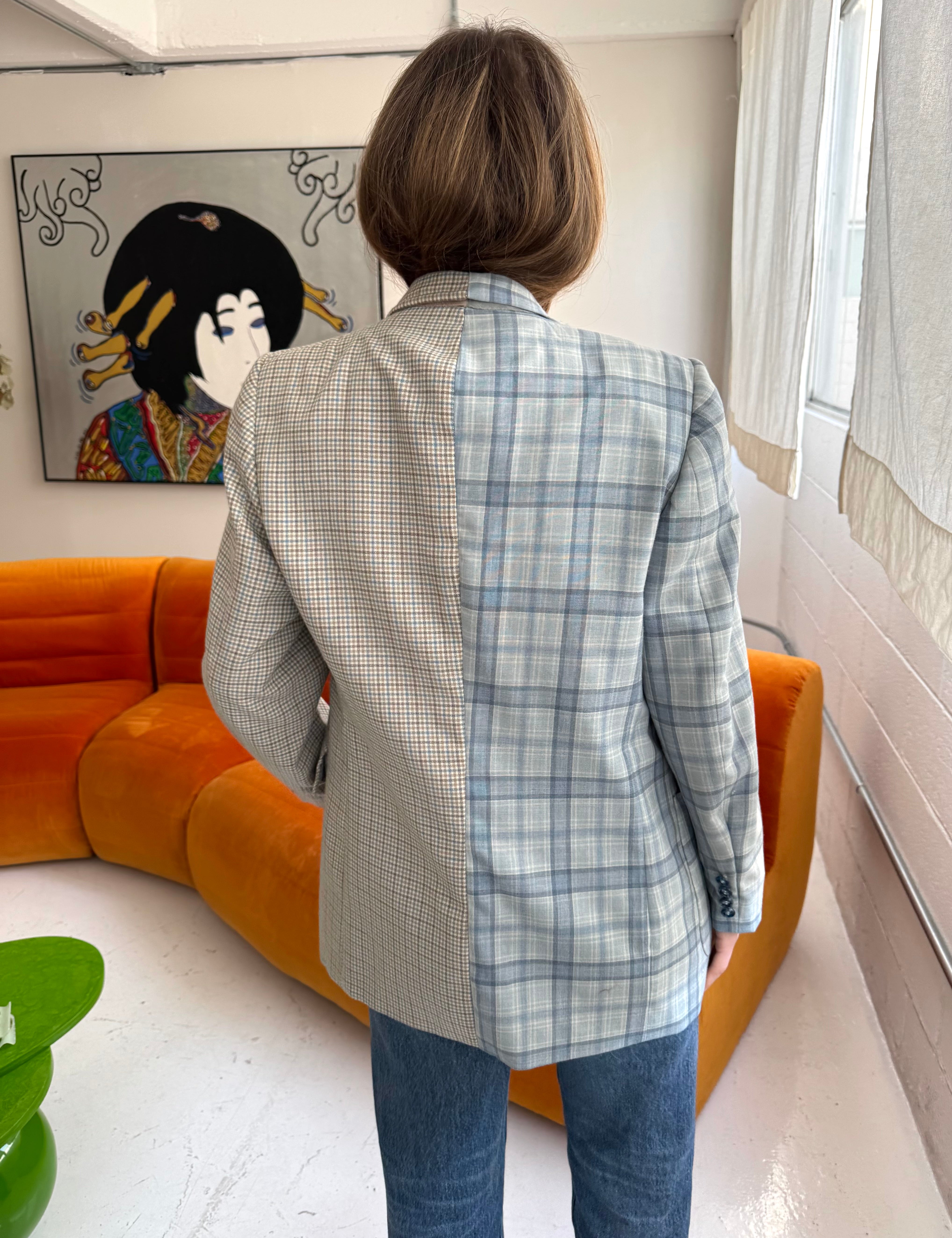 Blue and plaid contrasted blazer