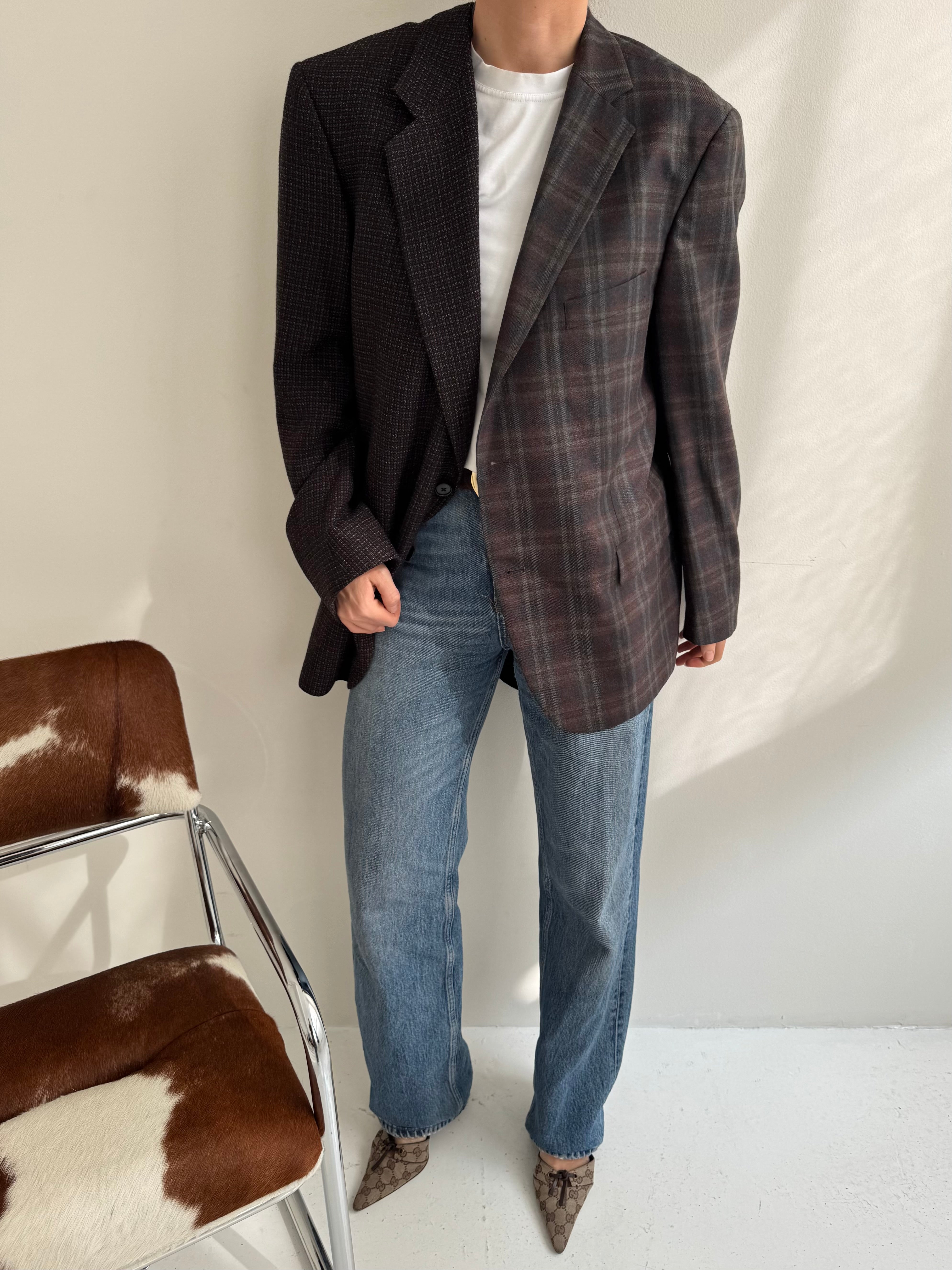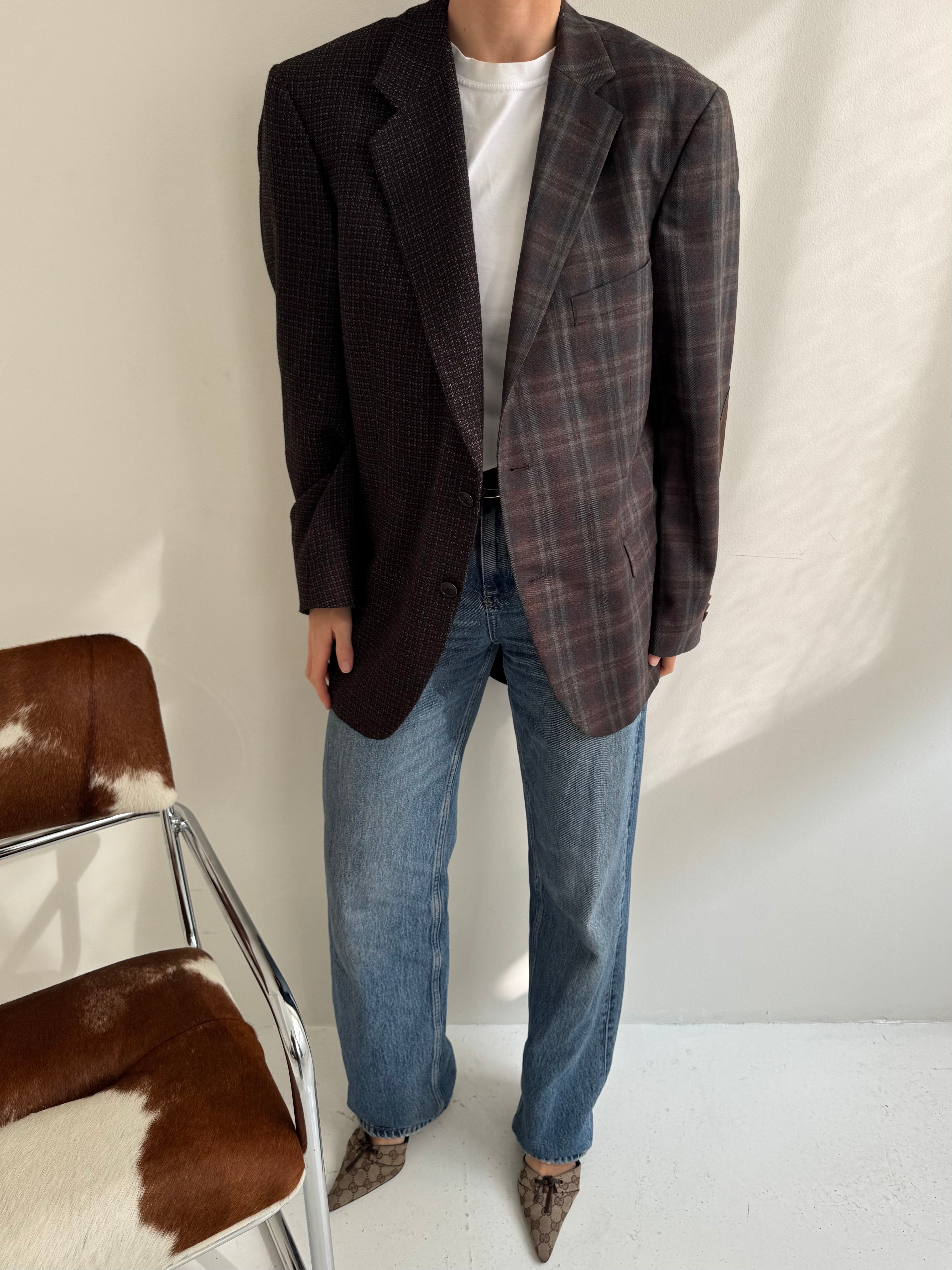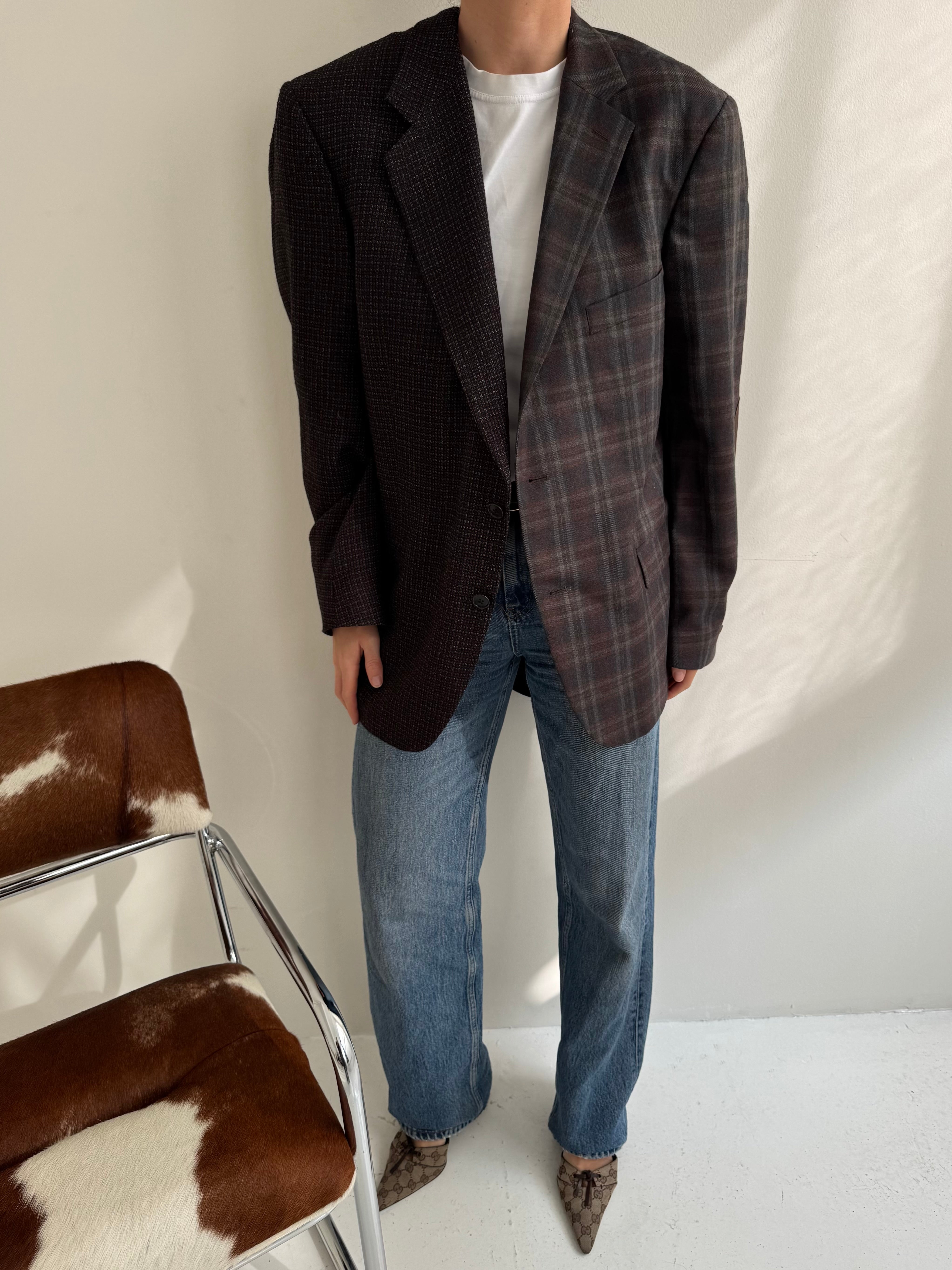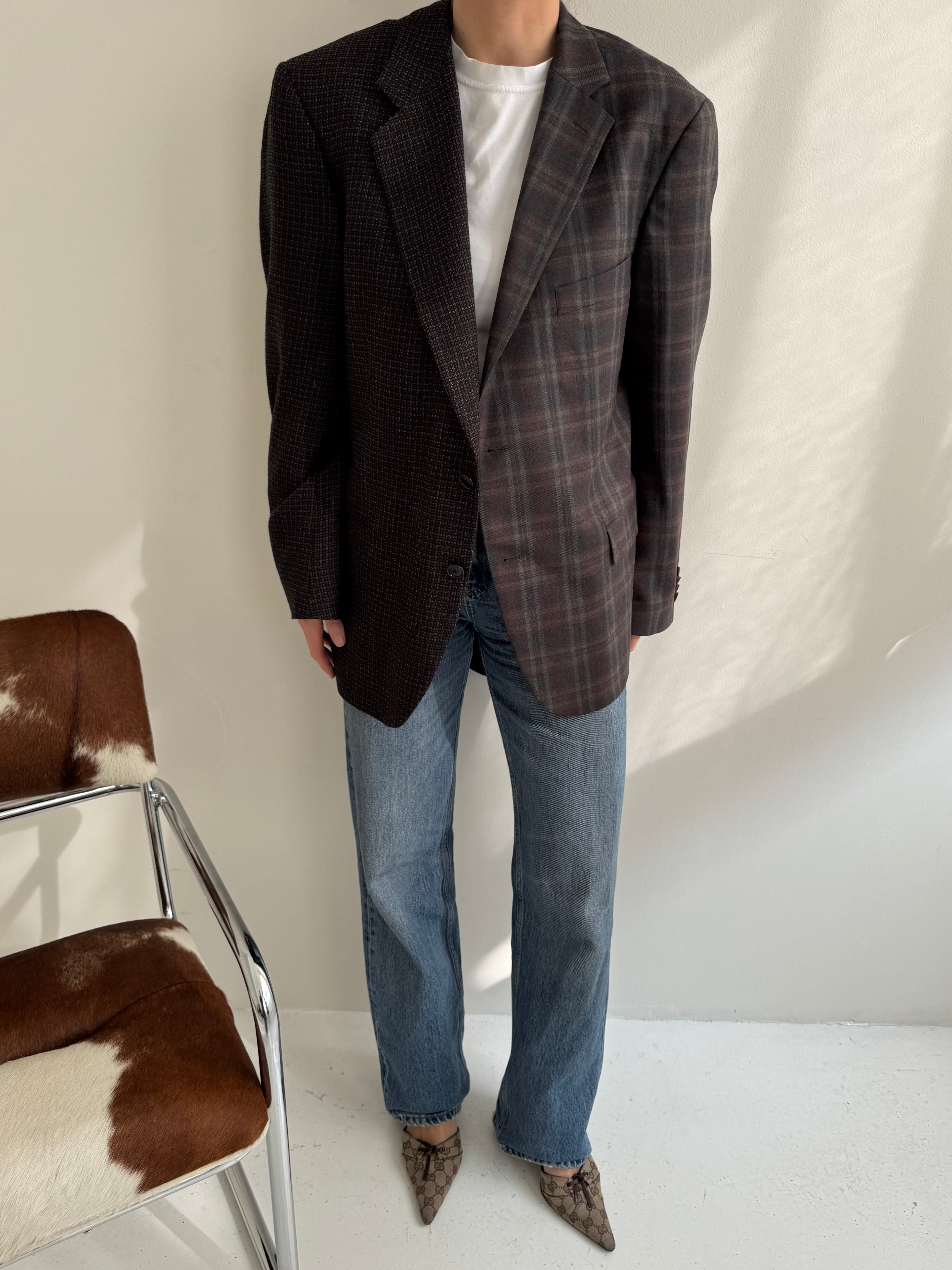 A match made in heaven. Two carefully sourced vintage blazers, made into one, adding a twist to the classic and timeless oversized blazer. Perfect for all occasions and always super versatile. Wear it with jeans or on its own, daytime or evening. Carefully curated, tailored and dry cleaned. Beautiful quality, and always made from silk, cashmere, cotton or wool. The sewing has been done well, however there may be slight differences in length/shoulder, as the jacket is made from two recycled blazers.