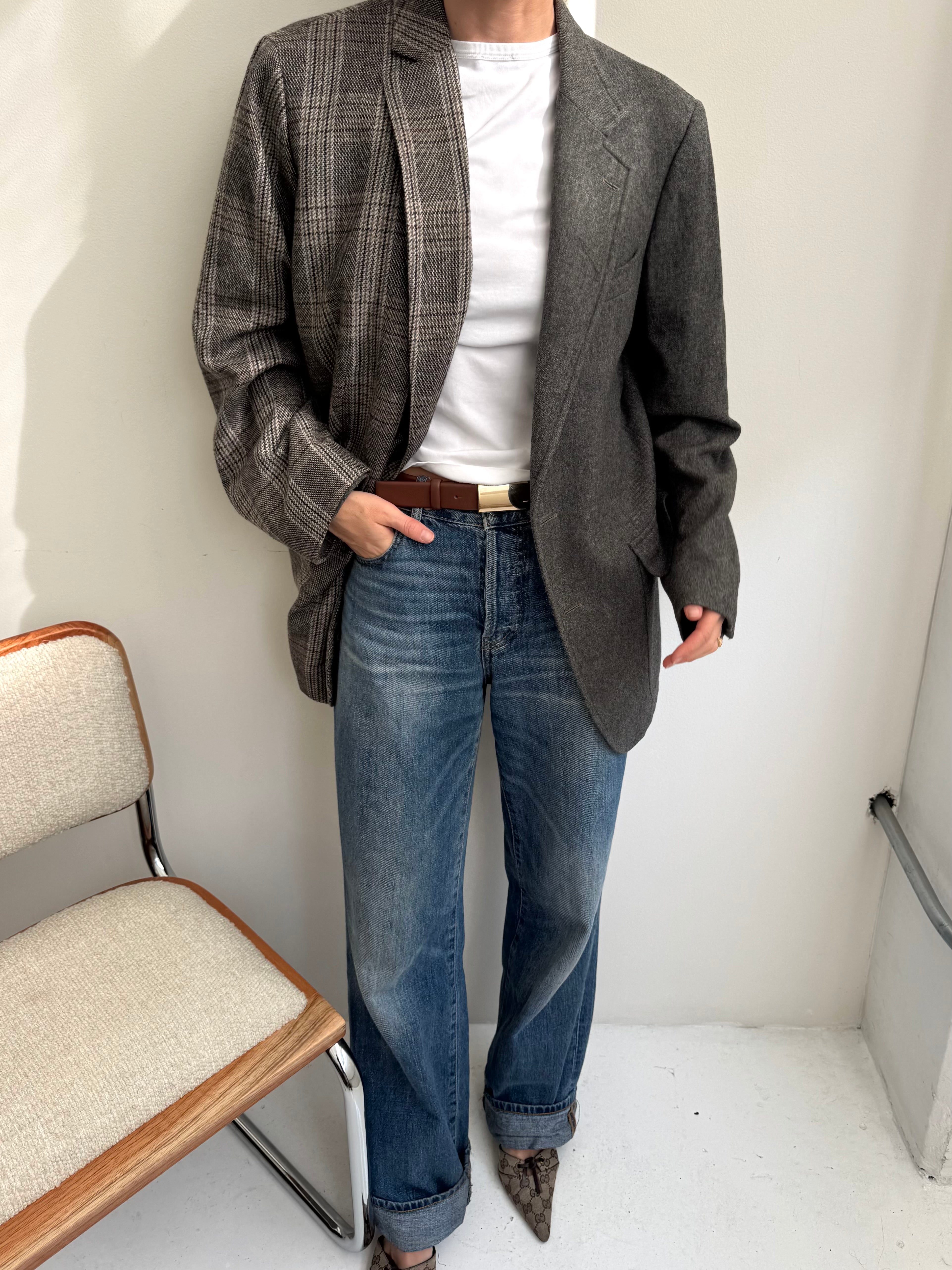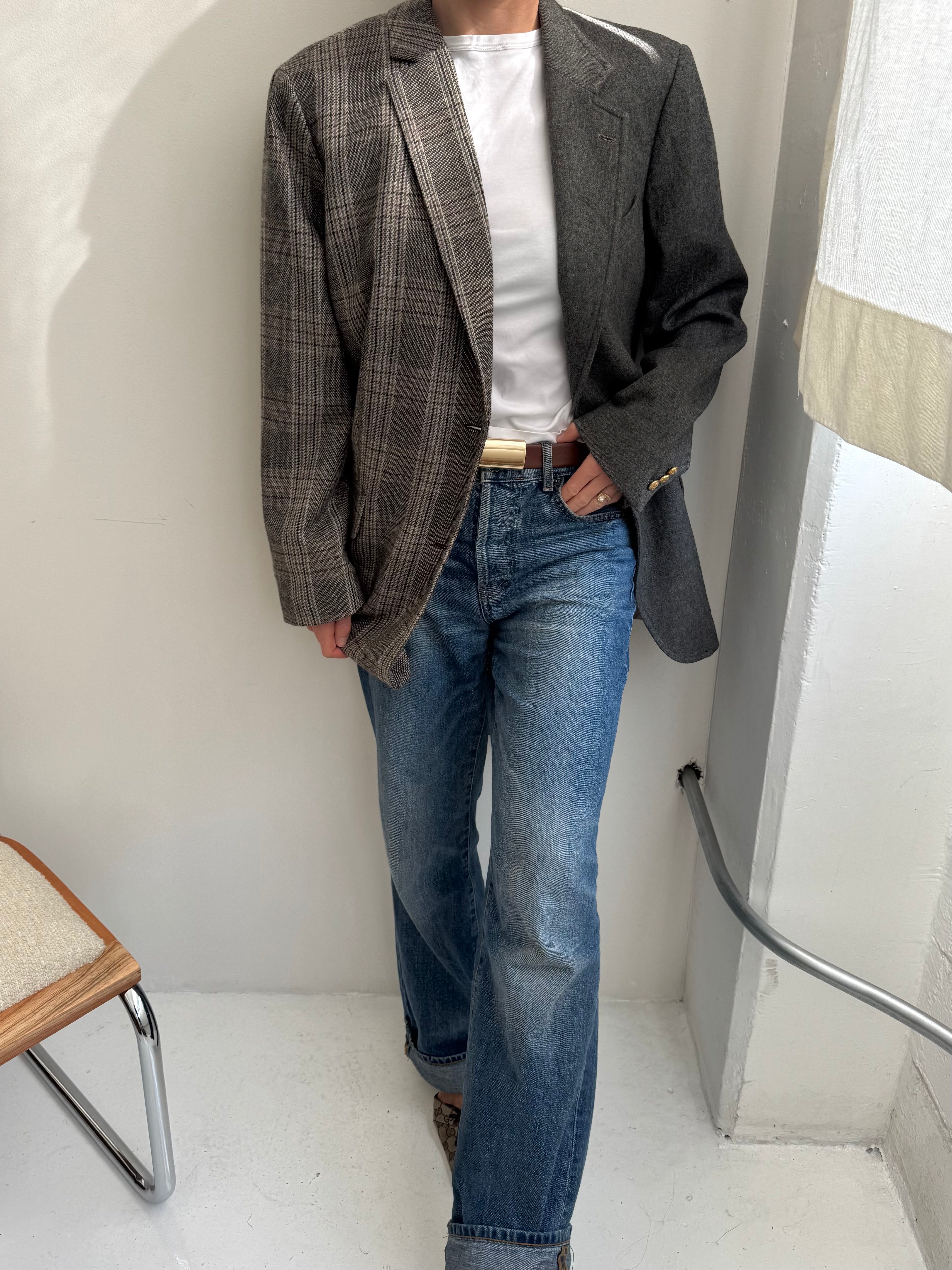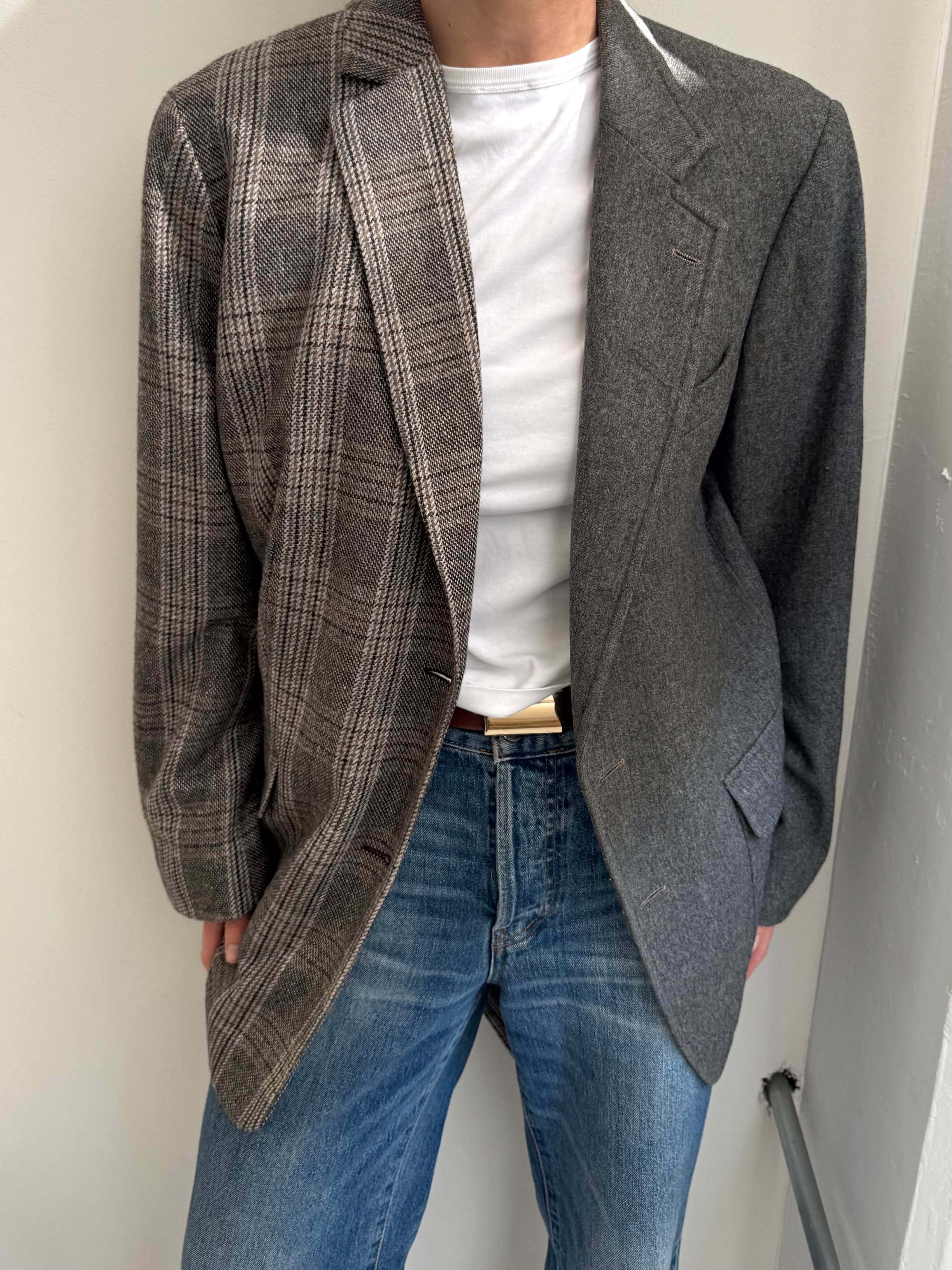 A match made in heaven. Two carefully sourced vintage blazers, made into one, adding a twist to the classic and timeless oversized blazer. Perfect for all occasions and always super versatile. Wear it with jeans or on its own, daytime or evening. Carefully curated, tailored and dry cleaned. Beautiful quality, and always made from silk, cashmere, cotton or wool. The sewing has been done well, however there may be slight differences in length/shoulder, as the jacket is made from two recycled blazers.