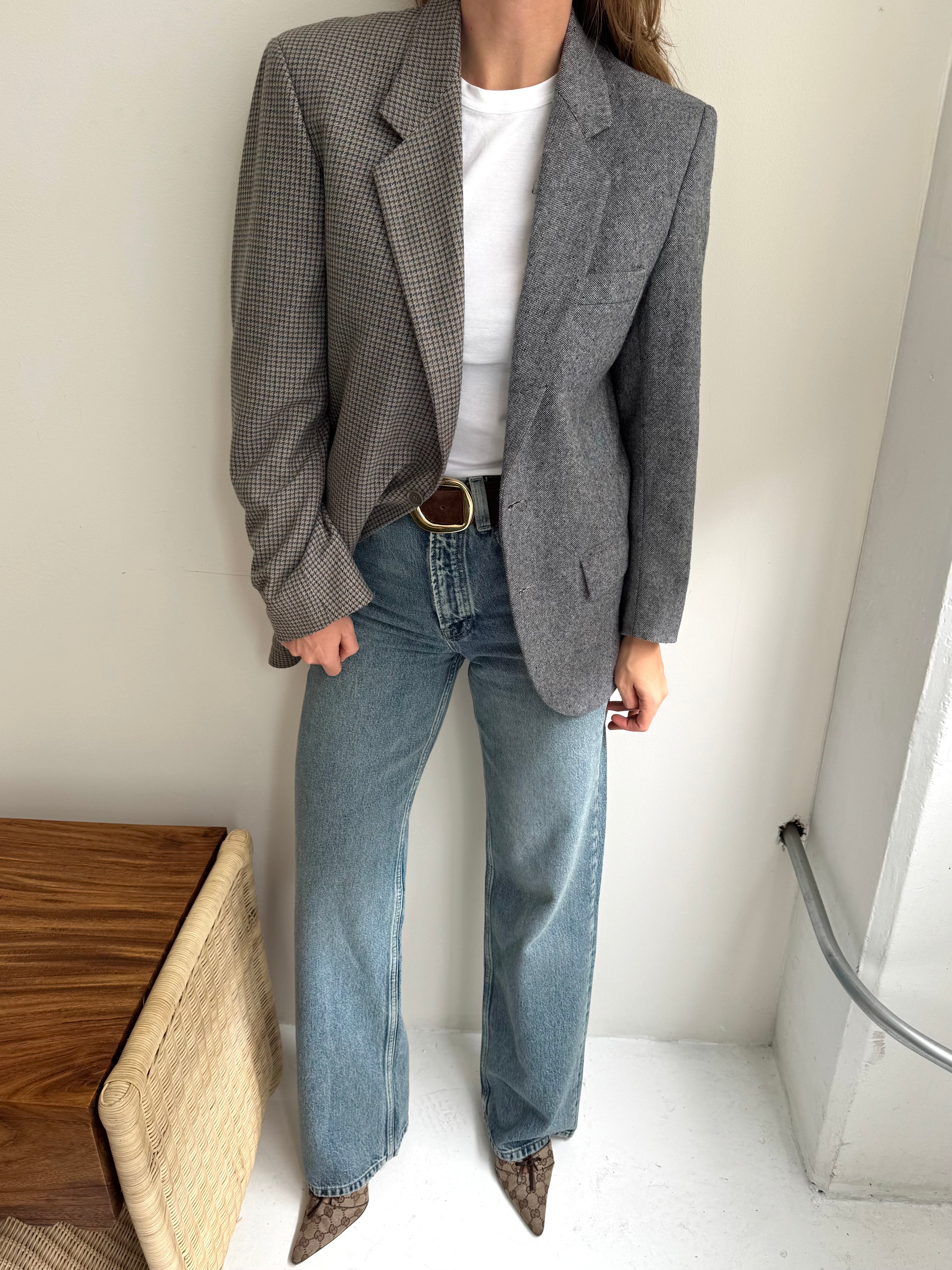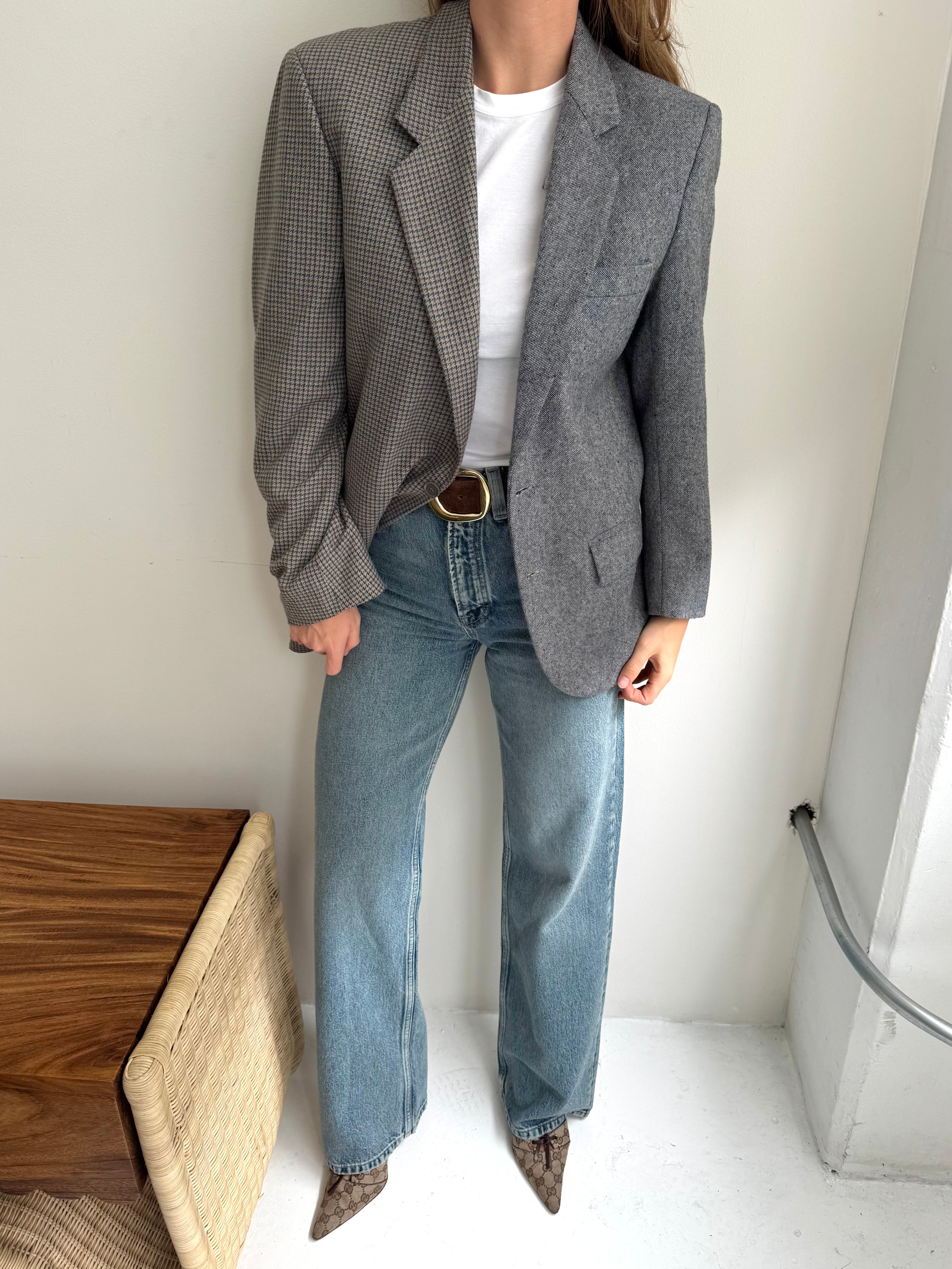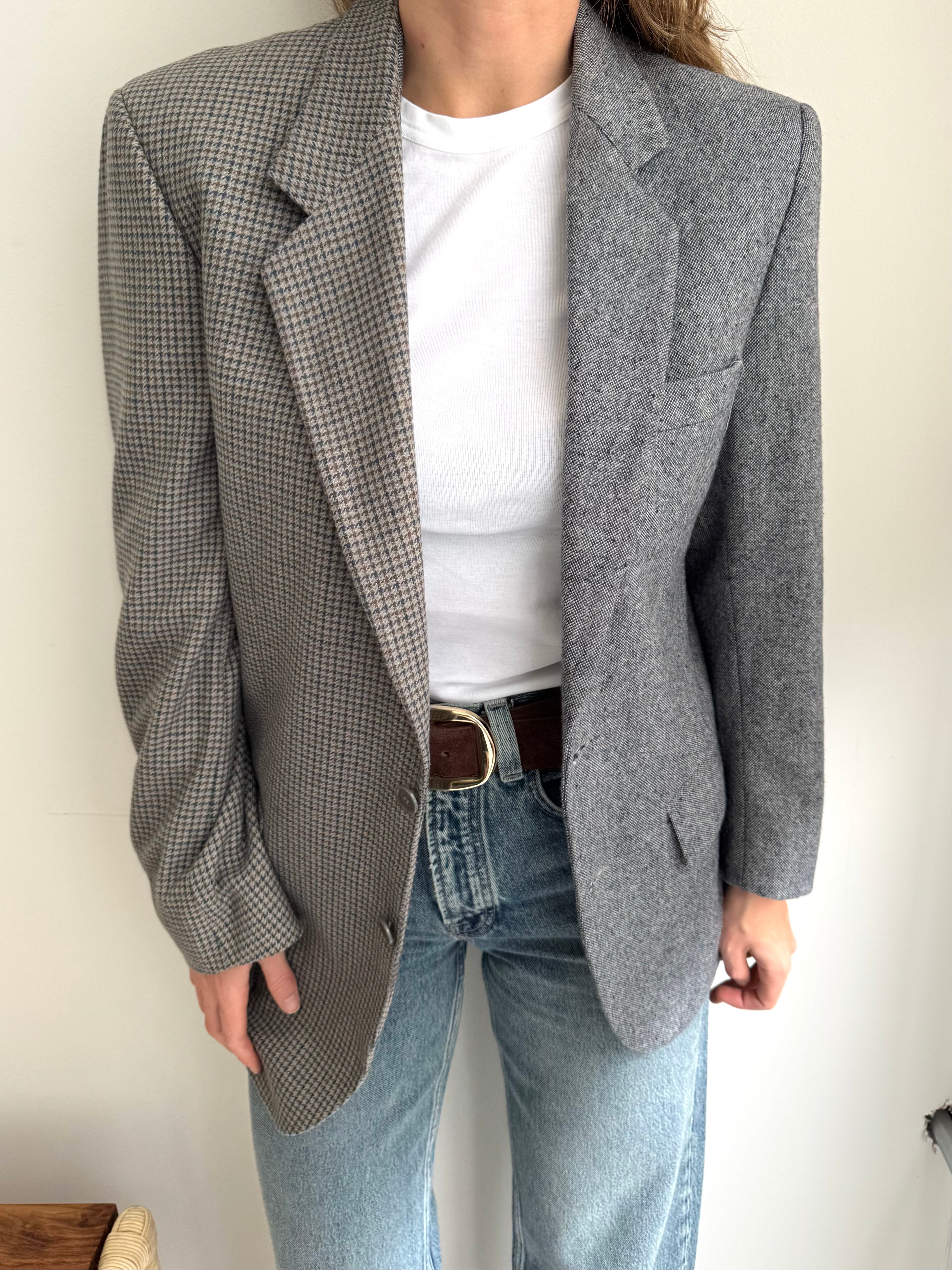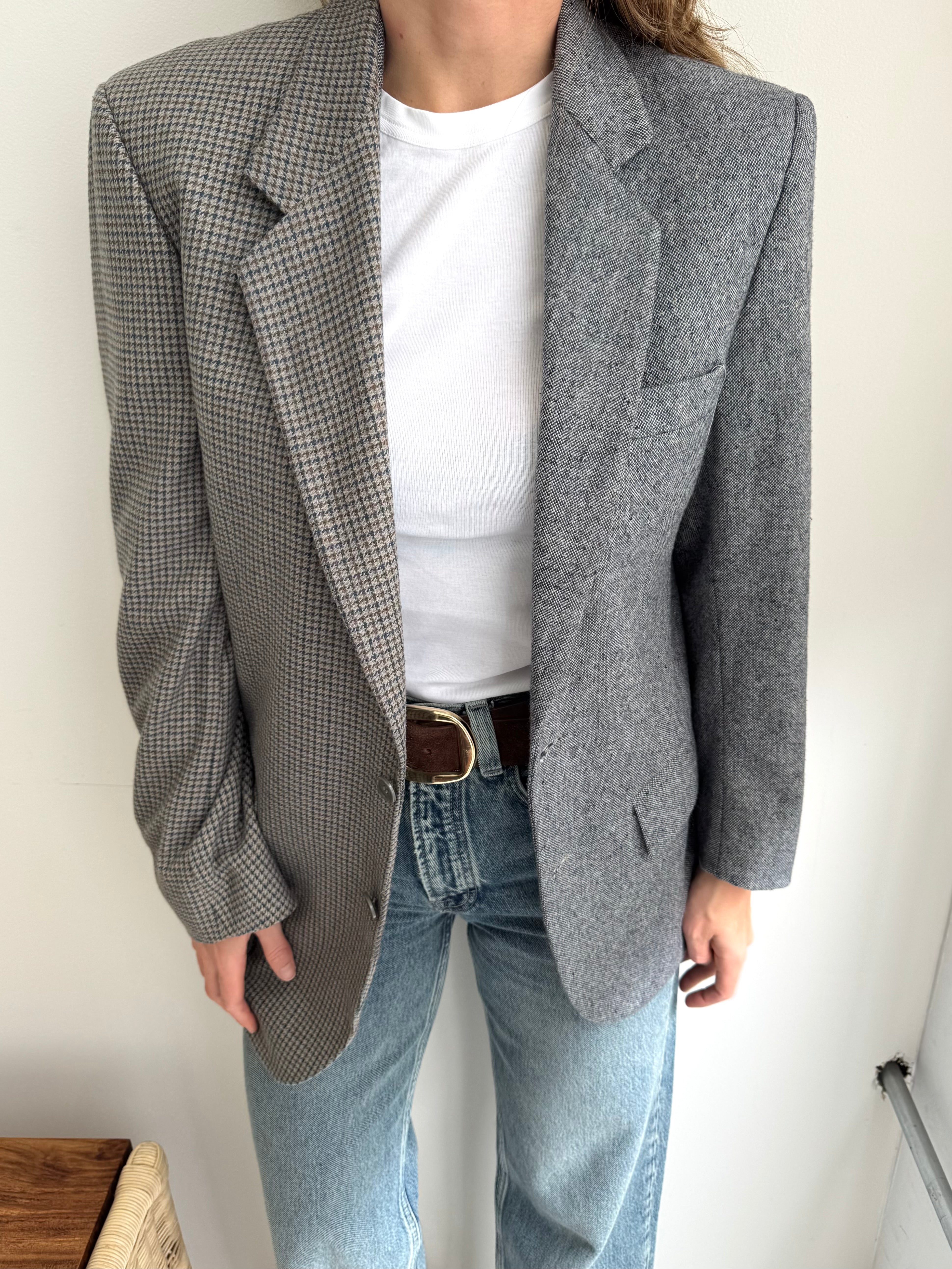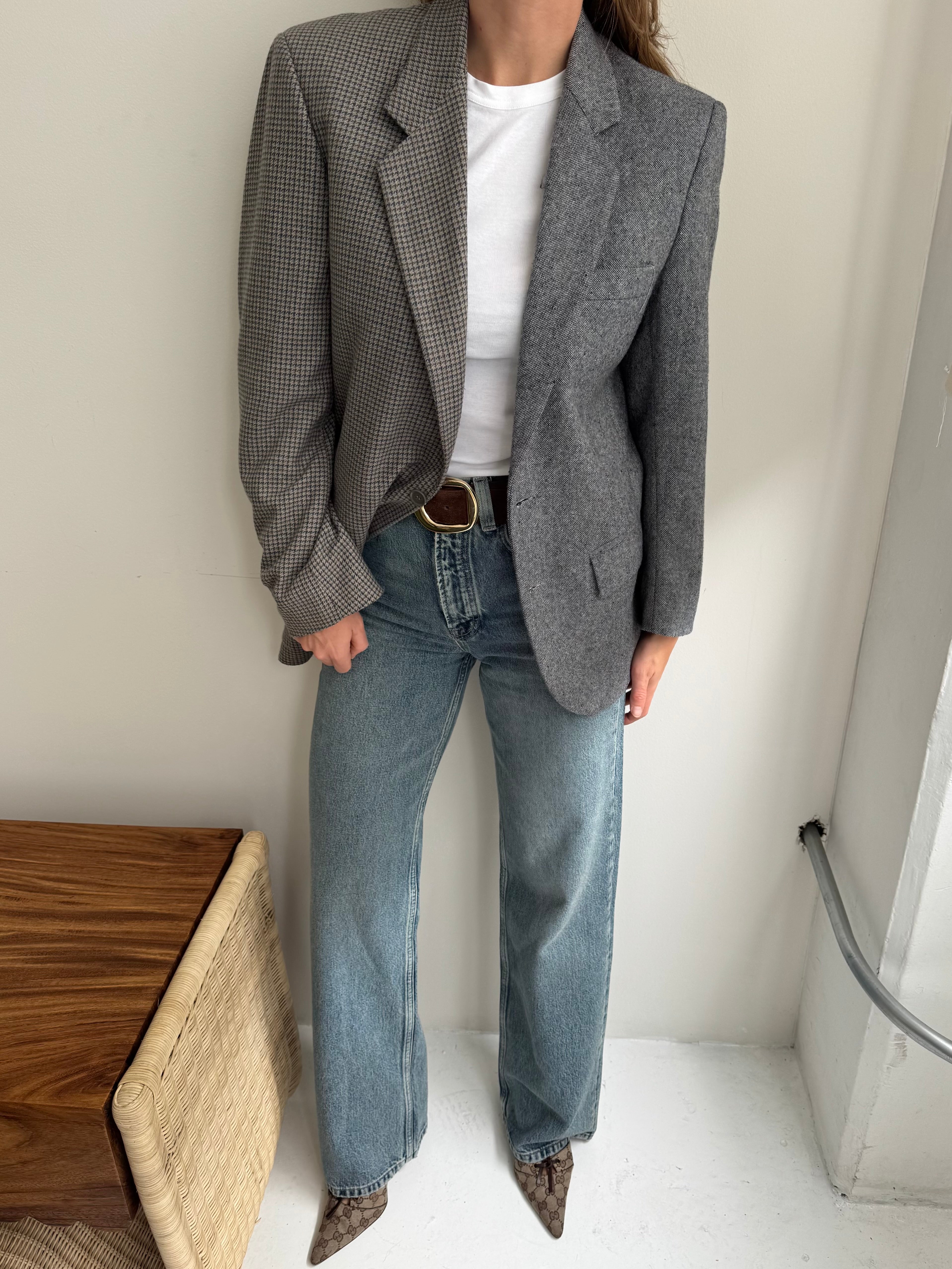 A match made in heaven. Two carefully sourced vintage blazers, made into one, adding a twist to the classic and timeless oversized blazer. Perfect for all occasions and always super versatile. Wear it with jeans or on its own, daytime or evening. Carefully curated, tailored and dry cleaned. Beautiful quality, and always made from silk, cashmere, cotton or wool. The sewing has been done well, however there may be slight differences in length/shoulder, as the jacket is made from two recycled blazers.