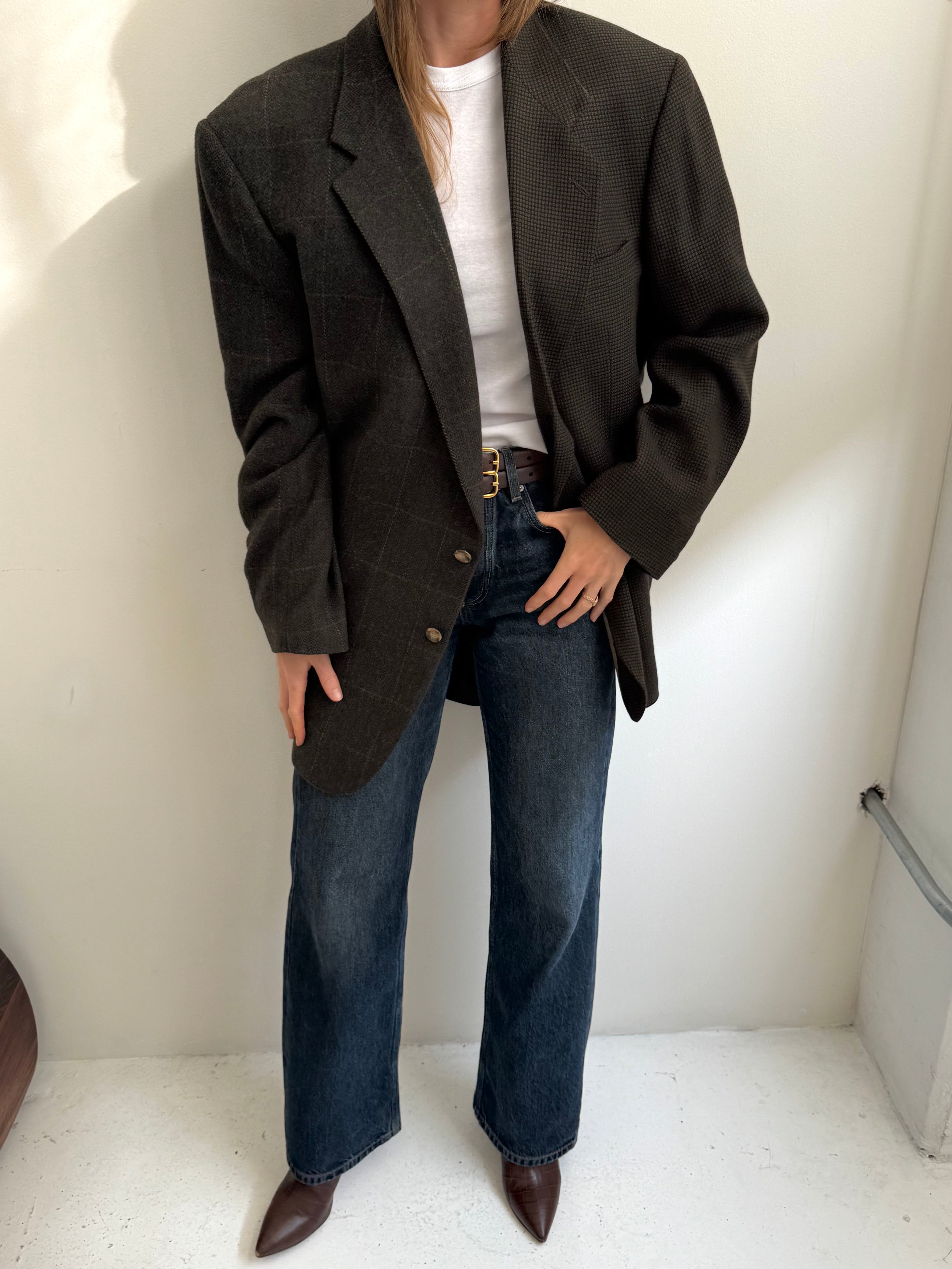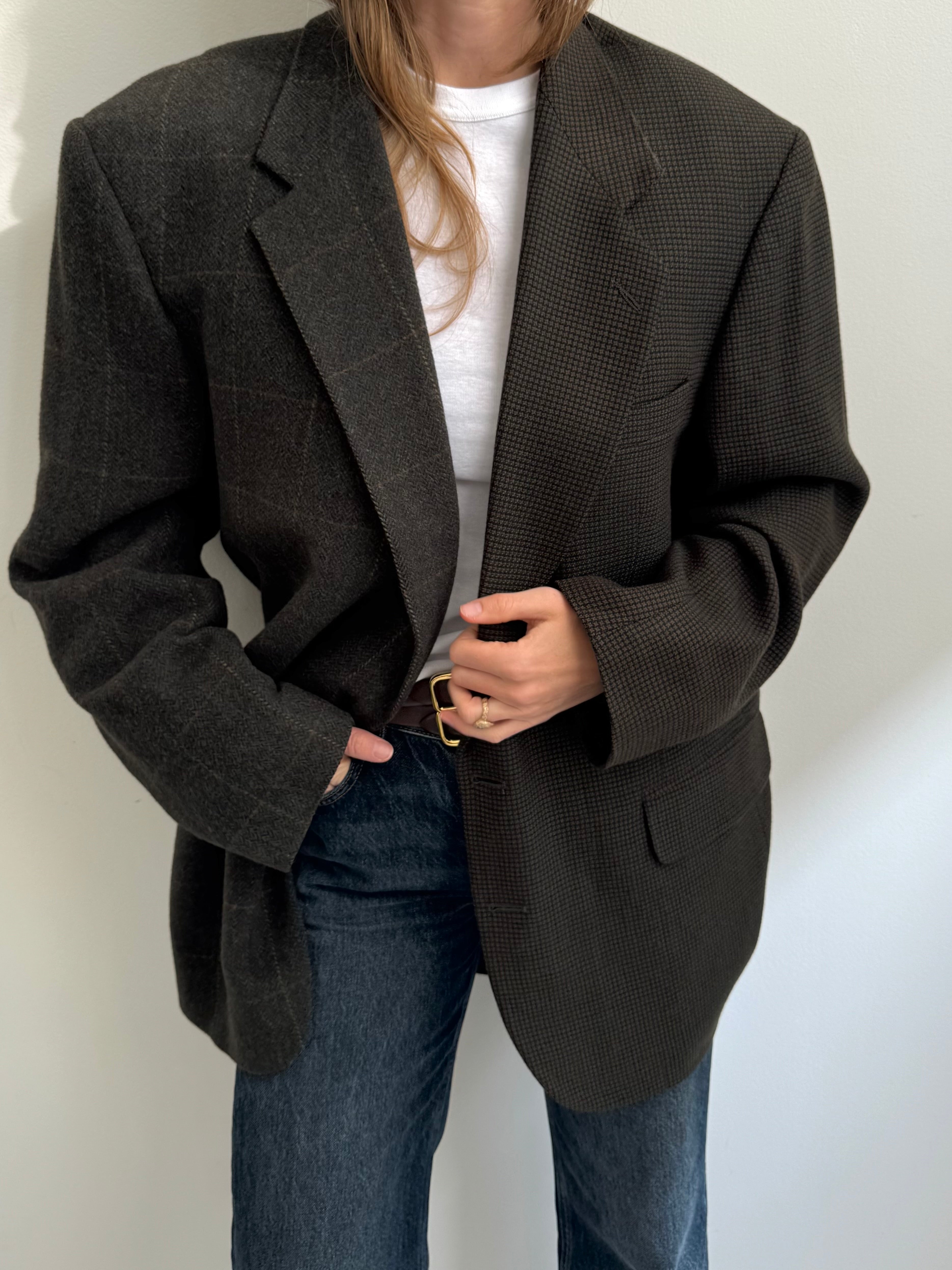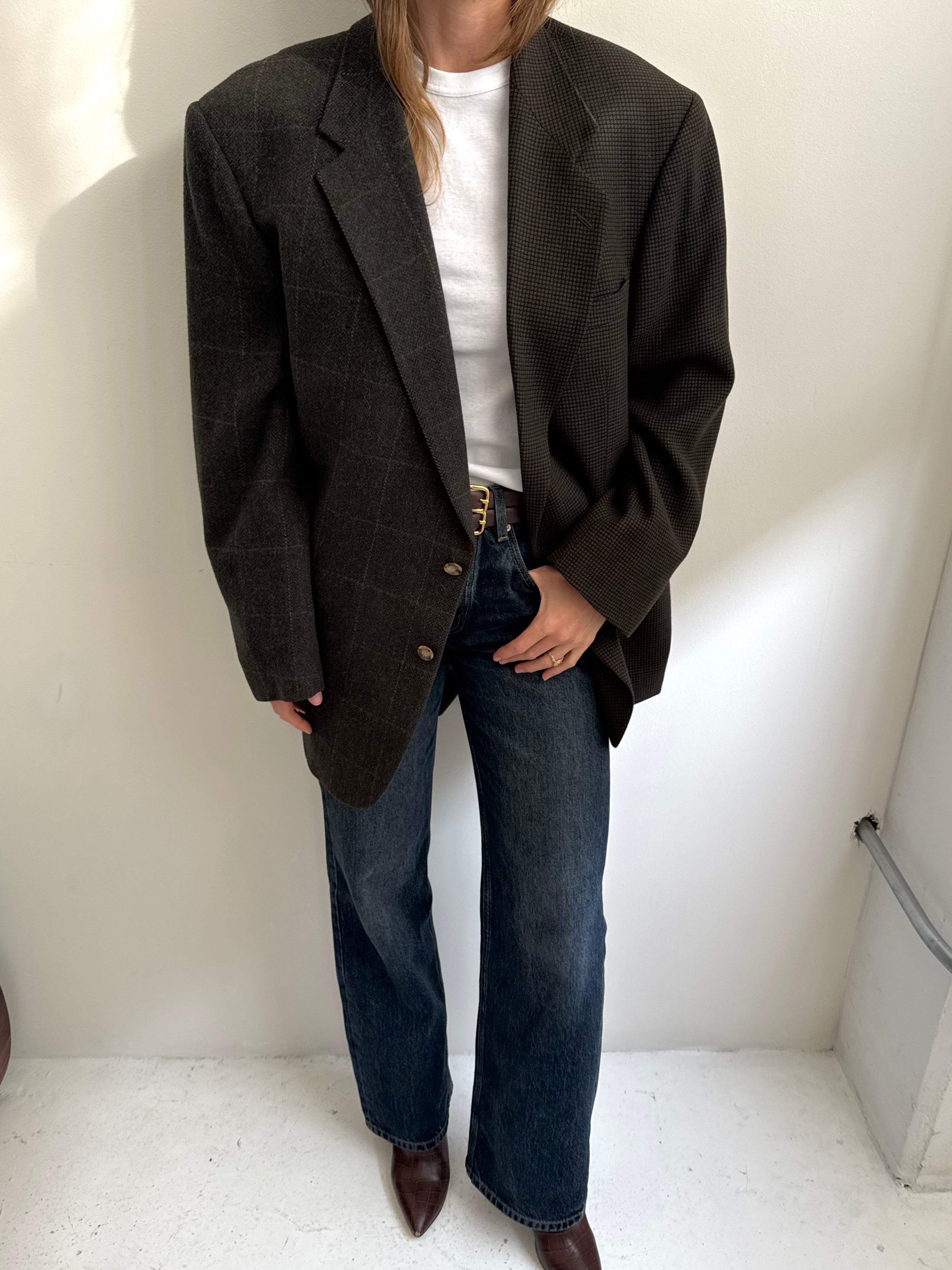 A match made in heaven. Two carefully sourced vintage blazers, made into one, adding a twist to the classic and timeless oversized blazer. Perfect for all occasions and always super versatile. Wear it with jeans or on its own, daytime or evening. Carefully curated, tailored and dry cleaned. Beautiful quality, and always made from silk, cashmere, cotton or wool. The sewing has been done well, however there may be slight differences in length/shoulder, as the jacket is made from two recycled blazers.