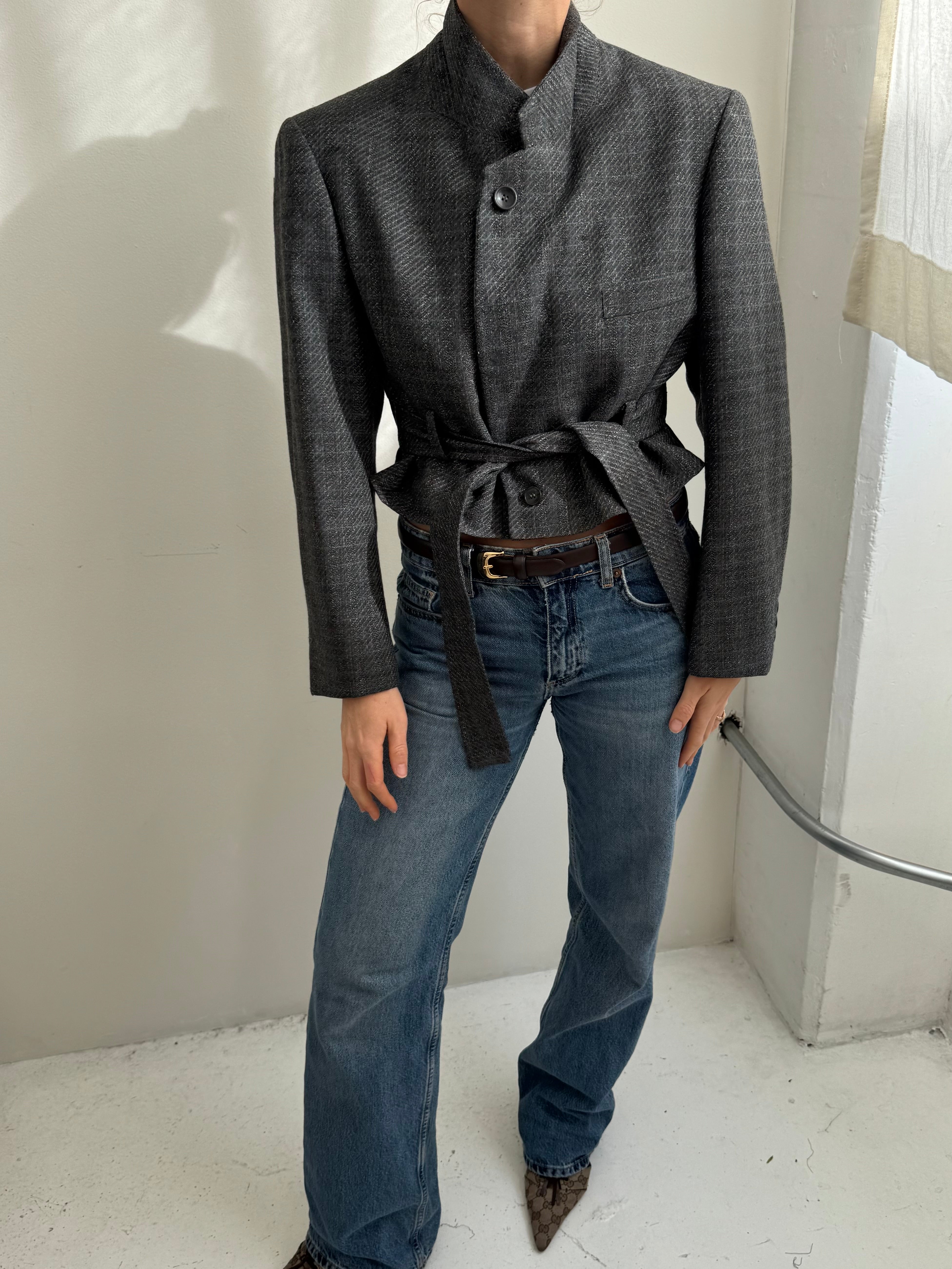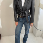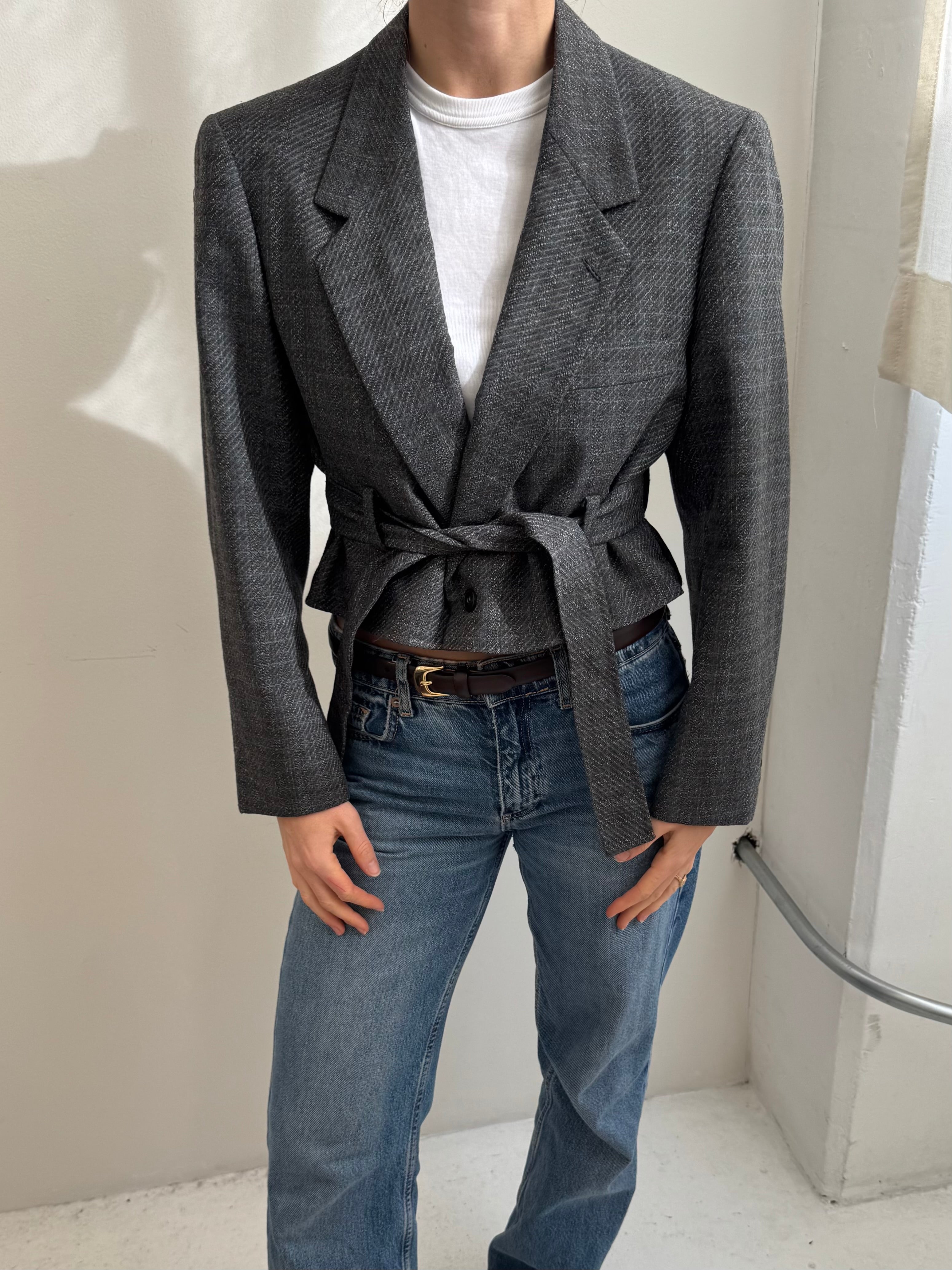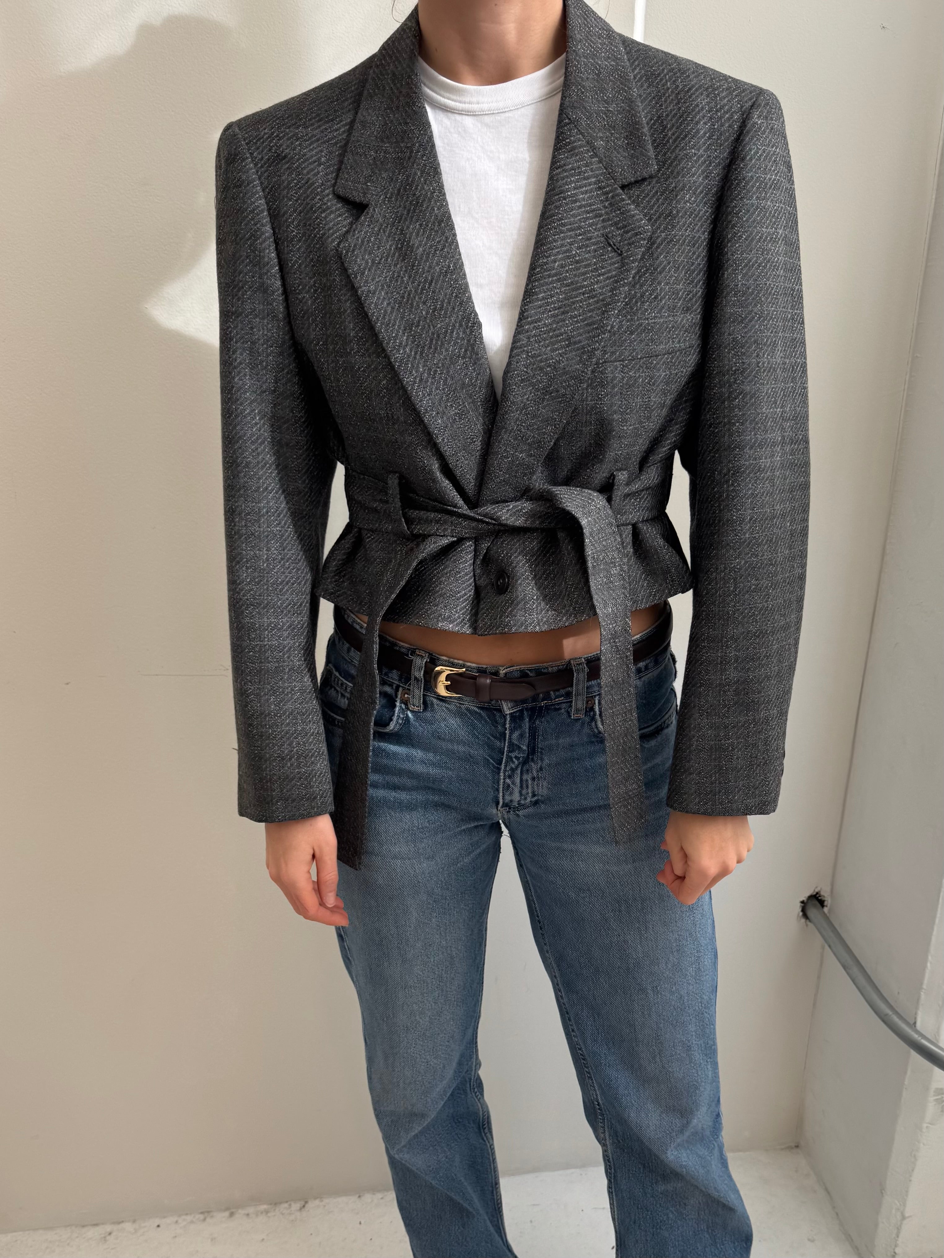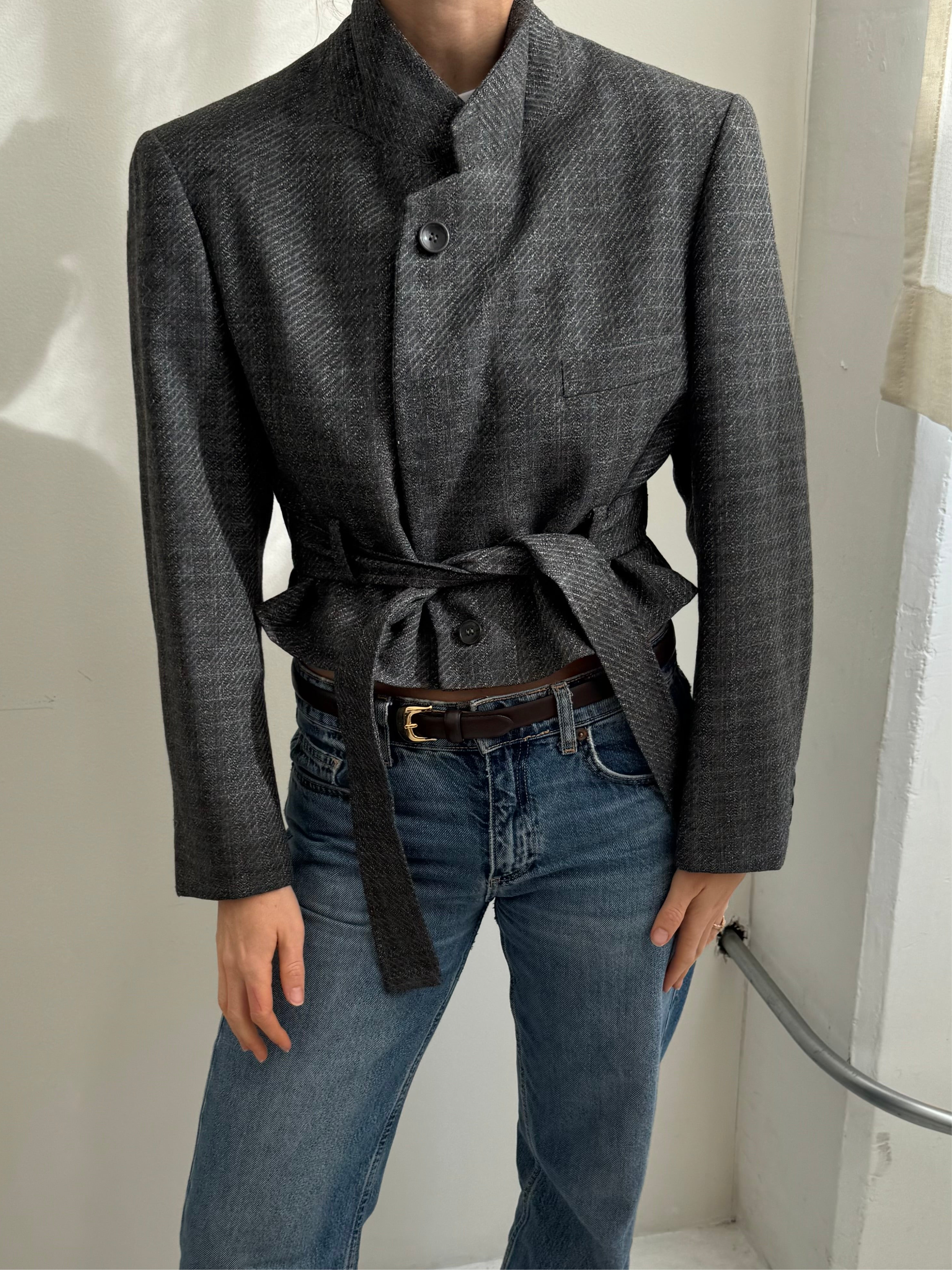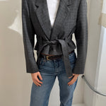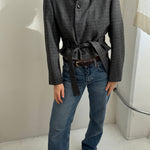 Belted blazer in textured grey