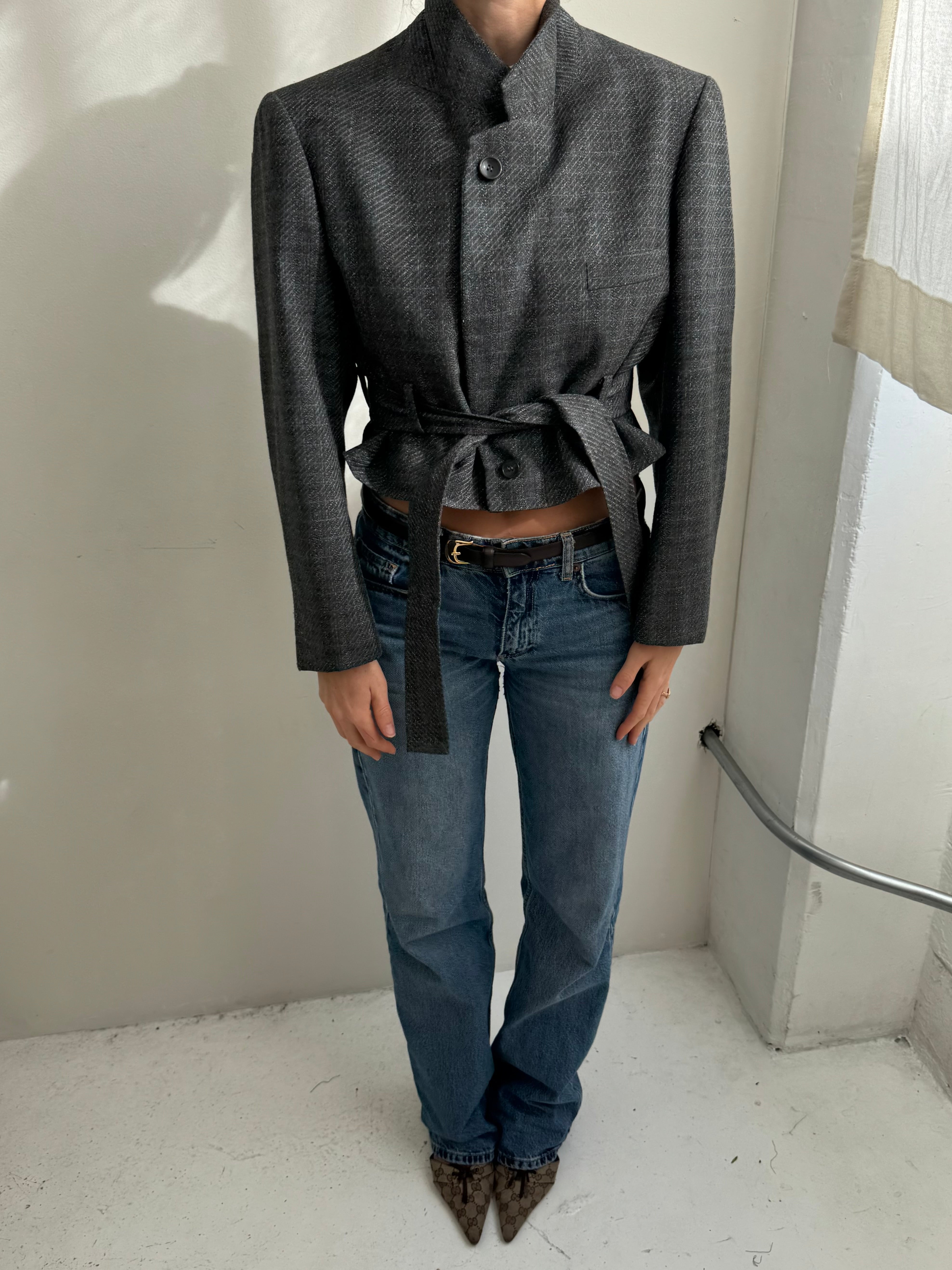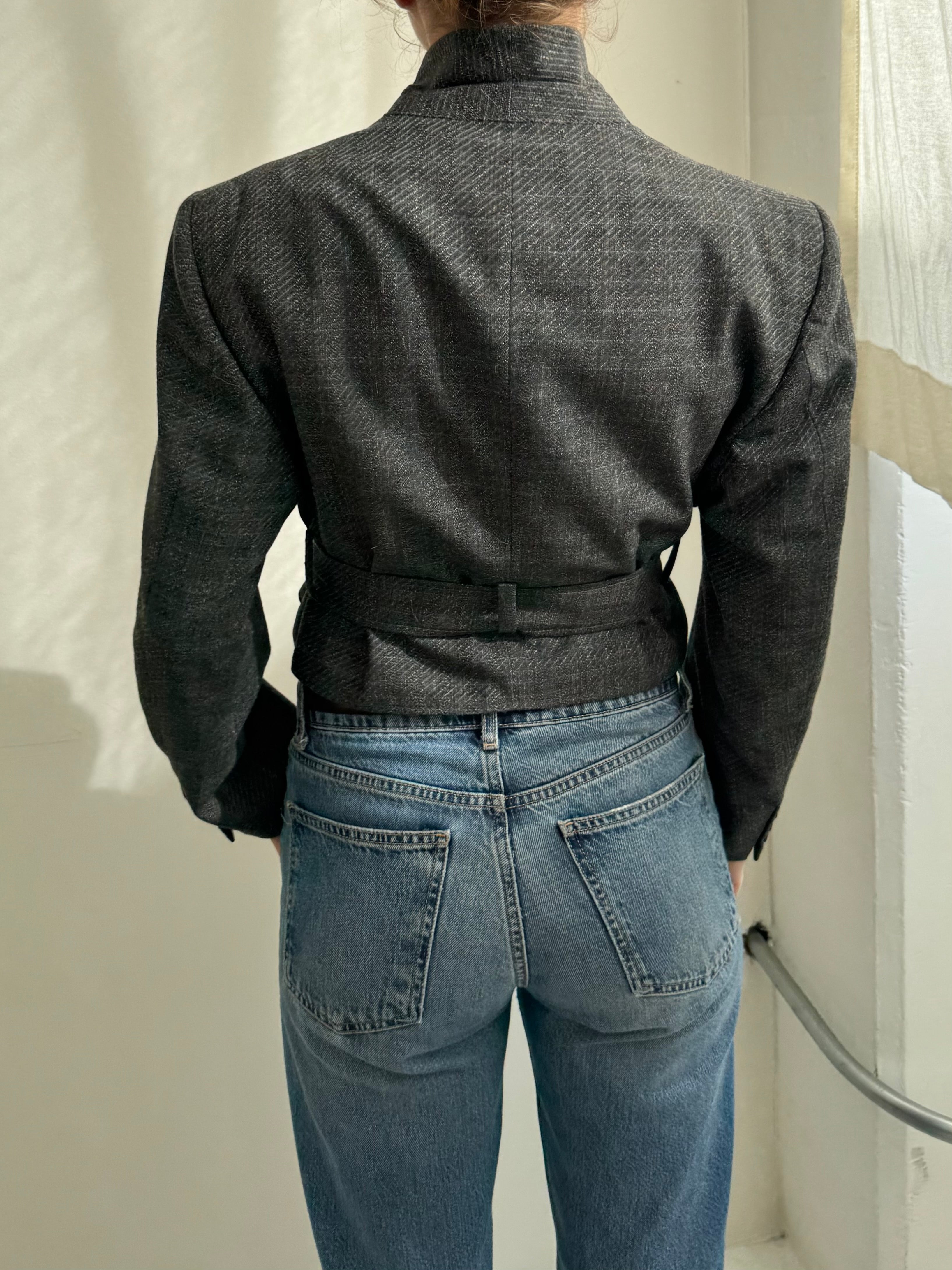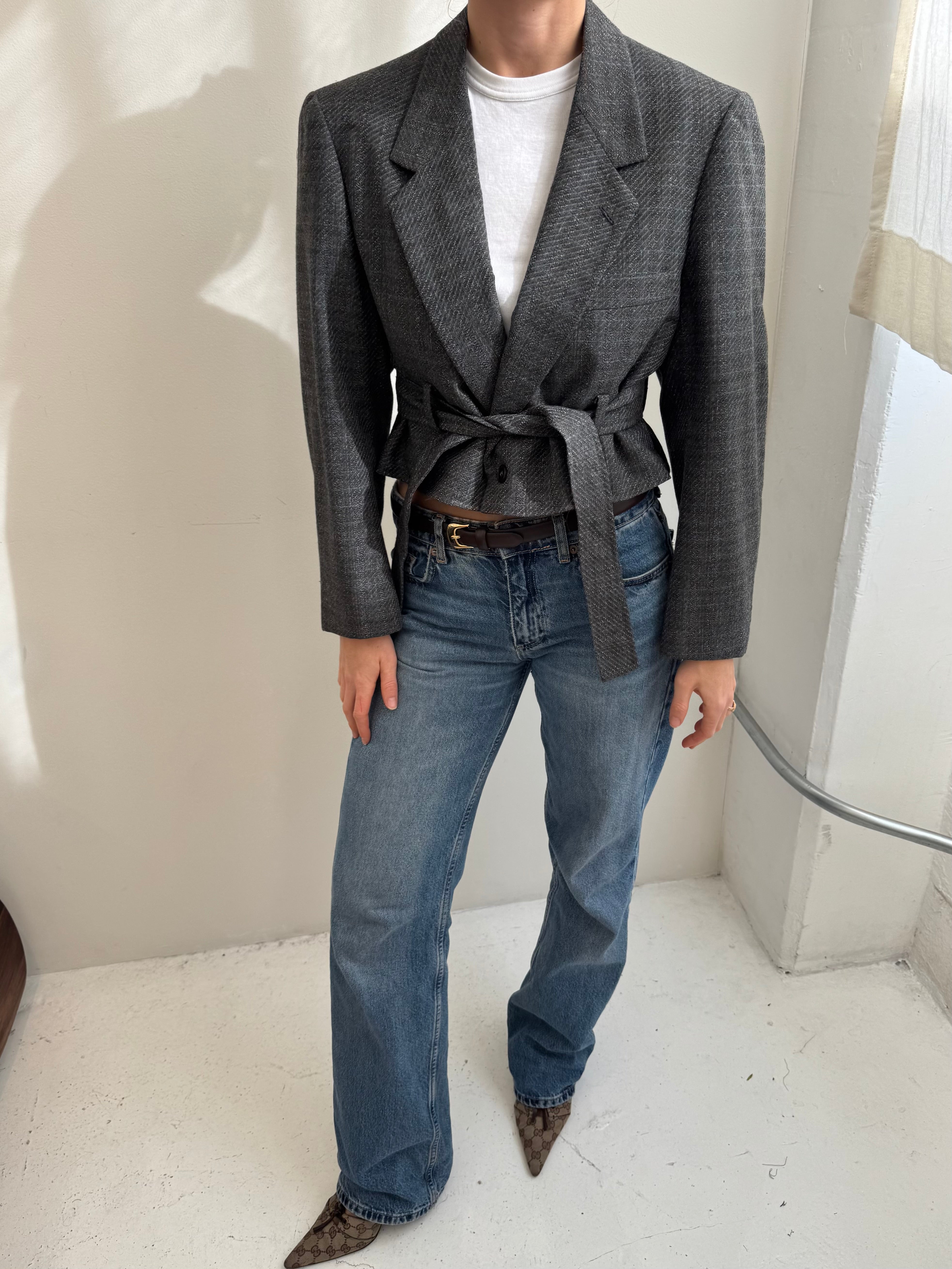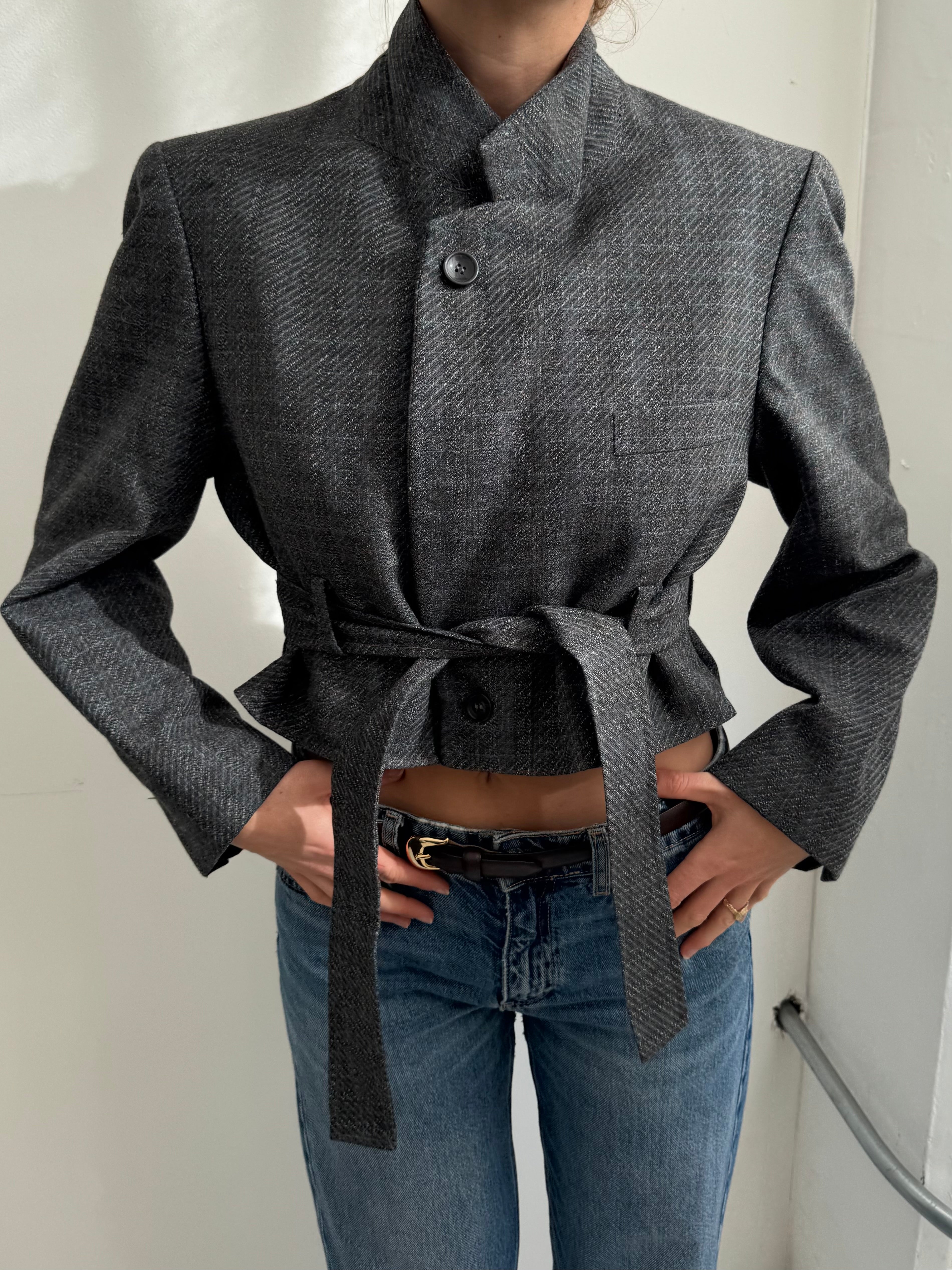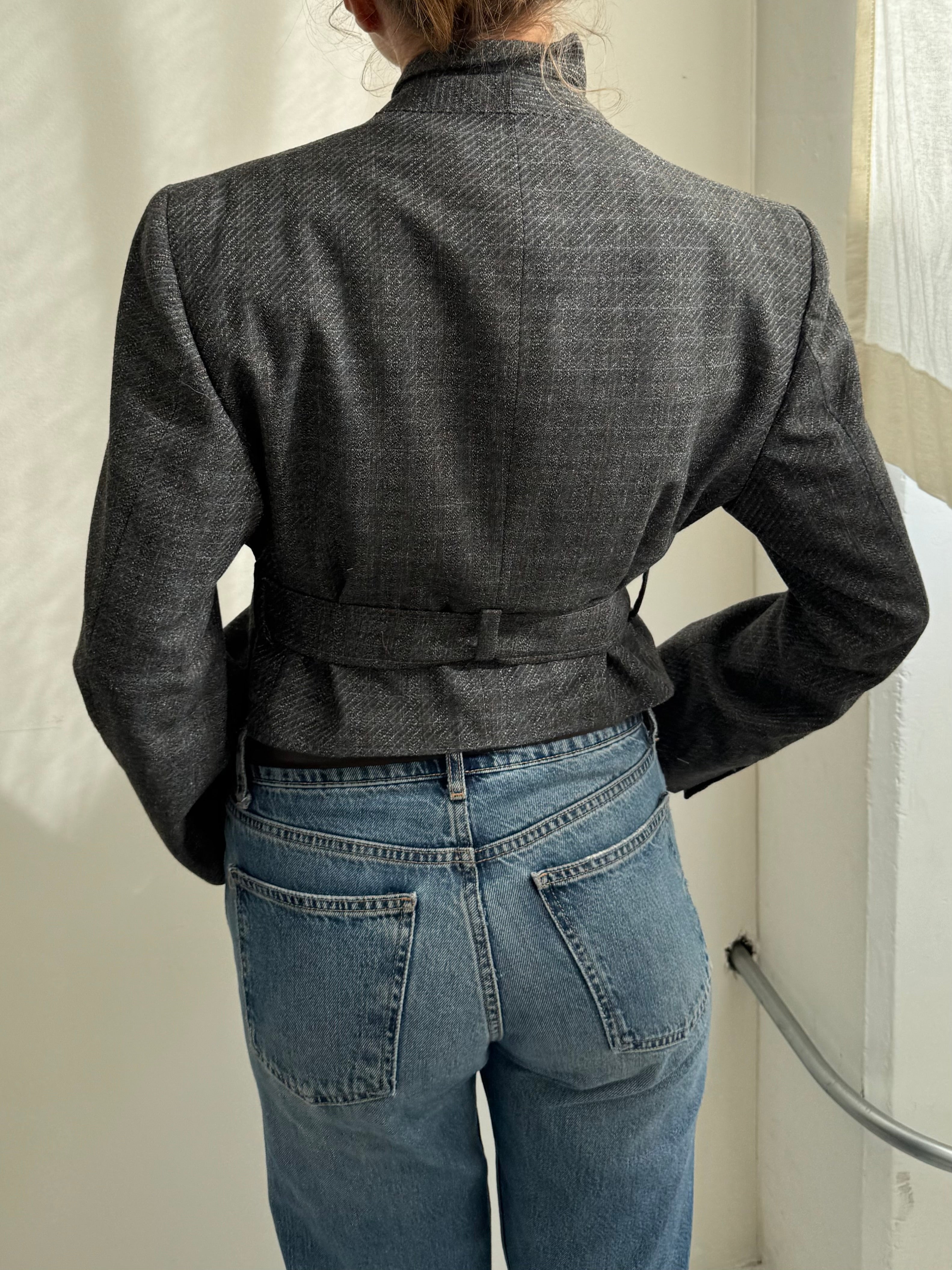 Belted blazer in textured grey