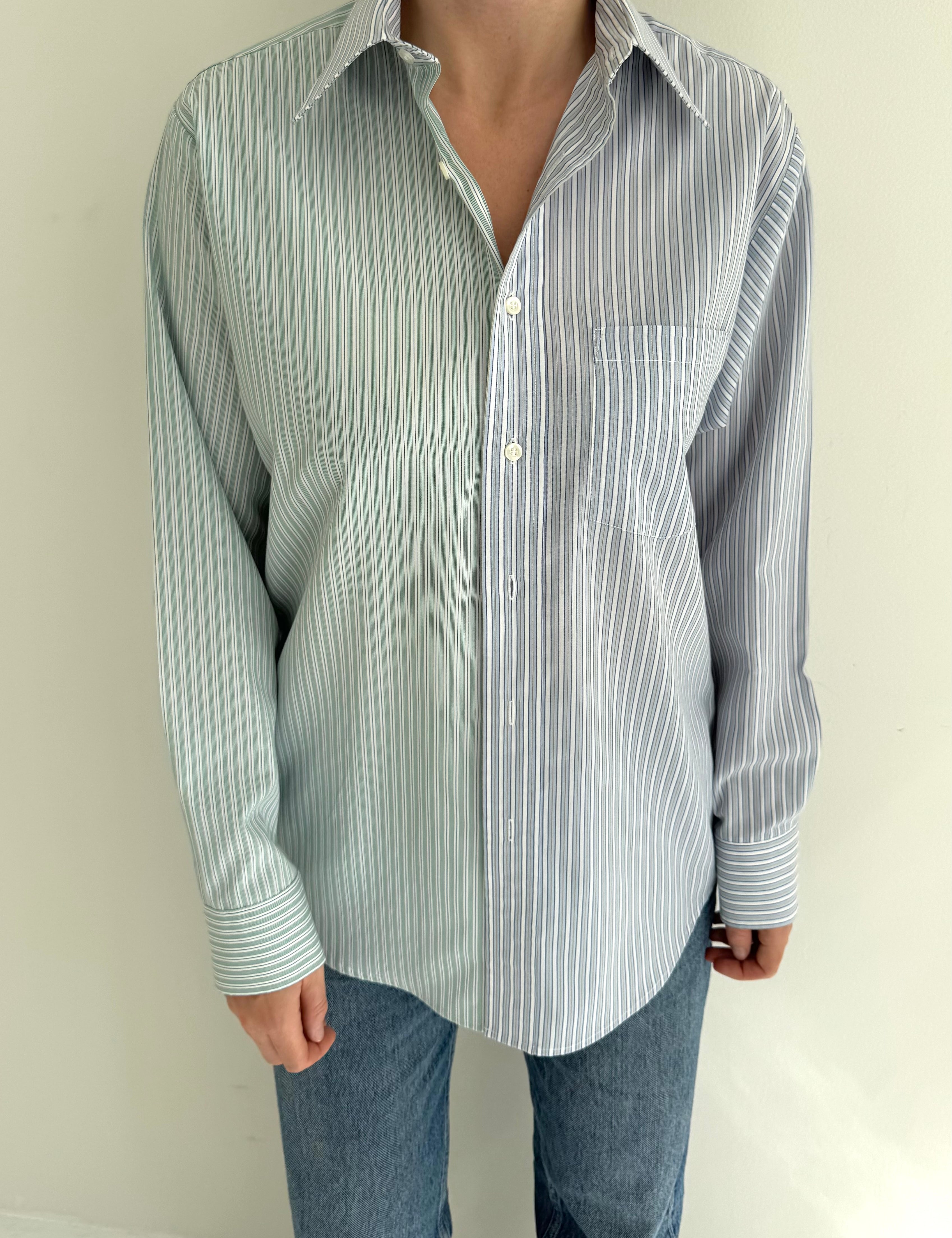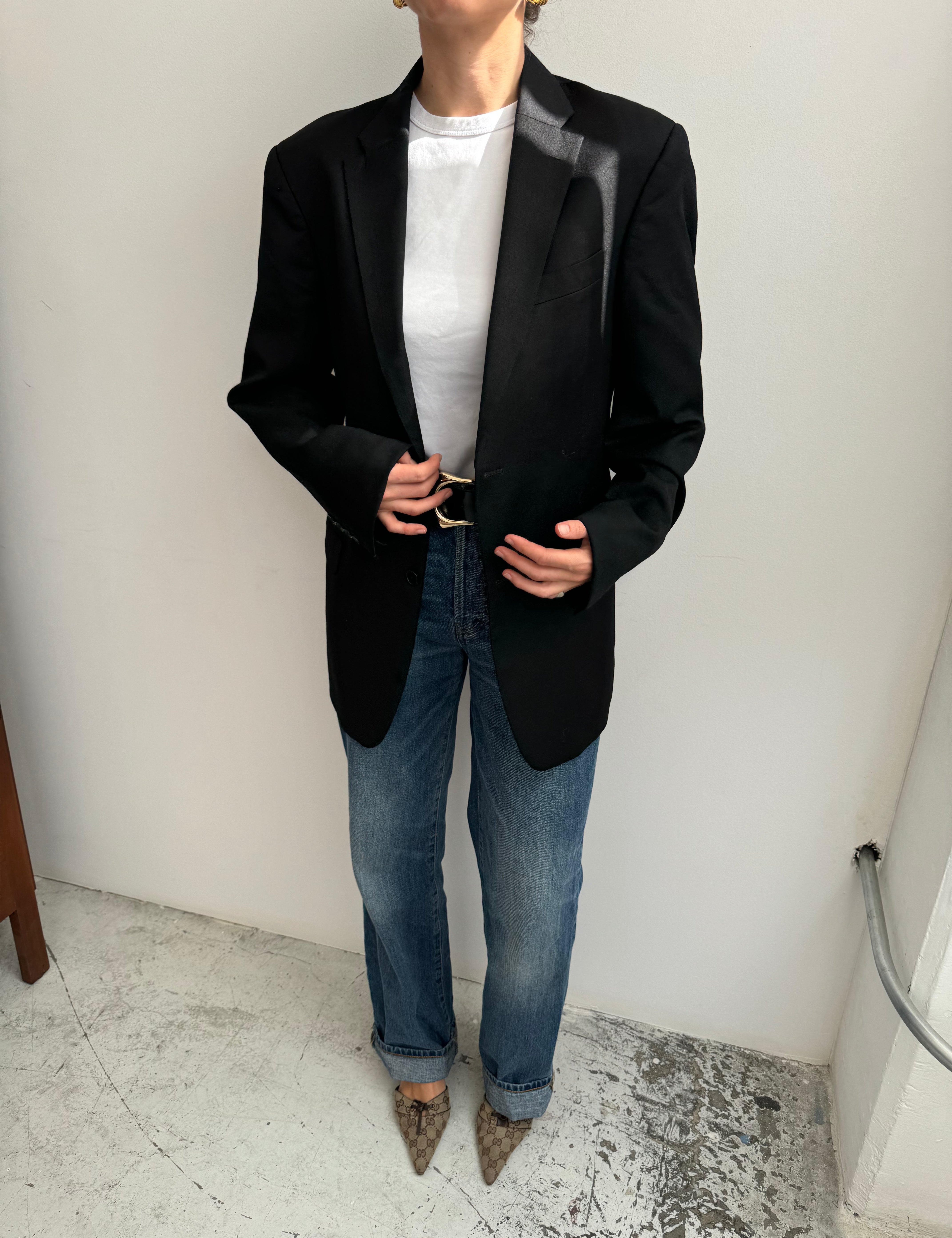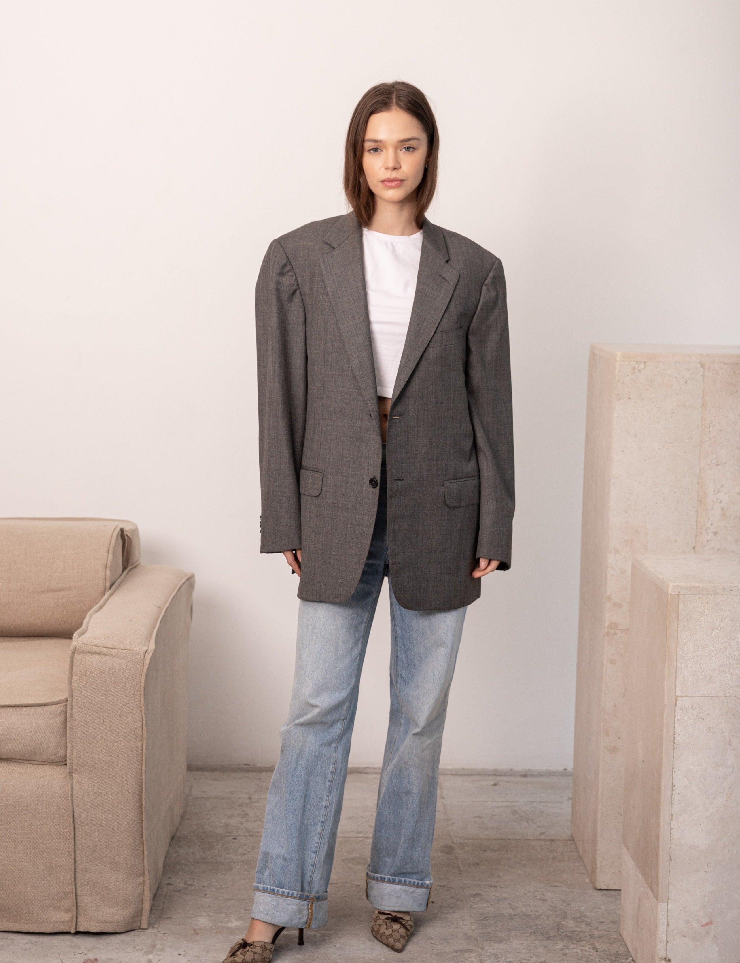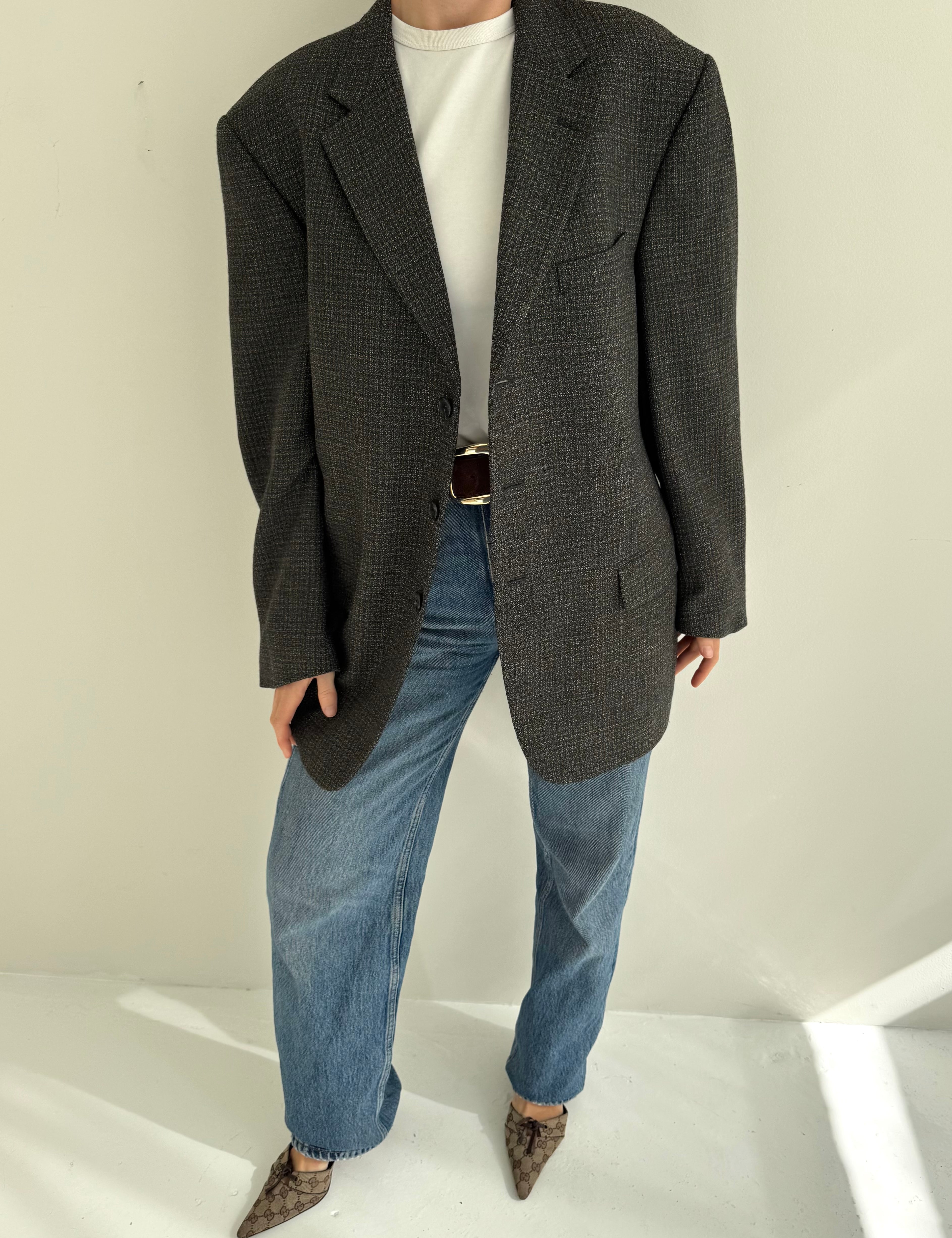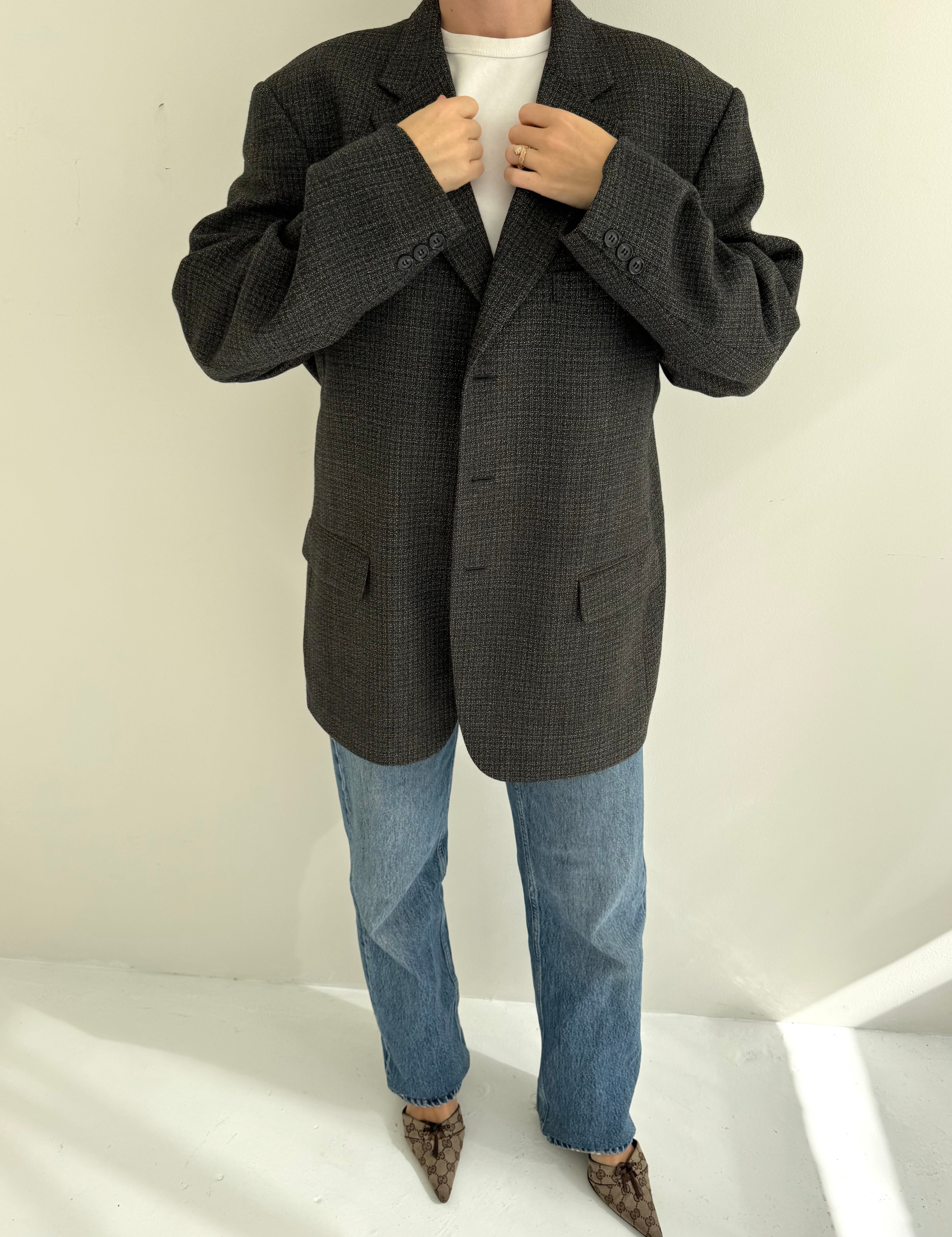 A match made in heaven. Two carefully sourced vintage blazers, made into one, adding a twist to the classic and timeless oversized blazer. Perfect for all occasions and always super versatile. Wear it with jeans or on its own, daytime or evening. Carefully curated, tailored and dry cleaned. Beautiful quality, and always made from silk, cashmere, cotton or wool.The sewing has been done well, however there may be slight differences in length/shoulder, as the jacket is made from two recycled blazers.