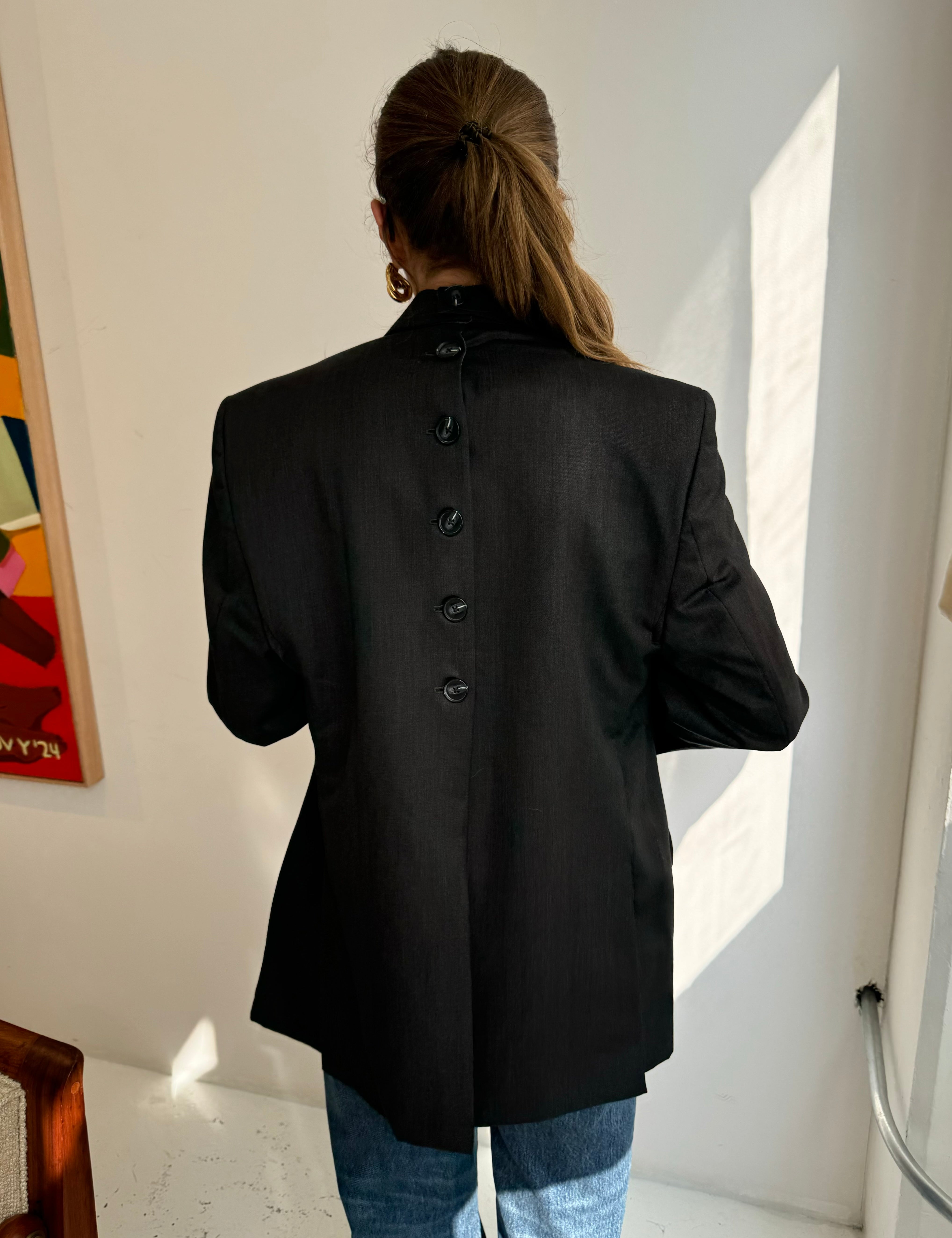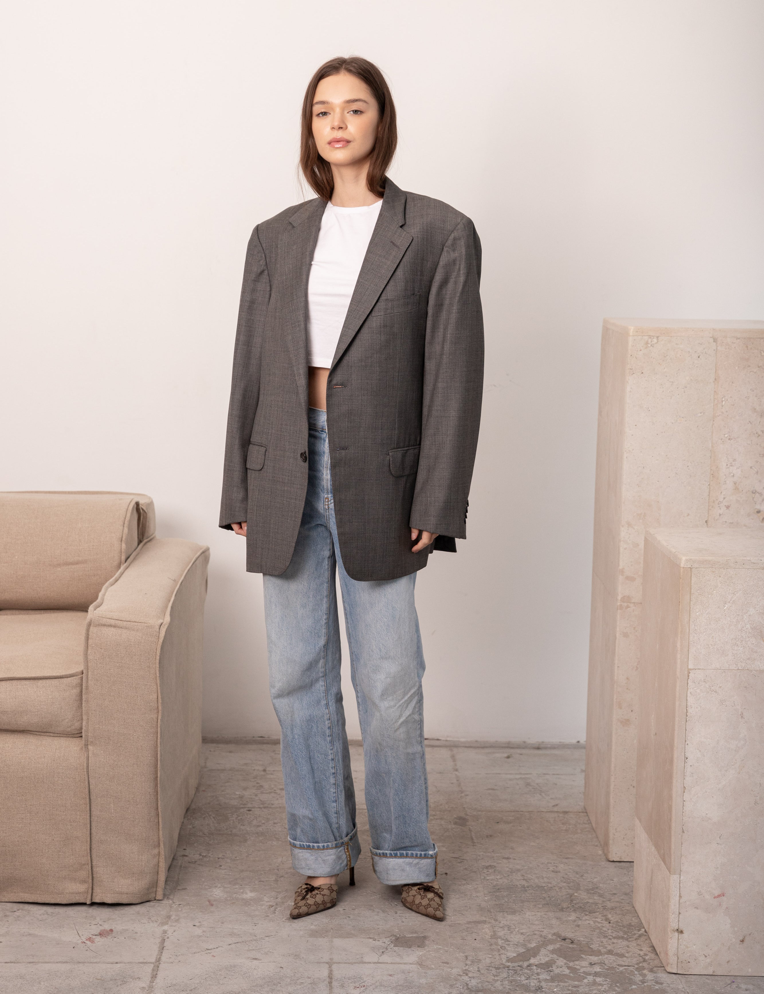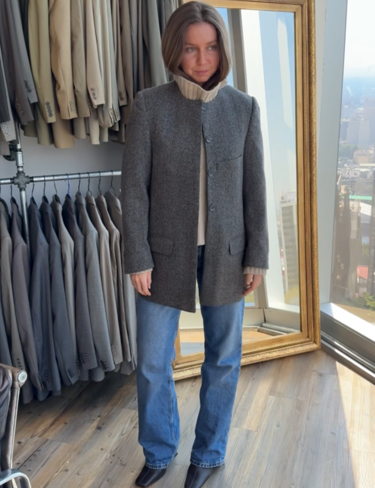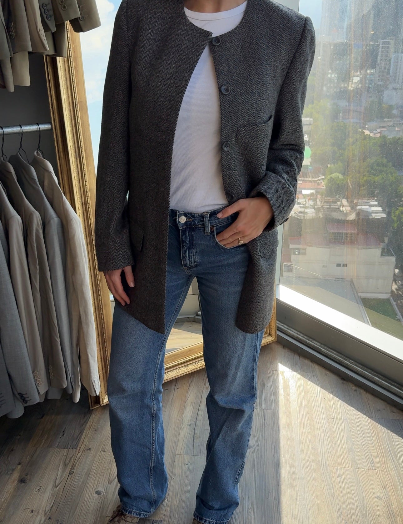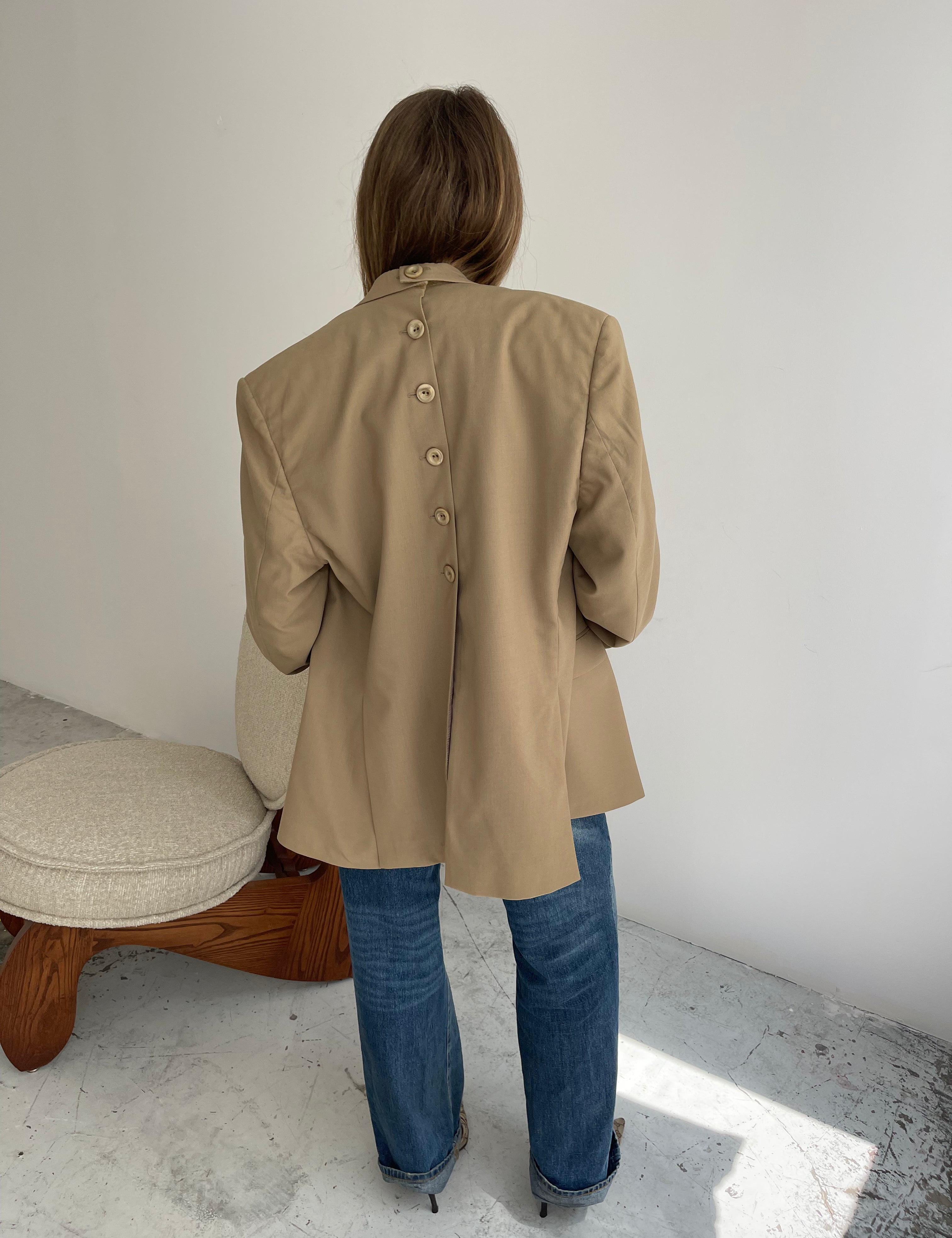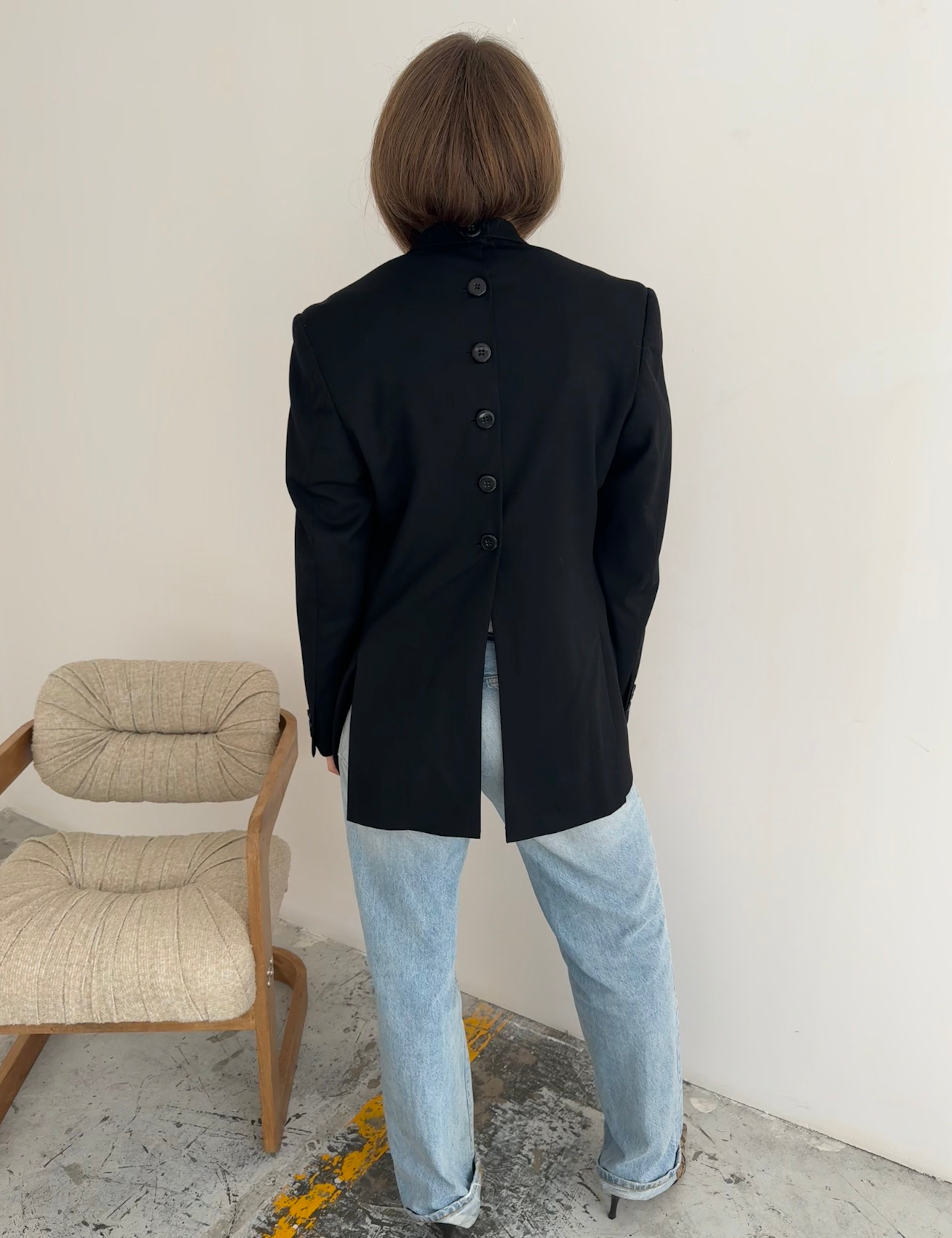 A match made in heaven. Two carefully sourced vintage blazers, made into one, adding a twist to the classic and timeless oversized blazer. Perfect for all occasions and always super versatile. Wear it with jeans or on its own, daytime or evening. Carefully curated, tailored and dry cleaned. Beautiful quality, and always made from silk, cashmere, cotton or wool.The sewing has been done well, however there may be slight differences in length/shoulder, as the jacket is made from two recycled blazers.