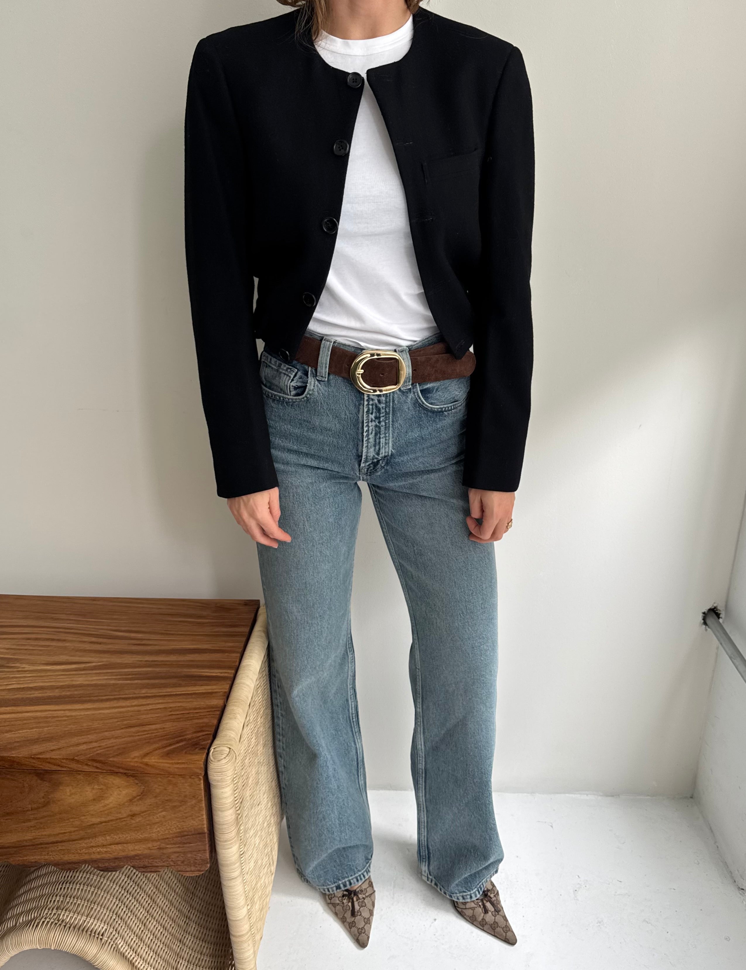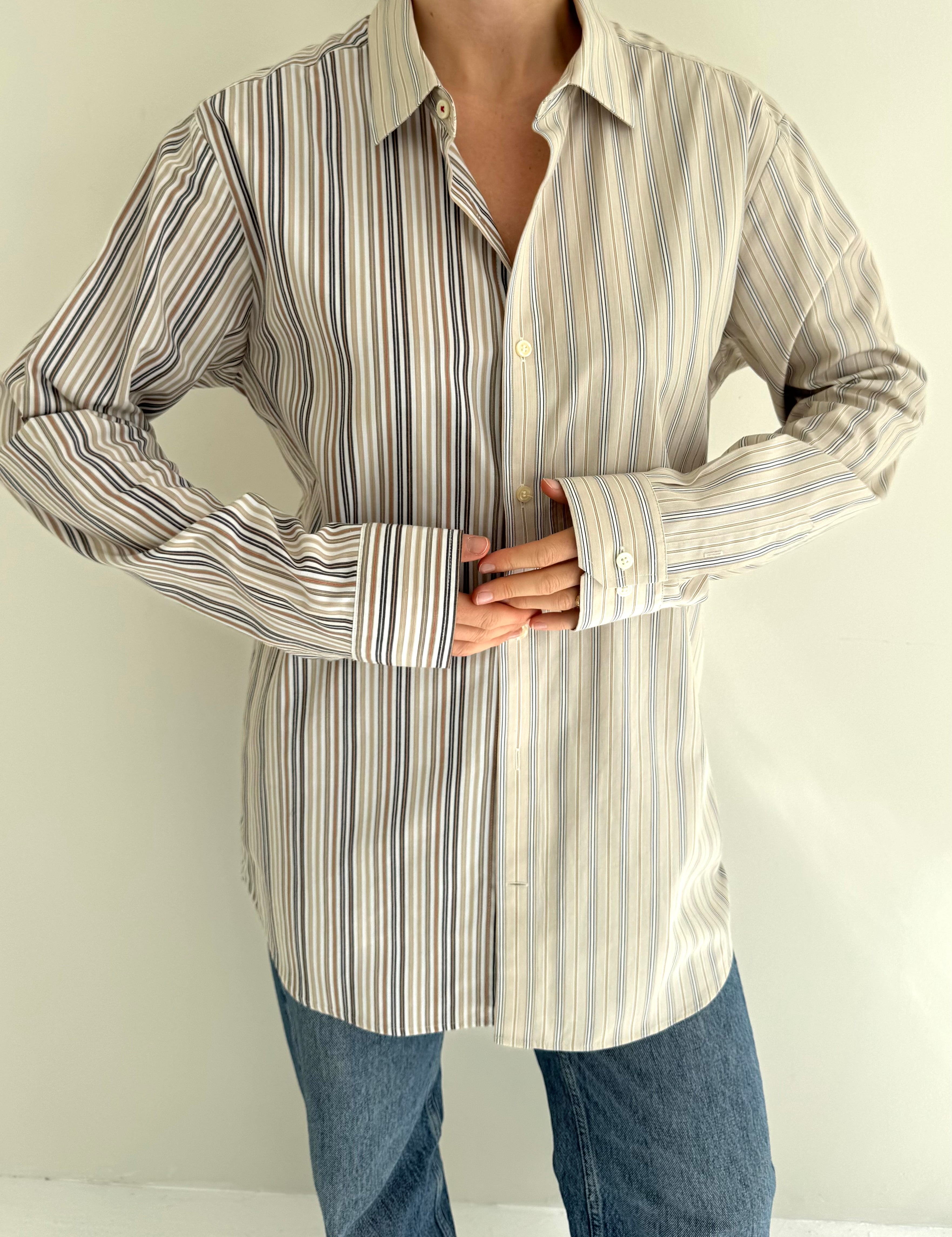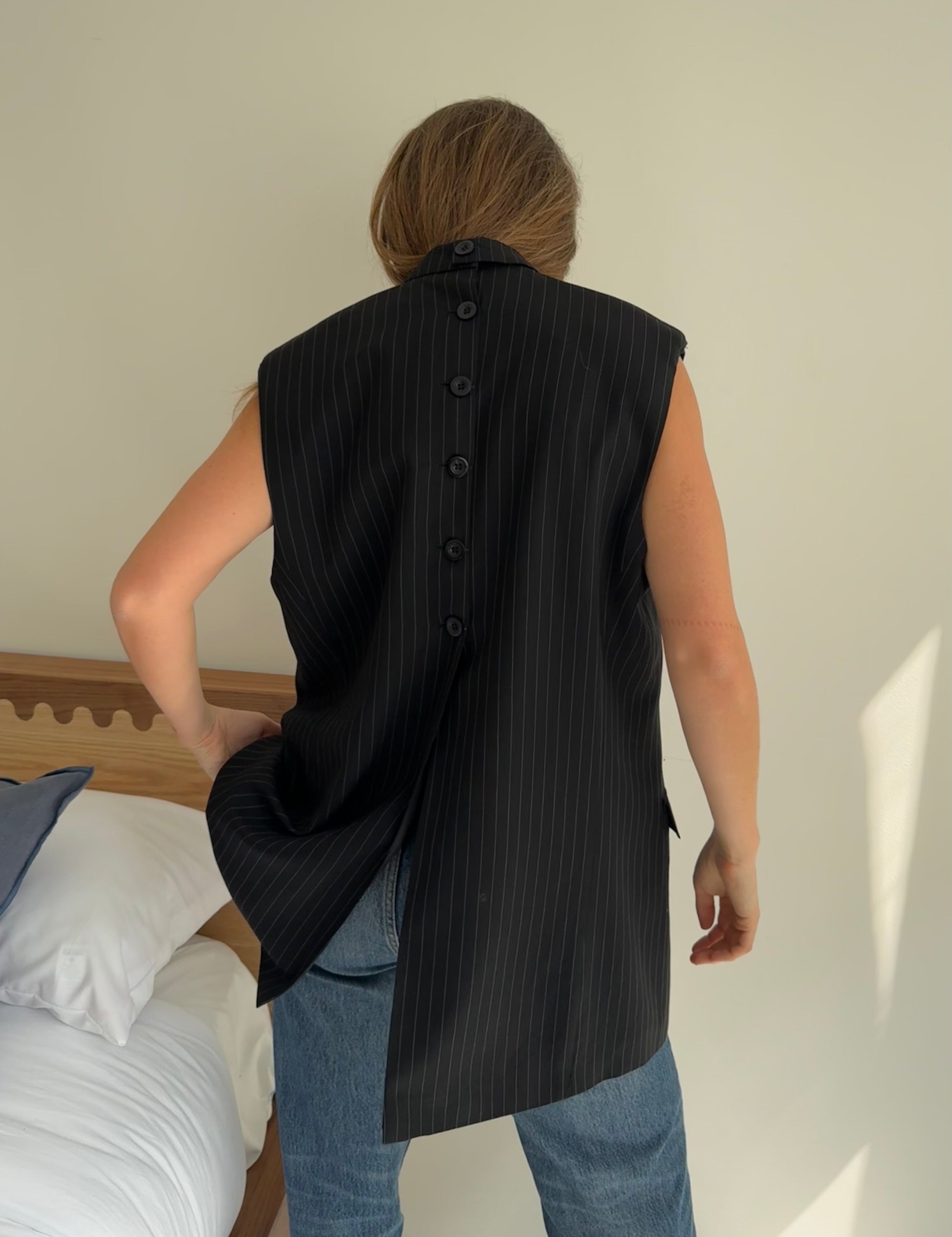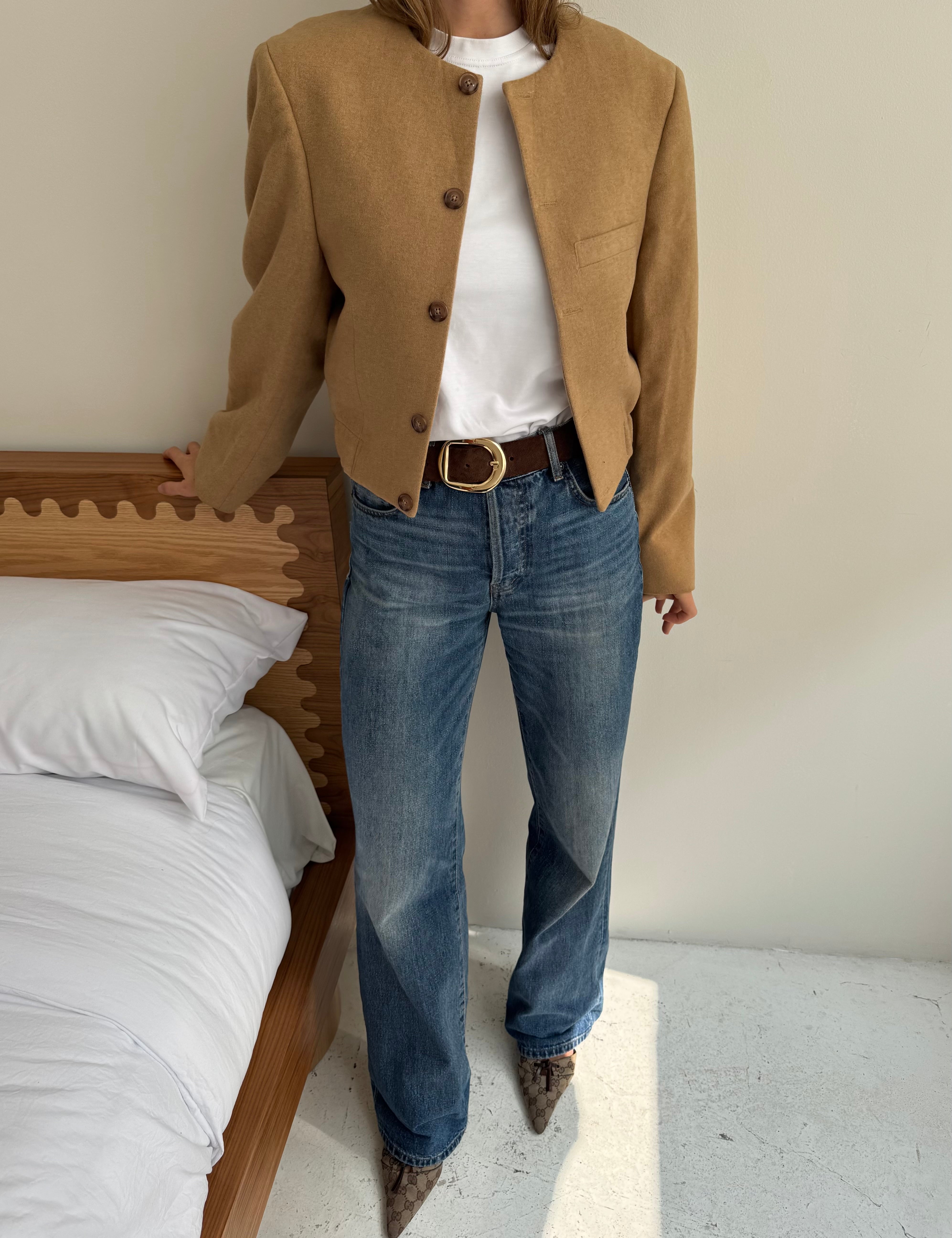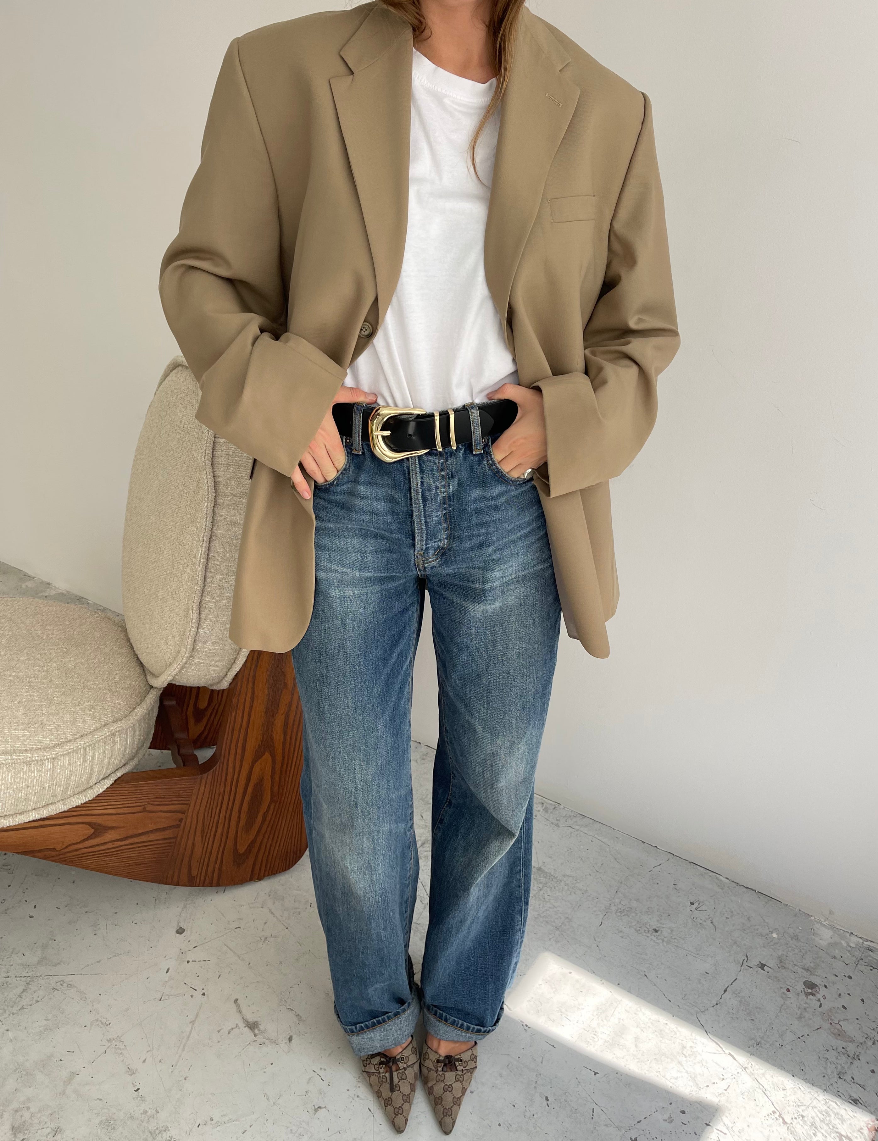 A match made in heaven. Two carefully sourced vintage blazers, made into one, adding a twist to the classic and timeless oversized blazer. Perfect for all occasions and always super versatile. Wear it with jeans or on its own, daytime or evening. Carefully curated, tailored and dry cleaned. Beautiful quality, and always made from silk, cashmere, cotton or wool.The sewing has been done well, however there may be slight differences in length/shoulder, as the jacket is made from two recycled blazers.