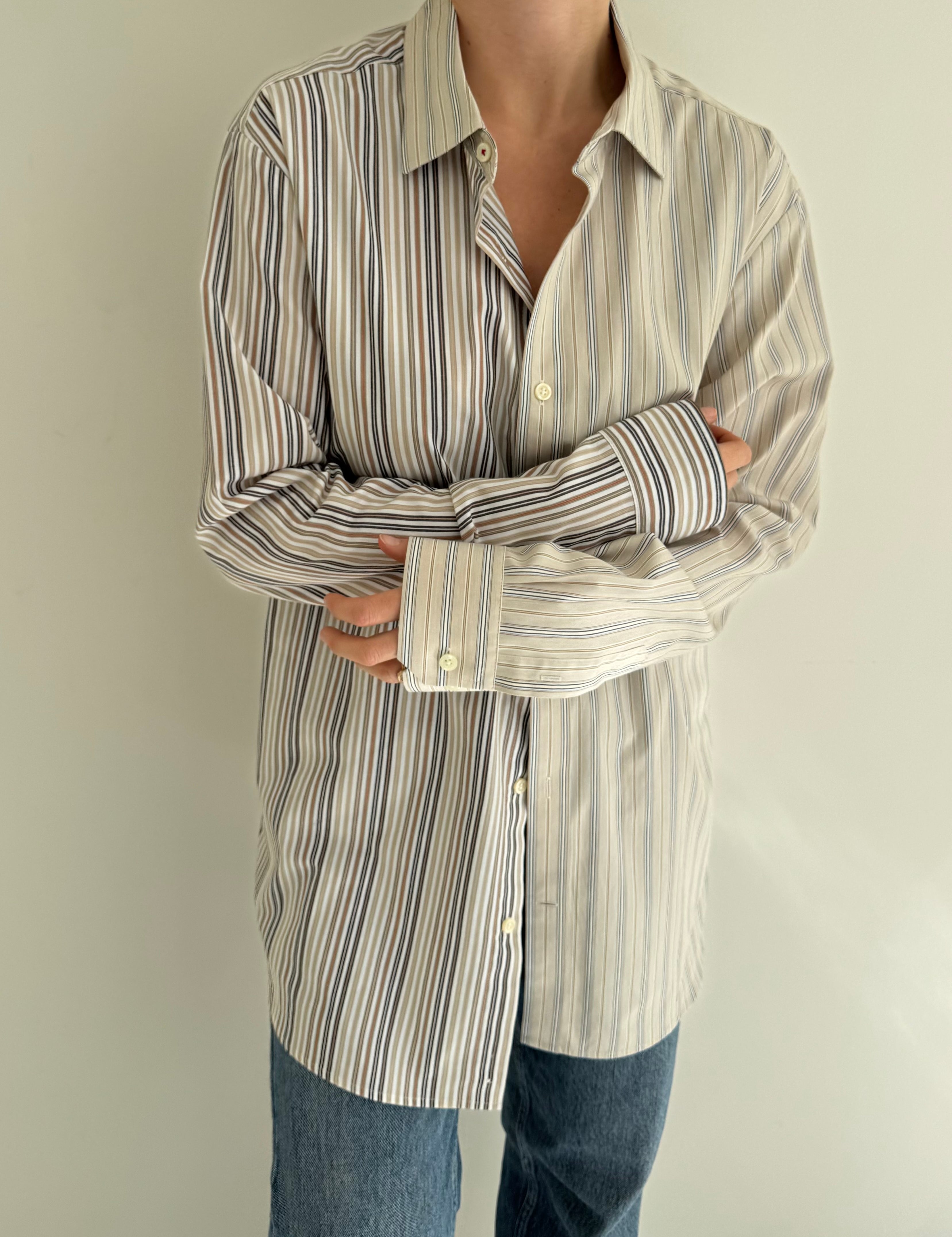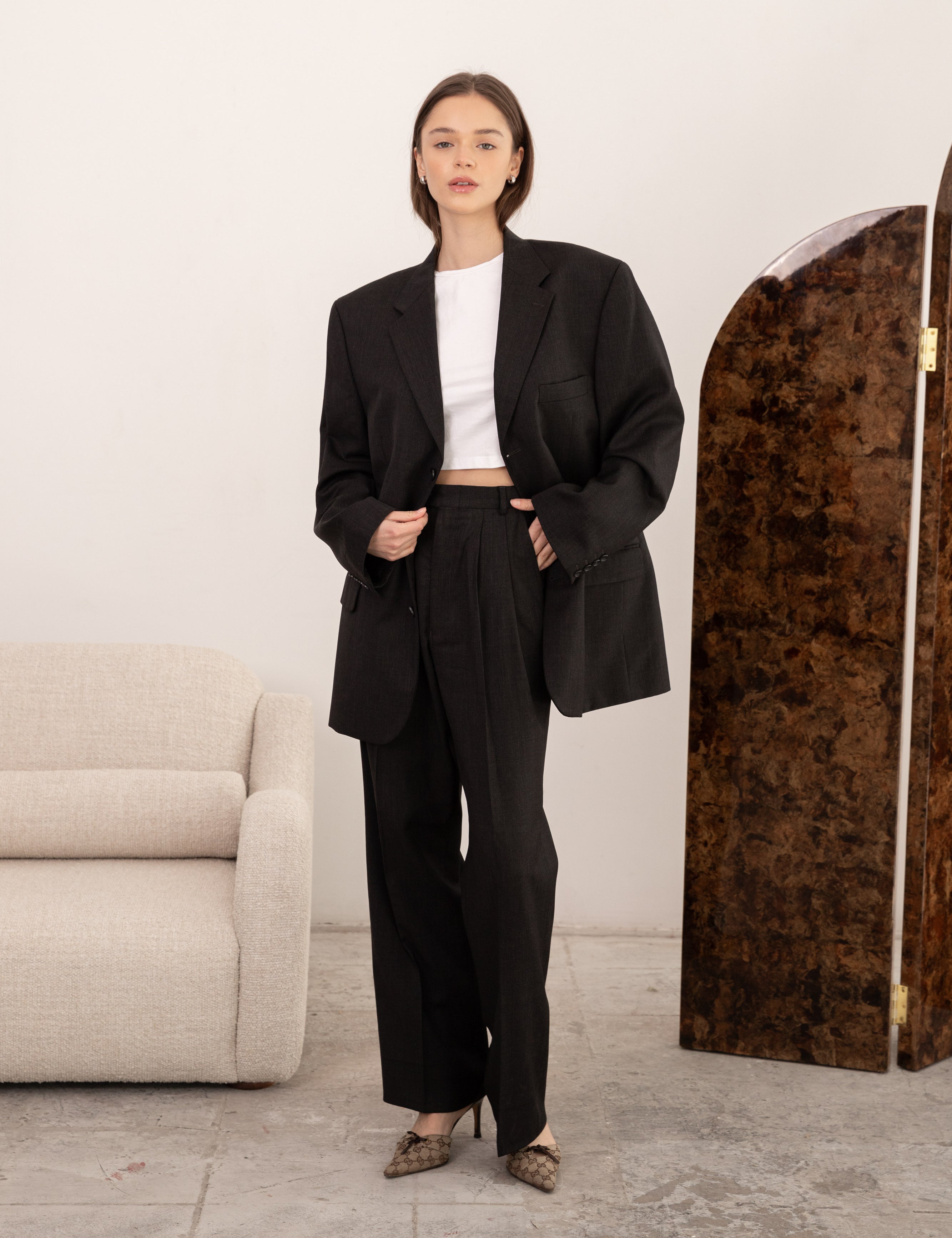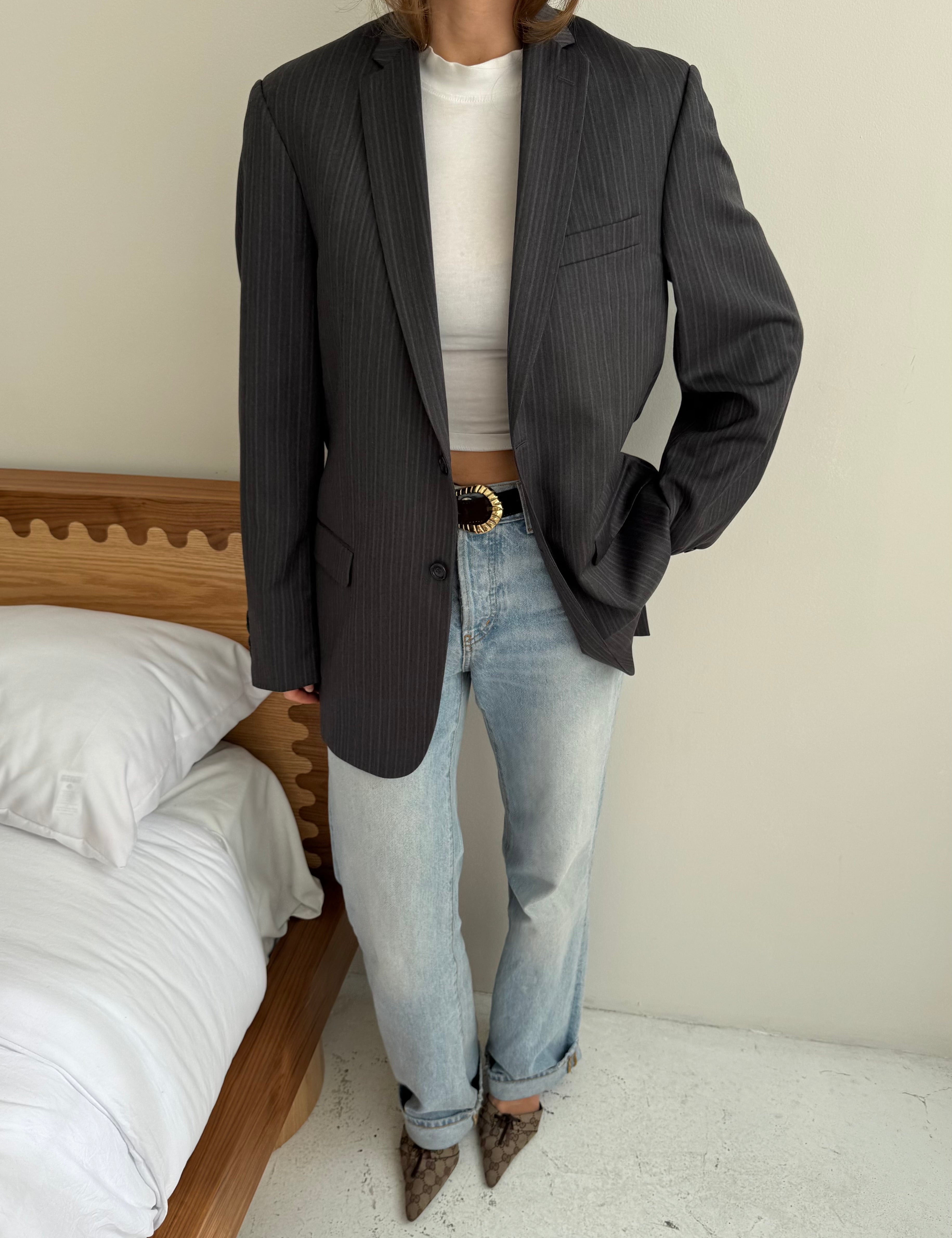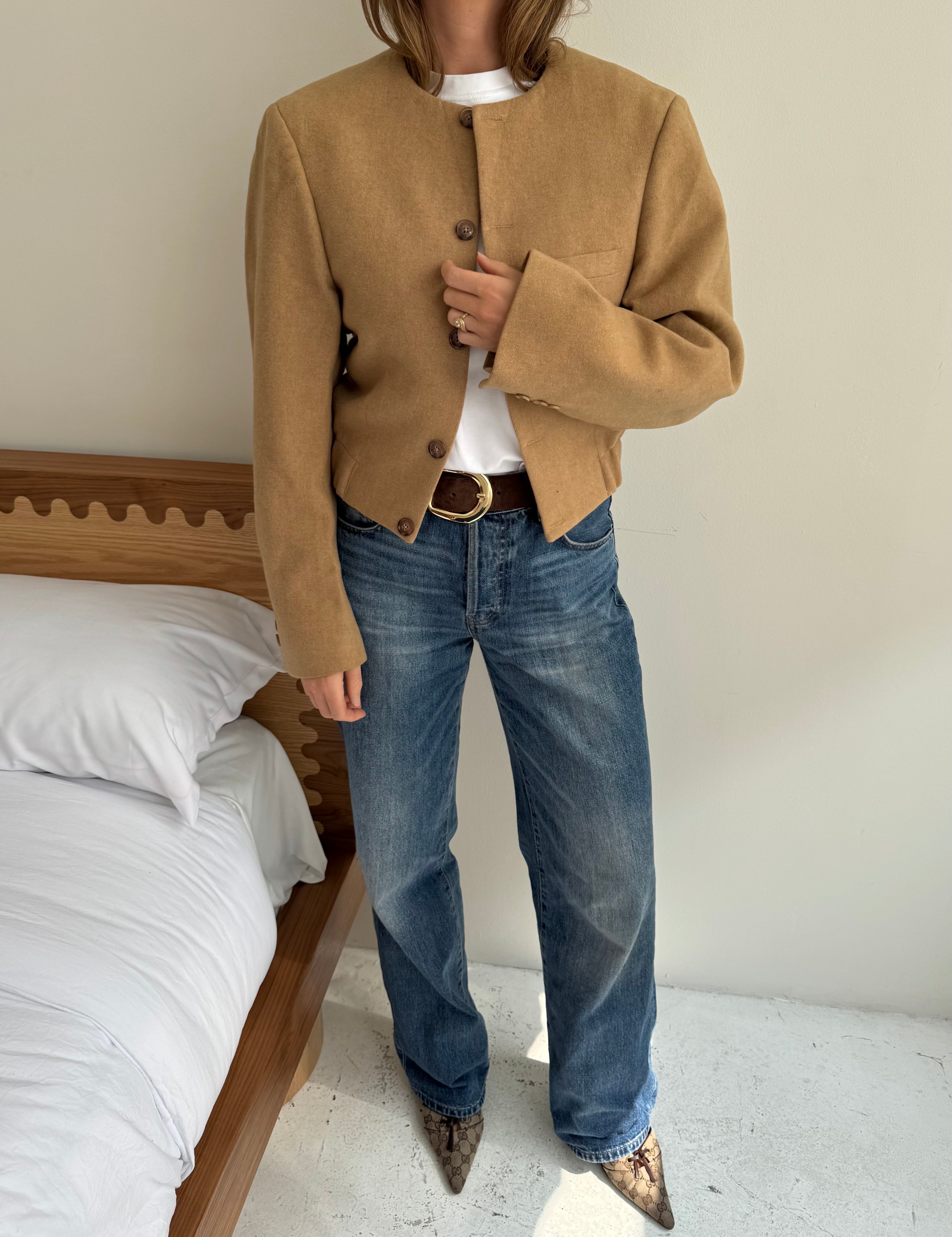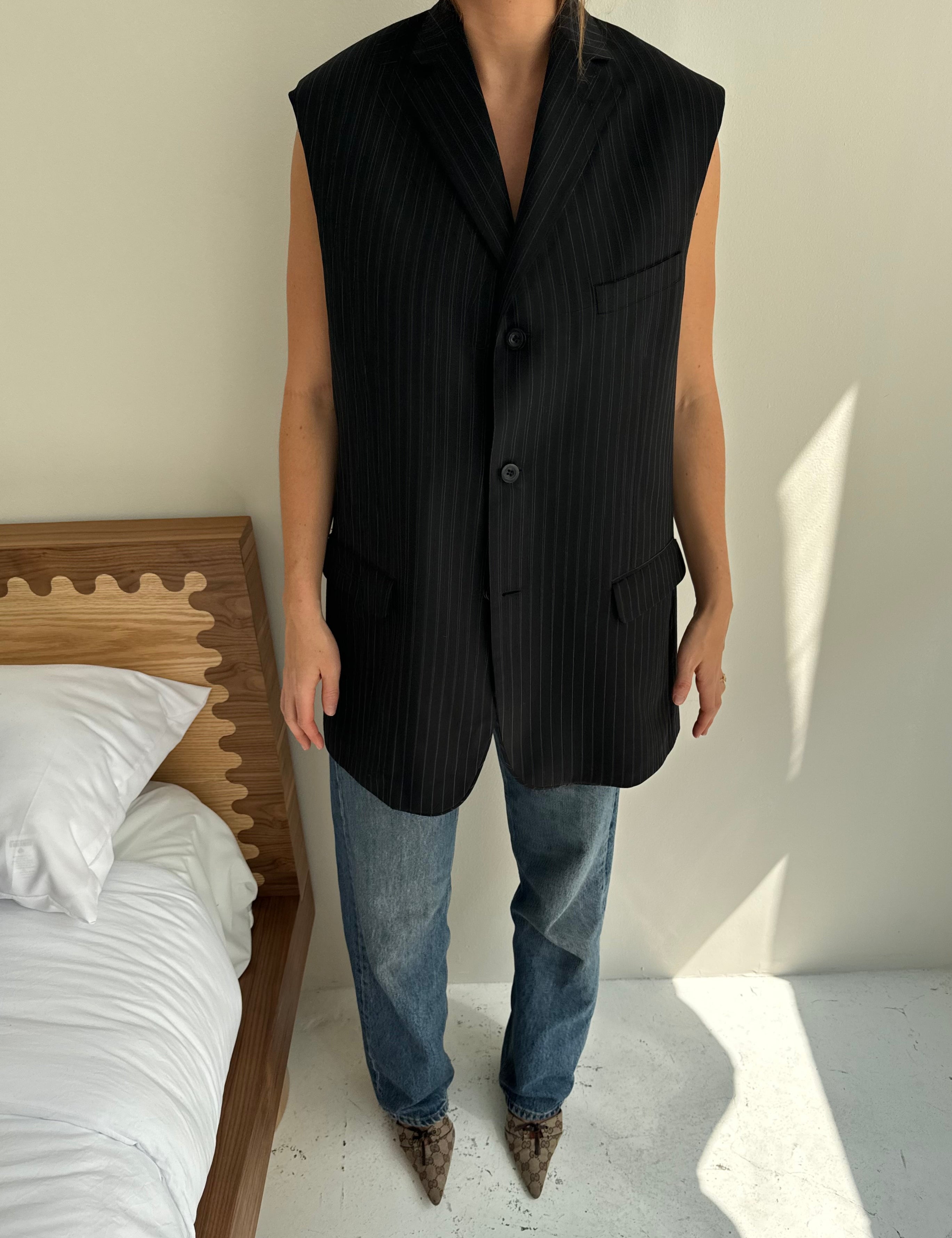 A match made in heaven. Two carefully sourced vintage blazers, made into one, adding a twist to the classic and timeless oversized blazer. Perfect for all occasions and always super versatile. Wear it with jeans or on its own, daytime or evening. Carefully curated, tailored and dry cleaned. Beautiful quality, and always made from silk, cashmere, cotton or wool.The sewing has been done well, however there may be slight differences in length/shoulder, as the jacket is made from two recycled blazers.