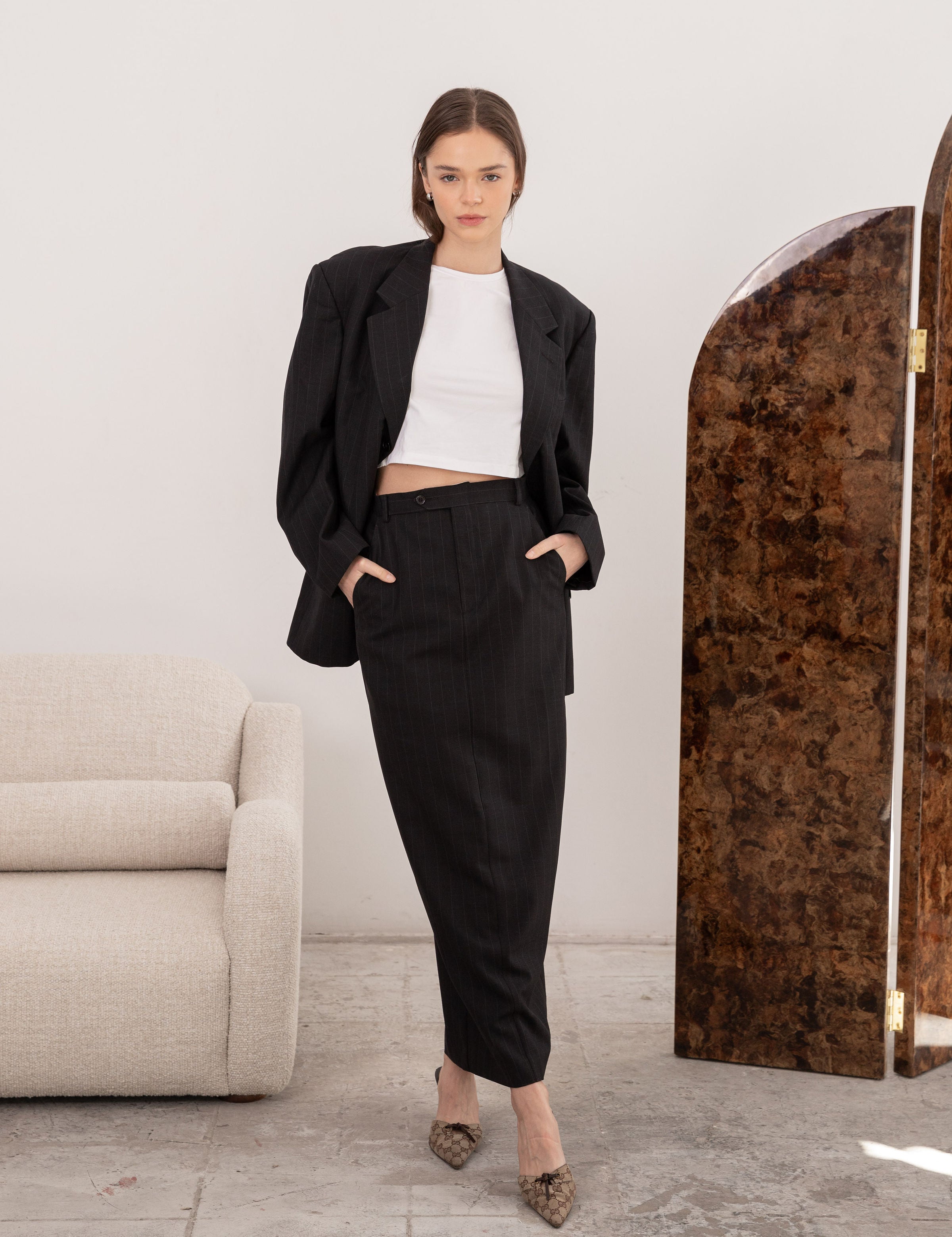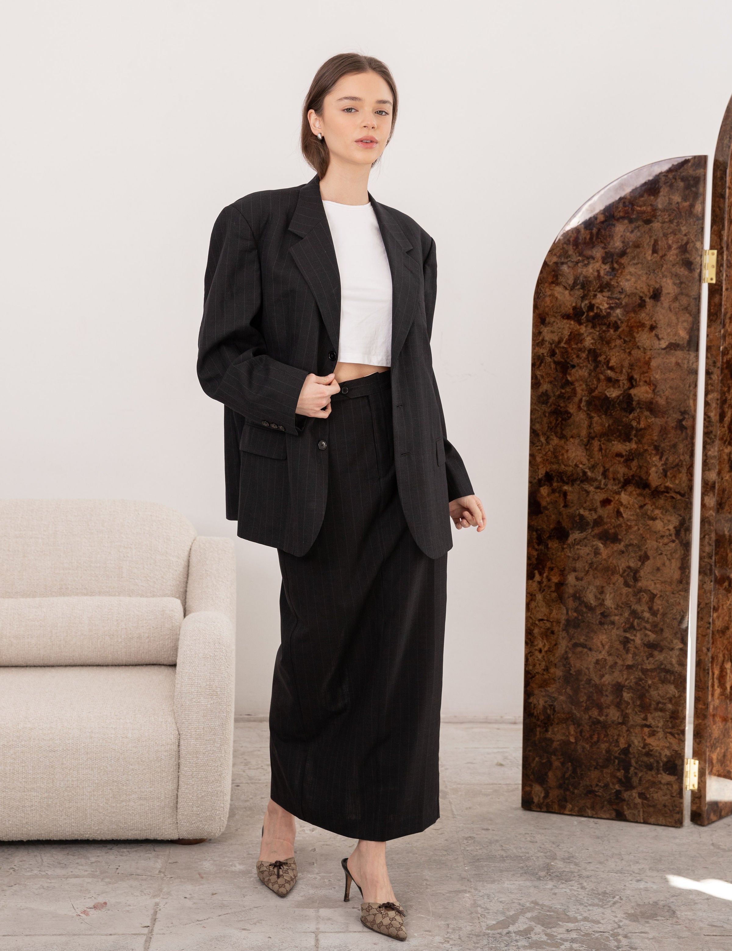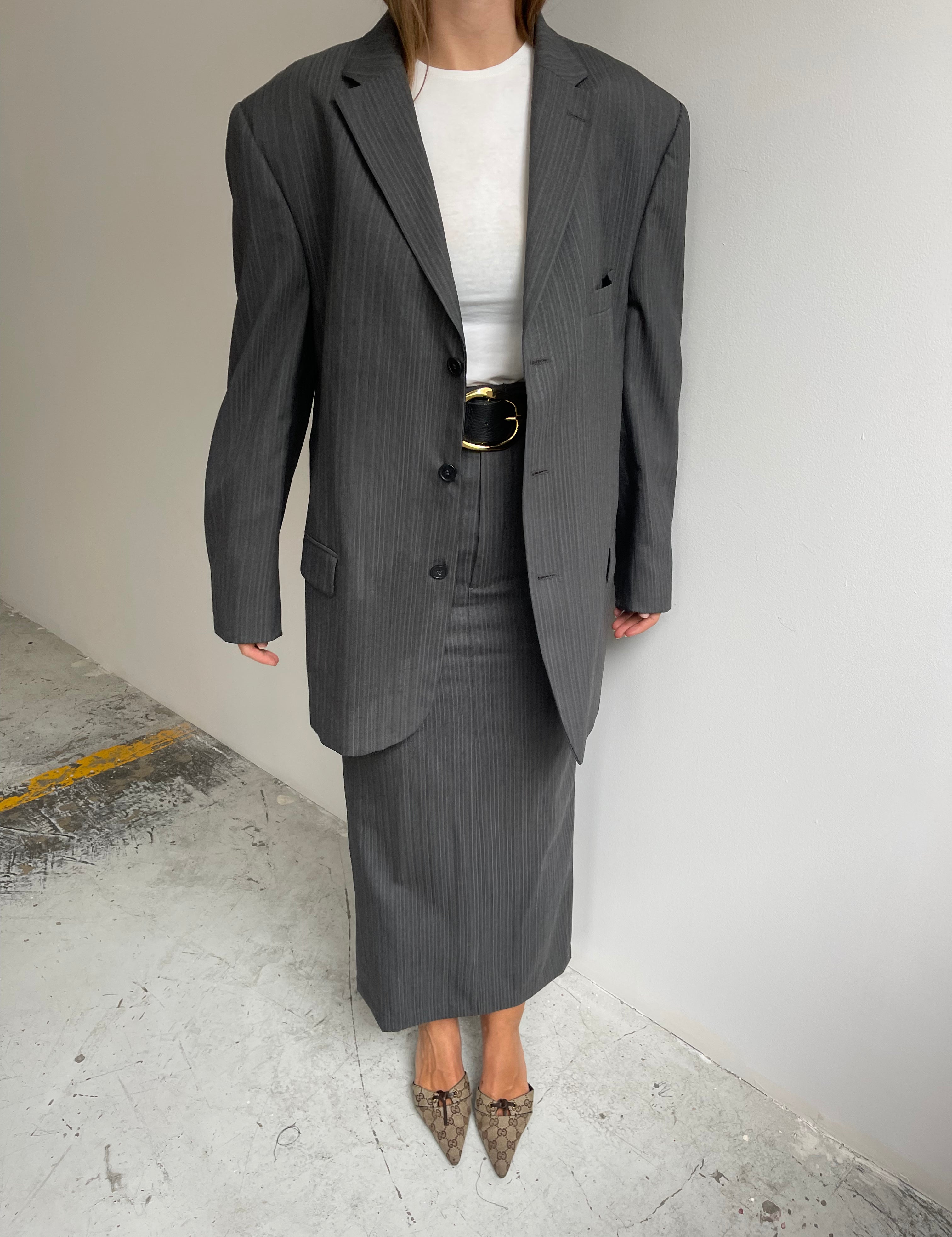Vintage reworked two-piece skirt set made from a discarded vintage men’s blazer. This piece is zero waste and is upcycled into a power suit. Carefully curated, professionally tailored and professionally dry-cleaned. Beautiful quality, and always made from silk, cashmere, cotton or wool. Wear each piece separately or together and dress it up or down. Dry clean only.