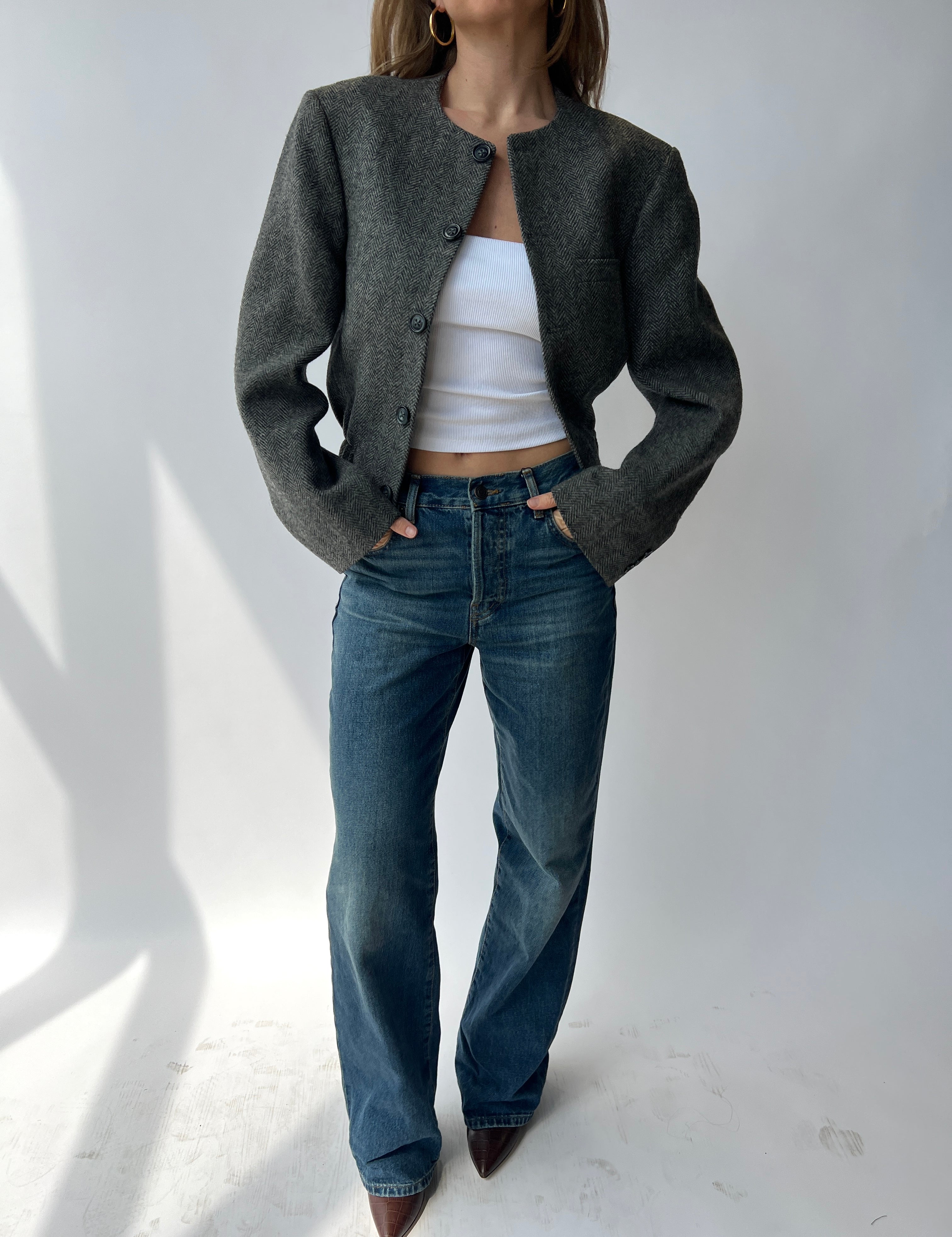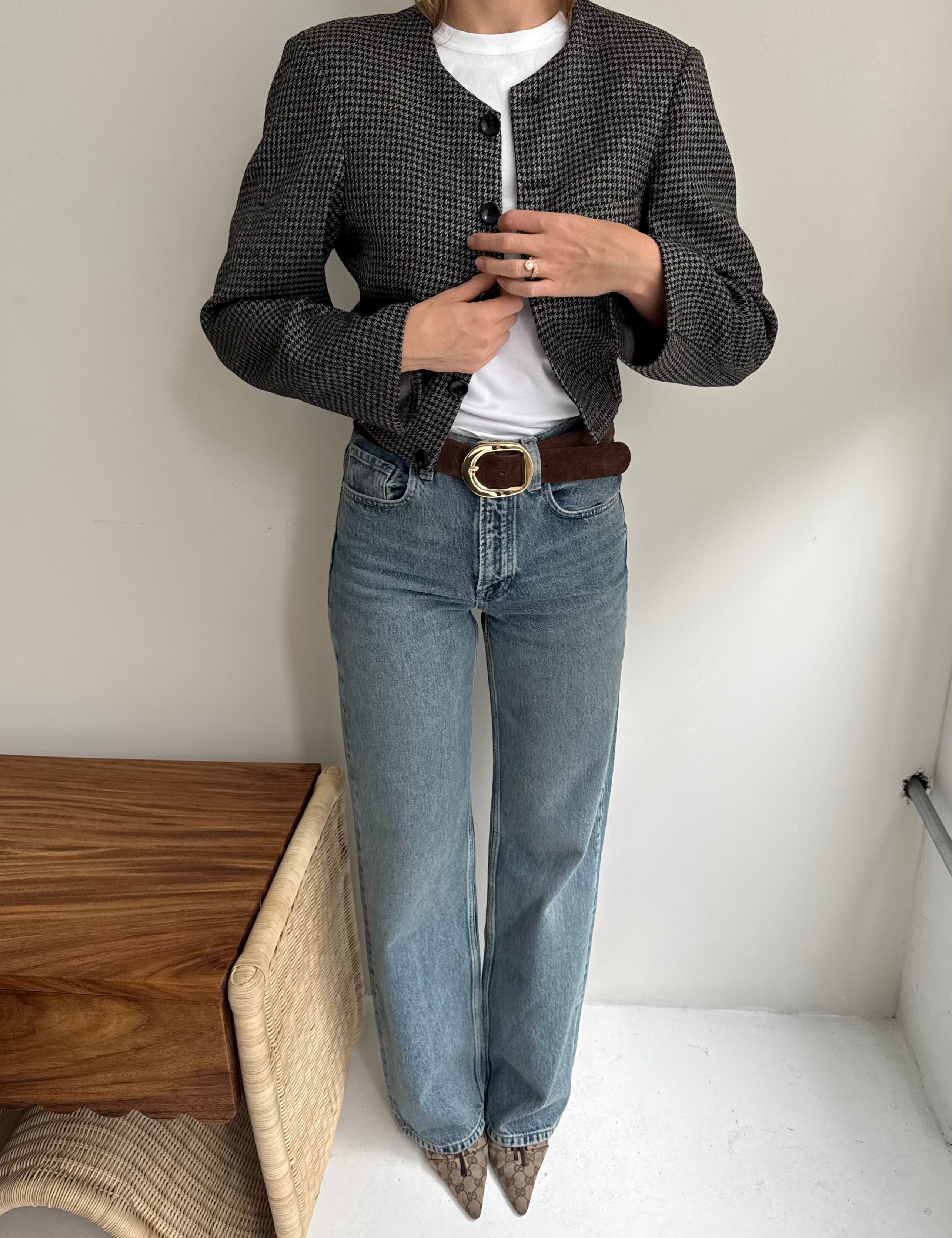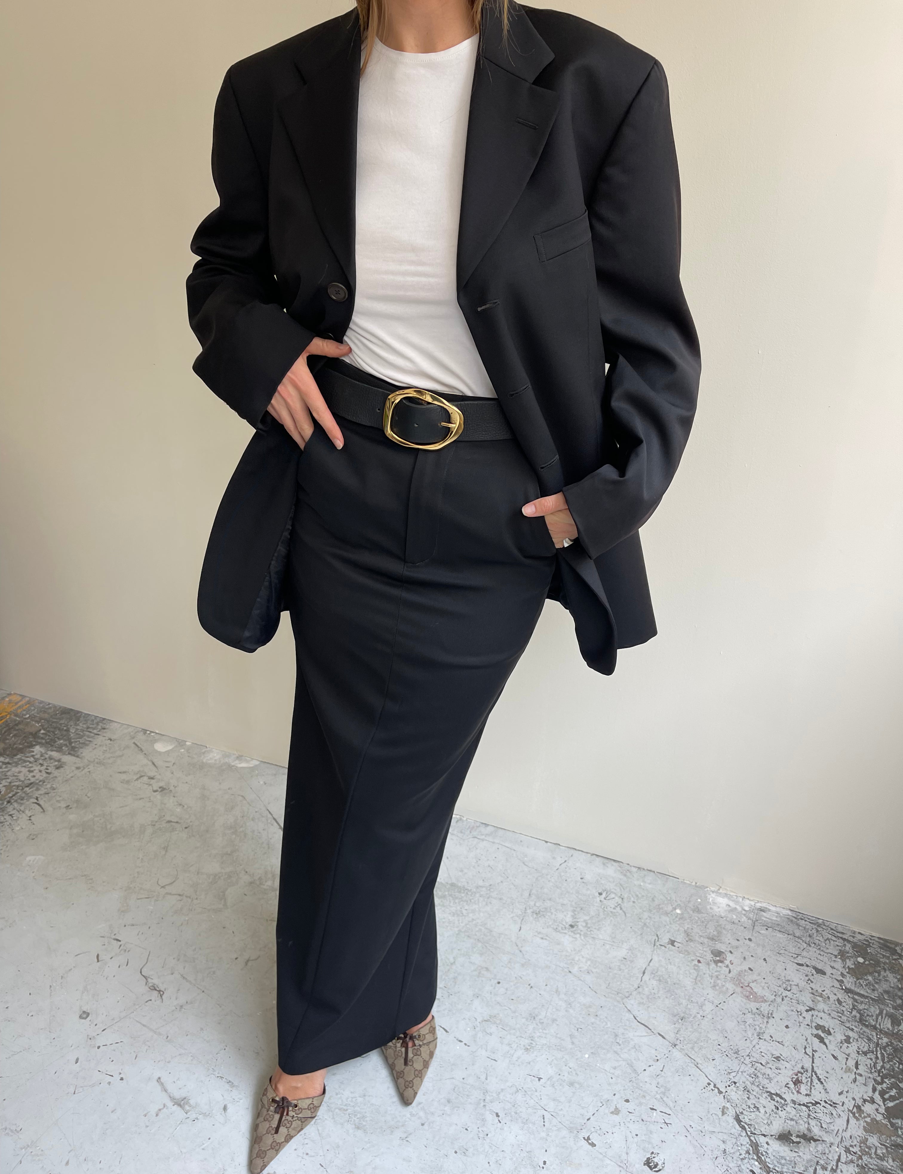 Vintage reworked two-piece skirt set made from a discarded vintage men’s blazer. This piece is zero waste and is upcycled into a power suit. Carefully curated, professionally tailored and professionally dry-cleaned. Beautiful quality, and always made from silk, cashmere, cotton or wool. Wear each piece separately or together and dress it up or down. Dry clean only.